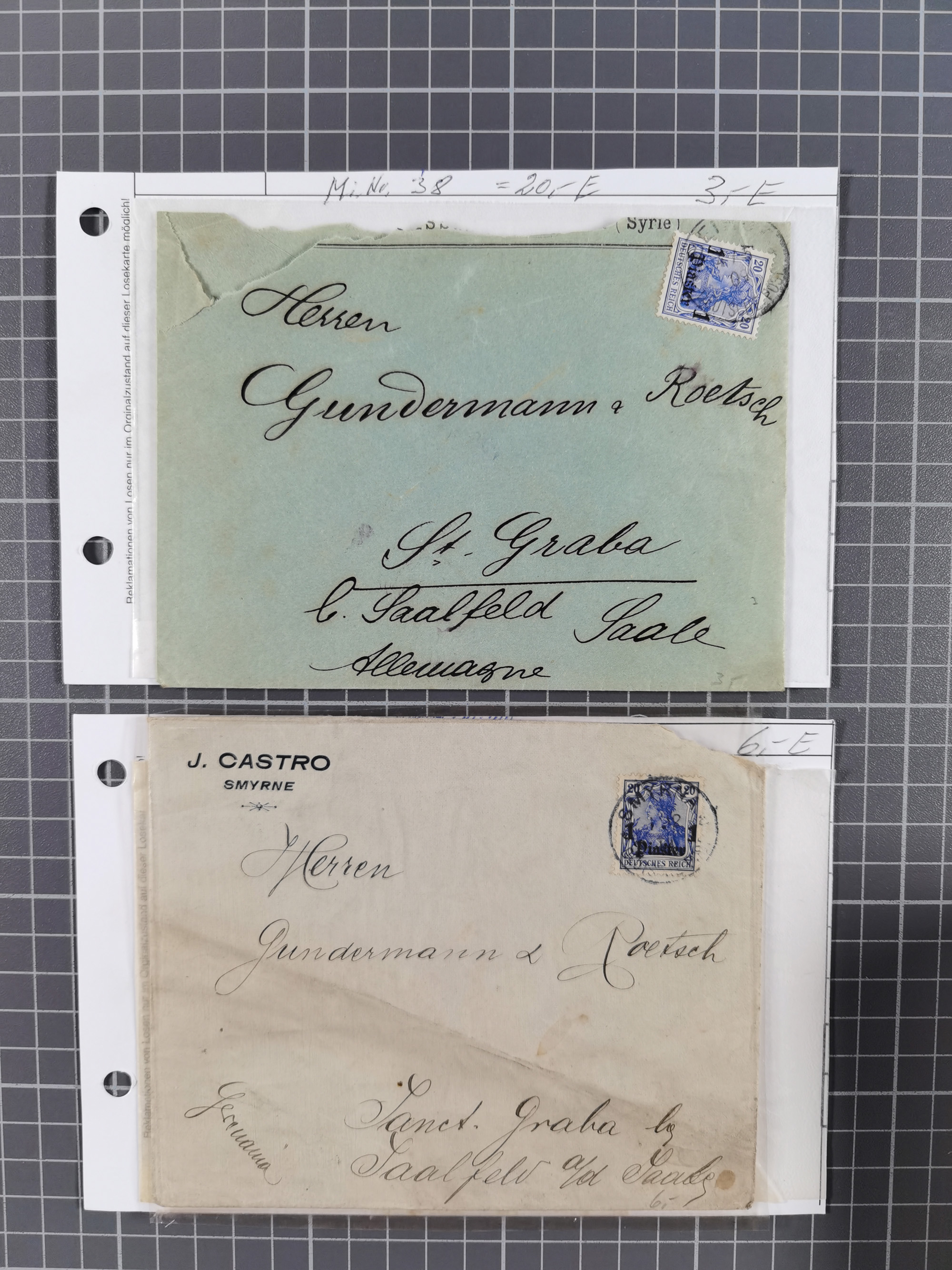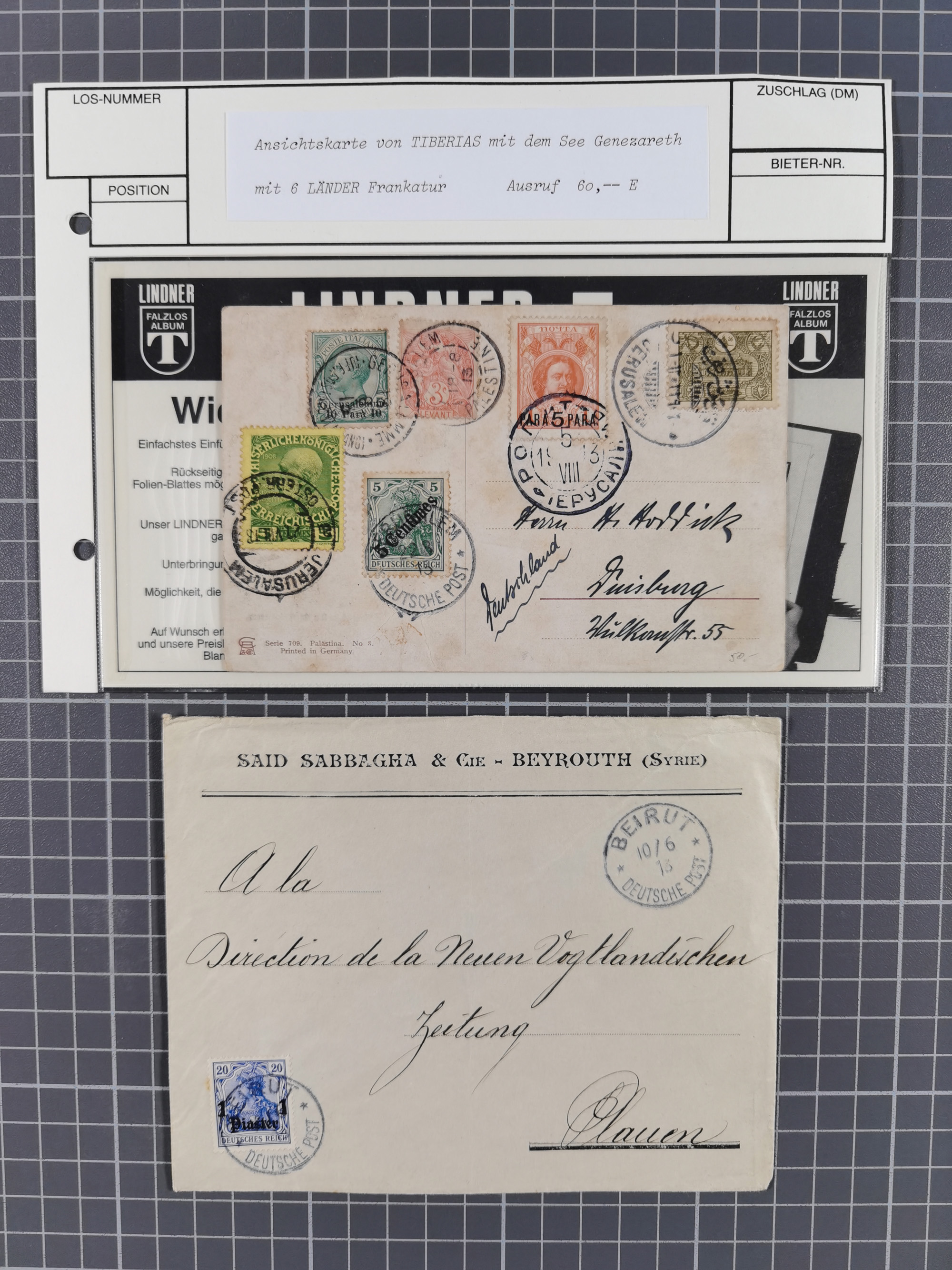 1905, 2 Piaster auf 40 Pfennig mit Wasserzeichen, sauber mit Stempel “BEIRUT DP 5.2.10” als tarifgerechte Einzelfrankatur auf R-Briefkuvert mit R-Zettel “Beirut (Deutsche Post)” (Einfeldt Nr. 3) via Melbourne und Sydney nach Apia, Samoa mit Ankunftsstempel und Nachsendung nach Altenburg bzw. Gera mit Ankunftsstempeln. Der Umschlag mit Beförderungsspuren, sonst in guter Erhaltung, ein seltener R-Brief mit Destination Samoa, doppelt signiert Dr. Steuer VÖB