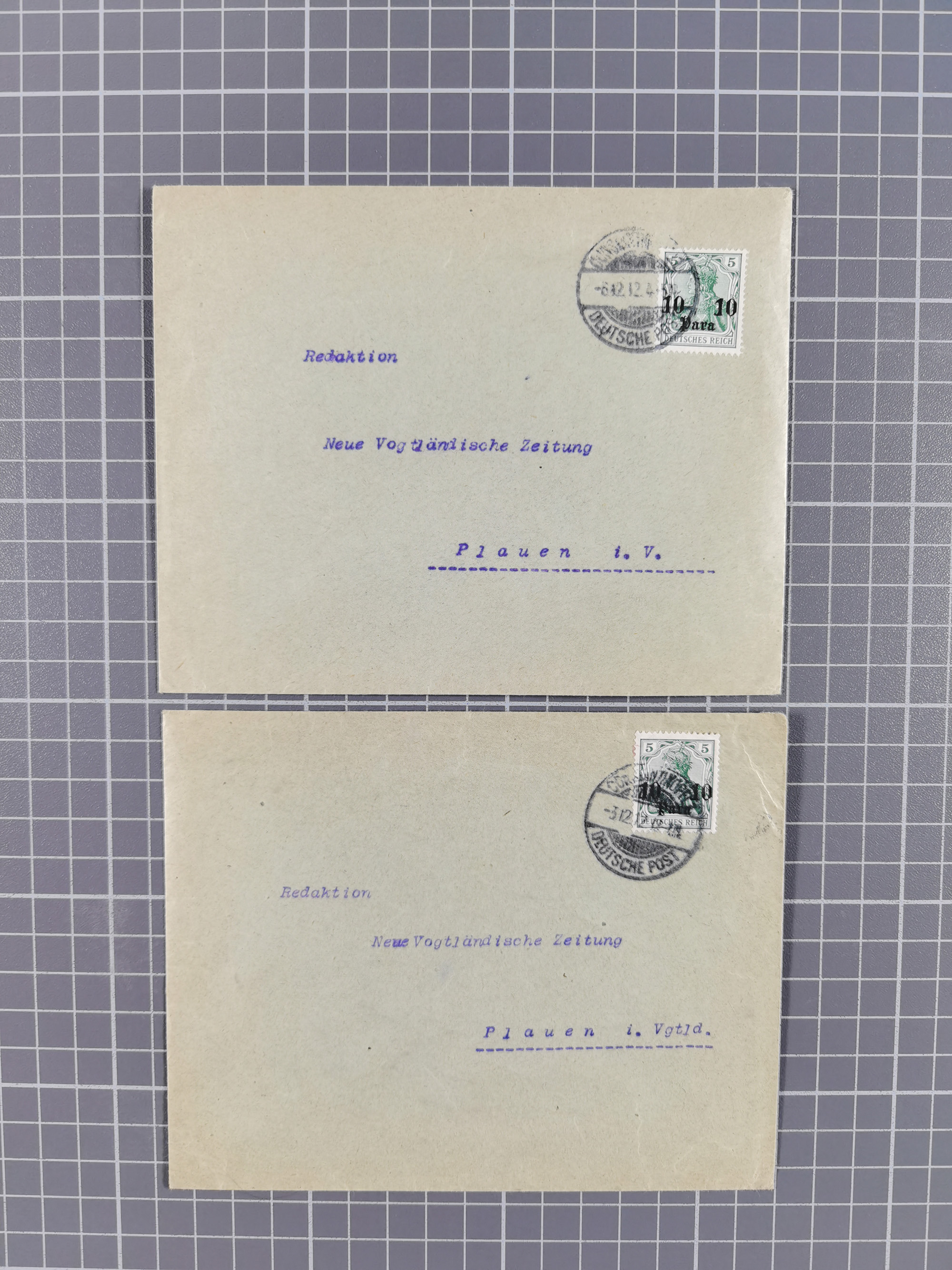 2 Groschen grauultramarin, farbfrisch, gut geprägt und normal gezähnt im waagerechten Paar mit sehr klarem EKr.  “KAISERL.DEUTSCH. P.A. CONSTANTINOPEL° 8.5.74” als tarifgerechte Mehrfachfrankatur auf komplettem Faltbrief mit Leitvermerk “Via Varna” und Blaustift-Weiterfranco-Vermerk “wfr 1¼ Gr.” nach Mailand mit Ankunftsstempel. Der Faltbrief mit leichten Beförderungsspuren und die Marken sind in einwandfreier Erhaltung. Eine dekorative Mehrfachfrankatur, in Verbindung mit der Destination Italien sind bisher nur wenige Briefe bekannt