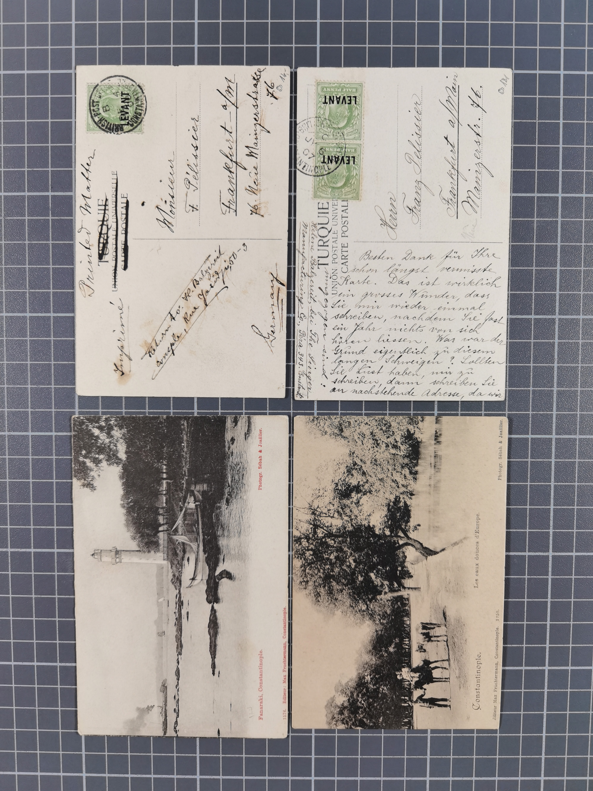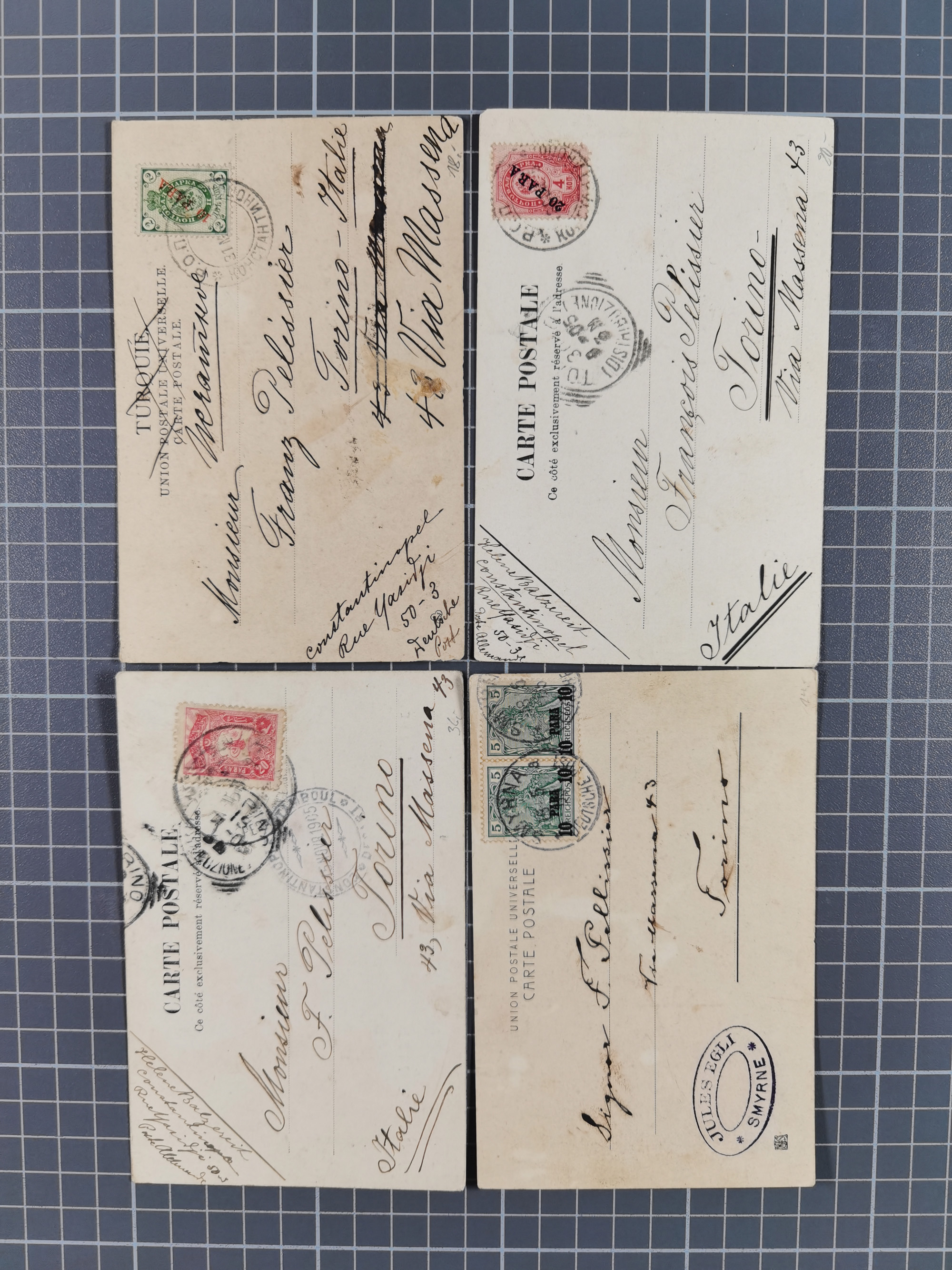 1906, 10 Para auf 5 Pfennig mit Wasserzeichen und Aufdruckfehler “seitwärts stark verschobenem Aufdruck ”0 Para 10 1" im waagerechtem Viererstreifen als tarifgerechte Mehrfachfrankatur auf Brief nach München mit Ankunftsstempel. Der farbfrische Viererstreifen ist wie der Umschlag in einwandfreier Erhaltung, bisher ist keine weitere Mehrfachfrankatur mit dieser Aufdruck-Abart bekannt, eine große Türkei-Seltenheit, doppelt signiert Kilian und Fotoattest Jäschke-L. BPP (2024)
