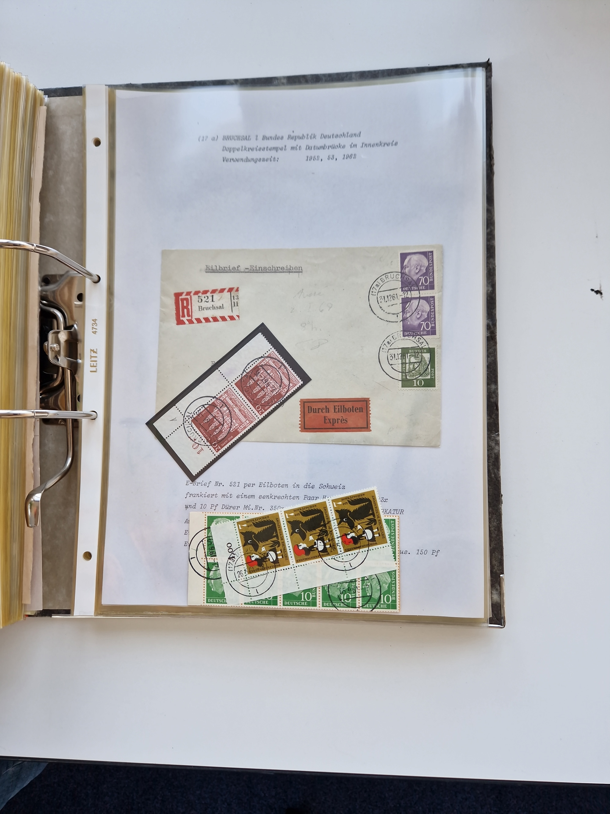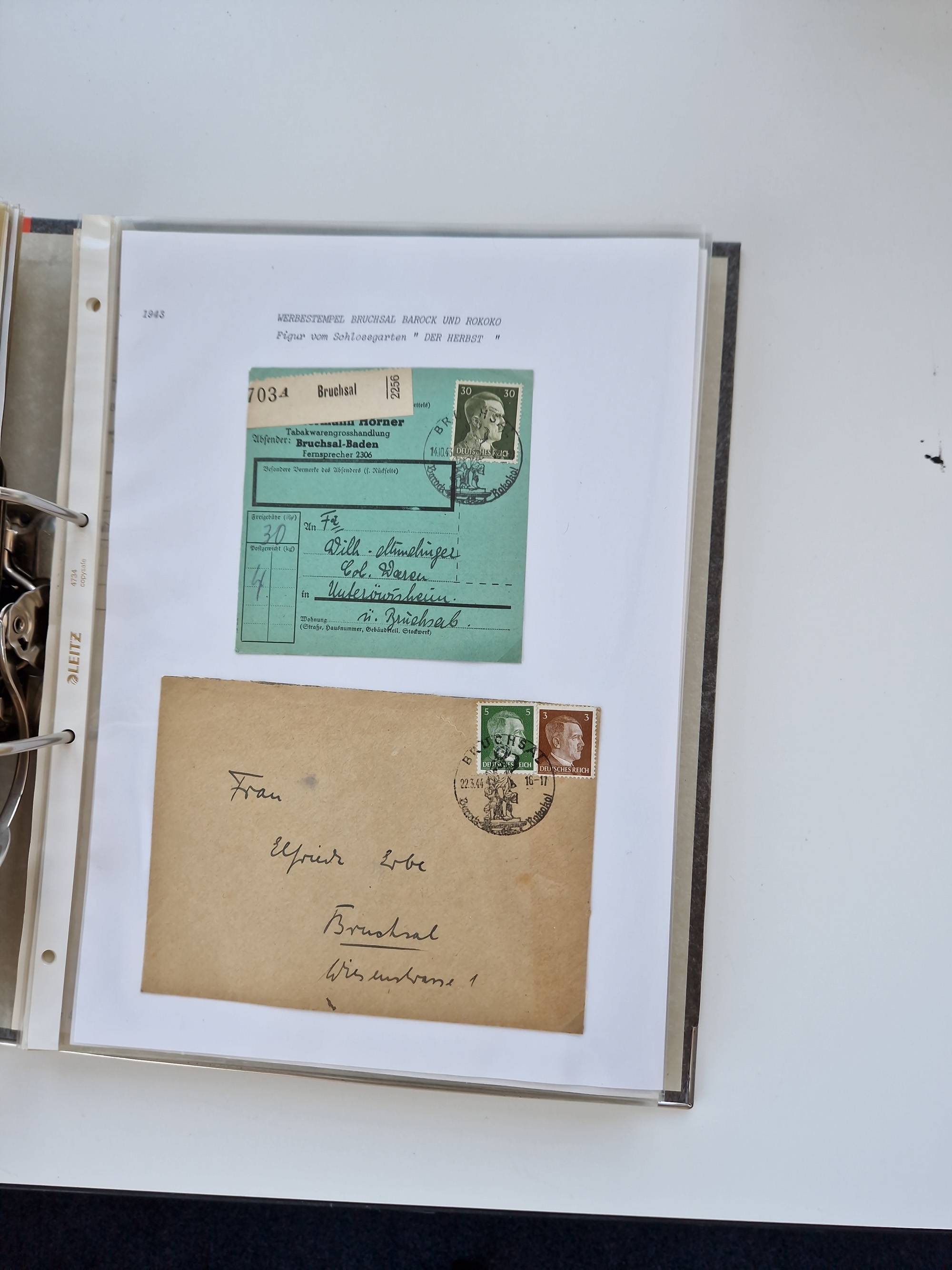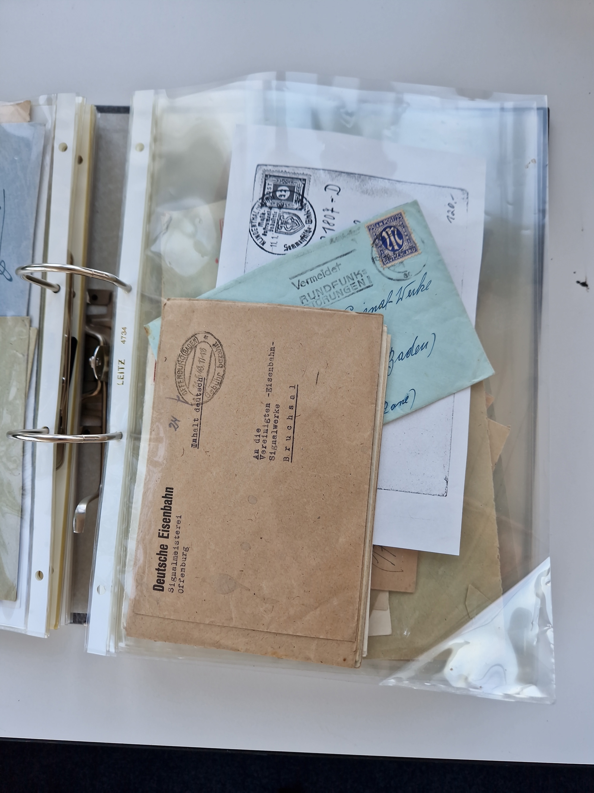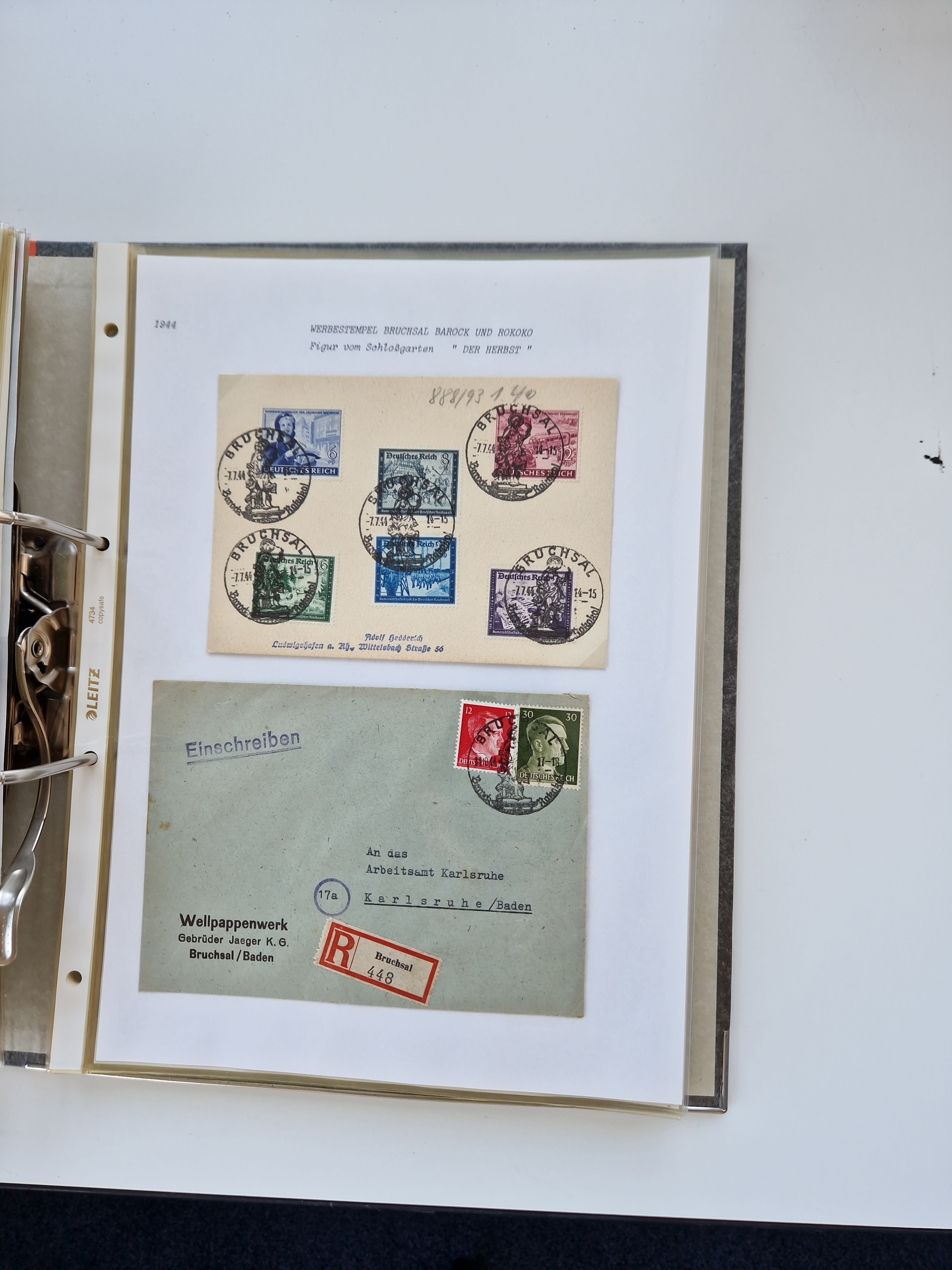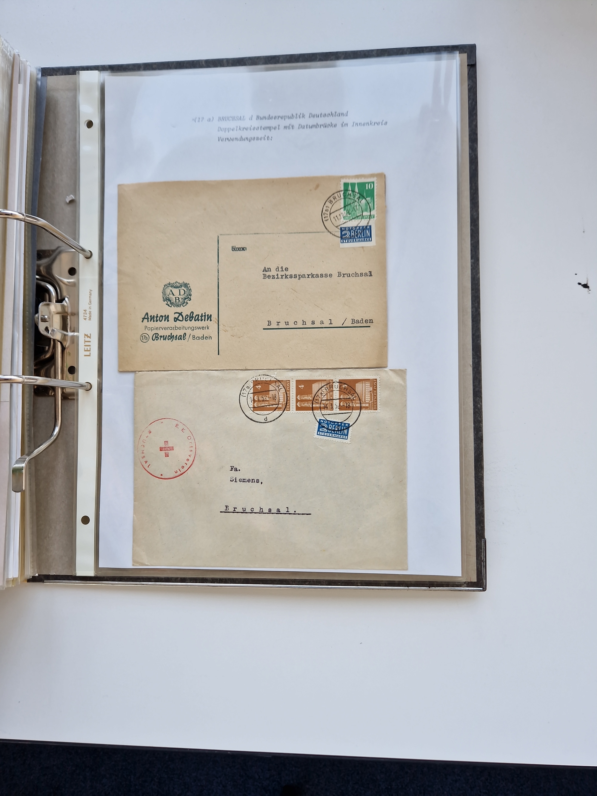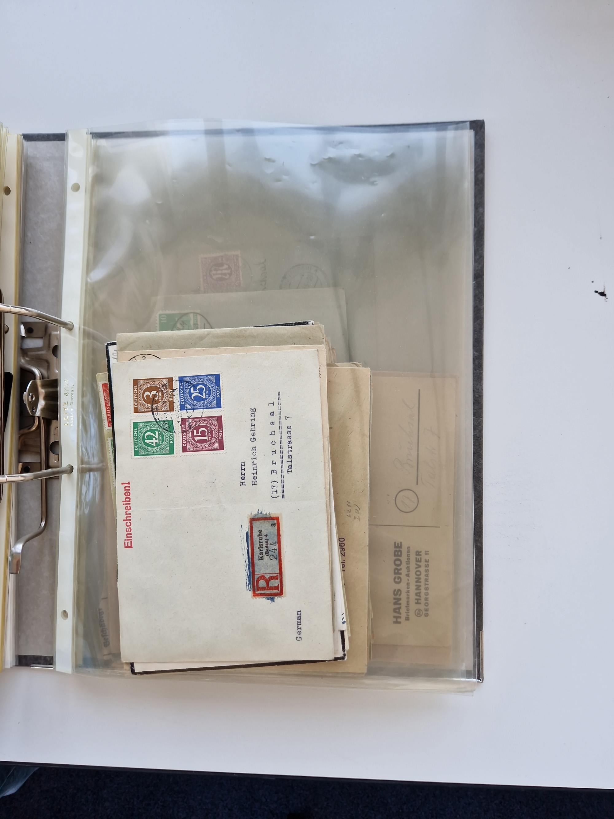 1870/2010 (ca.), Bruchsal und Umgebung, umfangreiche Heimatsammlung in 39 Ringordnern etwas unkonventionell, aber nichtsdestotrotz sehr inhaltsreich gesammelt mit zahlreichen Belegen ab Dt.Reich und auch losen Marken, u.a. Brustschilde mit Marken und besseren Frankaturen, Nachkriegszeit mit Besatzungszonen, auch eingehende Post aus Aller Welt.