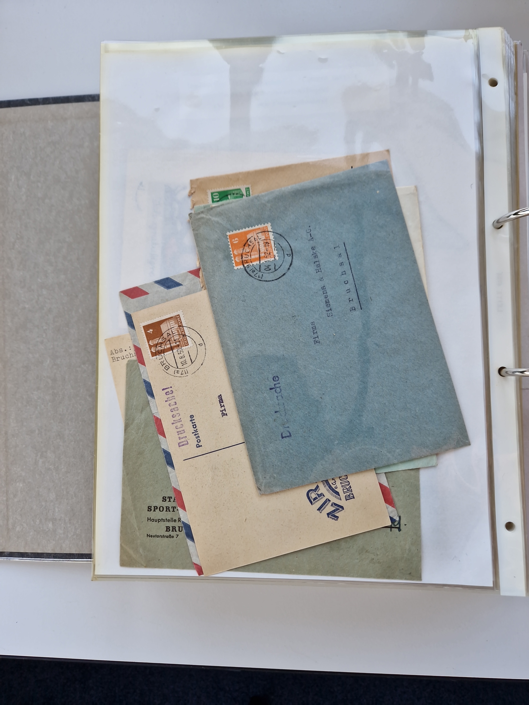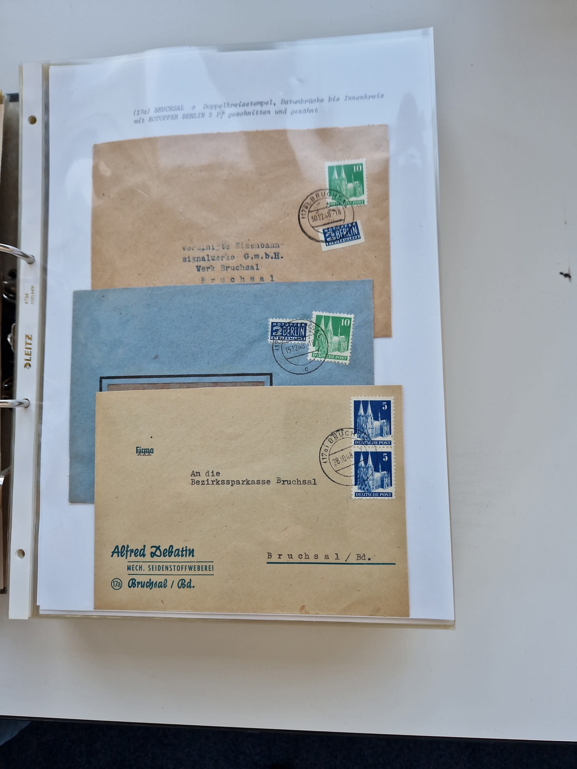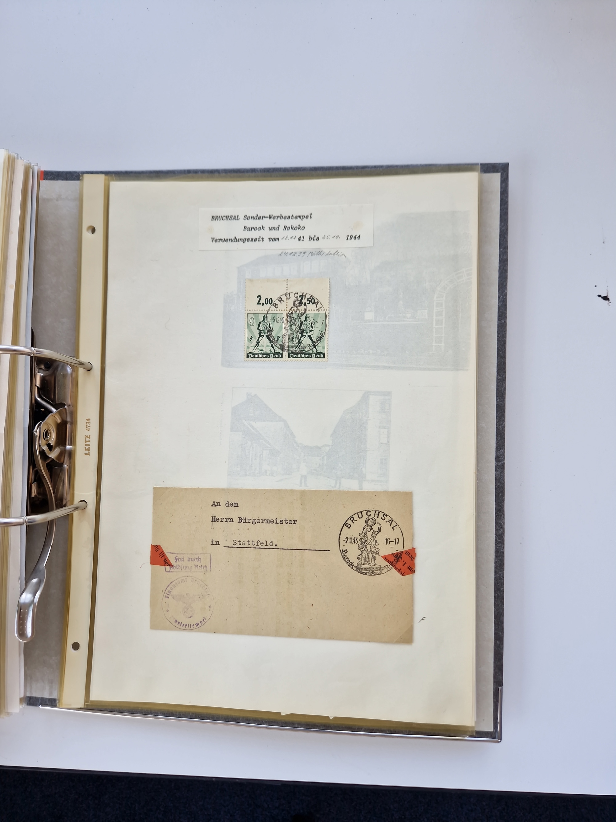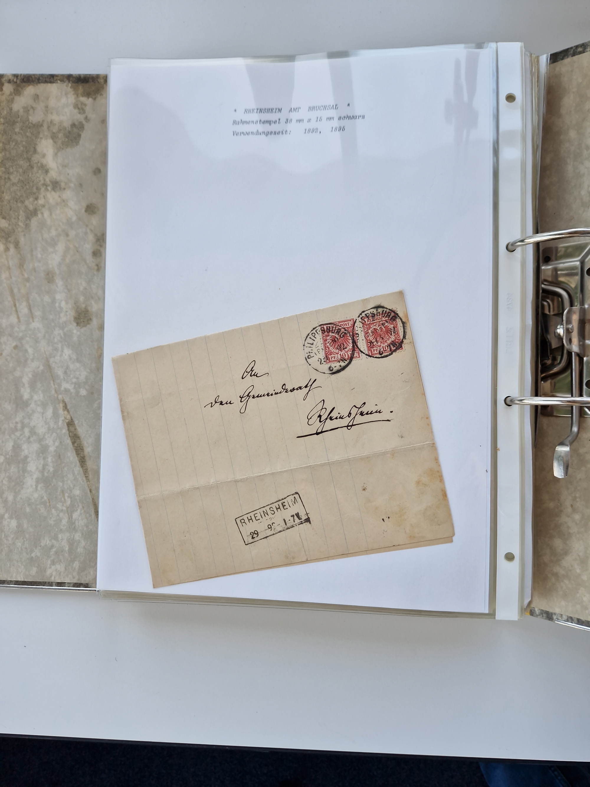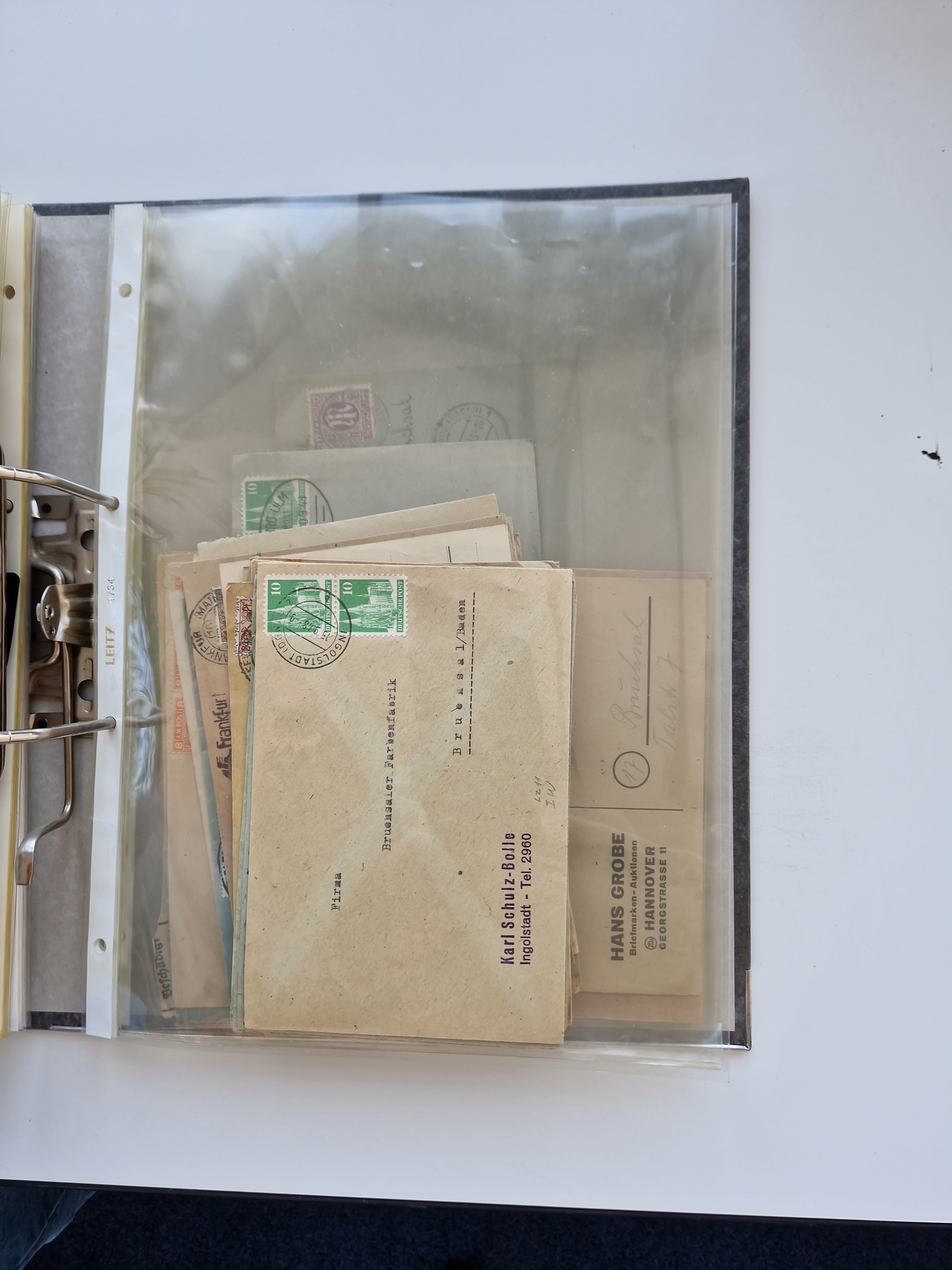 1870/2010 (ca.), Bruchsal und Umgebung, umfangreiche Heimatsammlung in 39 Ringordnern etwas unkonventionell, aber nichtsdestotrotz sehr inhaltsreich gesammelt mit zahlreichen Belegen ab Dt.Reich und auch losen Marken, u.a. Brustschilde mit Marken und besseren Frankaturen, Nachkriegszeit mit Besatzungszonen, auch eingehende Post aus Aller Welt.