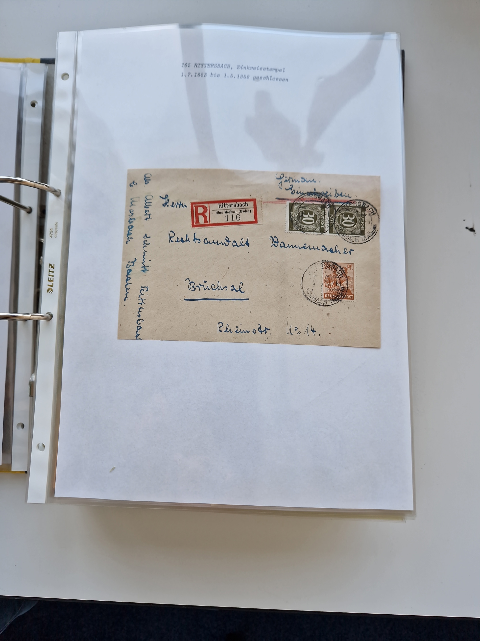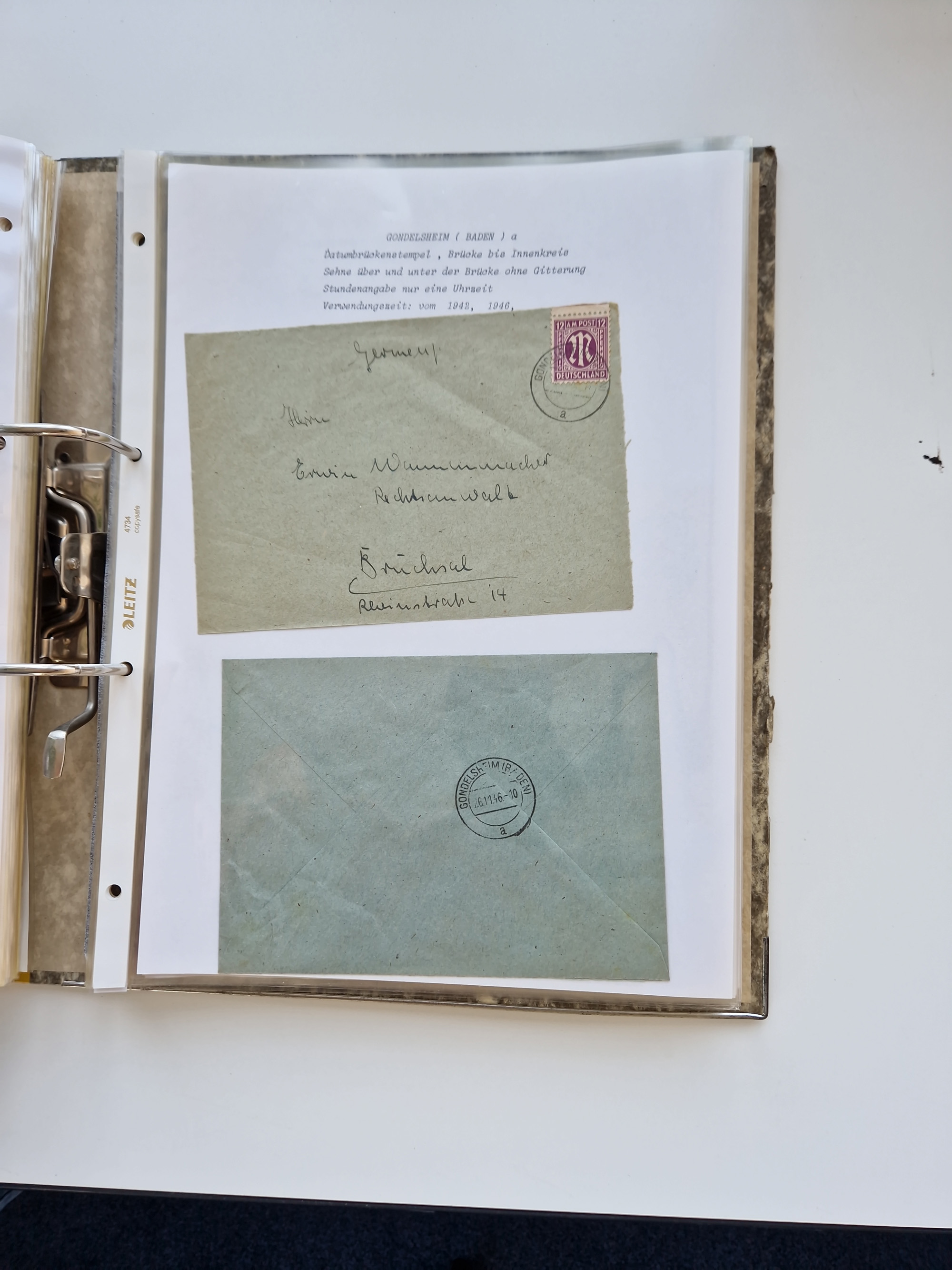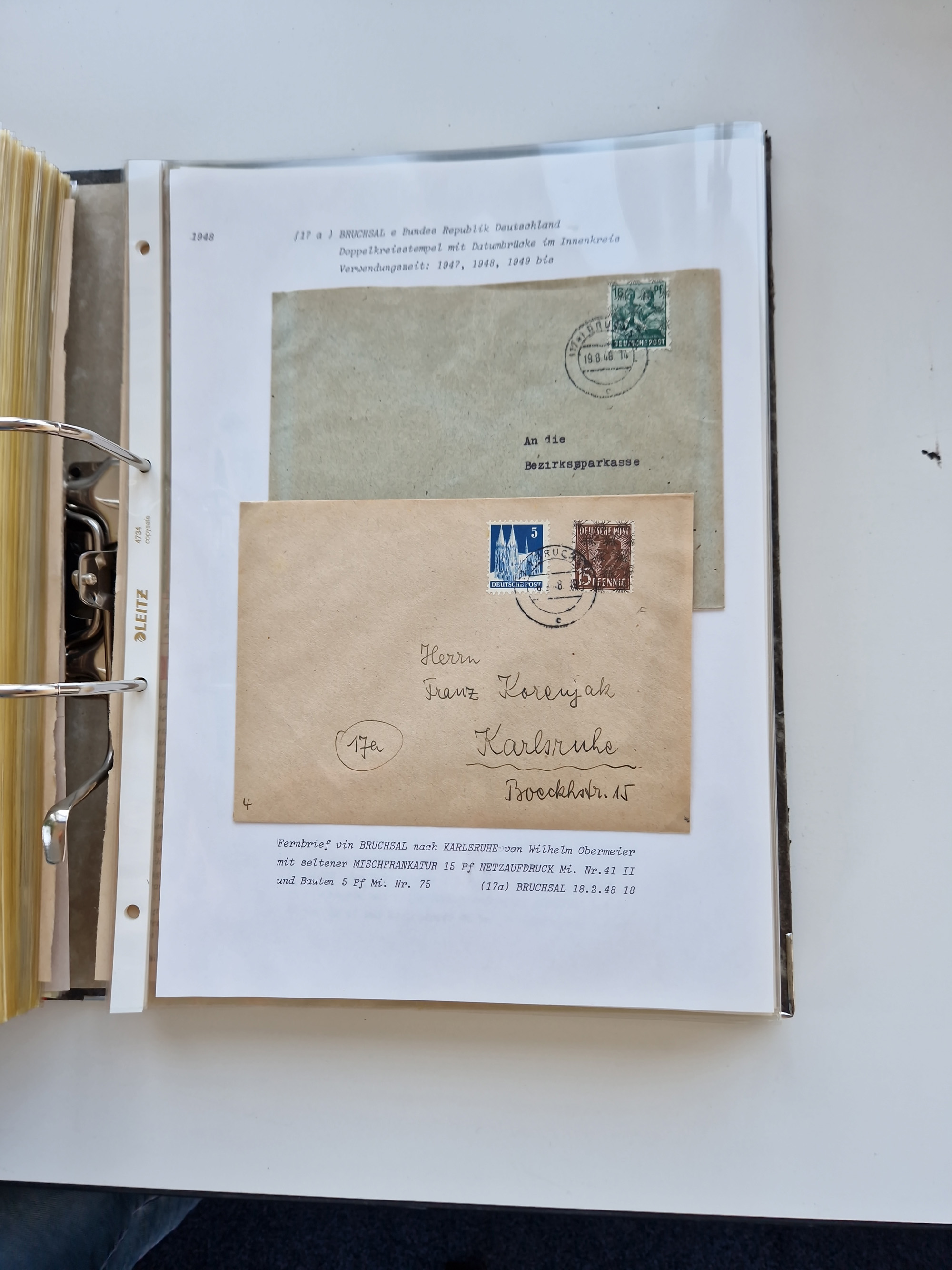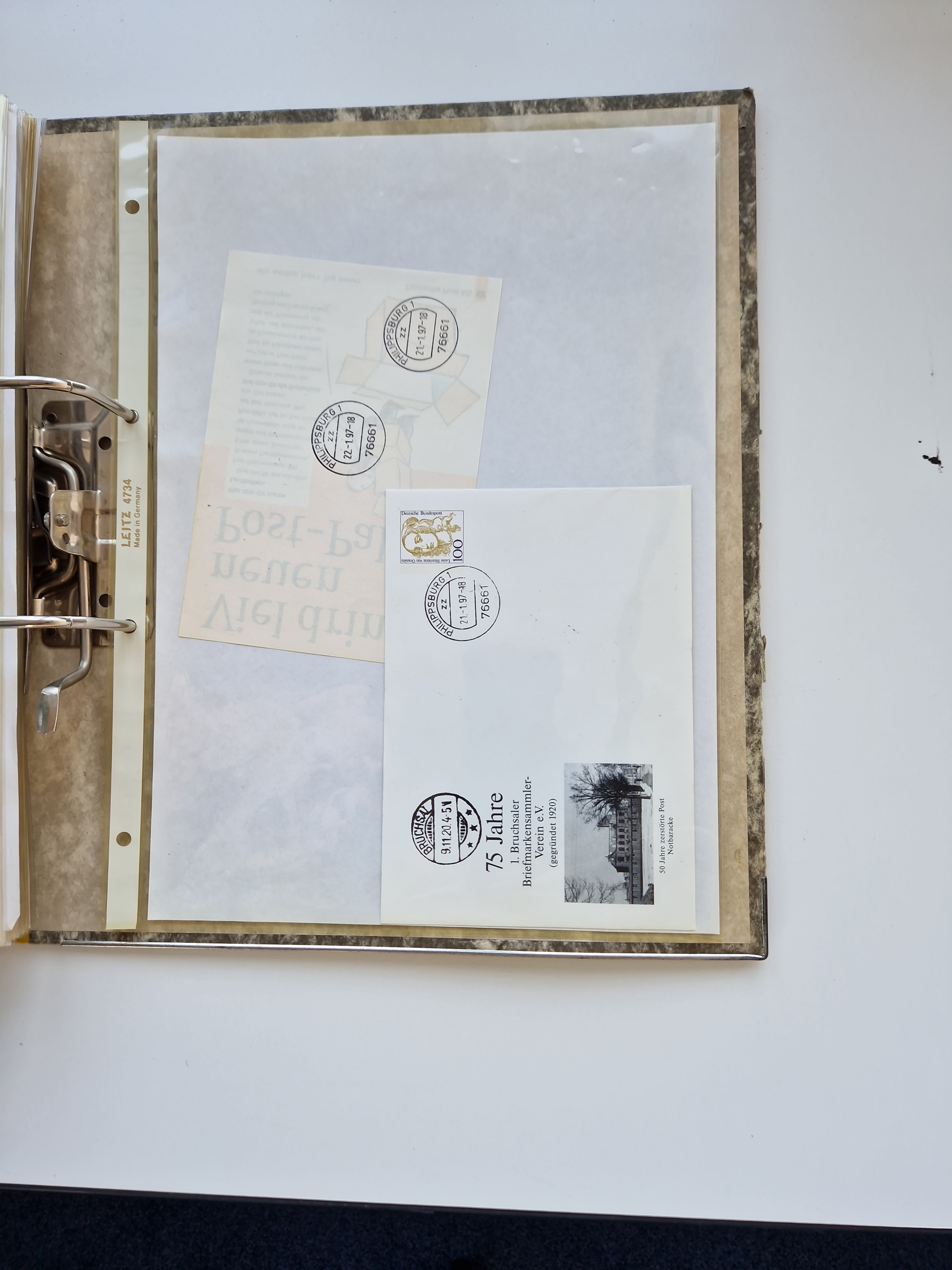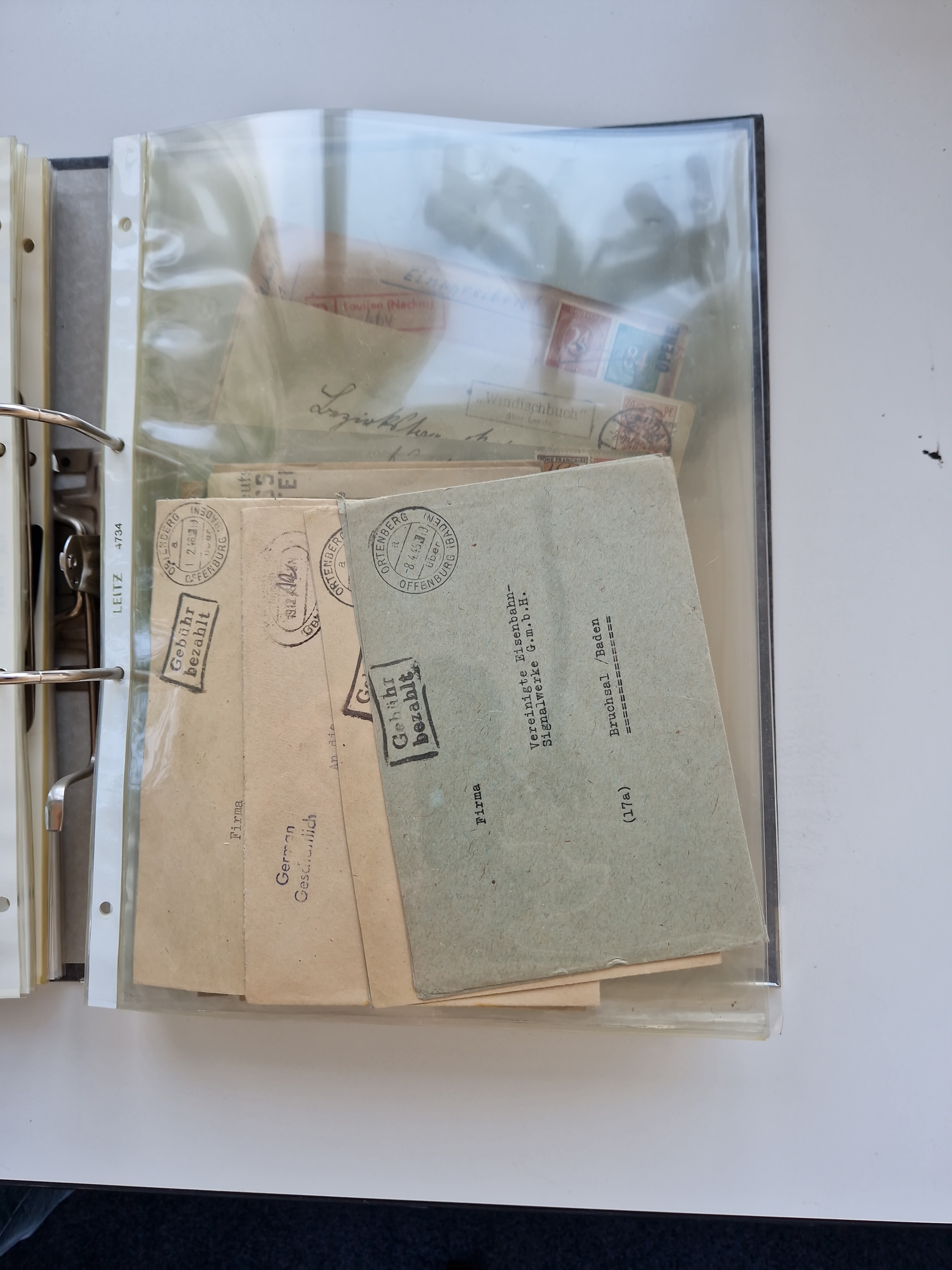 1870/2010 (ca.), Bruchsal und Umgebung, umfangreiche Heimatsammlung in 39 Ringordnern etwas unkonventionell, aber nichtsdestotrotz sehr inhaltsreich gesammelt mit zahlreichen Belegen ab Dt.Reich und auch losen Marken, u.a. Brustschilde mit Marken und besseren Frankaturen, Nachkriegszeit mit Besatzungszonen, auch eingehende Post aus Aller Welt.
