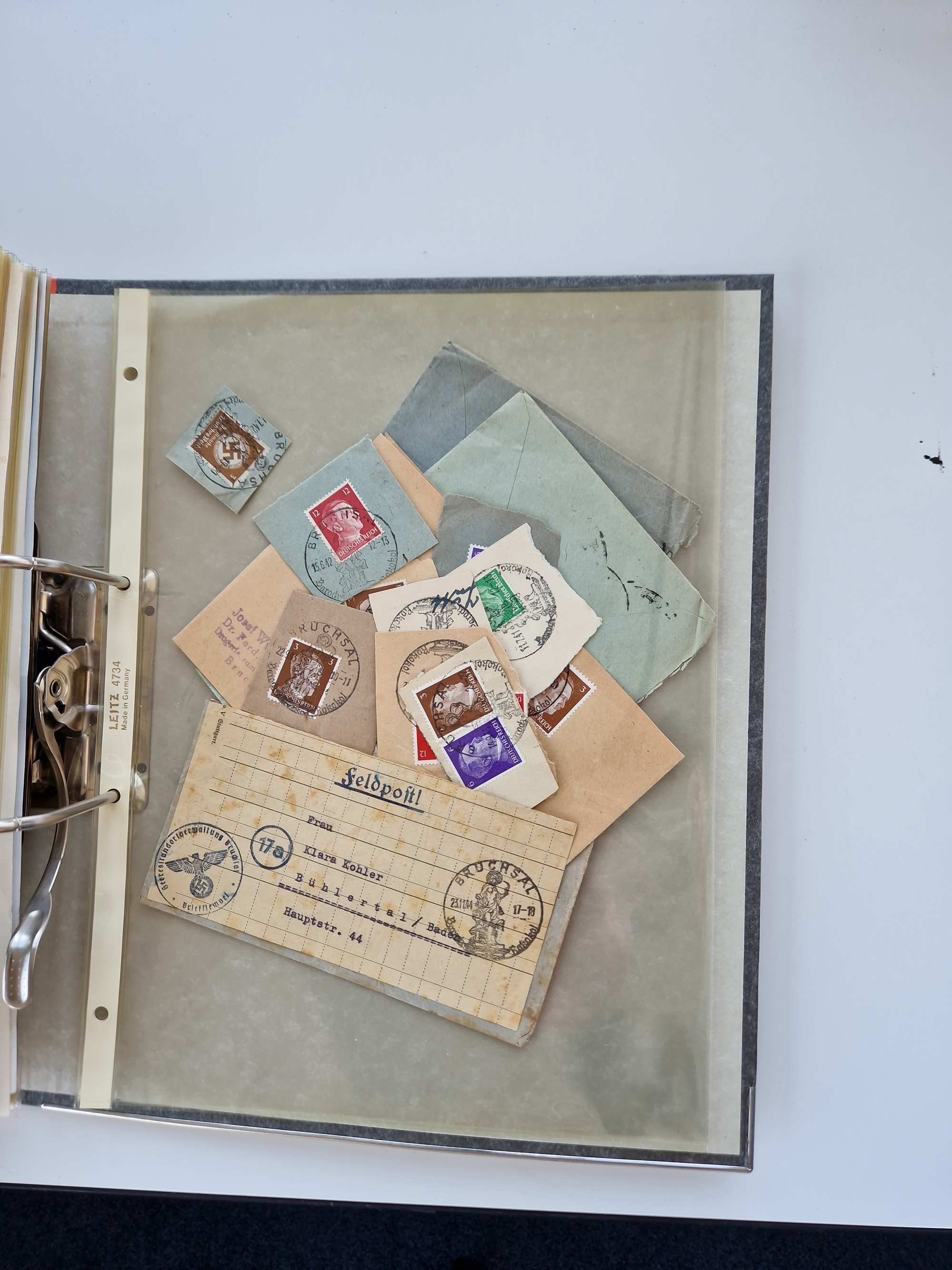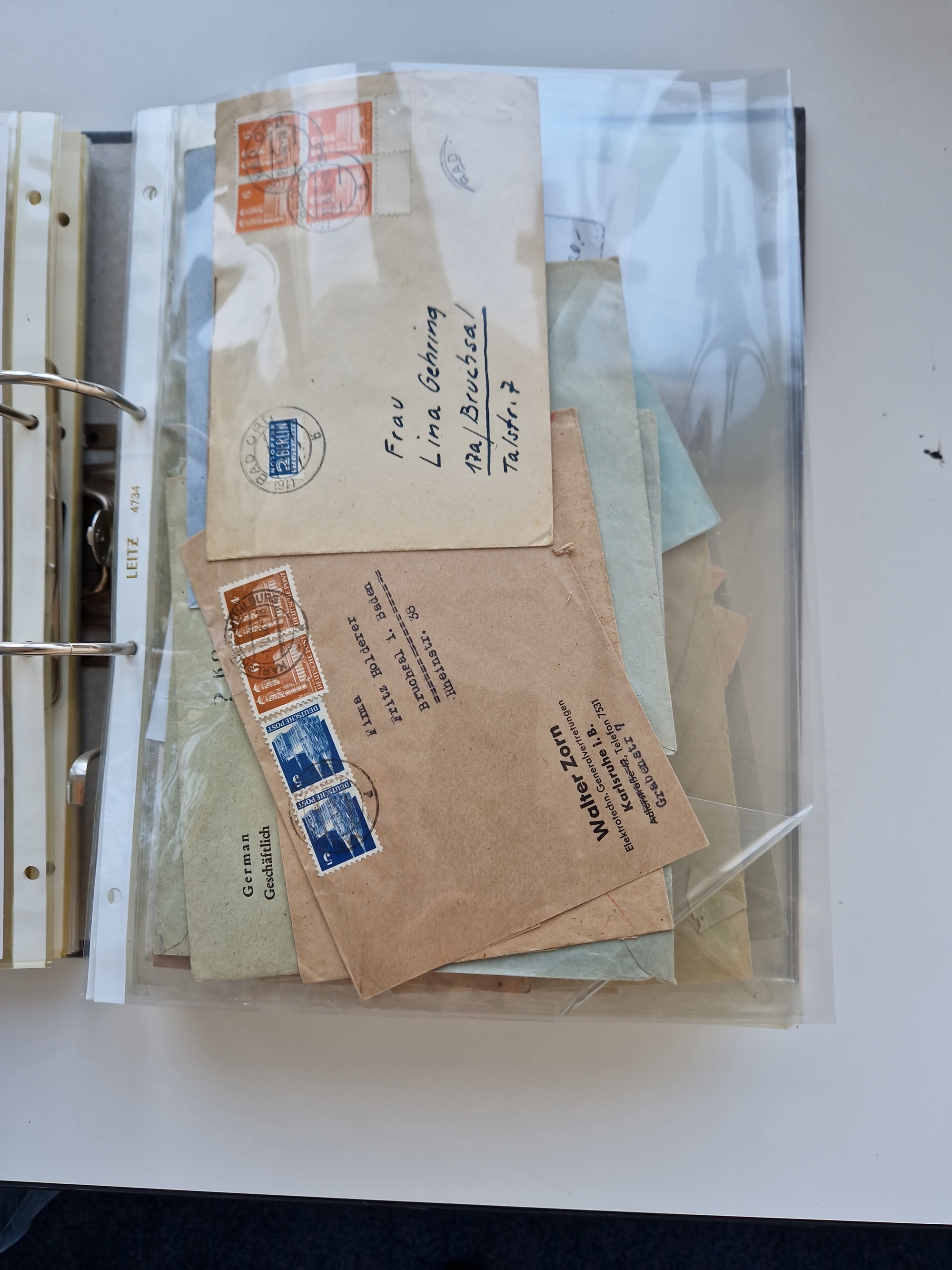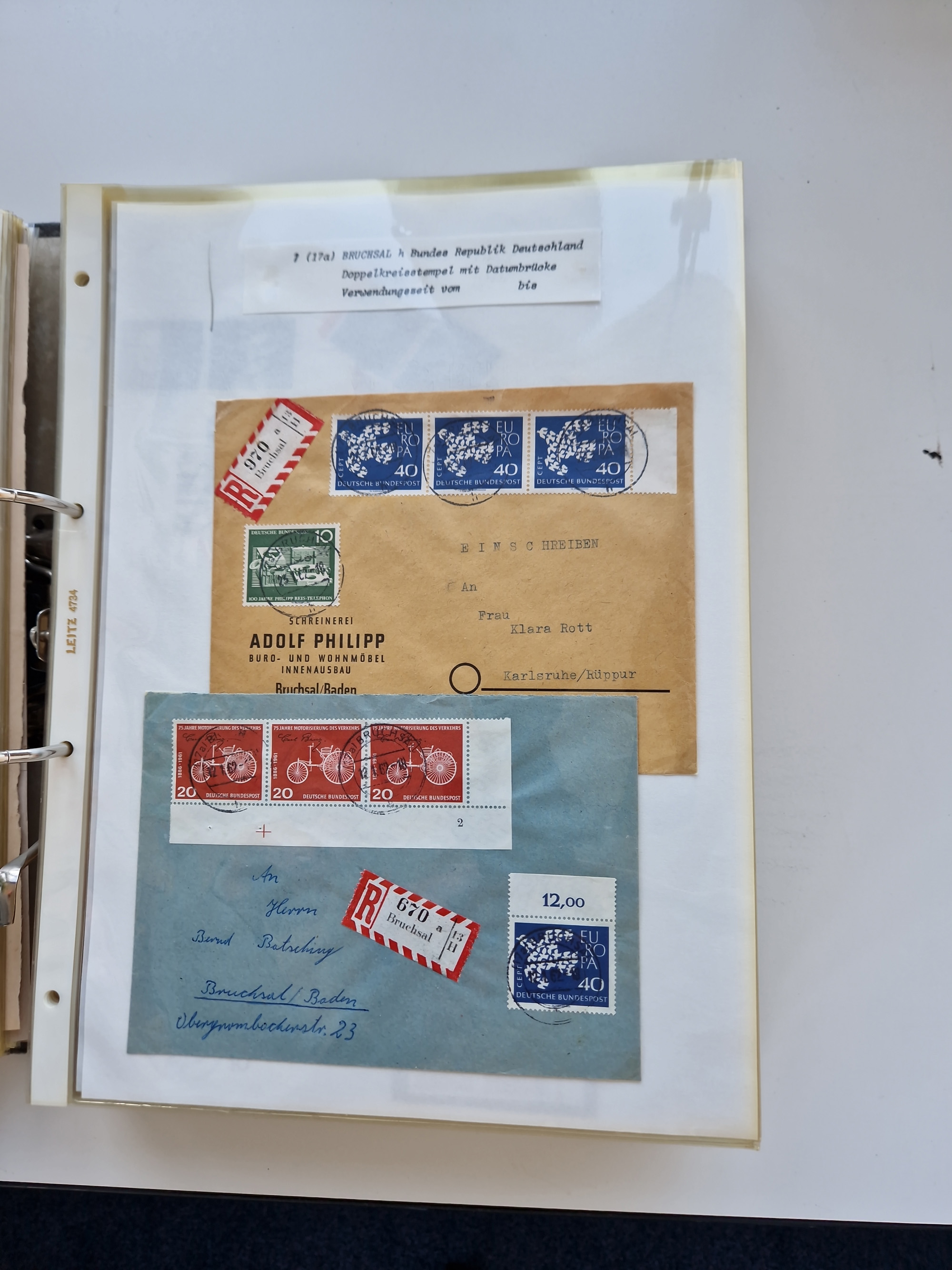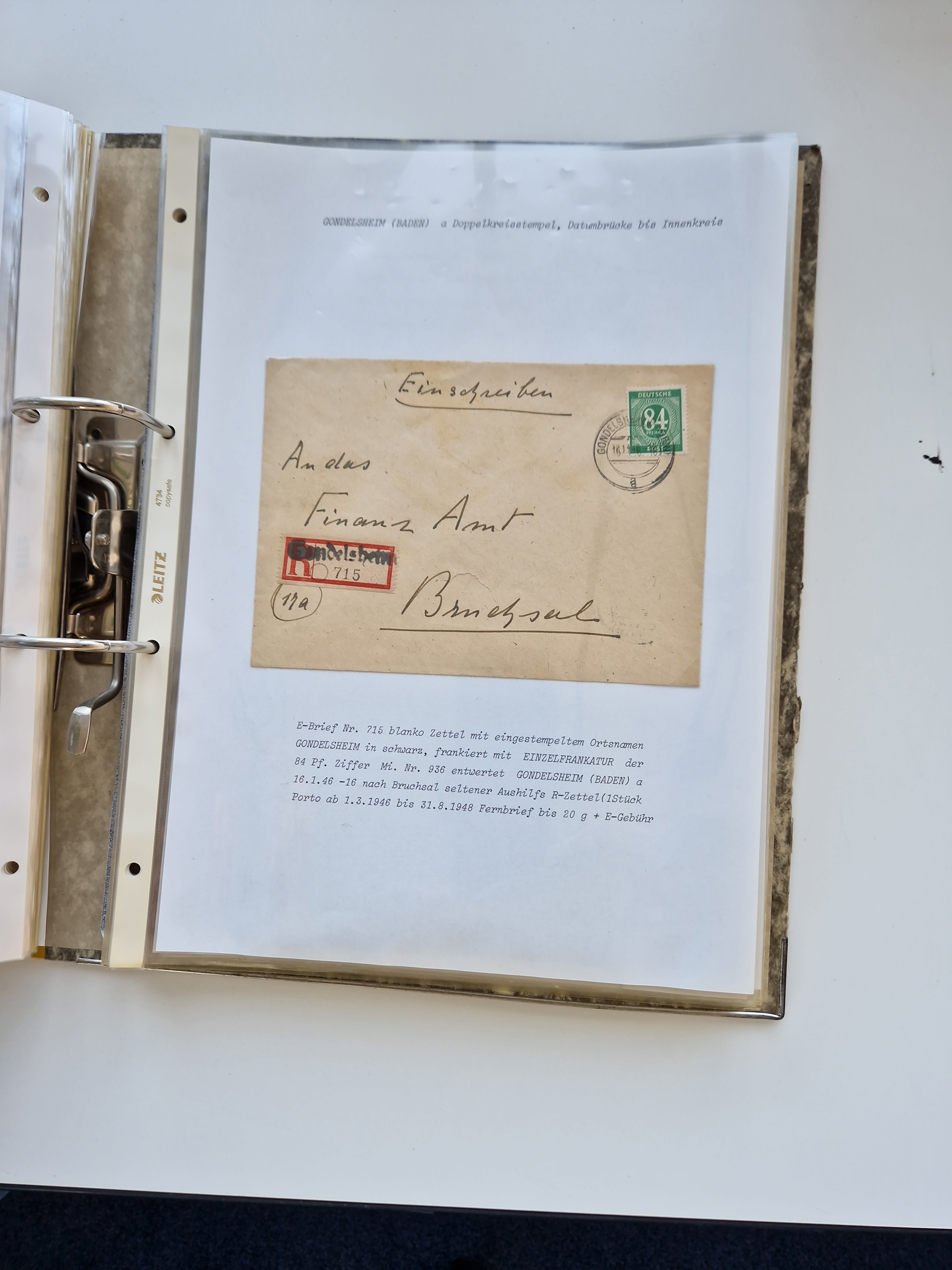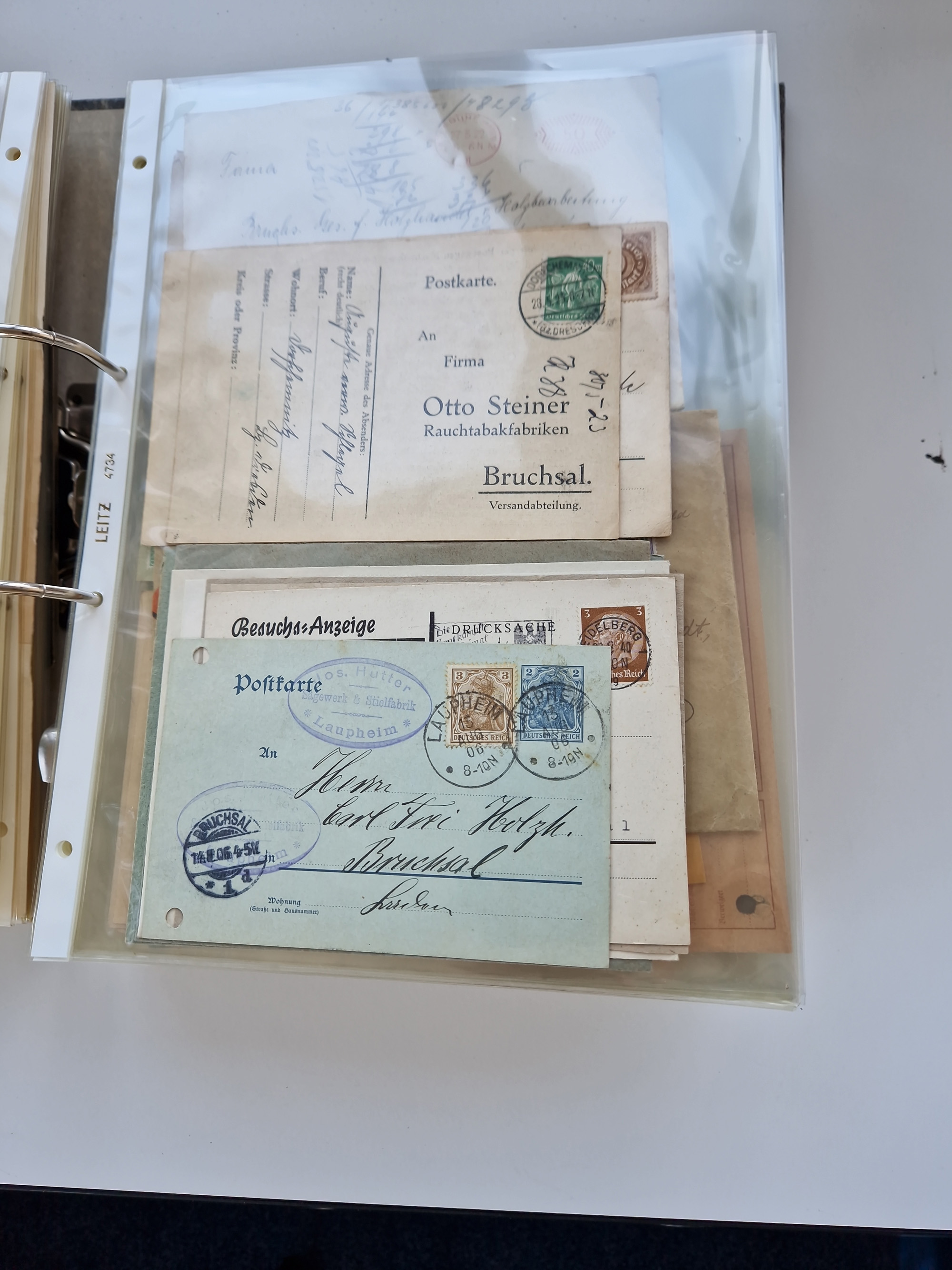 1870/2010 (ca.), Bruchsal und Umgebung, umfangreiche Heimatsammlung in 39 Ringordnern etwas unkonventionell, aber nichtsdestotrotz sehr inhaltsreich gesammelt mit zahlreichen Belegen ab Dt.Reich und auch losen Marken, u.a. Brustschilde mit Marken und besseren Frankaturen, Nachkriegszeit mit Besatzungszonen, auch eingehende Post aus Aller Welt.