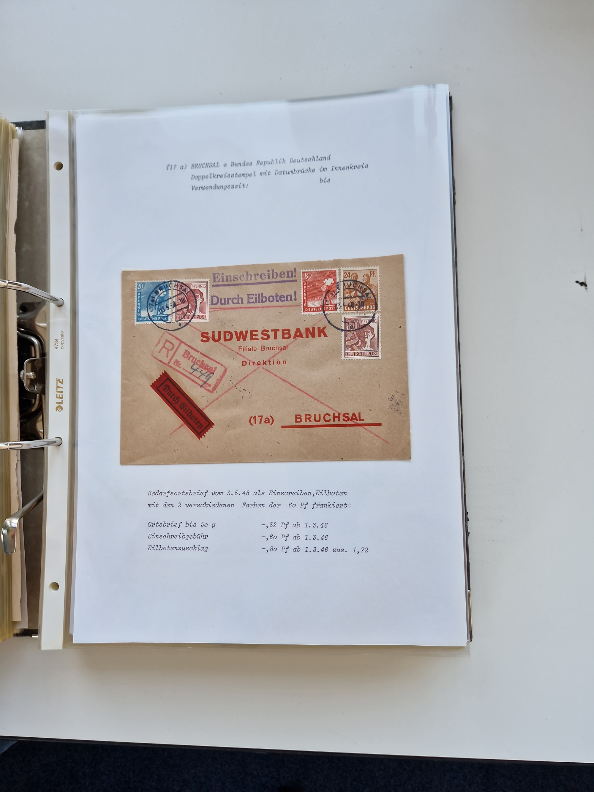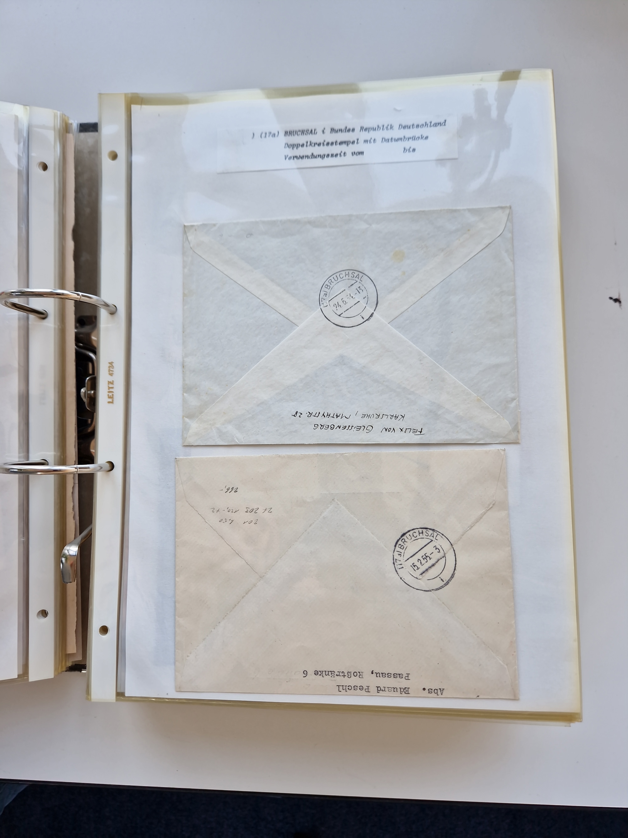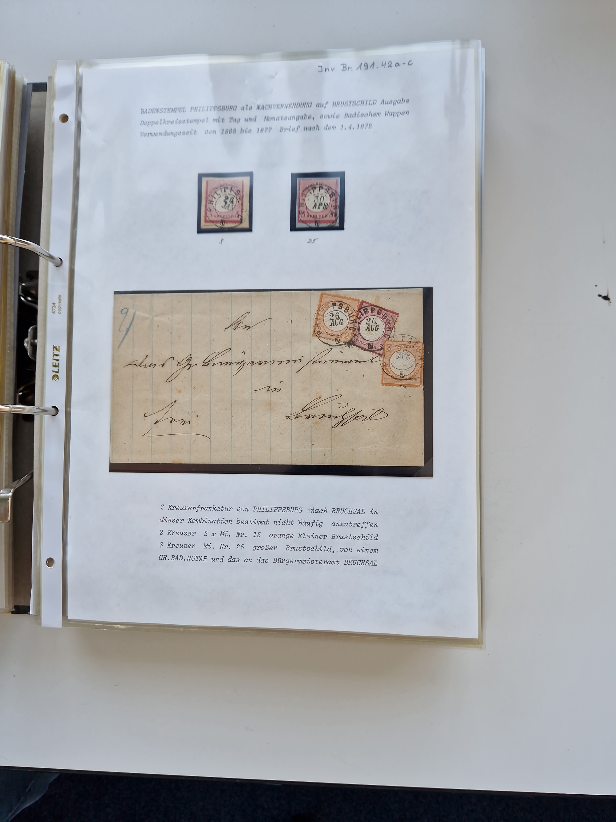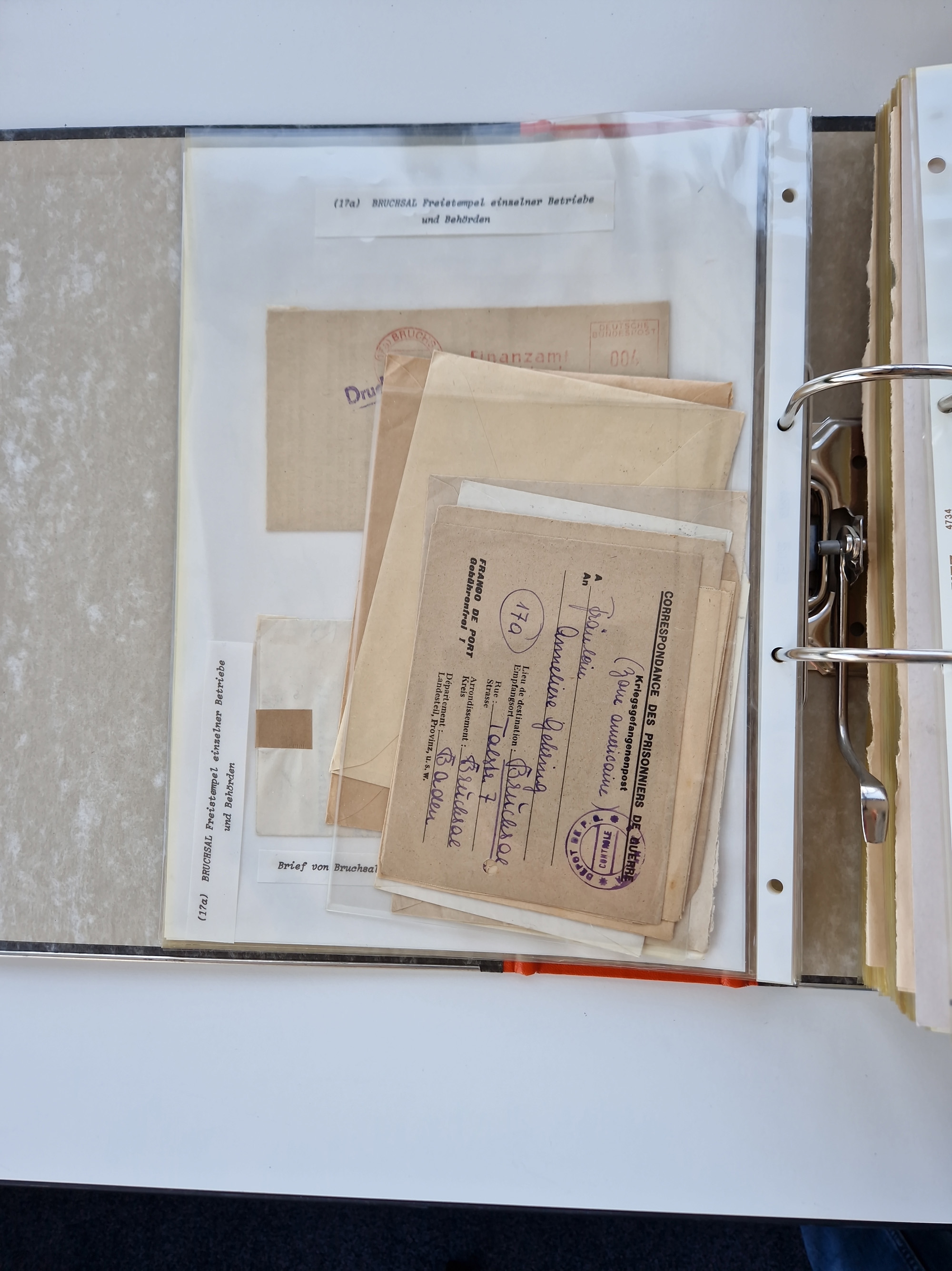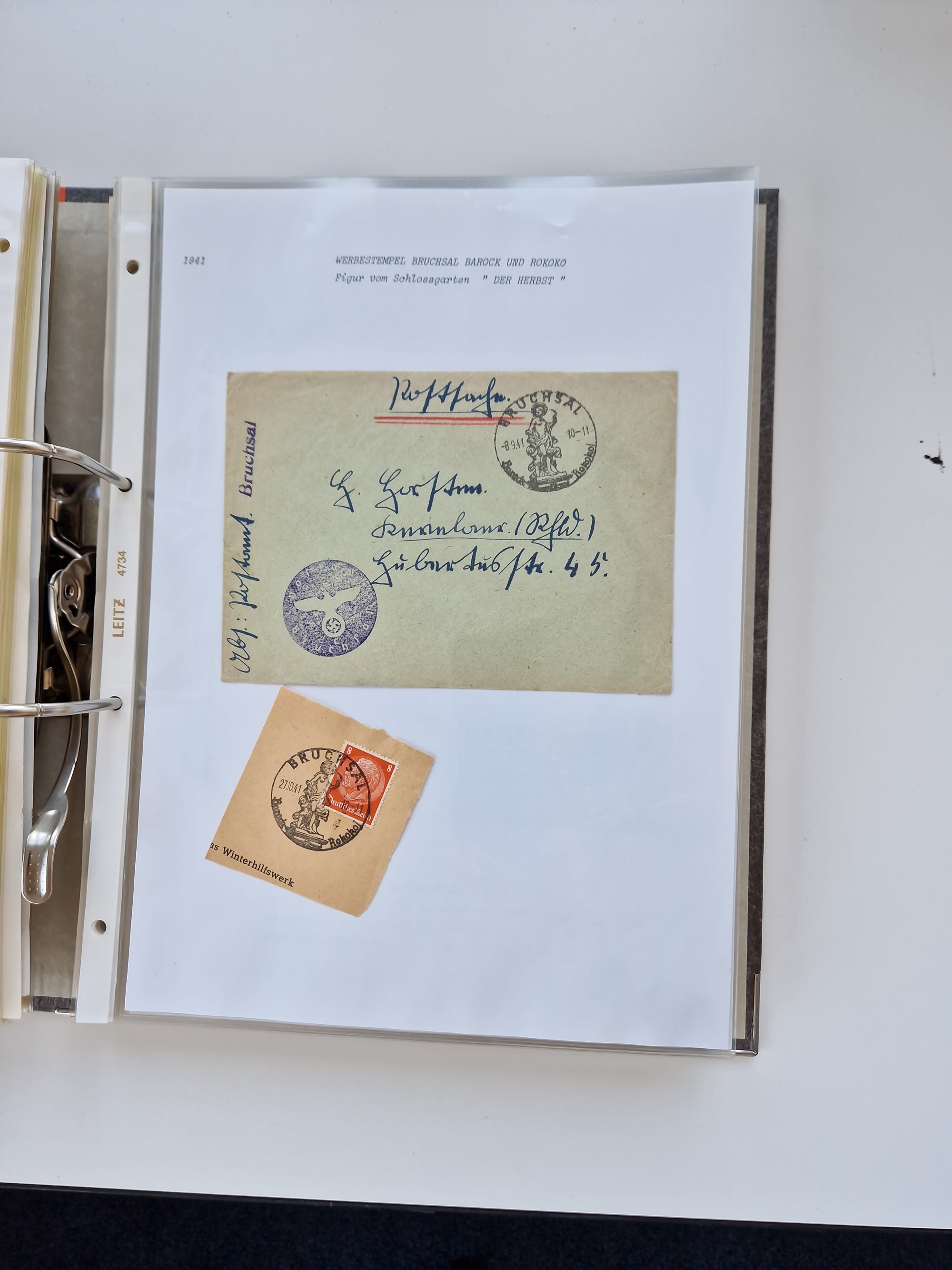 1870/2010 (ca.), Bruchsal und Umgebung, umfangreiche Heimatsammlung in 39 Ringordnern etwas unkonventionell, aber nichtsdestotrotz sehr inhaltsreich gesammelt mit zahlreichen Belegen ab Dt.Reich und auch losen Marken, u.a. Brustschilde mit Marken und besseren Frankaturen, Nachkriegszeit mit Besatzungszonen, auch eingehende Post aus Aller Welt.