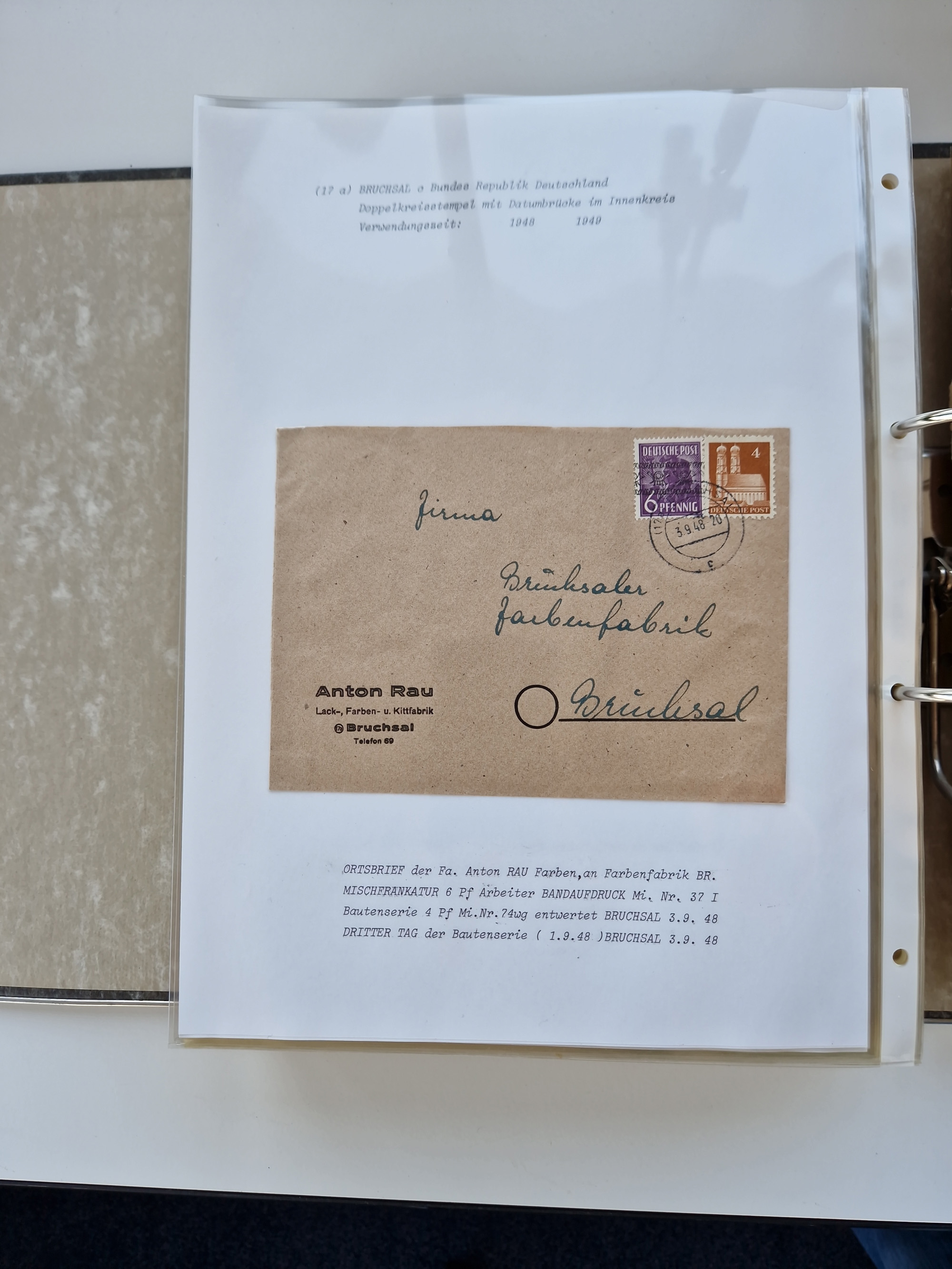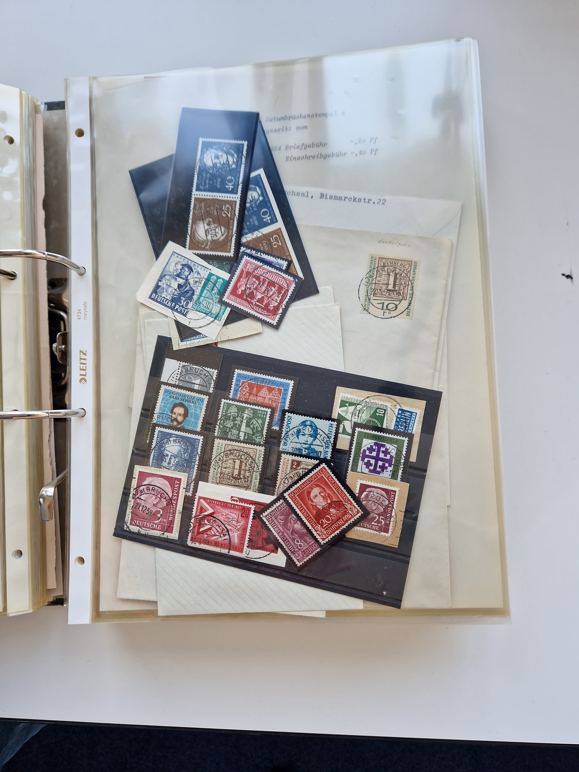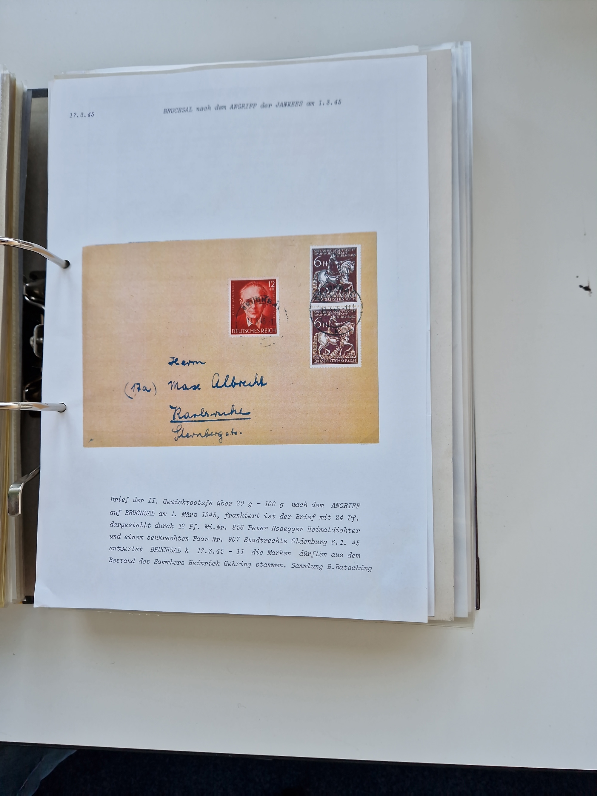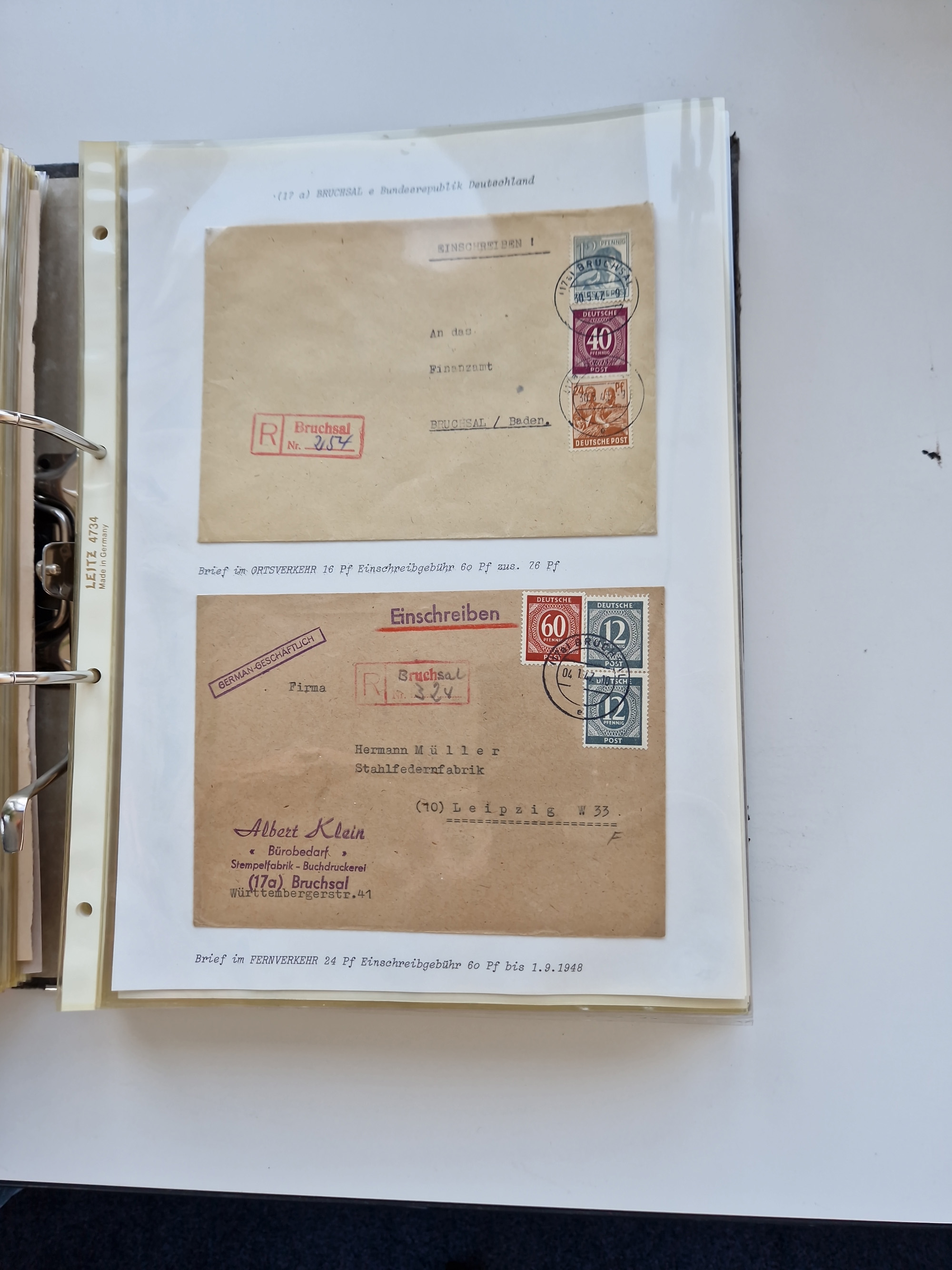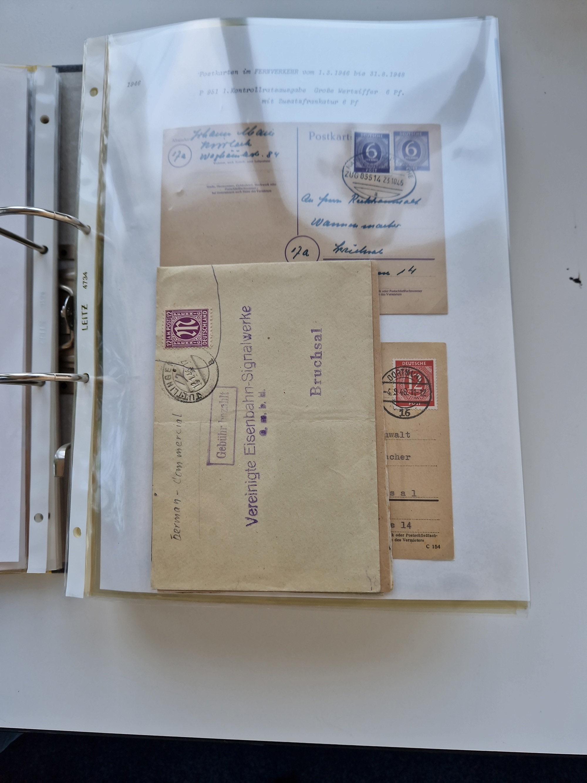 1870/2010 (ca.), Bruchsal und Umgebung, umfangreiche Heimatsammlung in 39 Ringordnern etwas unkonventionell, aber nichtsdestotrotz sehr inhaltsreich gesammelt mit zahlreichen Belegen ab Dt.Reich und auch losen Marken, u.a. Brustschilde mit Marken und besseren Frankaturen, Nachkriegszeit mit Besatzungszonen, auch eingehende Post aus Aller Welt.