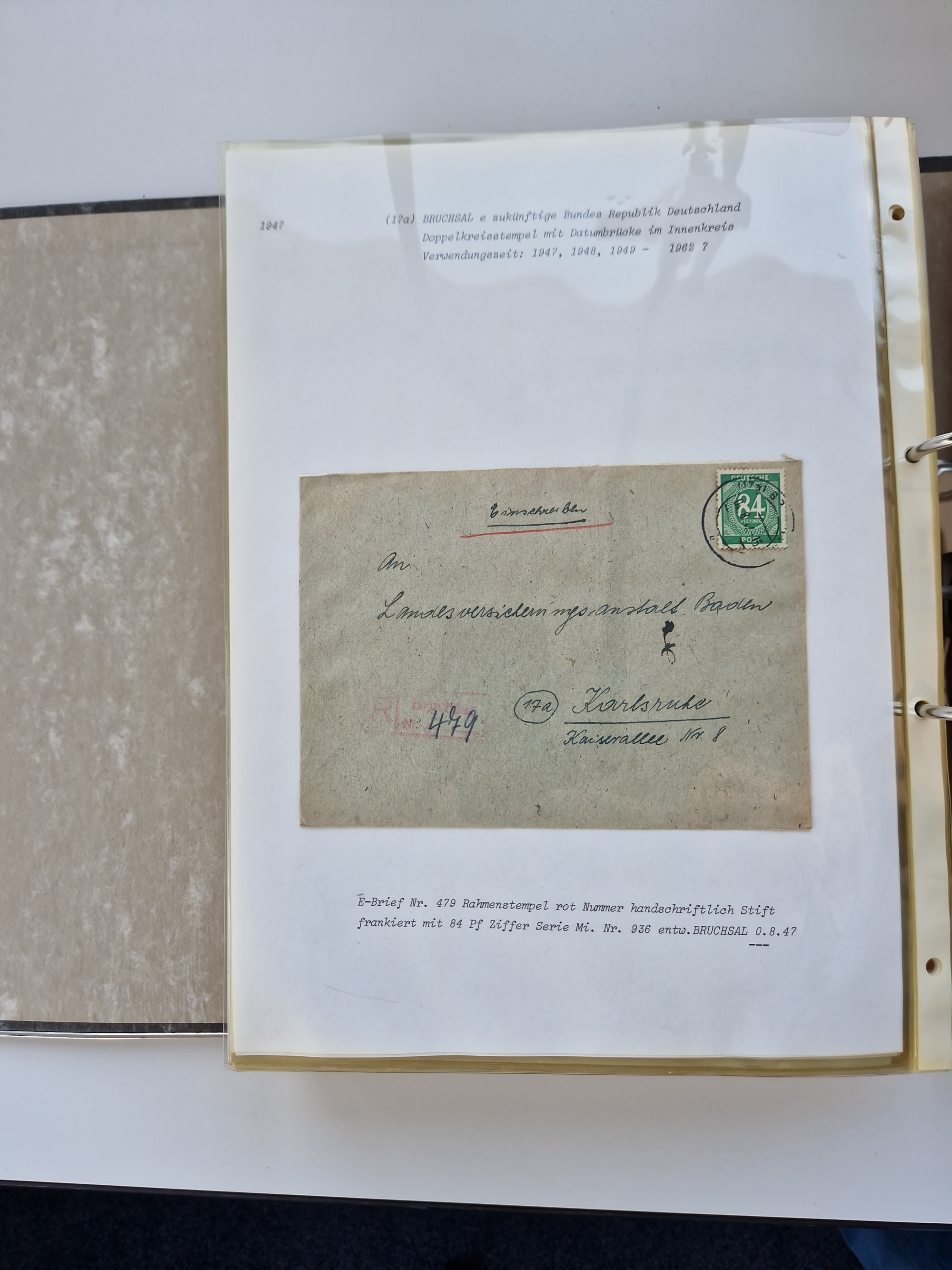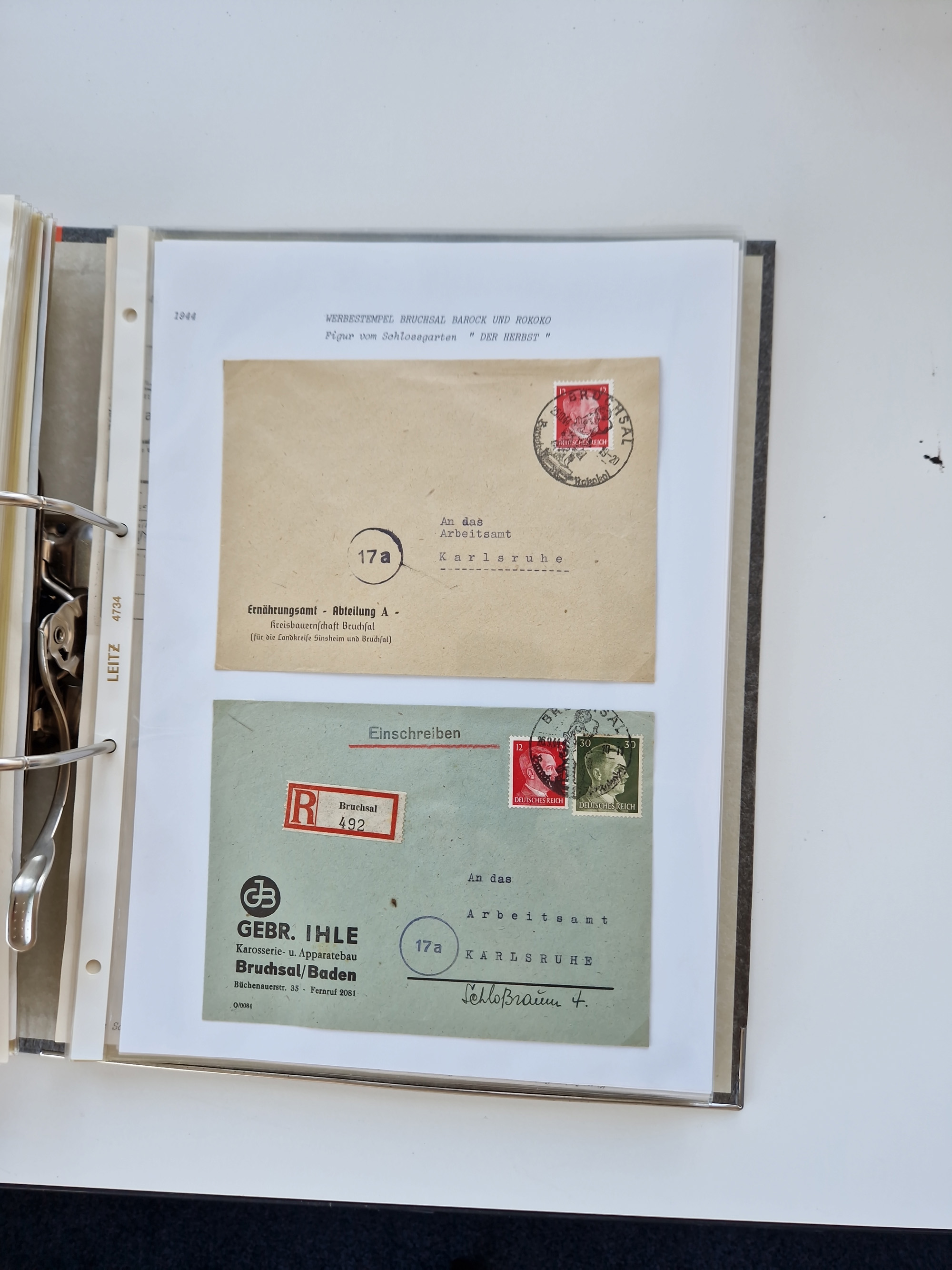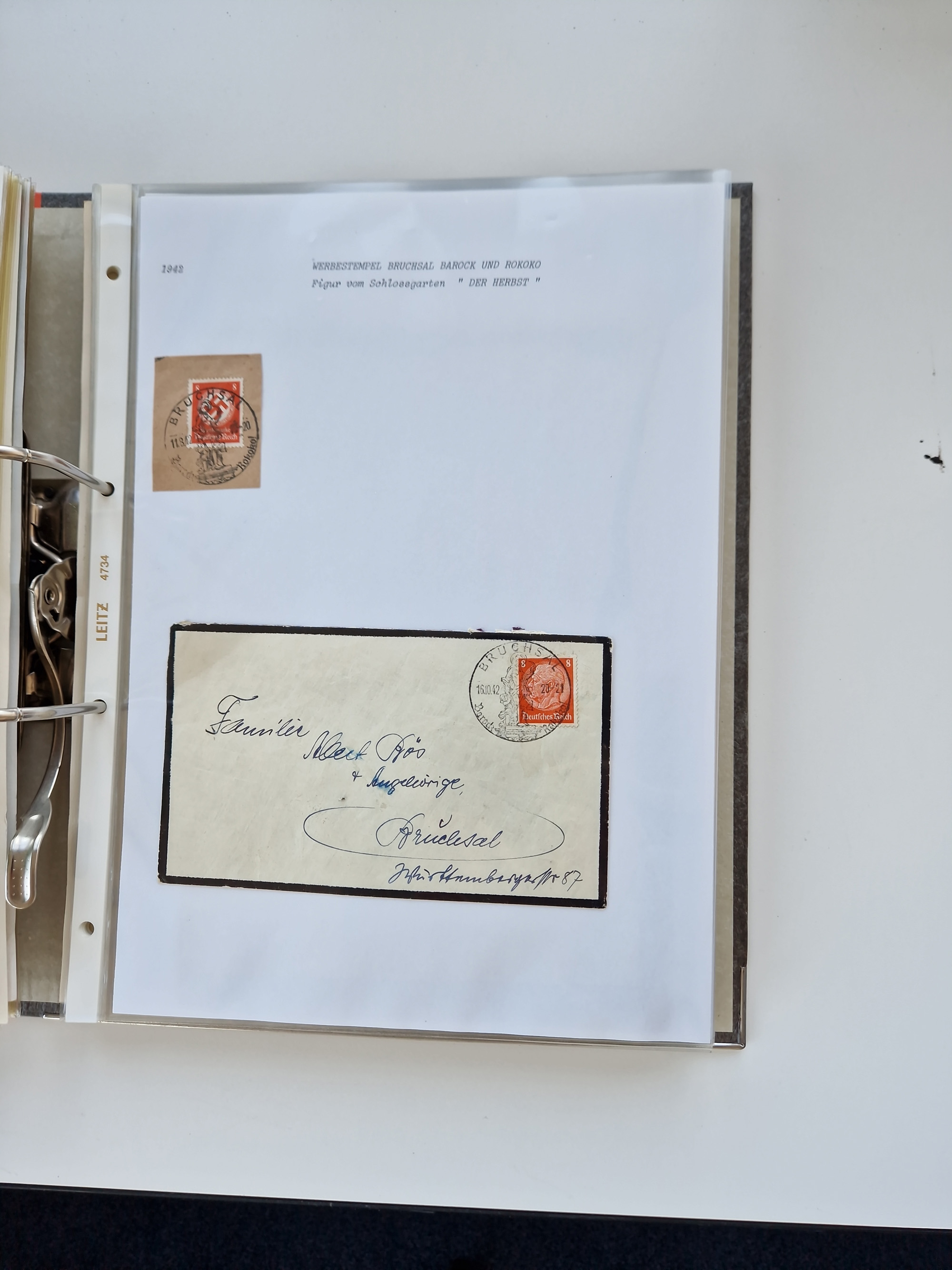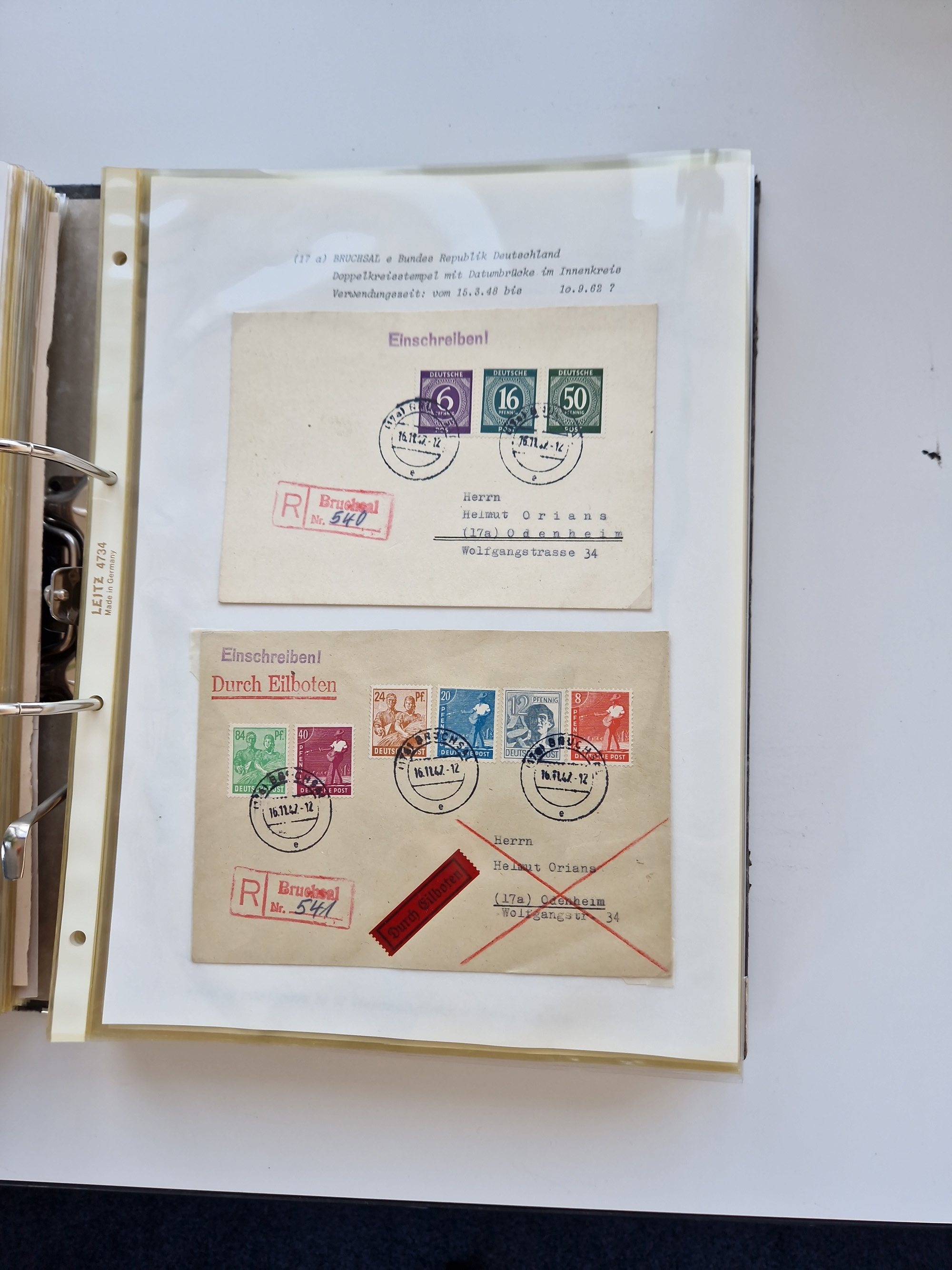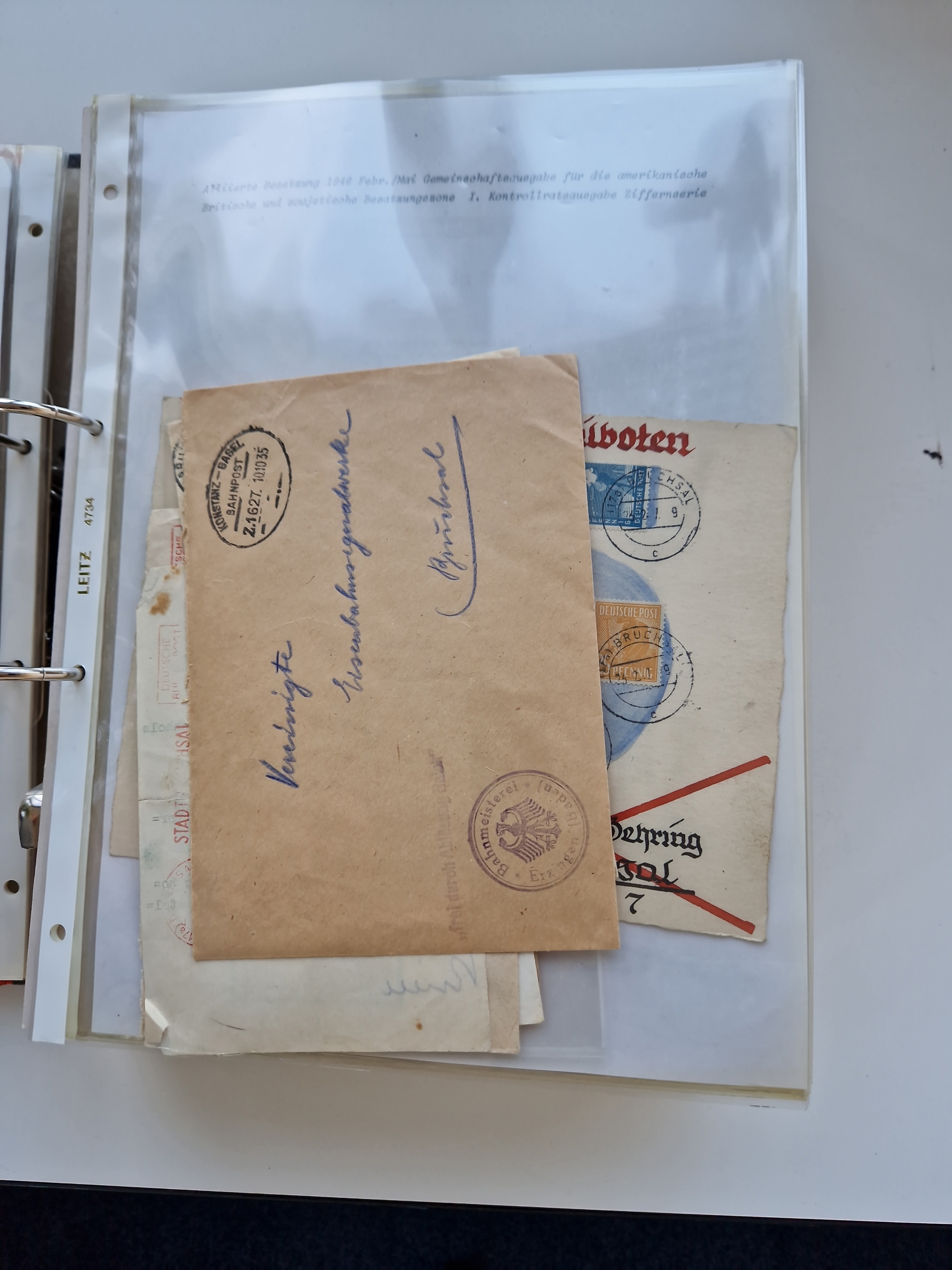 1870/2010 (ca.), Bruchsal und Umgebung, umfangreiche Heimatsammlung in 39 Ringordnern etwas unkonventionell, aber nichtsdestotrotz sehr inhaltsreich gesammelt mit zahlreichen Belegen ab Dt.Reich und auch losen Marken, u.a. Brustschilde mit Marken und besseren Frankaturen, Nachkriegszeit mit Besatzungszonen, auch eingehende Post aus Aller Welt.