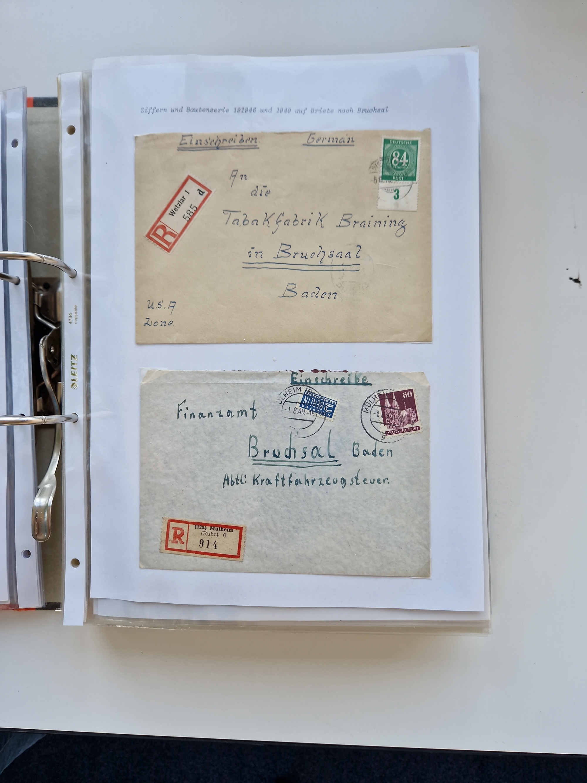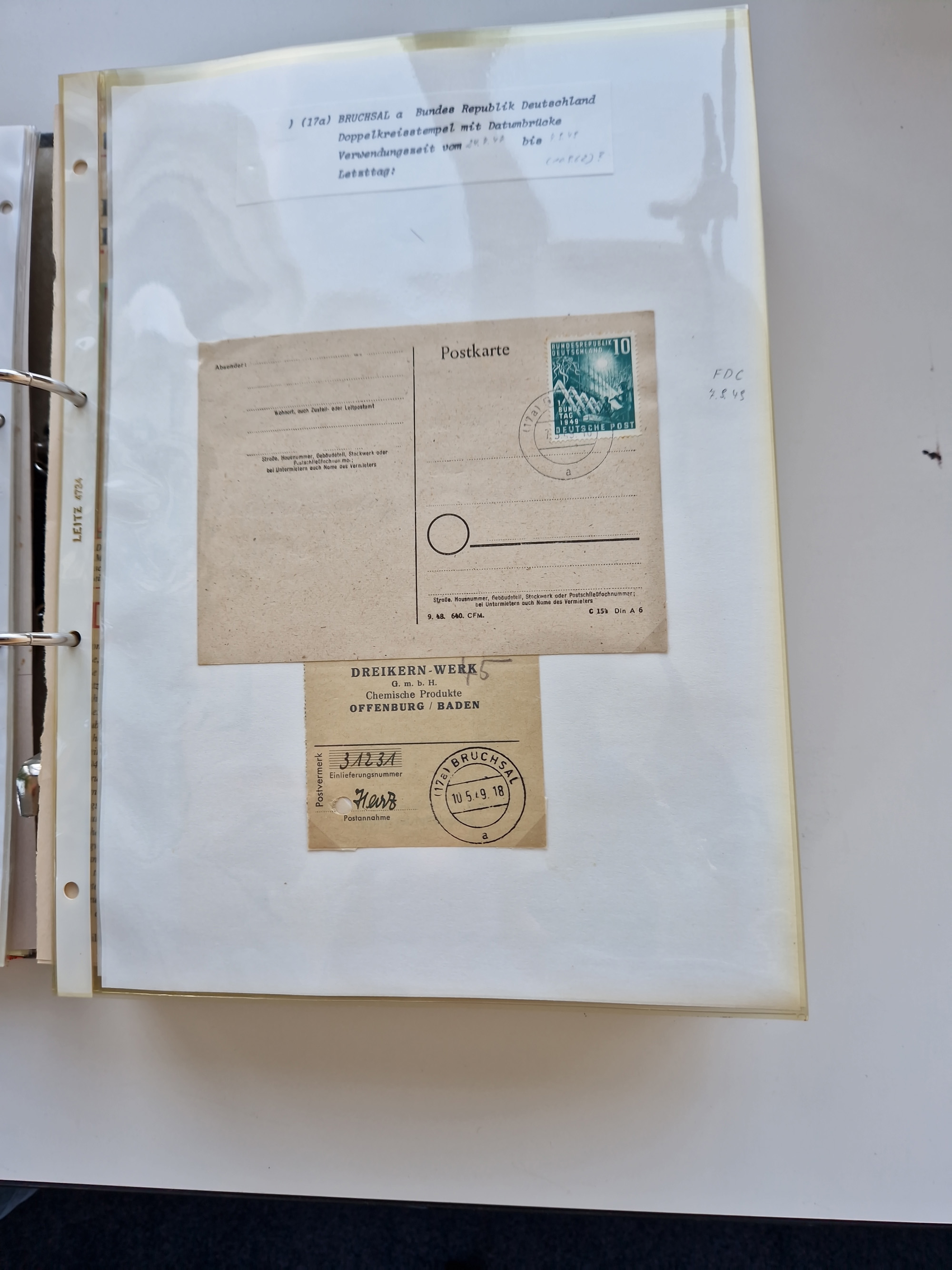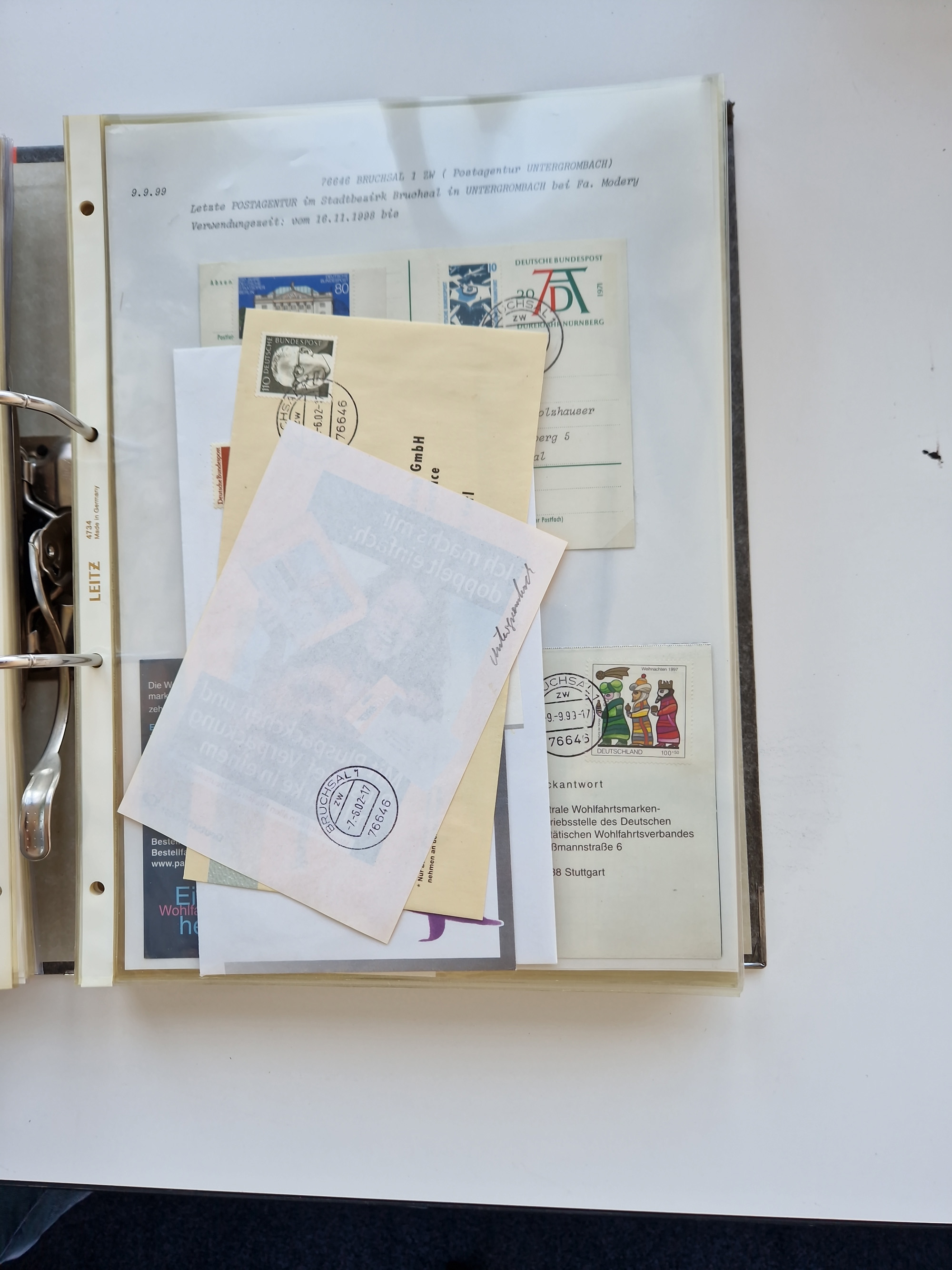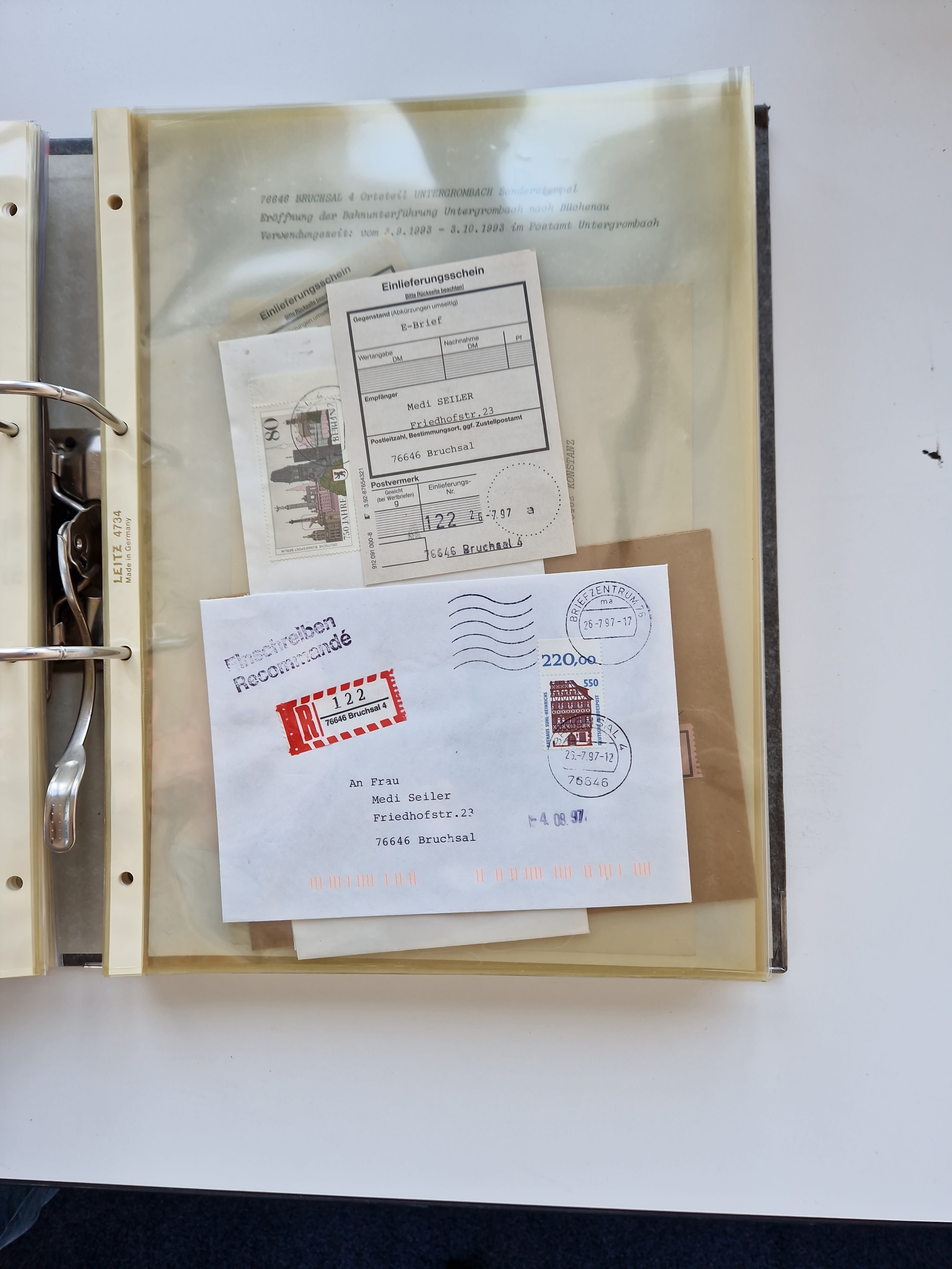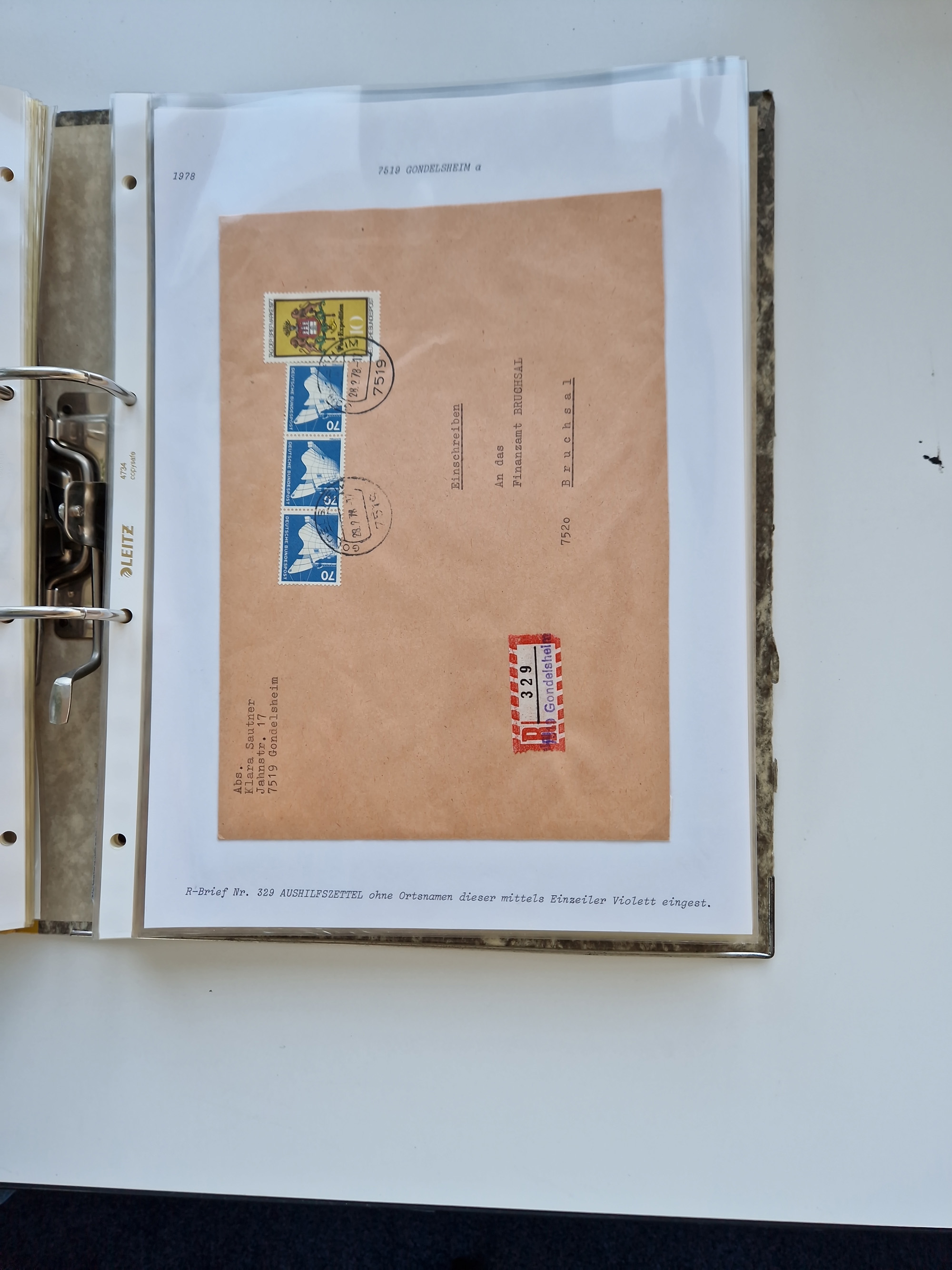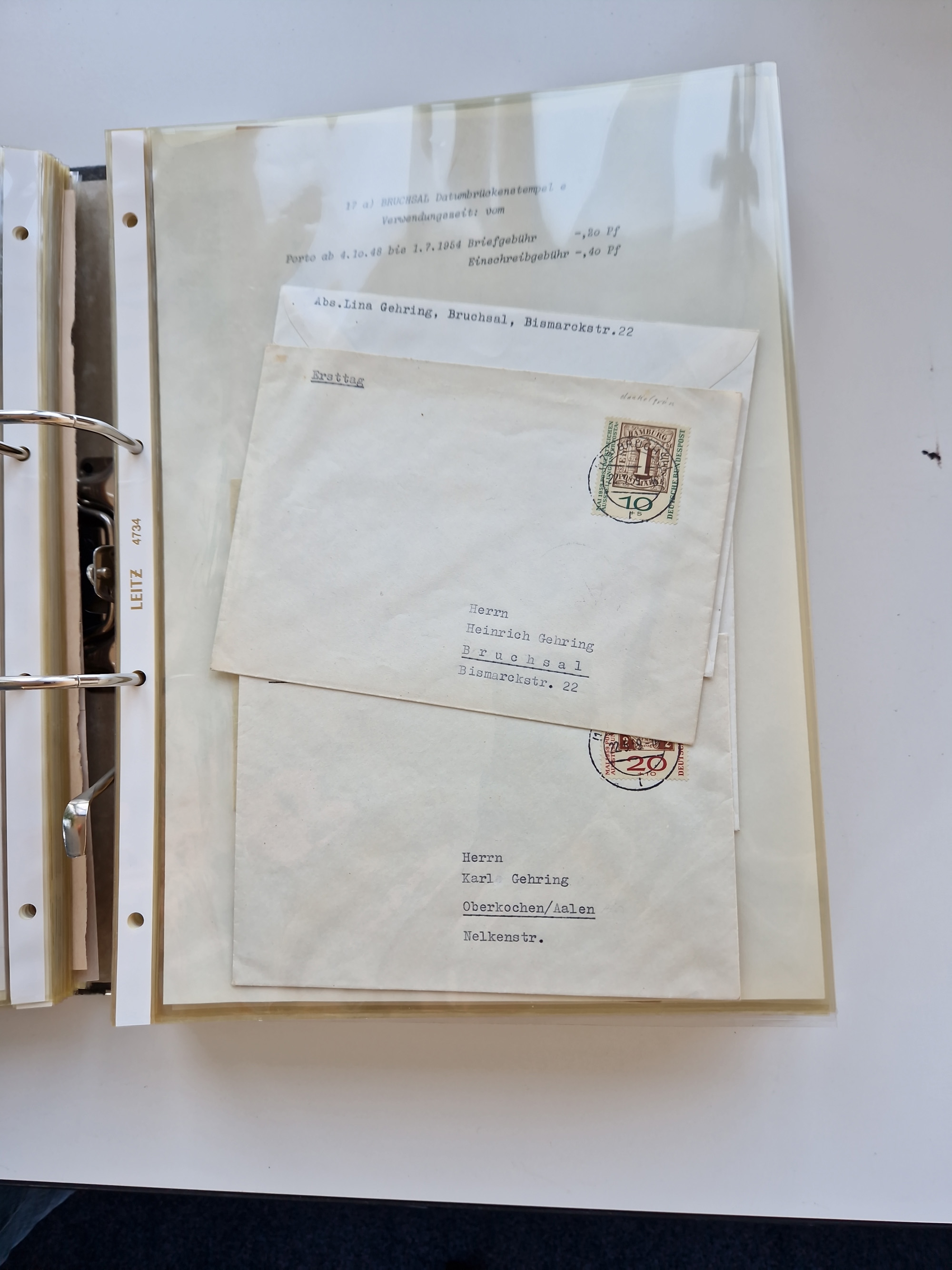 1870/2010 (ca.), Bruchsal und Umgebung, umfangreiche Heimatsammlung in 39 Ringordnern etwas unkonventionell, aber nichtsdestotrotz sehr inhaltsreich gesammelt mit zahlreichen Belegen ab Dt.Reich und auch losen Marken, u.a. Brustschilde mit Marken und besseren Frankaturen, Nachkriegszeit mit Besatzungszonen, auch eingehende Post aus Aller Welt.