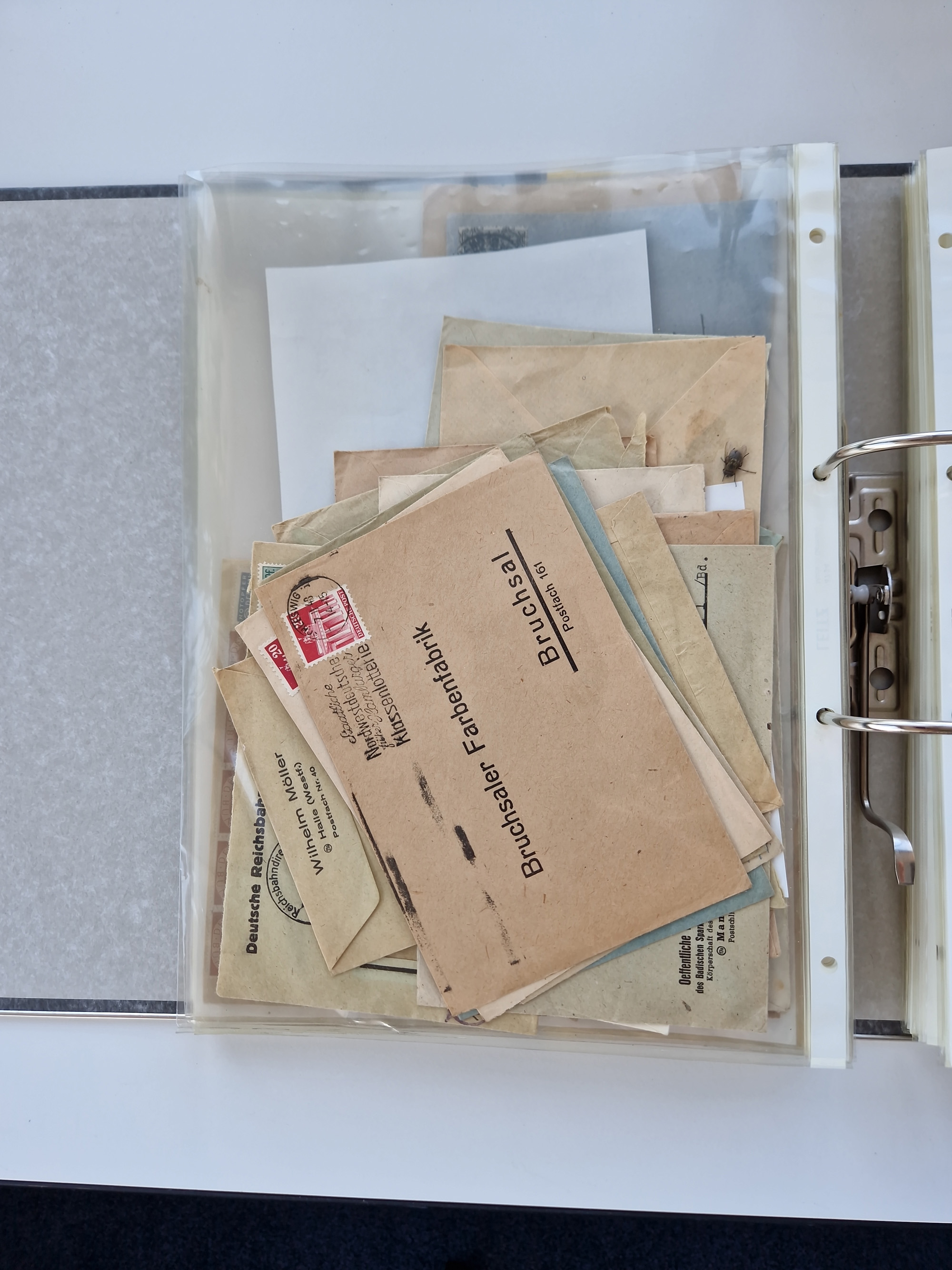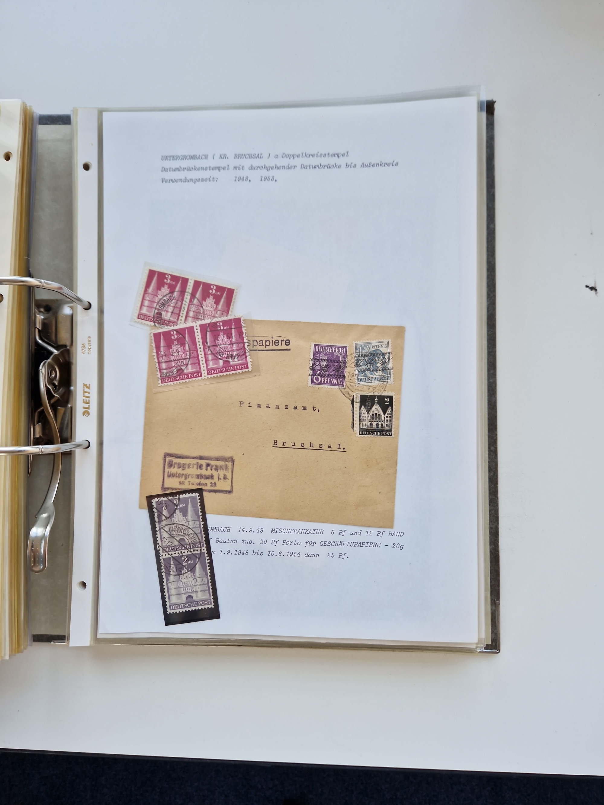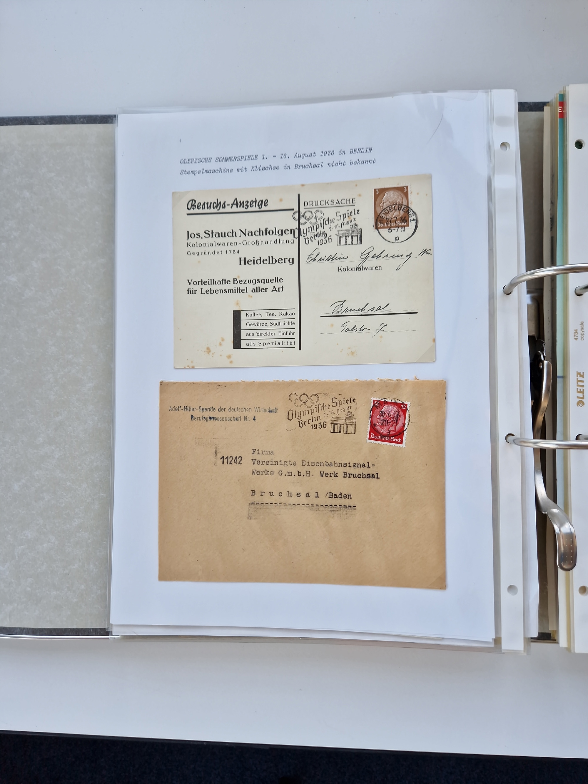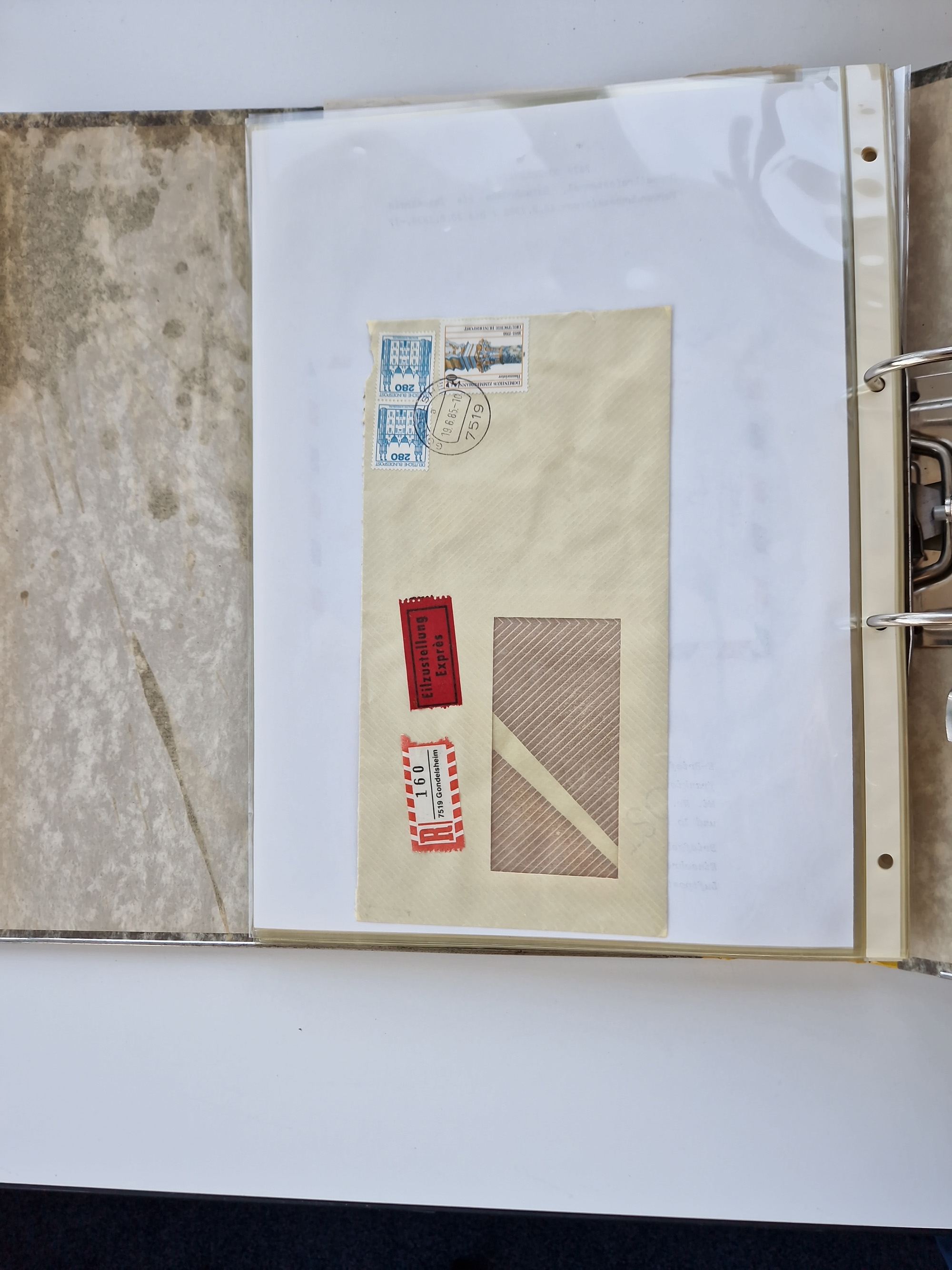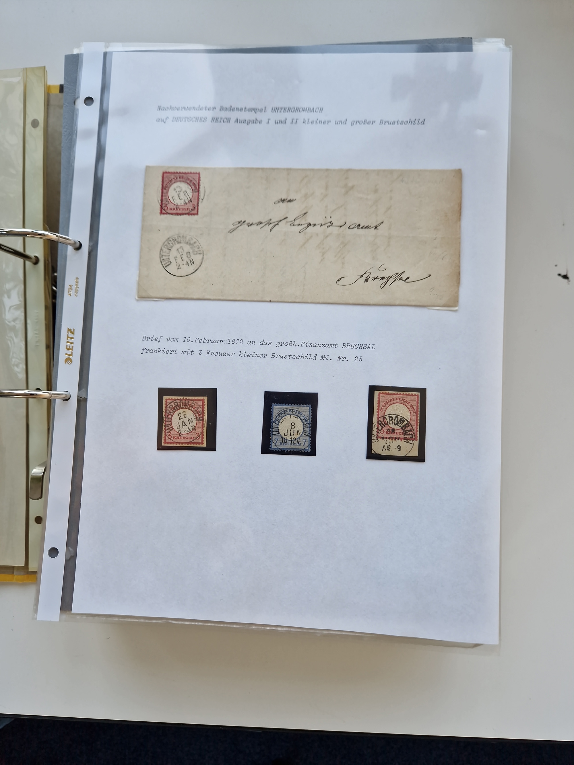 1870/2010 (ca.), Bruchsal und Umgebung, umfangreiche Heimatsammlung in 39 Ringordnern etwas unkonventionell, aber nichtsdestotrotz sehr inhaltsreich gesammelt mit zahlreichen Belegen ab Dt.Reich und auch losen Marken, u.a. Brustschilde mit Marken und besseren Frankaturen, Nachkriegszeit mit Besatzungszonen, auch eingehende Post aus Aller Welt.