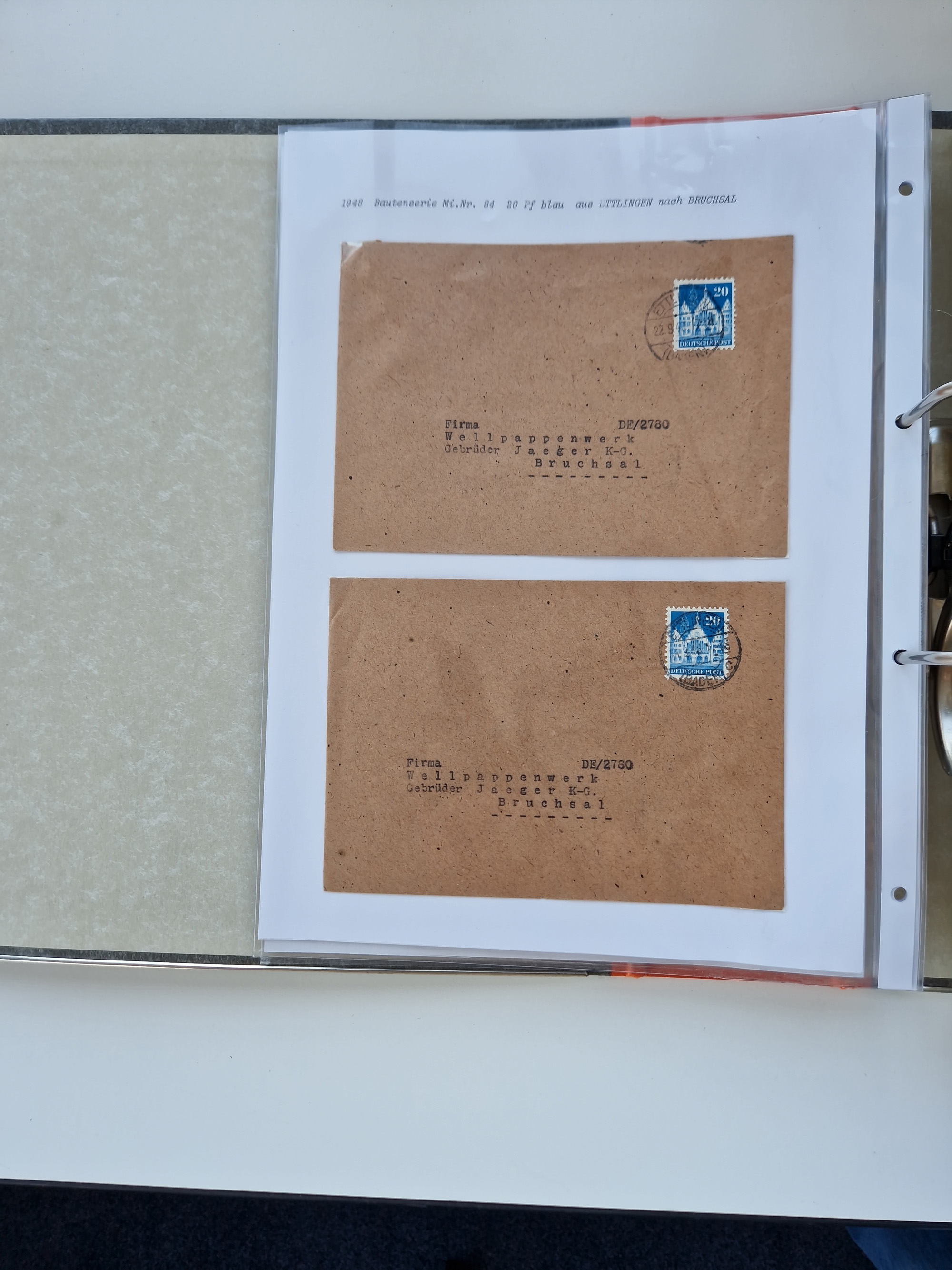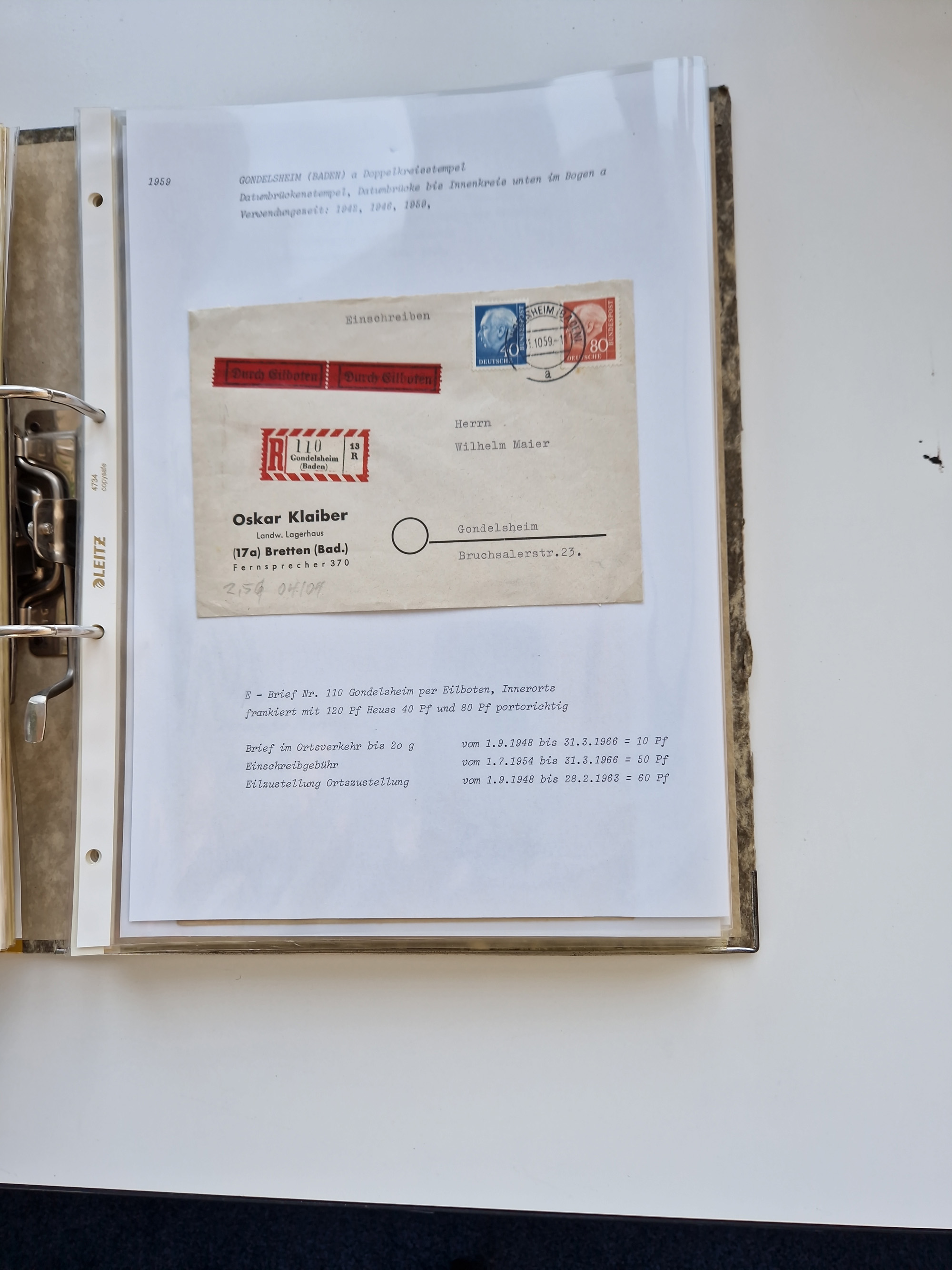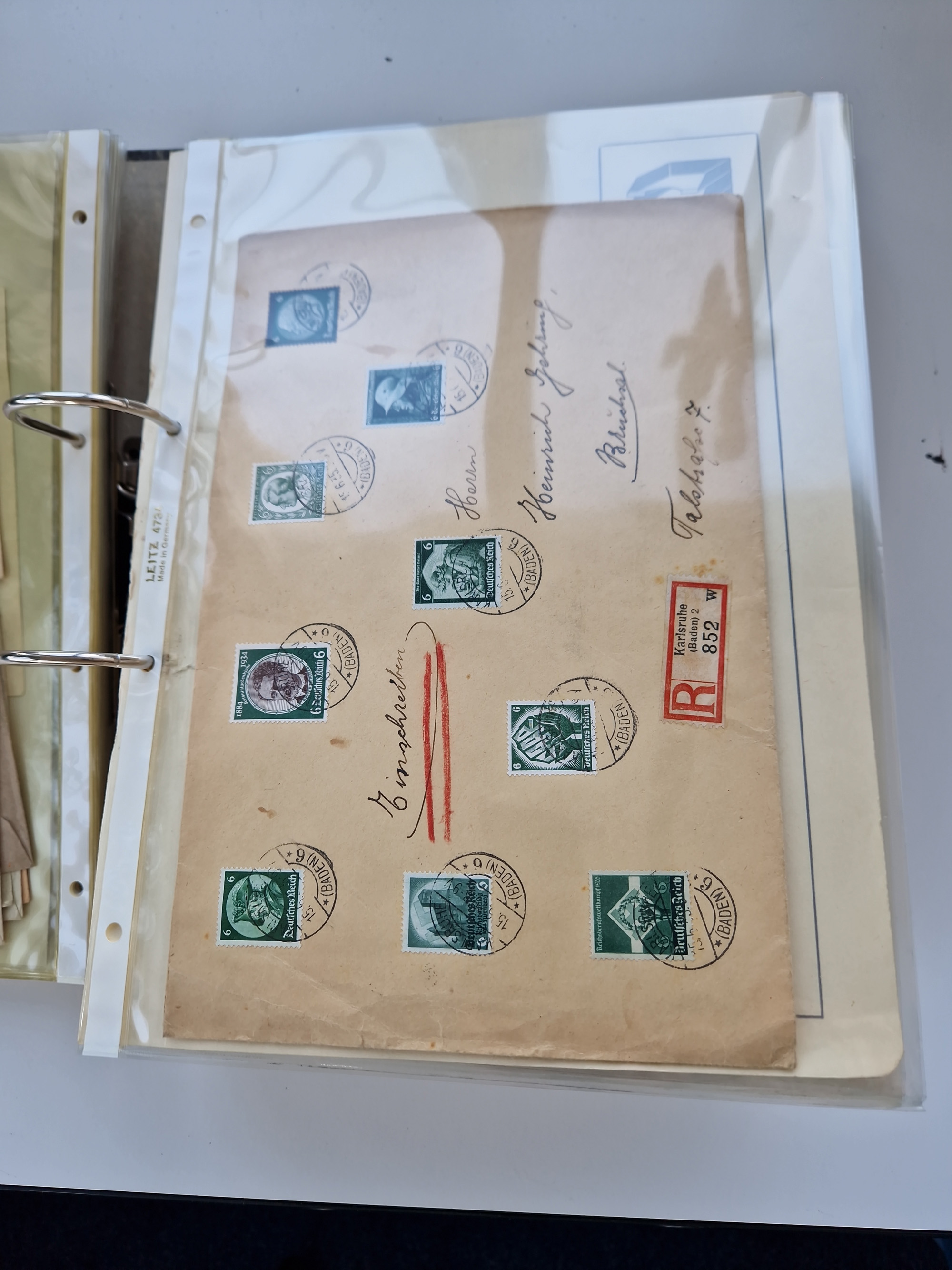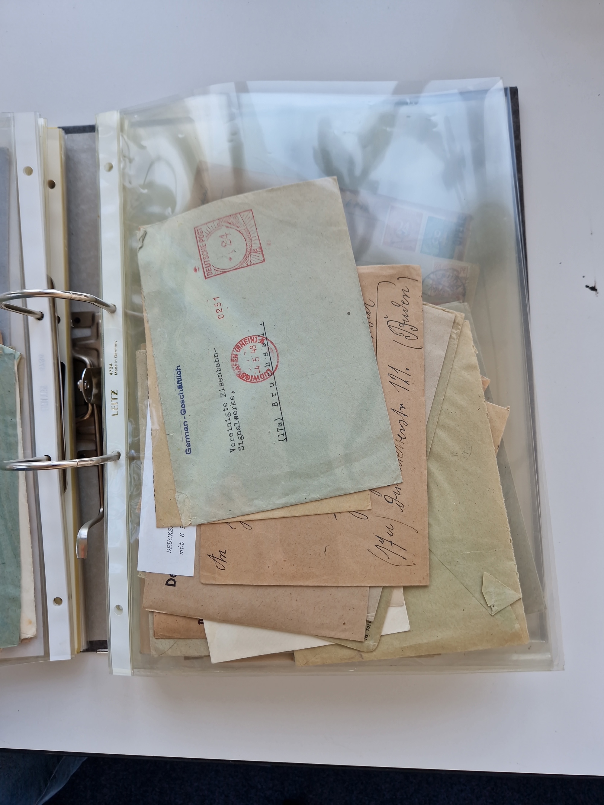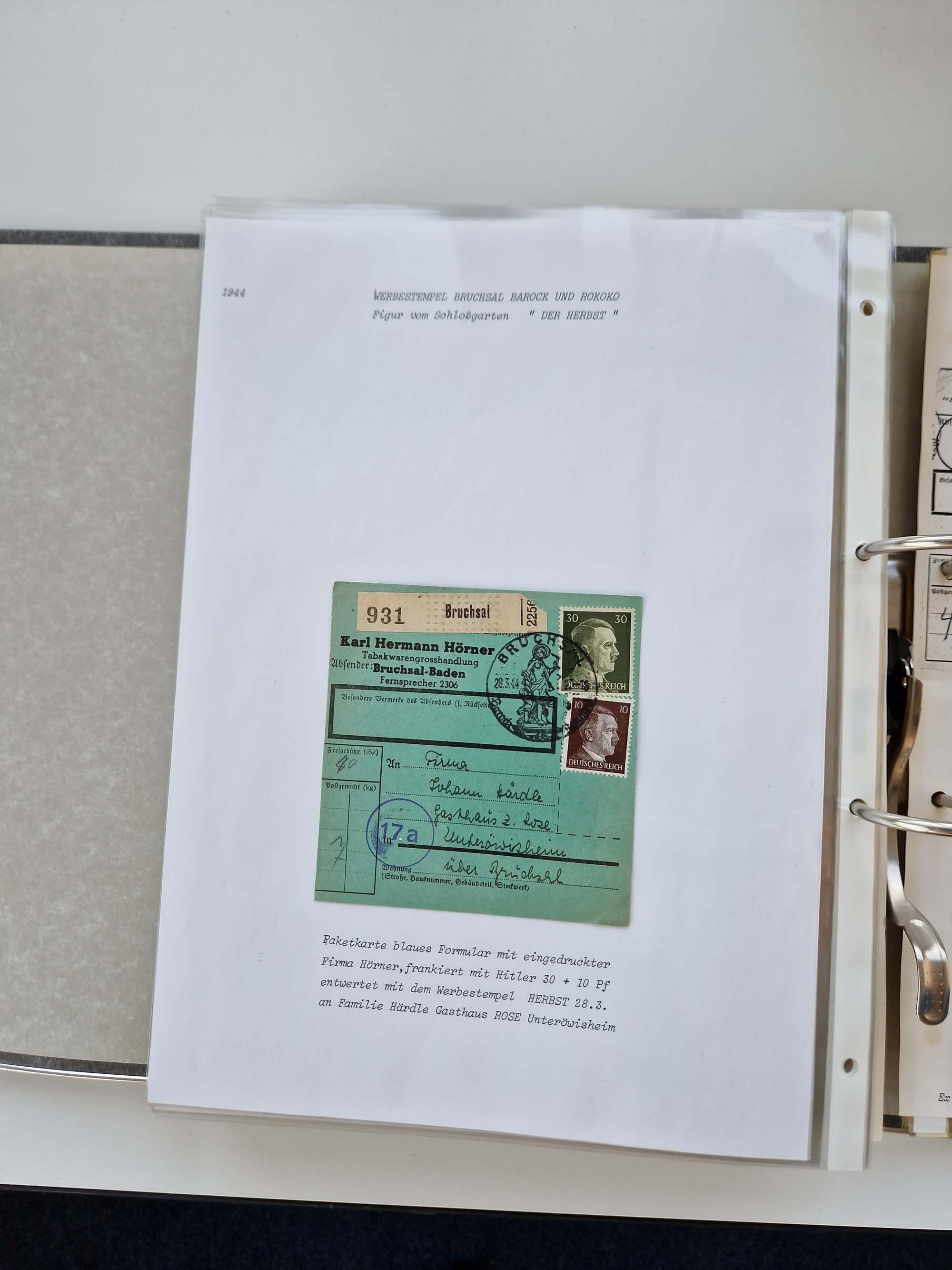 1870/2010 (ca.), Bruchsal und Umgebung, umfangreiche Heimatsammlung in 39 Ringordnern etwas unkonventionell, aber nichtsdestotrotz sehr inhaltsreich gesammelt mit zahlreichen Belegen ab Dt.Reich und auch losen Marken, u.a. Brustschilde mit Marken und besseren Frankaturen, Nachkriegszeit mit Besatzungszonen, auch eingehende Post aus Aller Welt.
