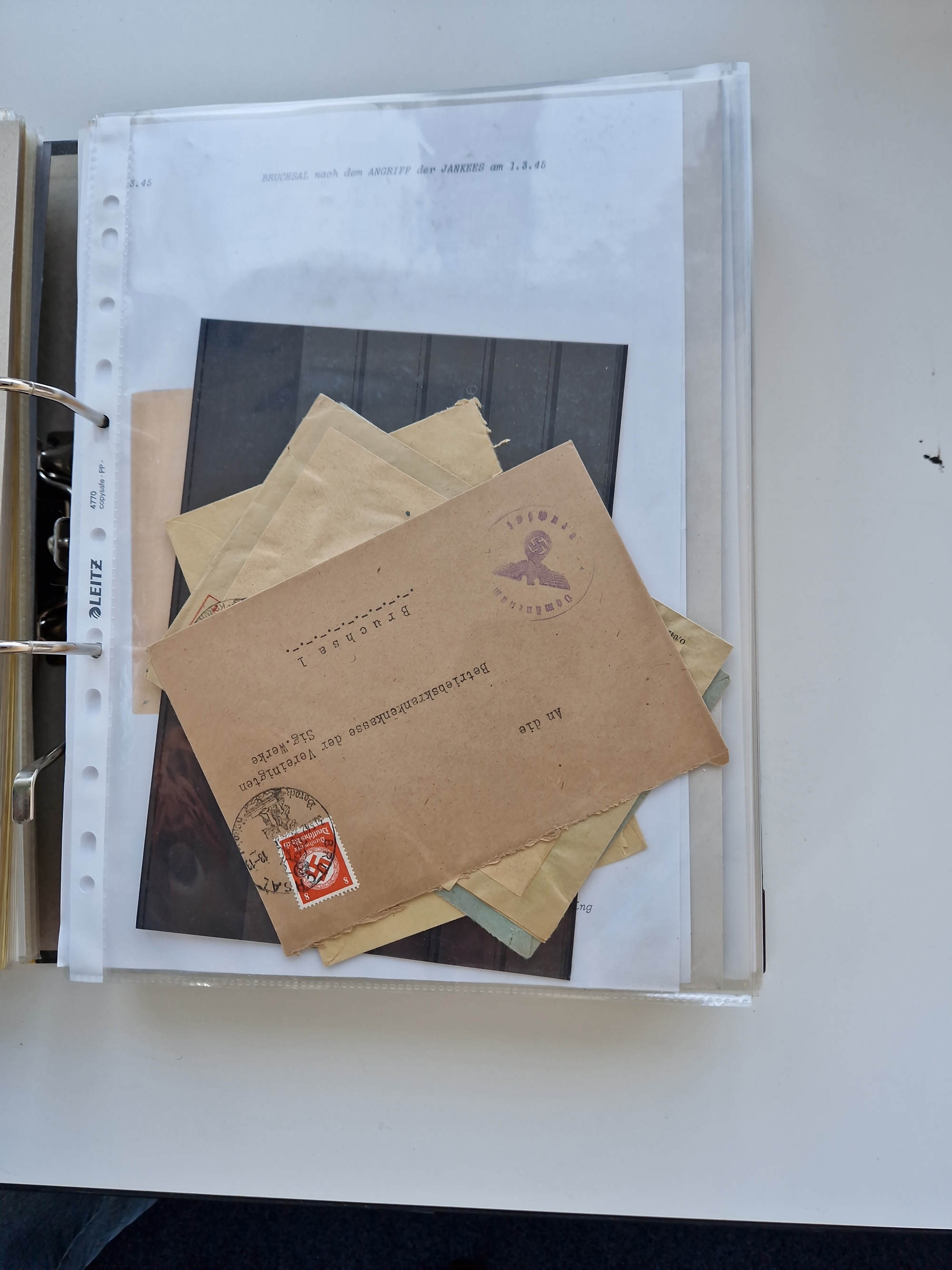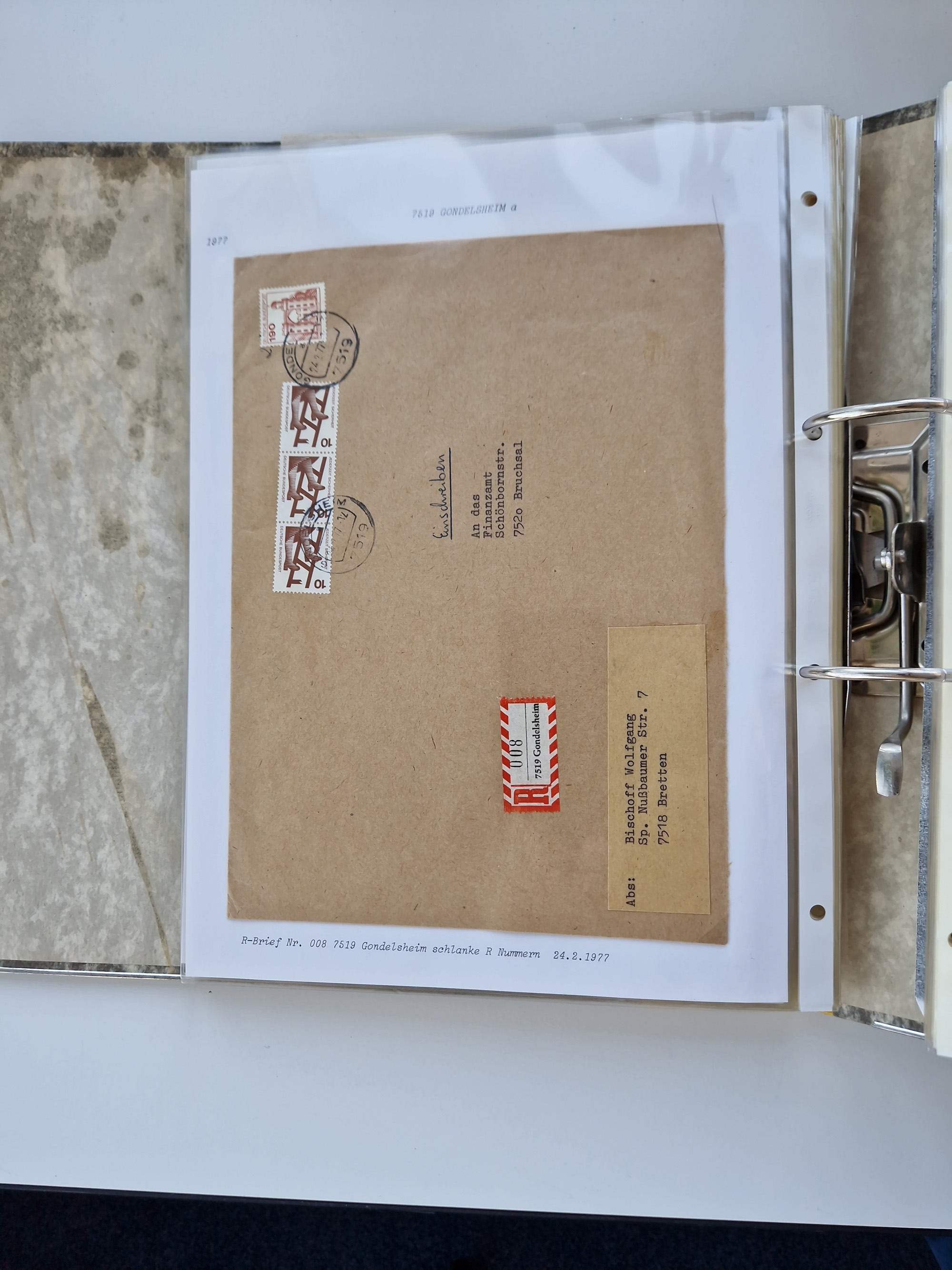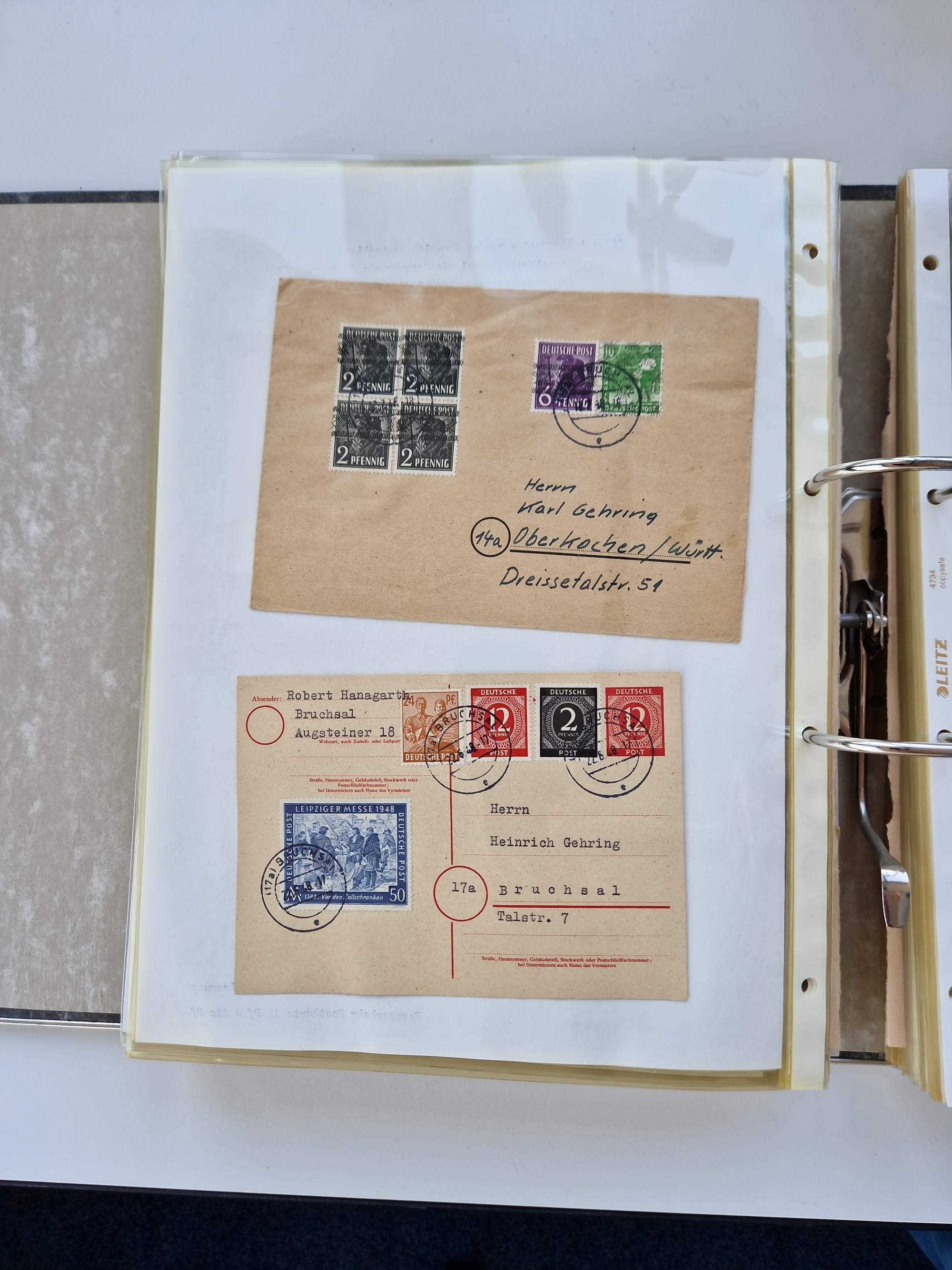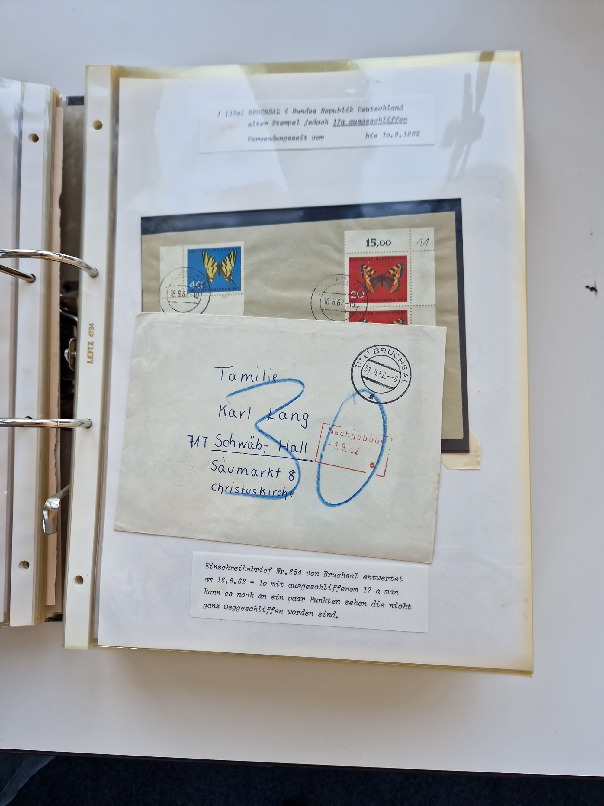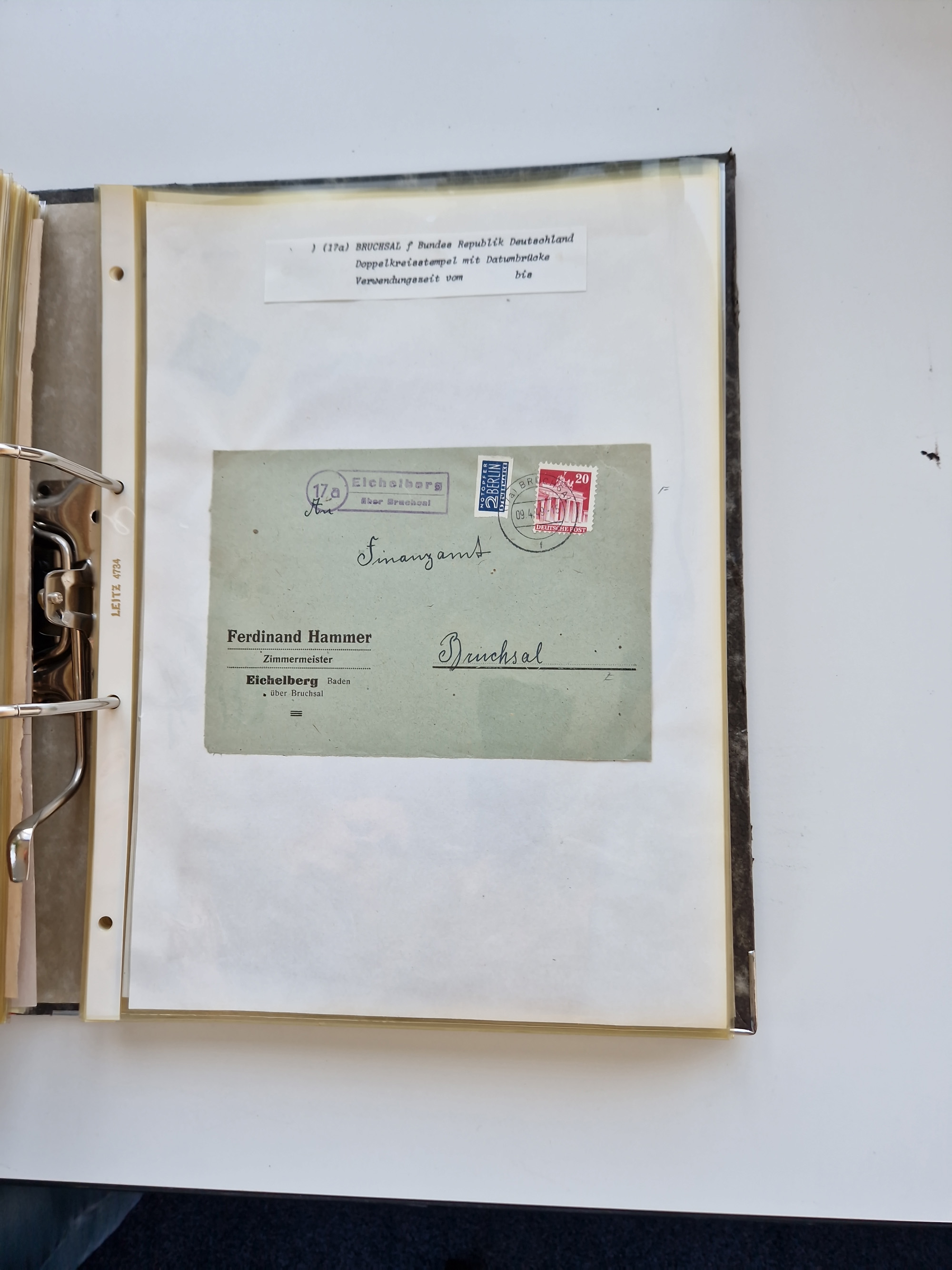 1870/2010 (ca.), Bruchsal und Umgebung, umfangreiche Heimatsammlung in 39 Ringordnern etwas unkonventionell, aber nichtsdestotrotz sehr inhaltsreich gesammelt mit zahlreichen Belegen ab Dt.Reich und auch losen Marken, u.a. Brustschilde mit Marken und besseren Frankaturen, Nachkriegszeit mit Besatzungszonen, auch eingehende Post aus Aller Welt.