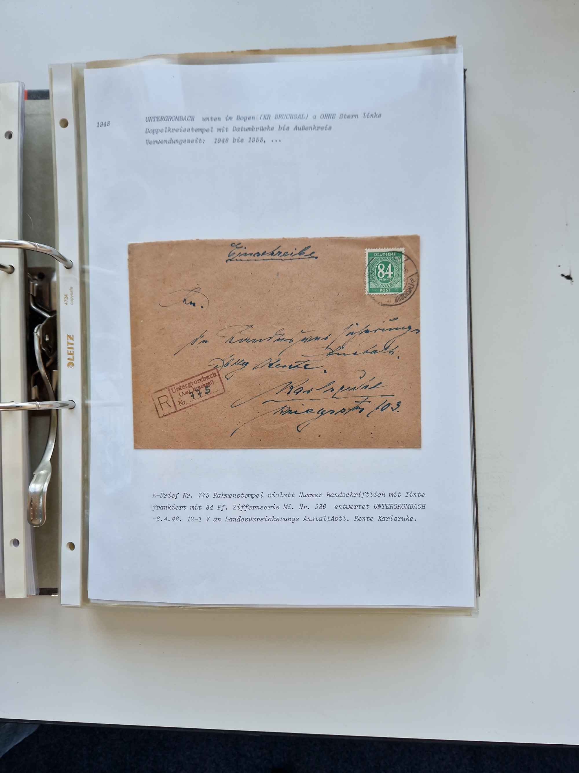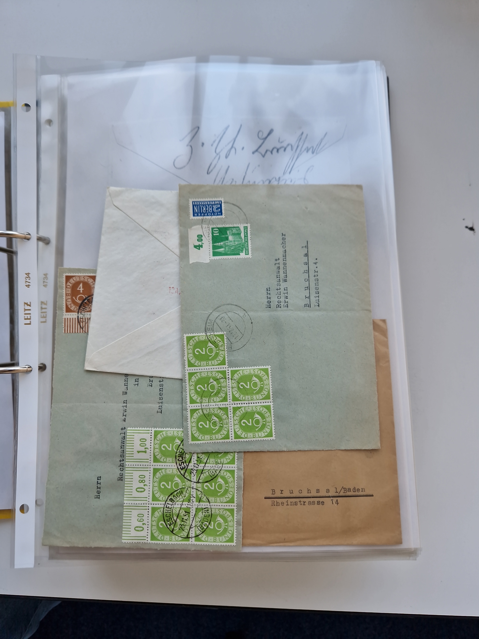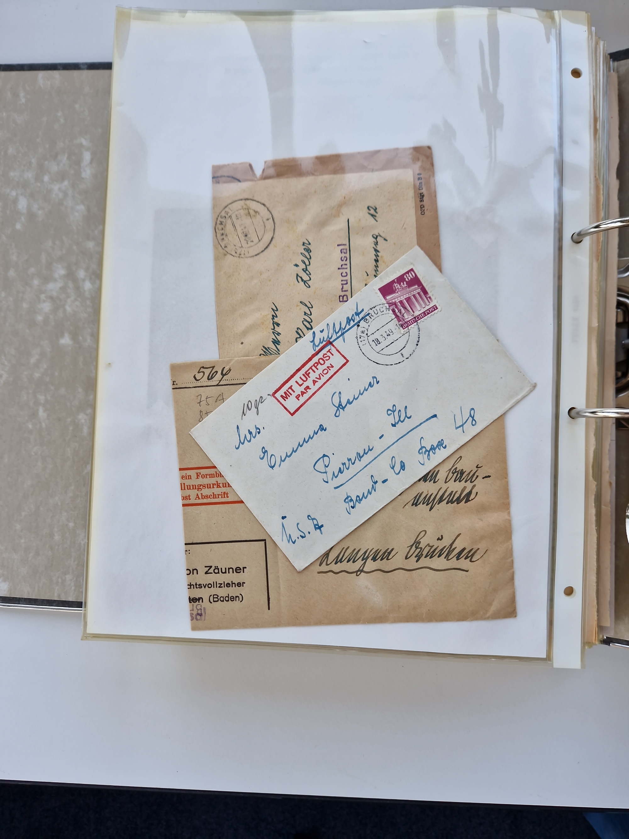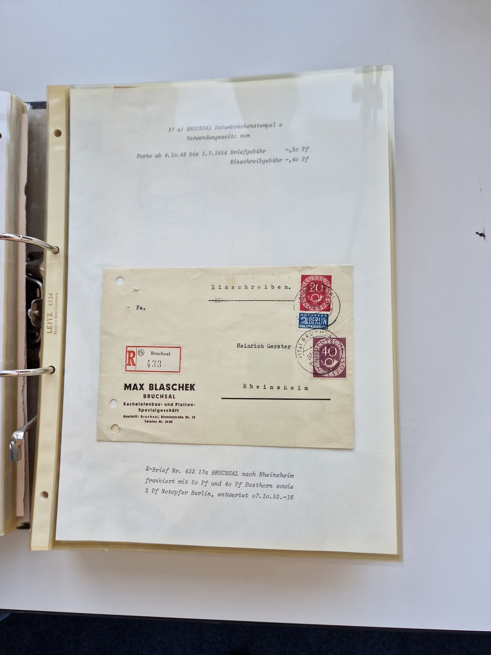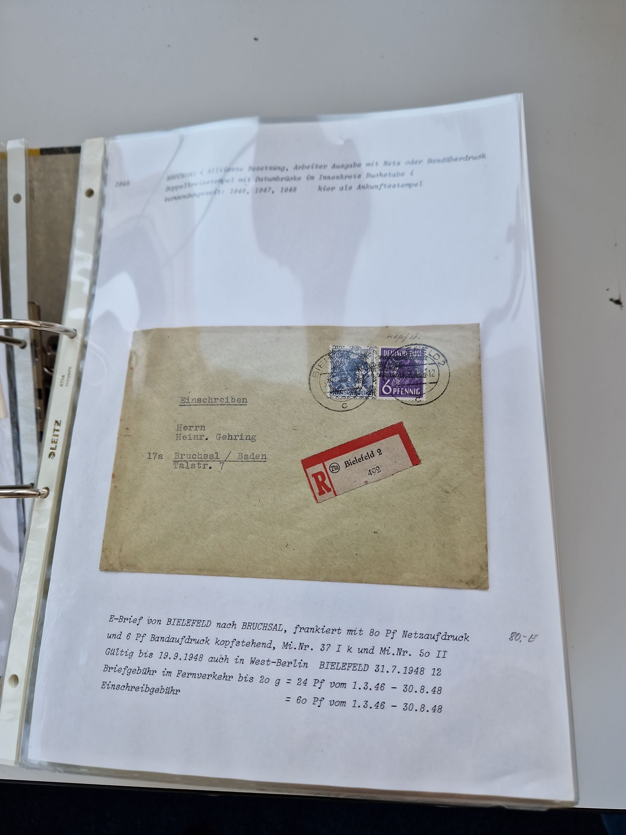 1870/2010 (ca.), Bruchsal und Umgebung, umfangreiche Heimatsammlung in 39 Ringordnern etwas unkonventionell, aber nichtsdestotrotz sehr inhaltsreich gesammelt mit zahlreichen Belegen ab Dt.Reich und auch losen Marken, u.a. Brustschilde mit Marken und besseren Frankaturen, Nachkriegszeit mit Besatzungszonen, auch eingehende Post aus Aller Welt.