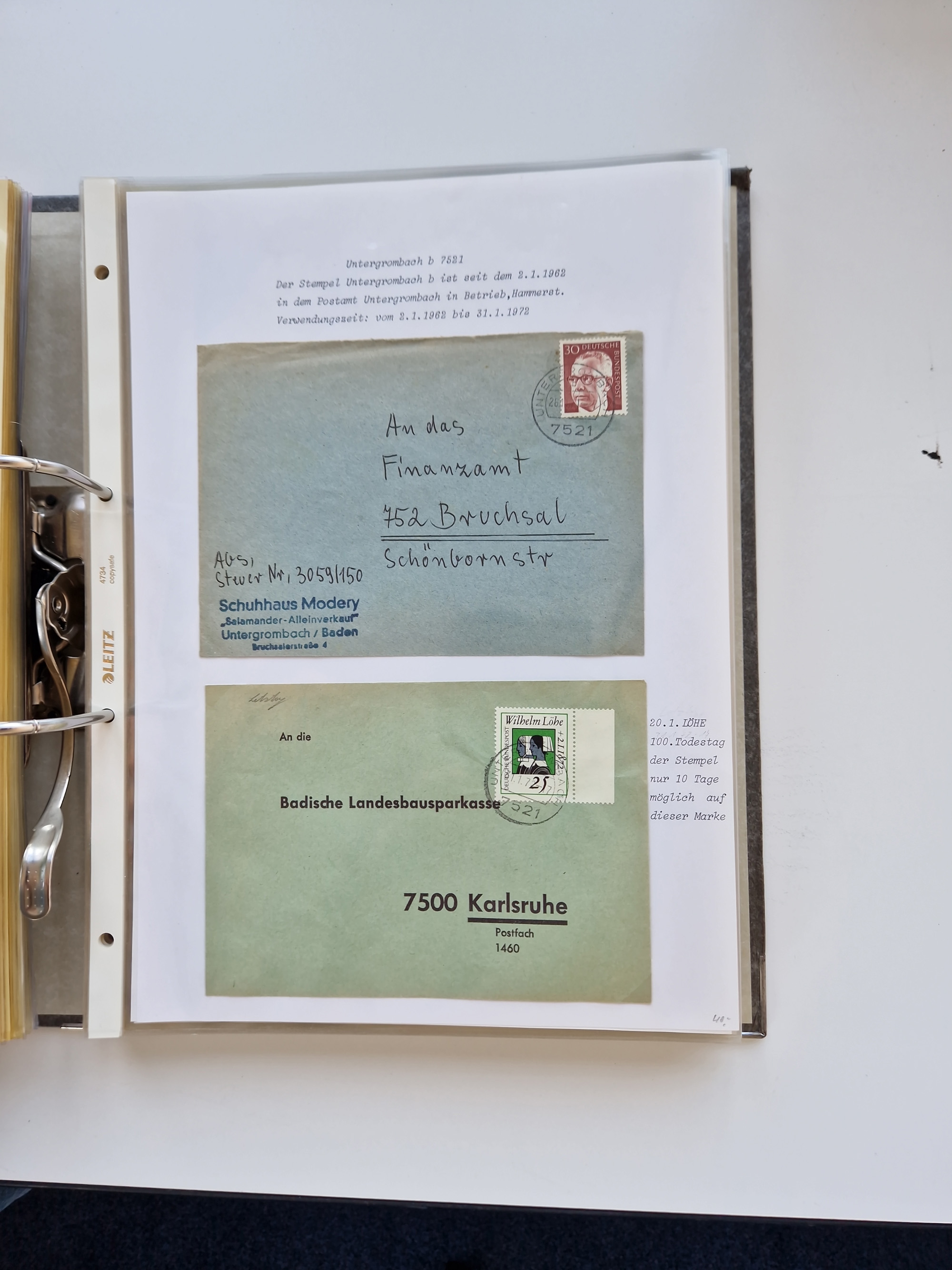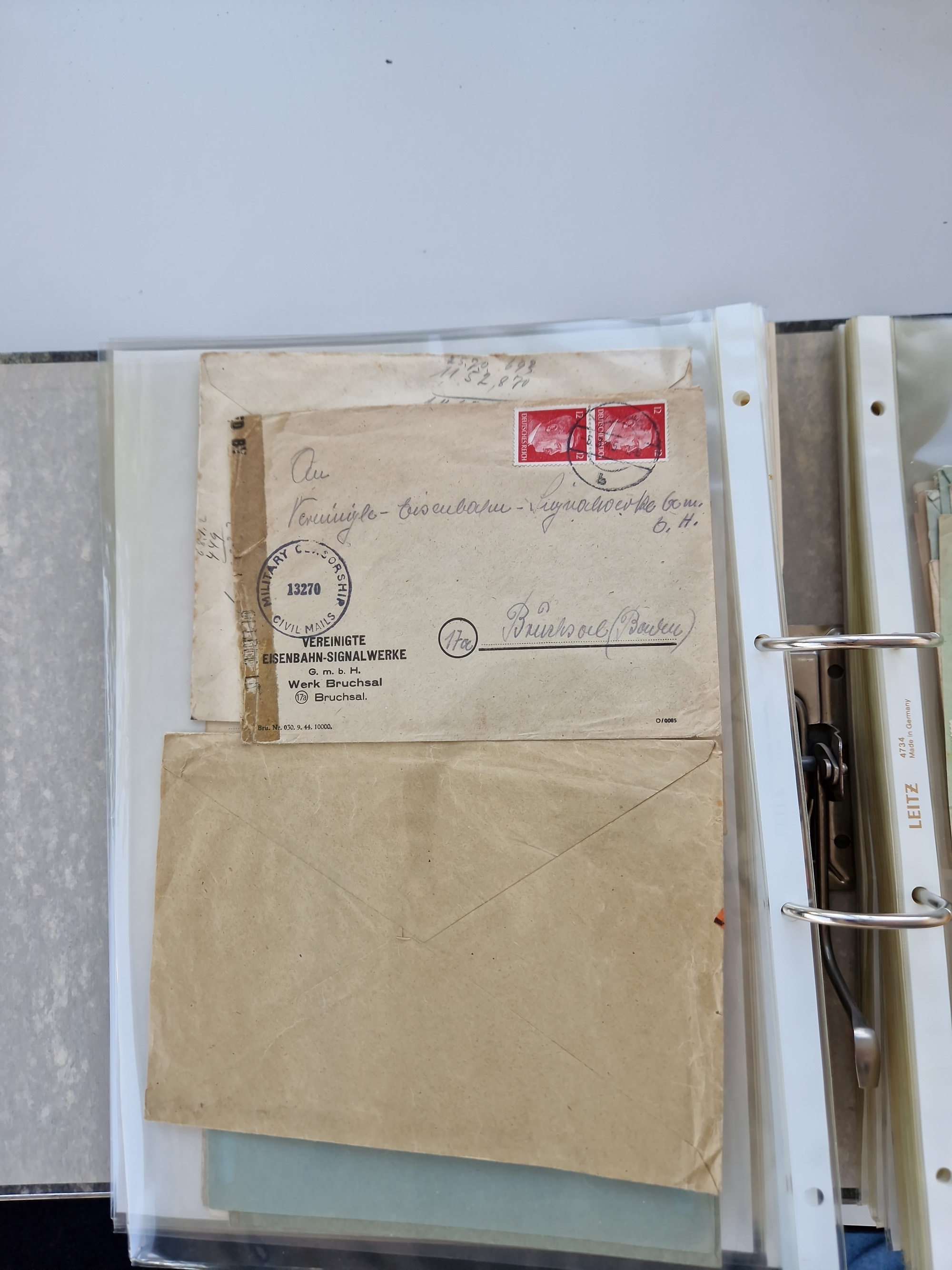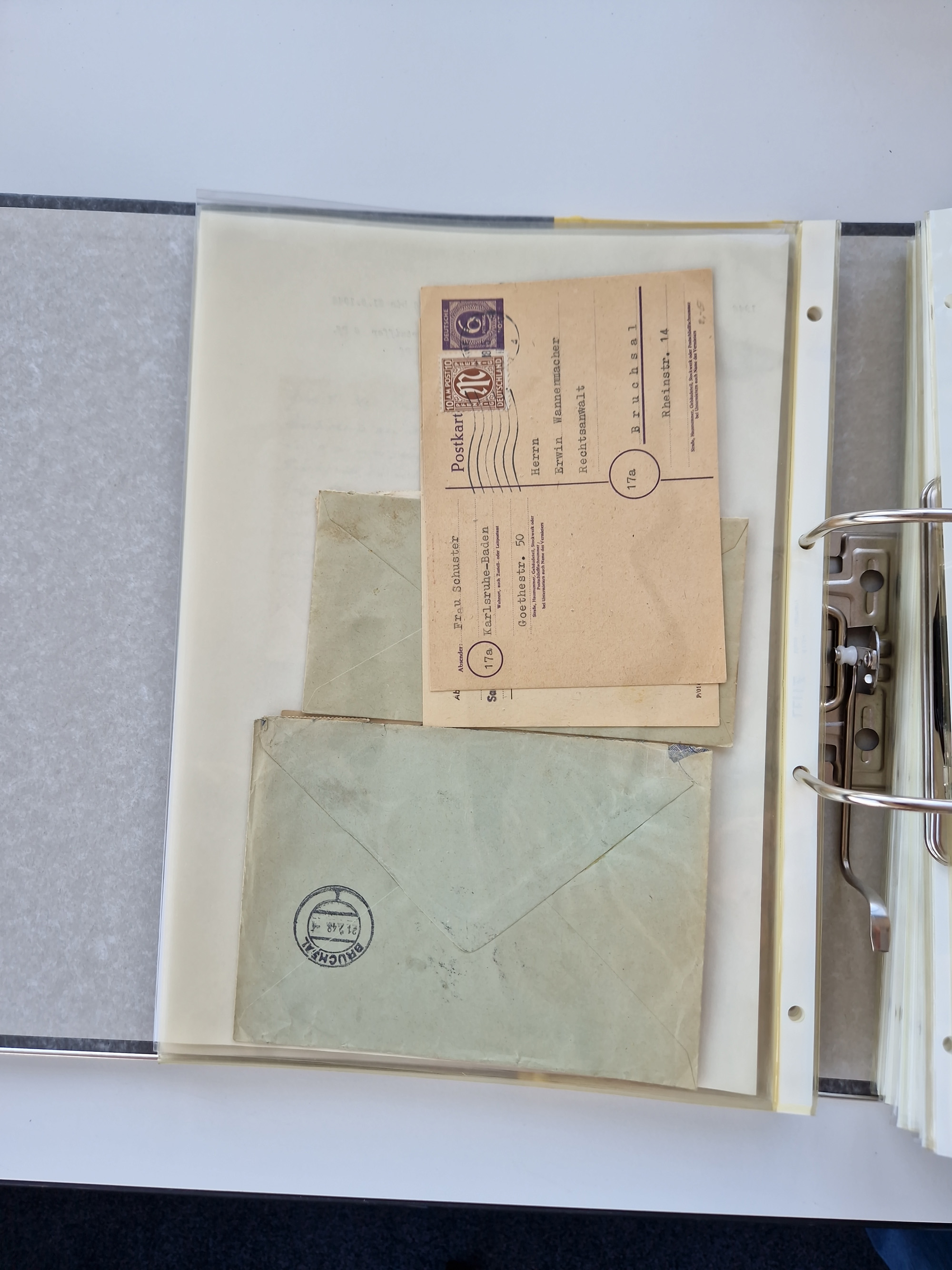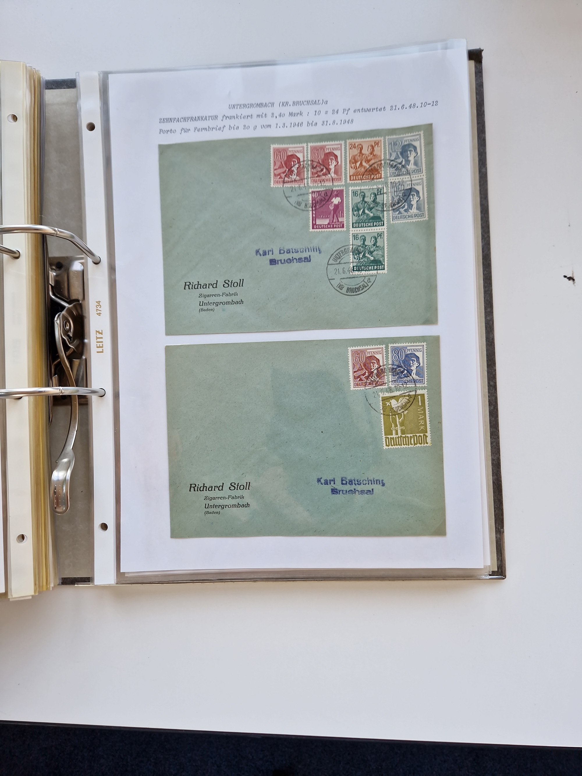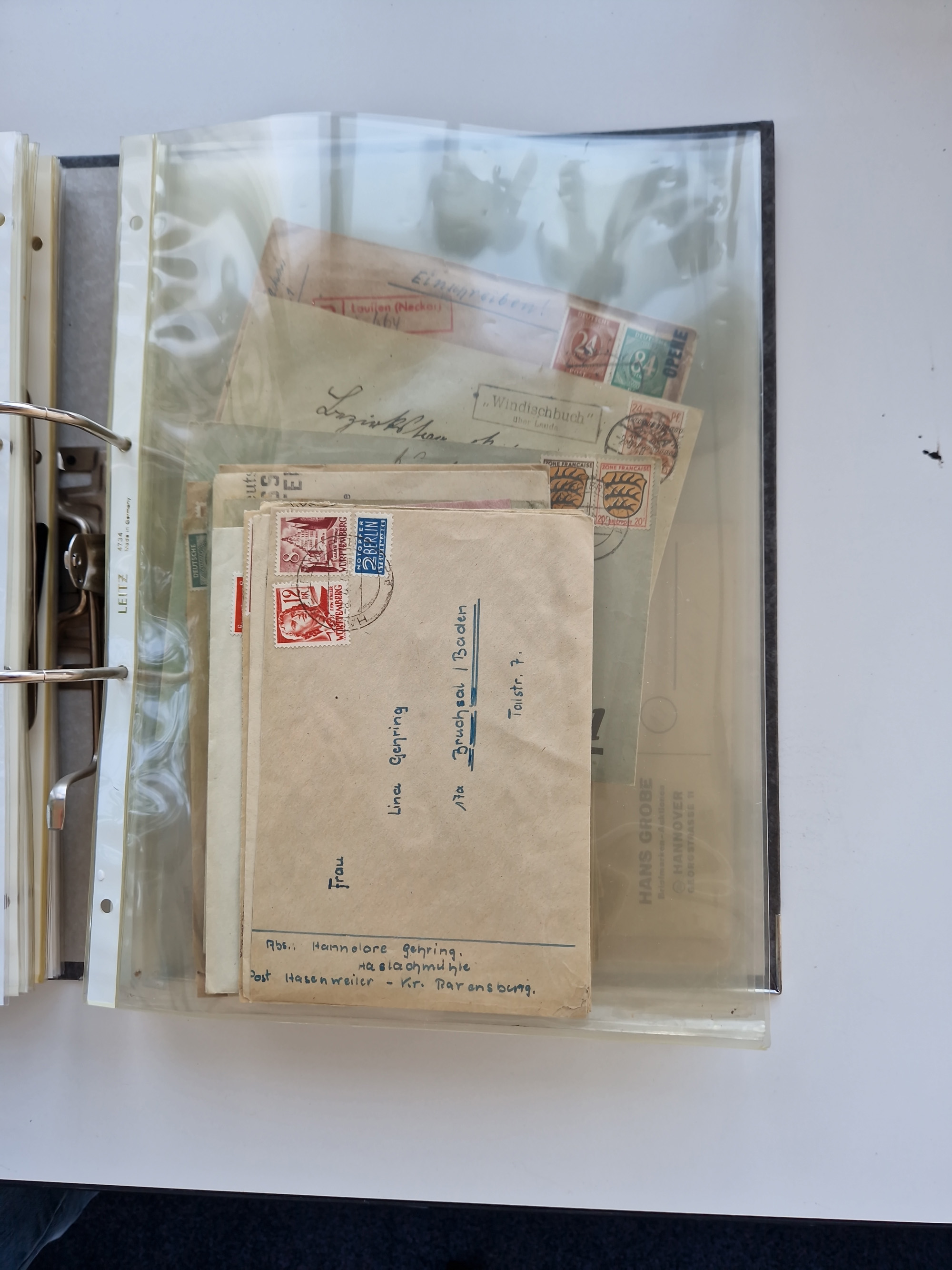 1870/2010 (ca.), Bruchsal und Umgebung, umfangreiche Heimatsammlung in 39 Ringordnern etwas unkonventionell, aber nichtsdestotrotz sehr inhaltsreich gesammelt mit zahlreichen Belegen ab Dt.Reich und auch losen Marken, u.a. Brustschilde mit Marken und besseren Frankaturen, Nachkriegszeit mit Besatzungszonen, auch eingehende Post aus Aller Welt.