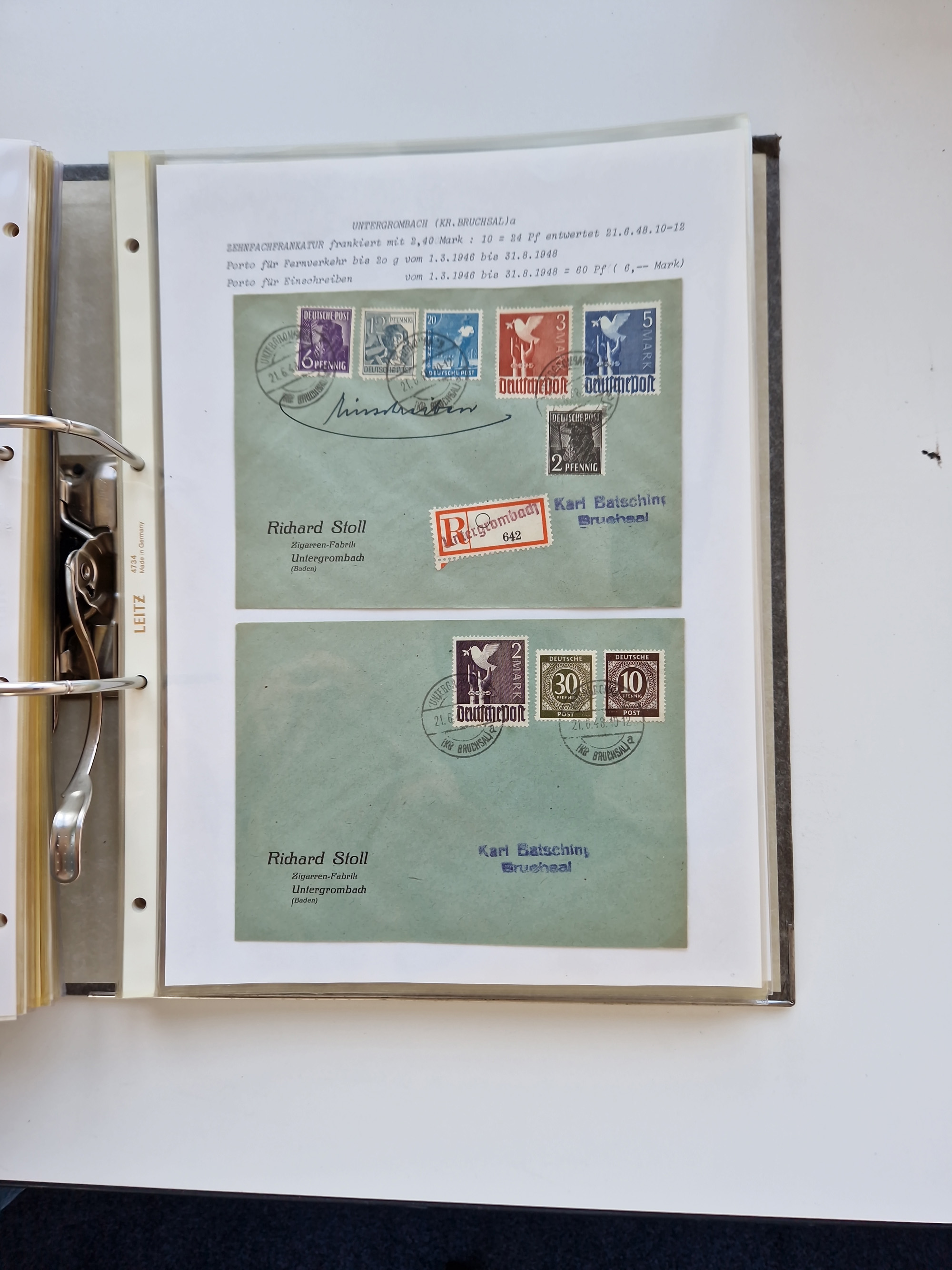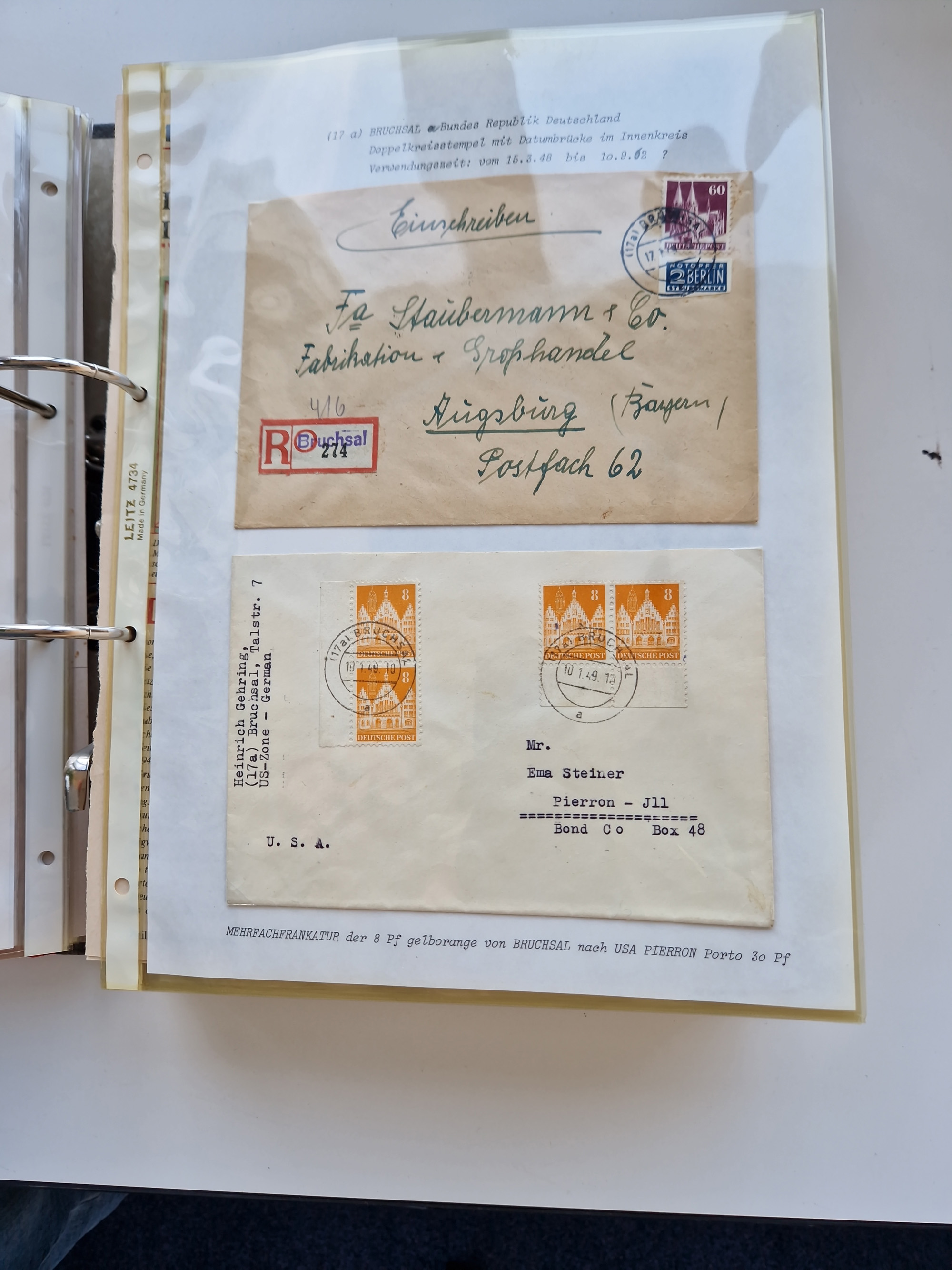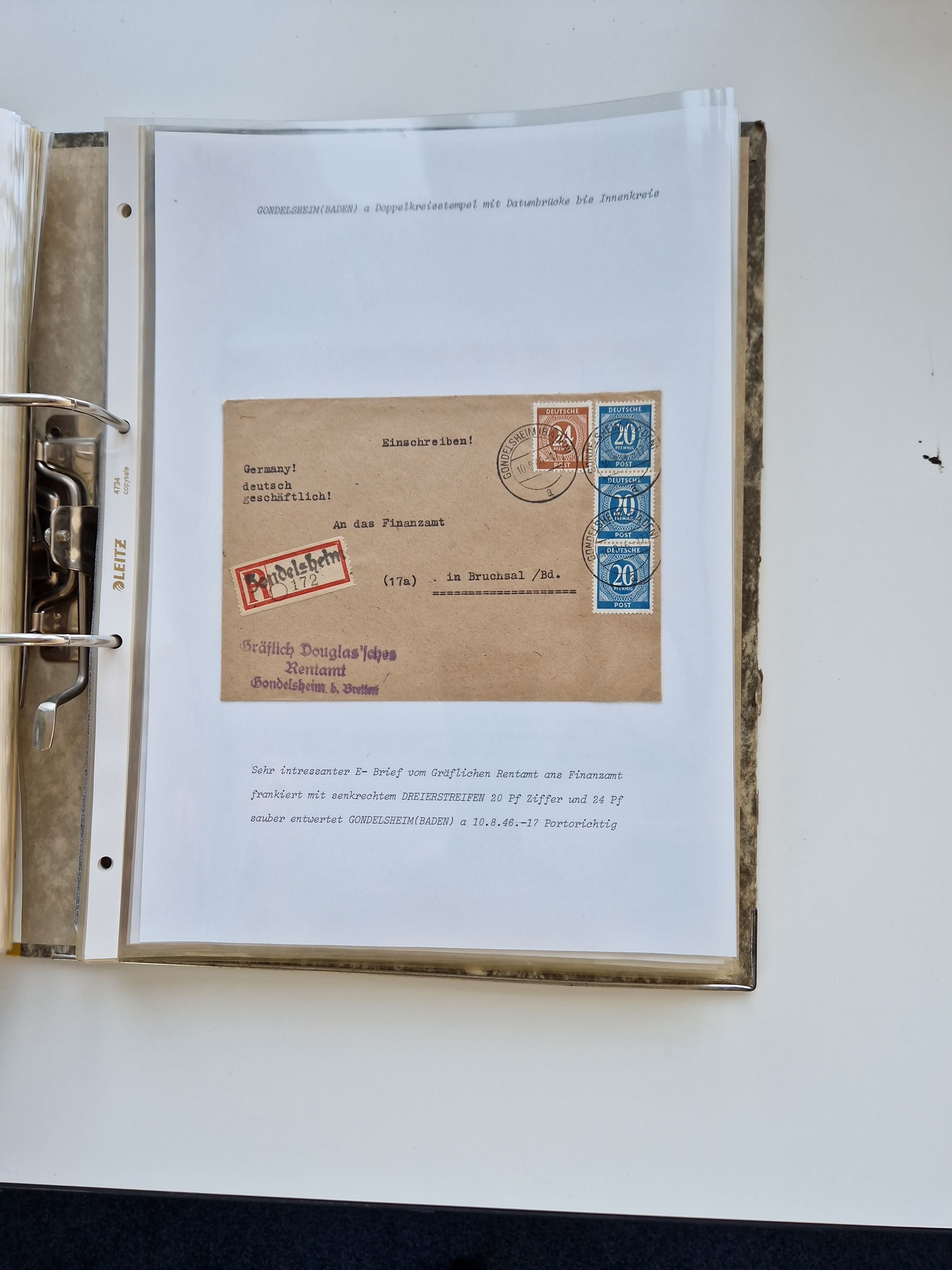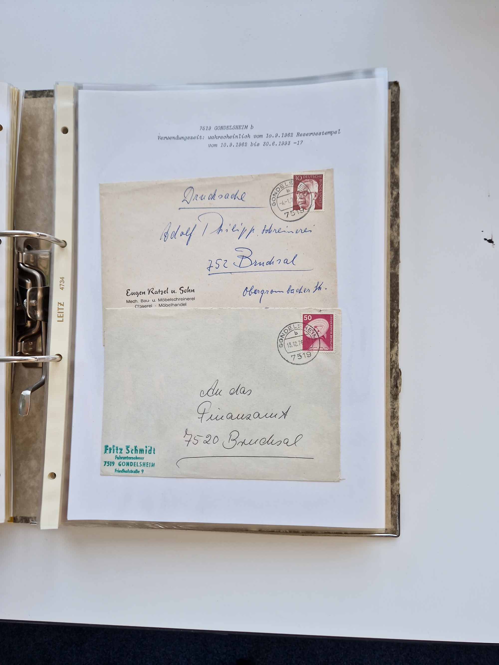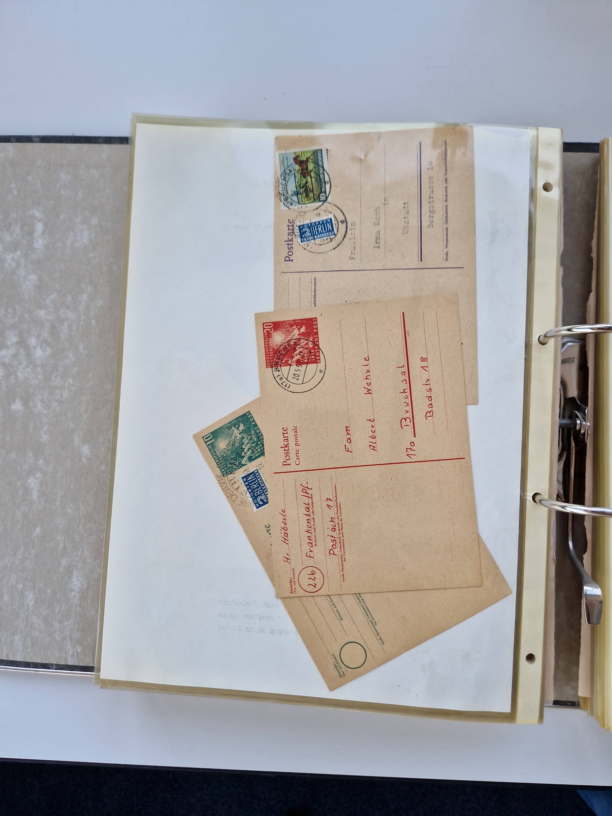 1870/2010 (ca.), Bruchsal und Umgebung, umfangreiche Heimatsammlung in 39 Ringordnern etwas unkonventionell, aber nichtsdestotrotz sehr inhaltsreich gesammelt mit zahlreichen Belegen ab Dt.Reich und auch losen Marken, u.a. Brustschilde mit Marken und besseren Frankaturen, Nachkriegszeit mit Besatzungszonen, auch eingehende Post aus Aller Welt.