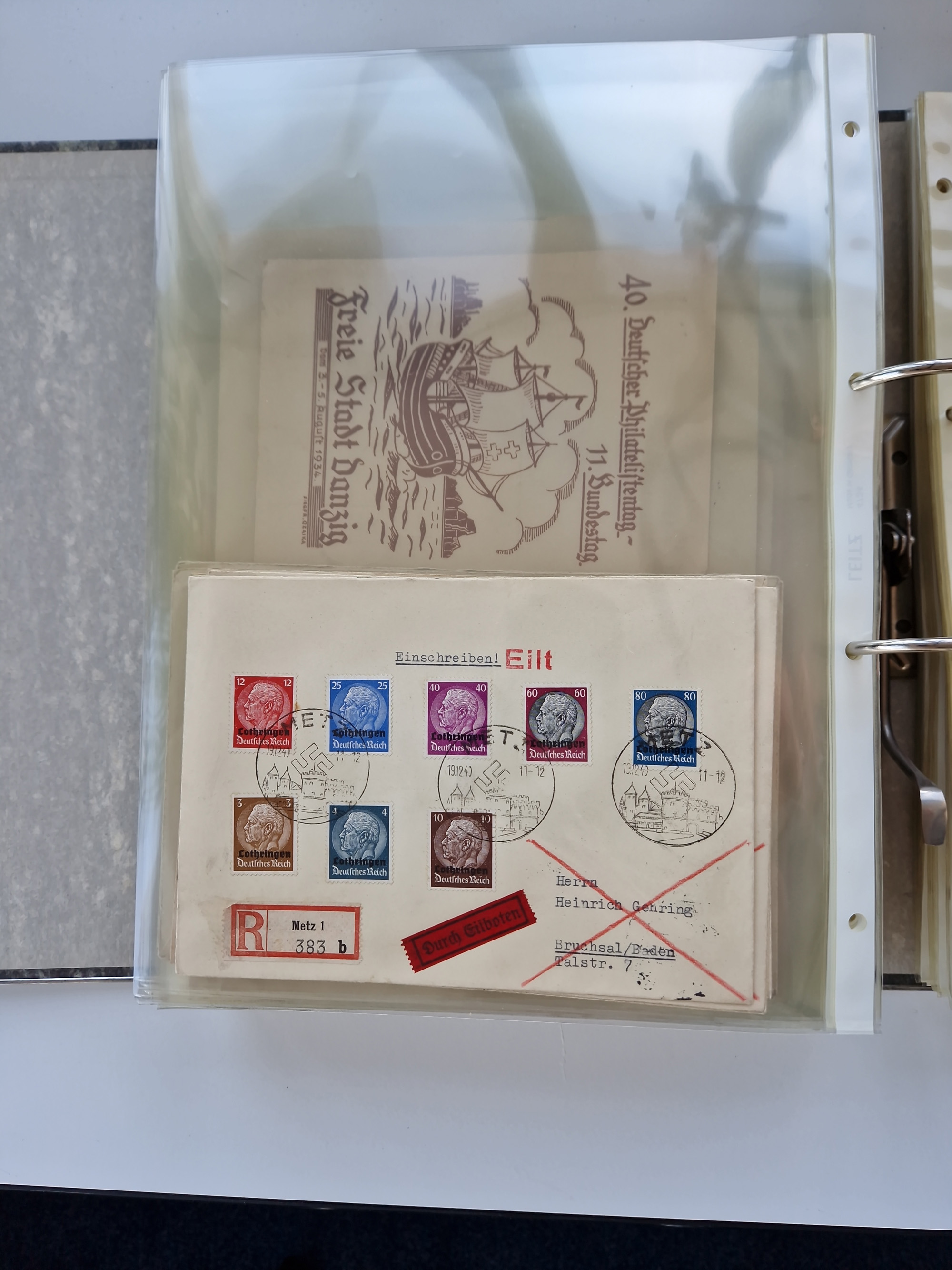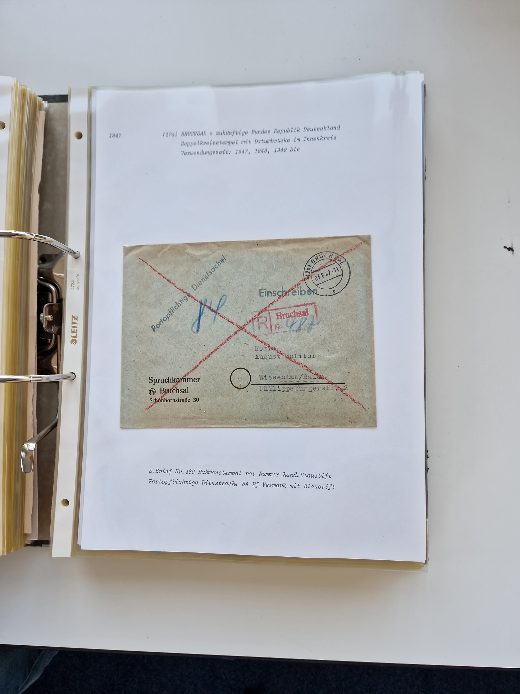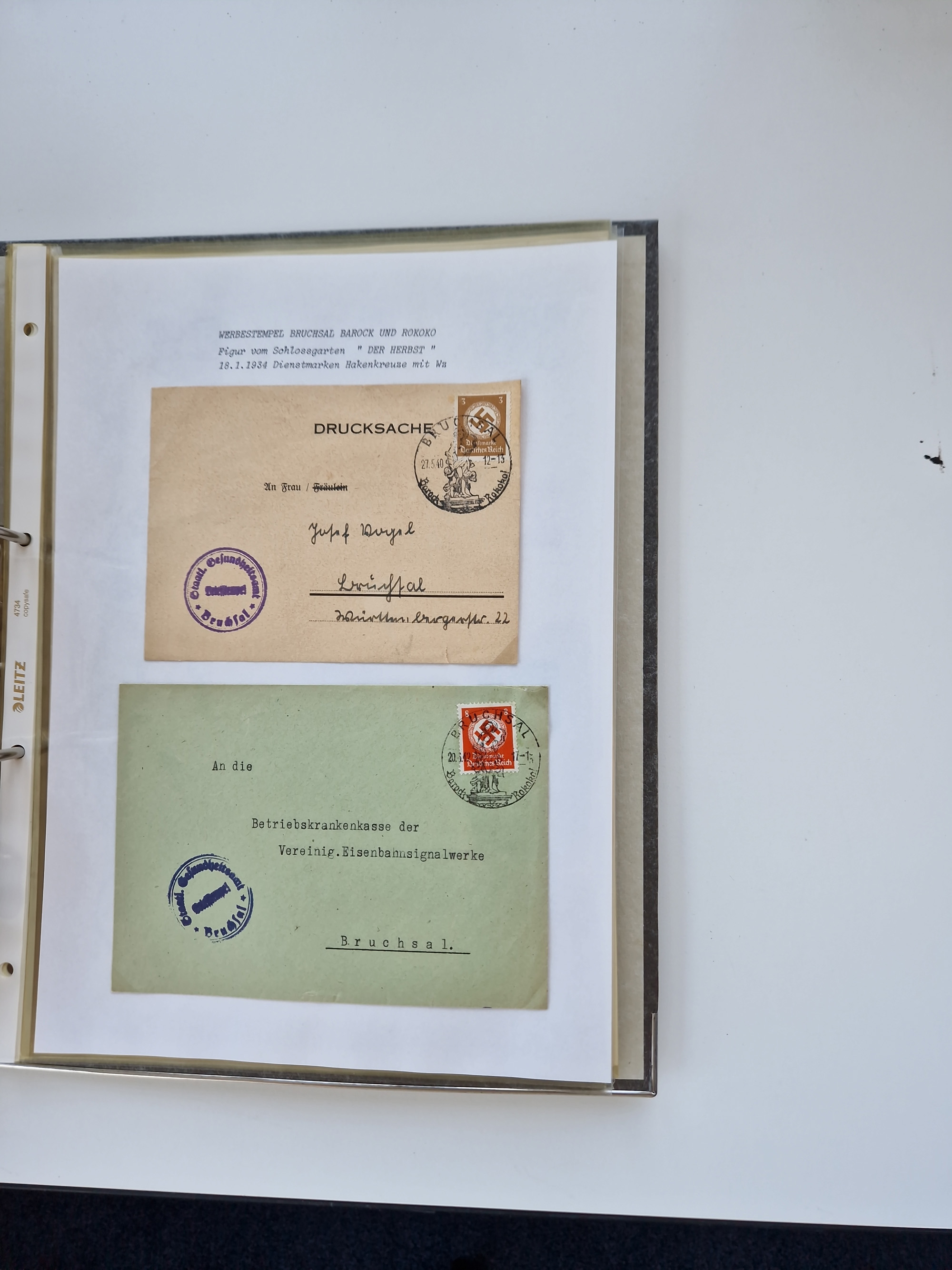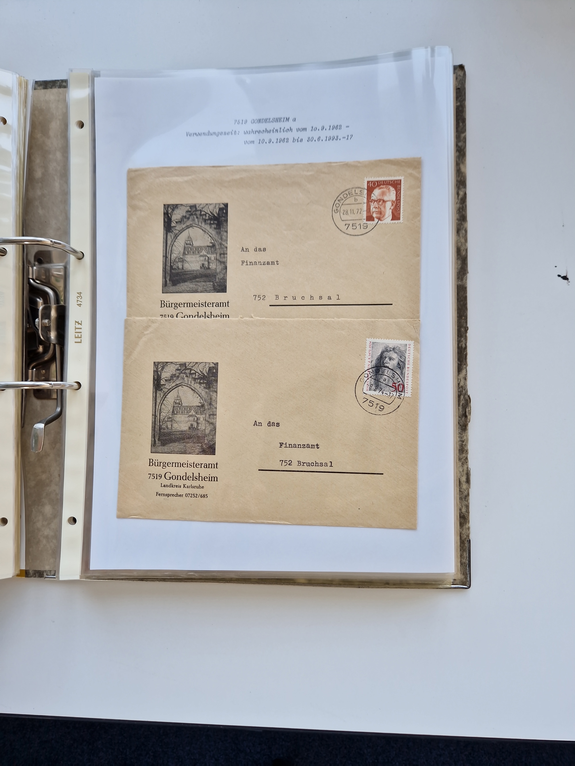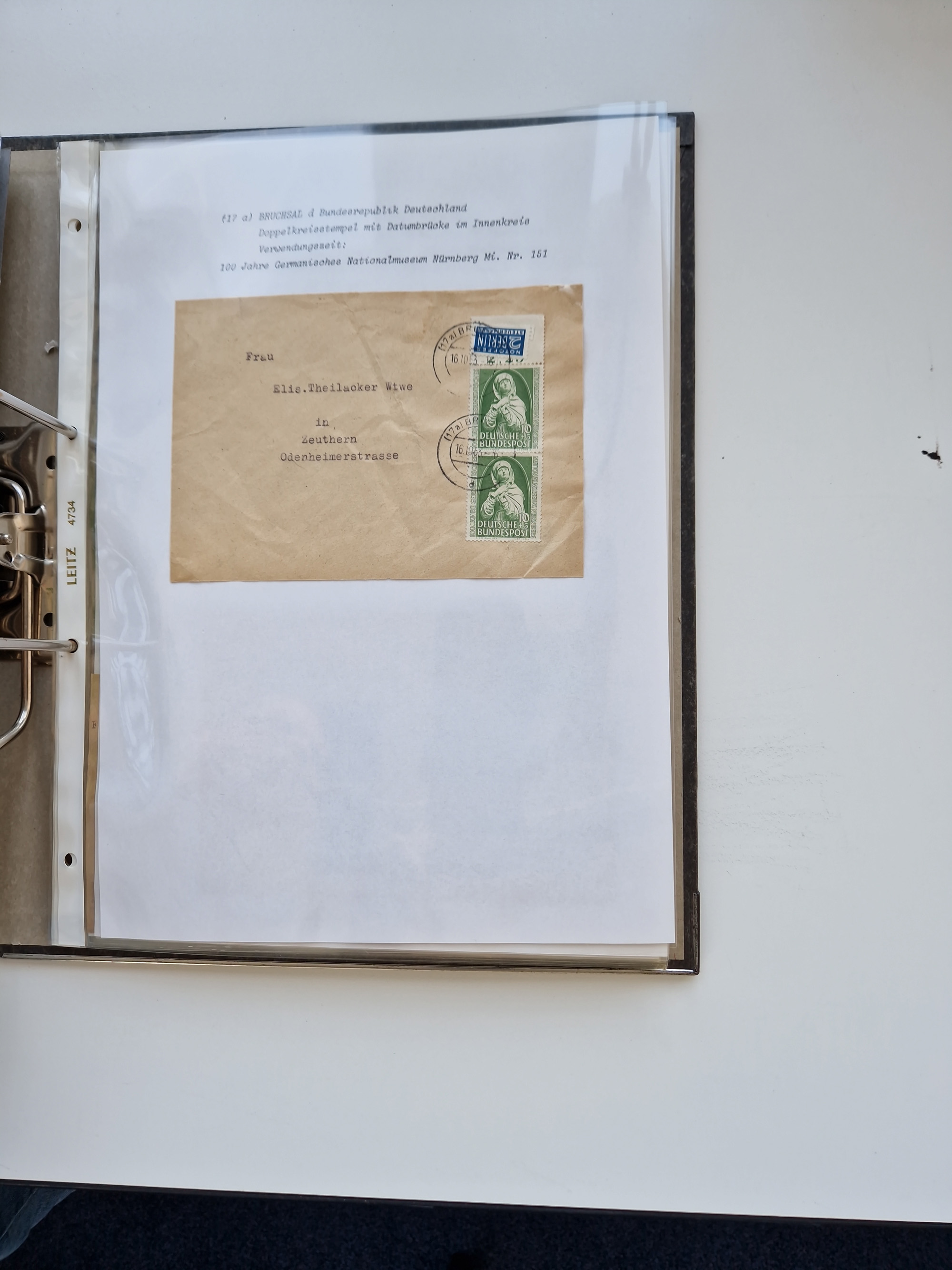 1870/2010 (ca.), Bruchsal und Umgebung, umfangreiche Heimatsammlung in 39 Ringordnern etwas unkonventionell, aber nichtsdestotrotz sehr inhaltsreich gesammelt mit zahlreichen Belegen ab Dt.Reich und auch losen Marken, u.a. Brustschilde mit Marken und besseren Frankaturen, Nachkriegszeit mit Besatzungszonen, auch eingehende Post aus Aller Welt.