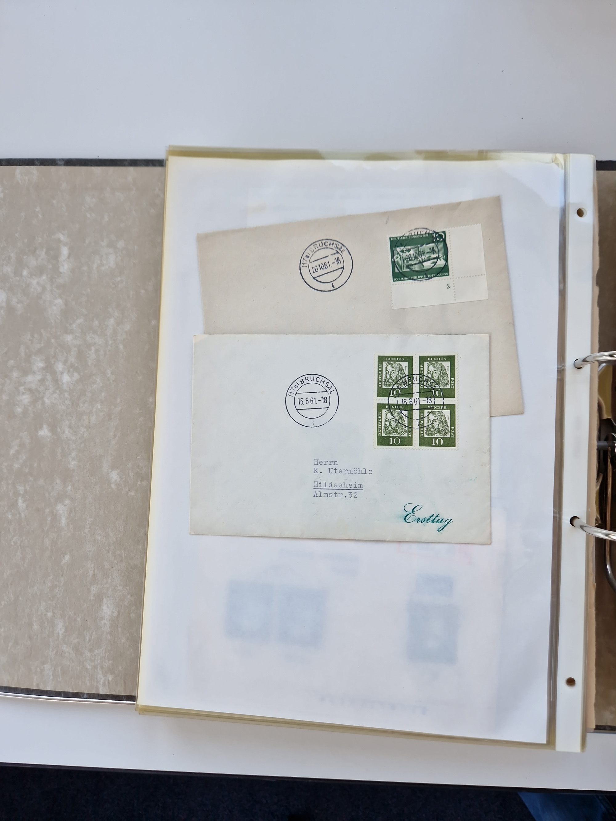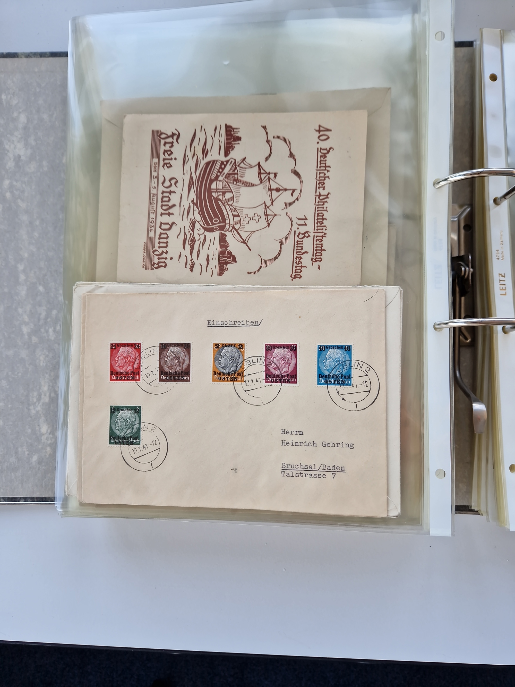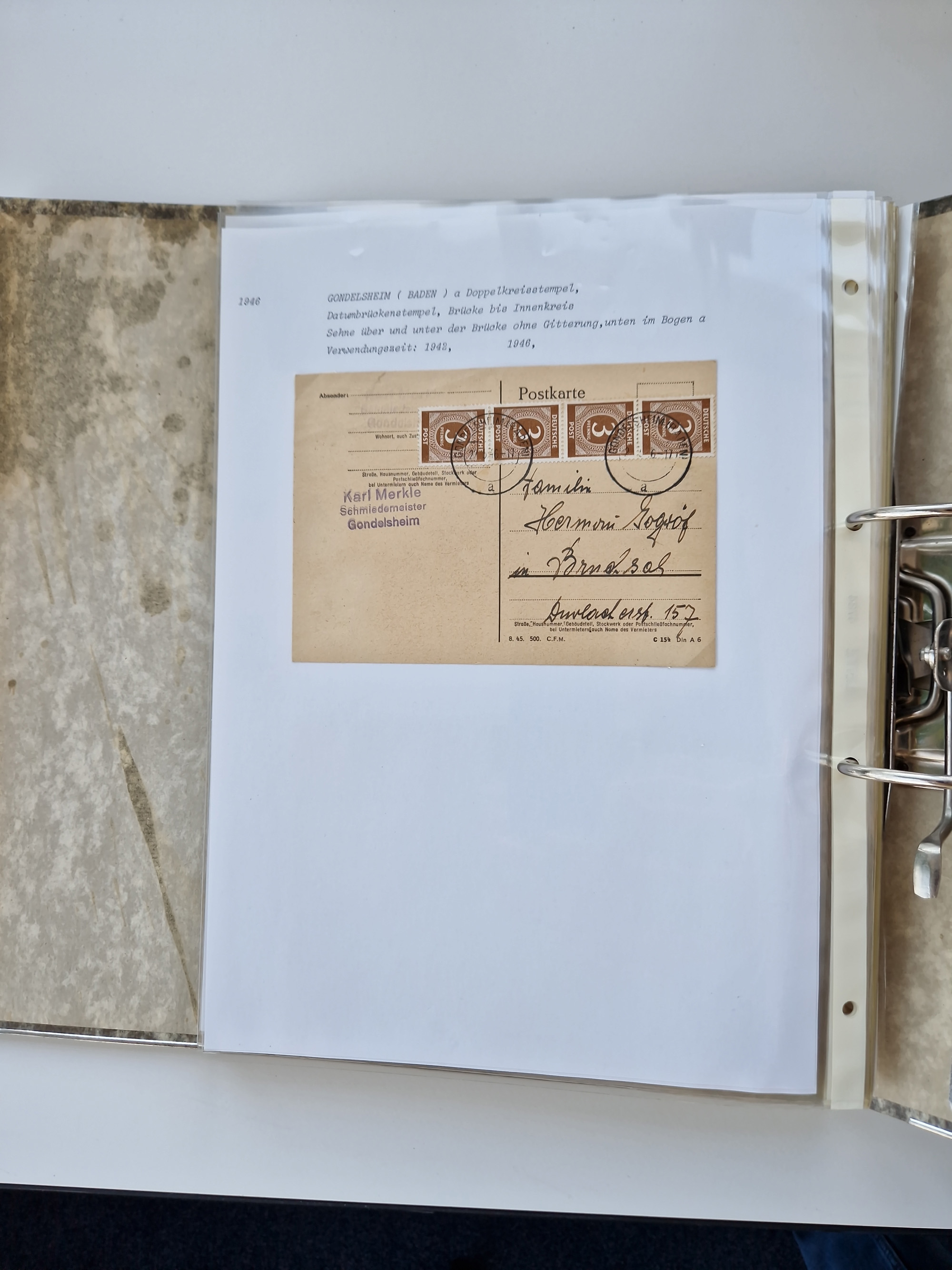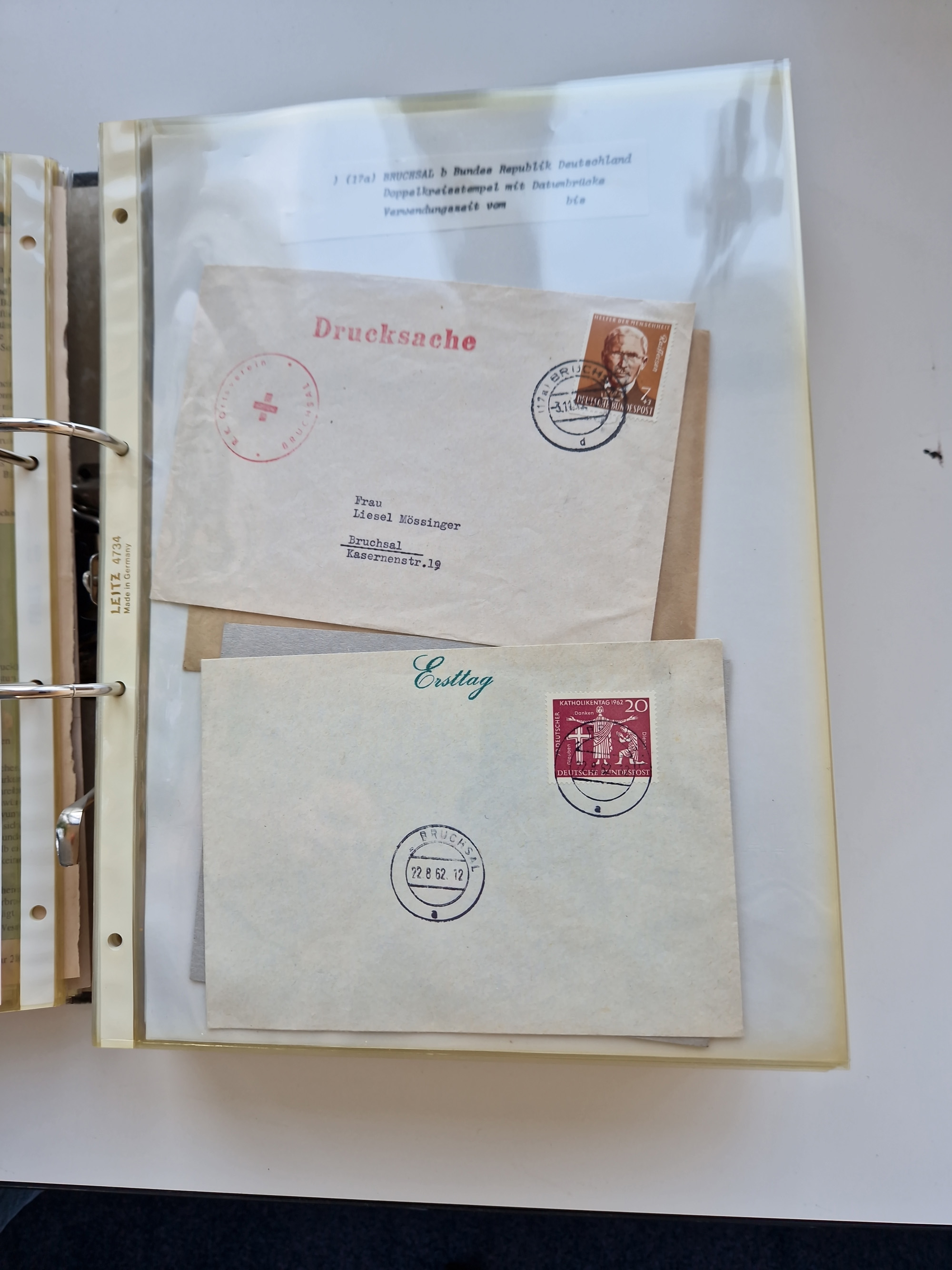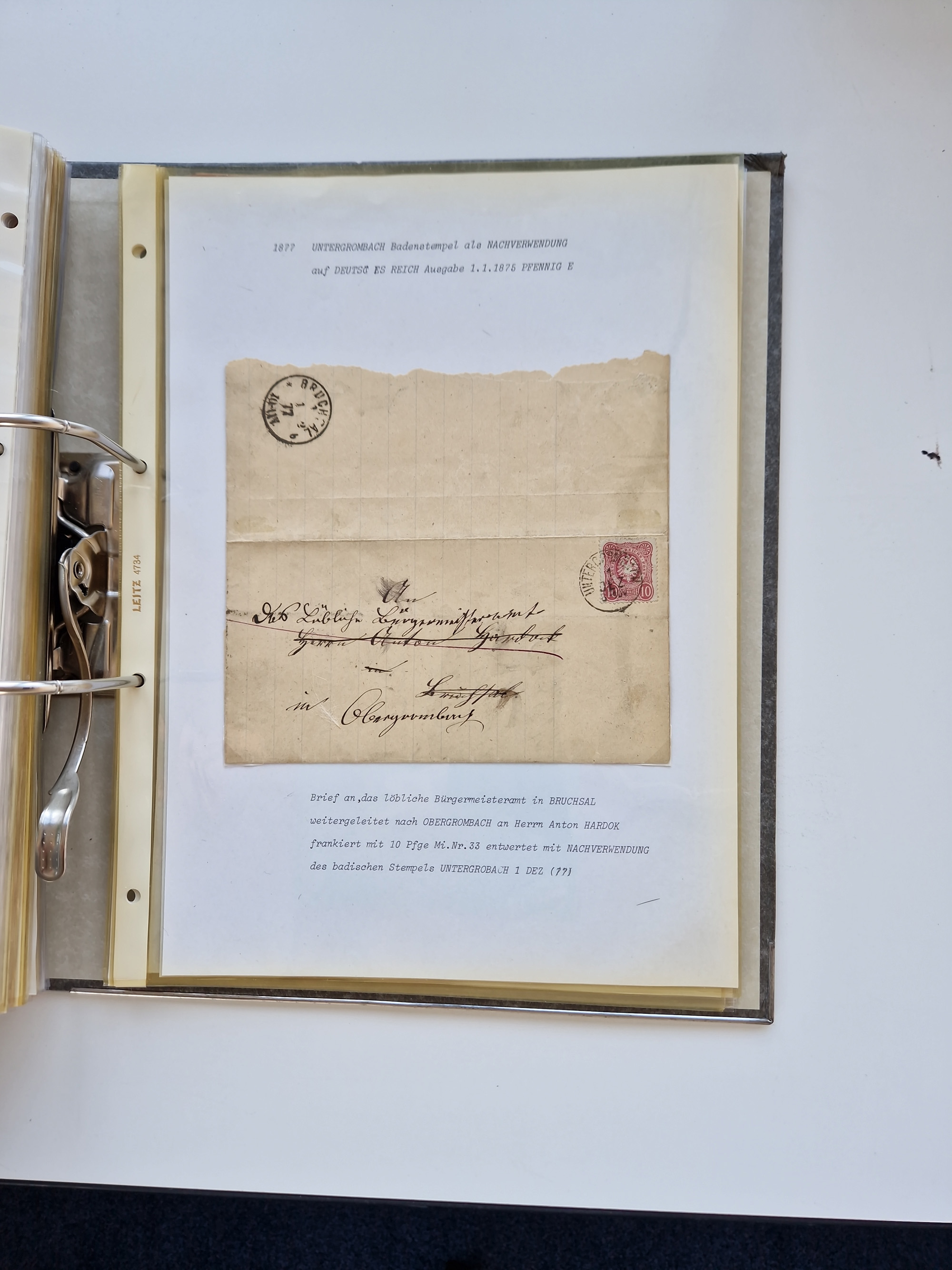 1870/2010 (ca.), Bruchsal und Umgebung, umfangreiche Heimatsammlung in 39 Ringordnern etwas unkonventionell, aber nichtsdestotrotz sehr inhaltsreich gesammelt mit zahlreichen Belegen ab Dt.Reich und auch losen Marken, u.a. Brustschilde mit Marken und besseren Frankaturen, Nachkriegszeit mit Besatzungszonen, auch eingehende Post aus Aller Welt.