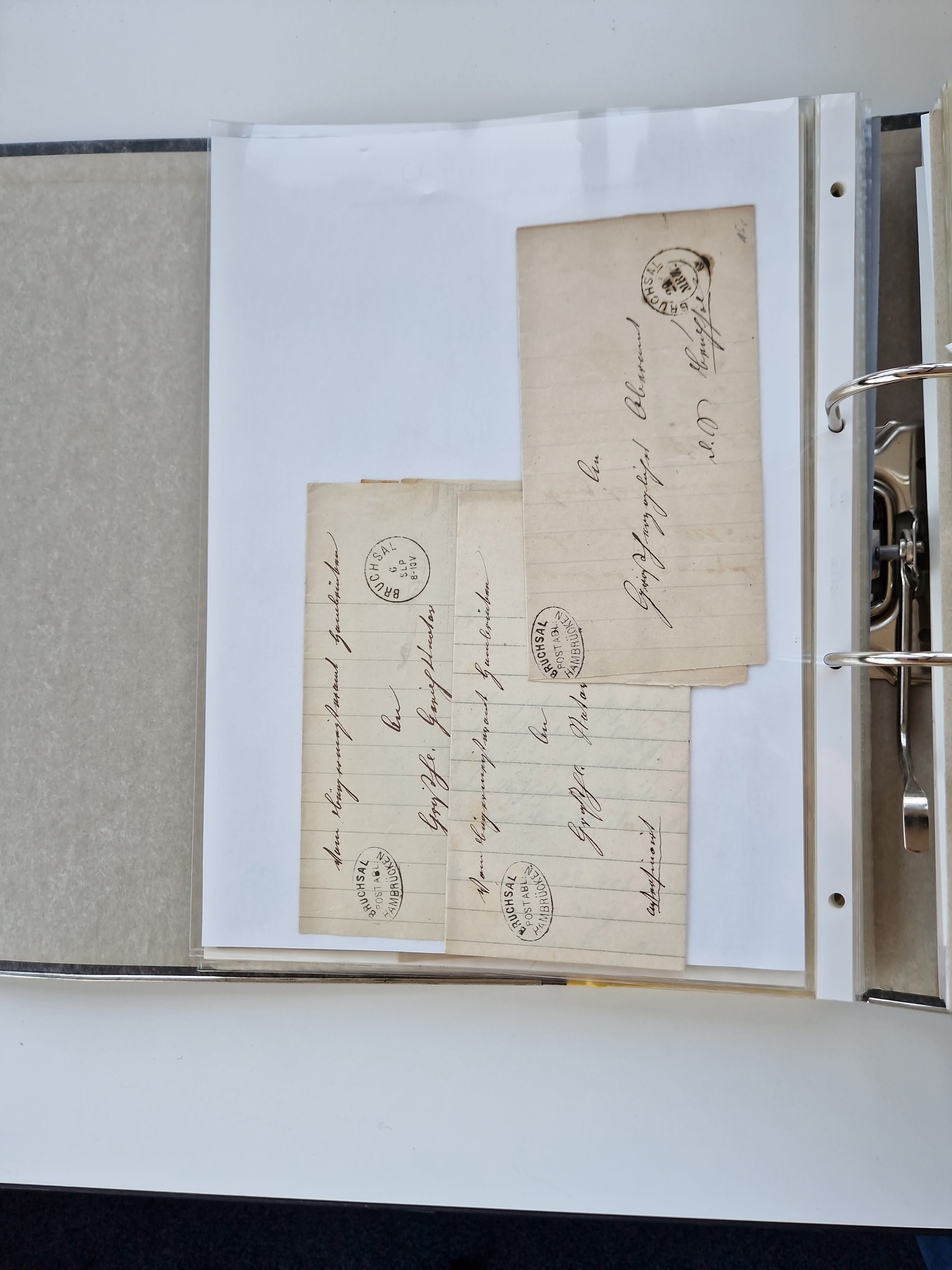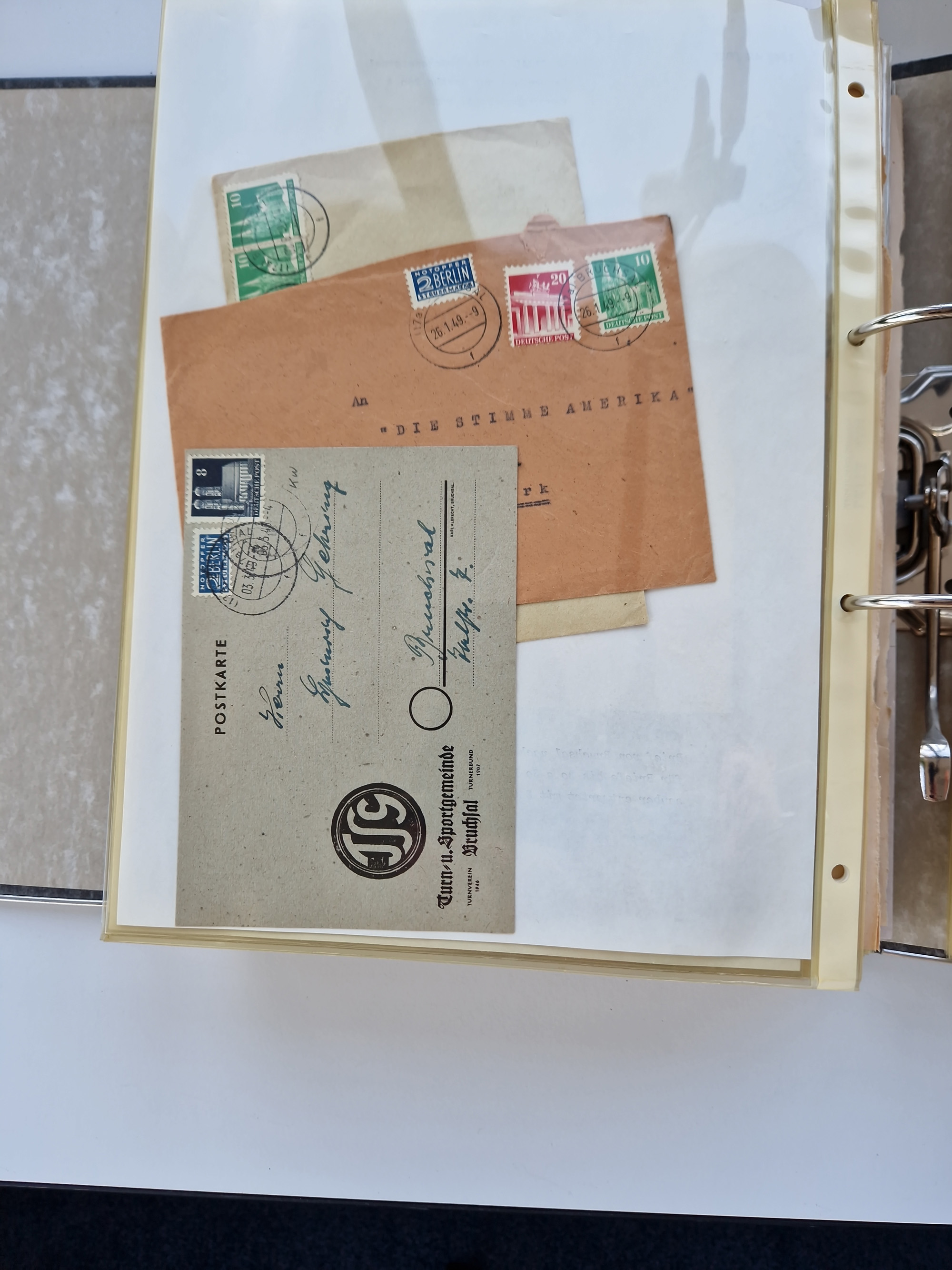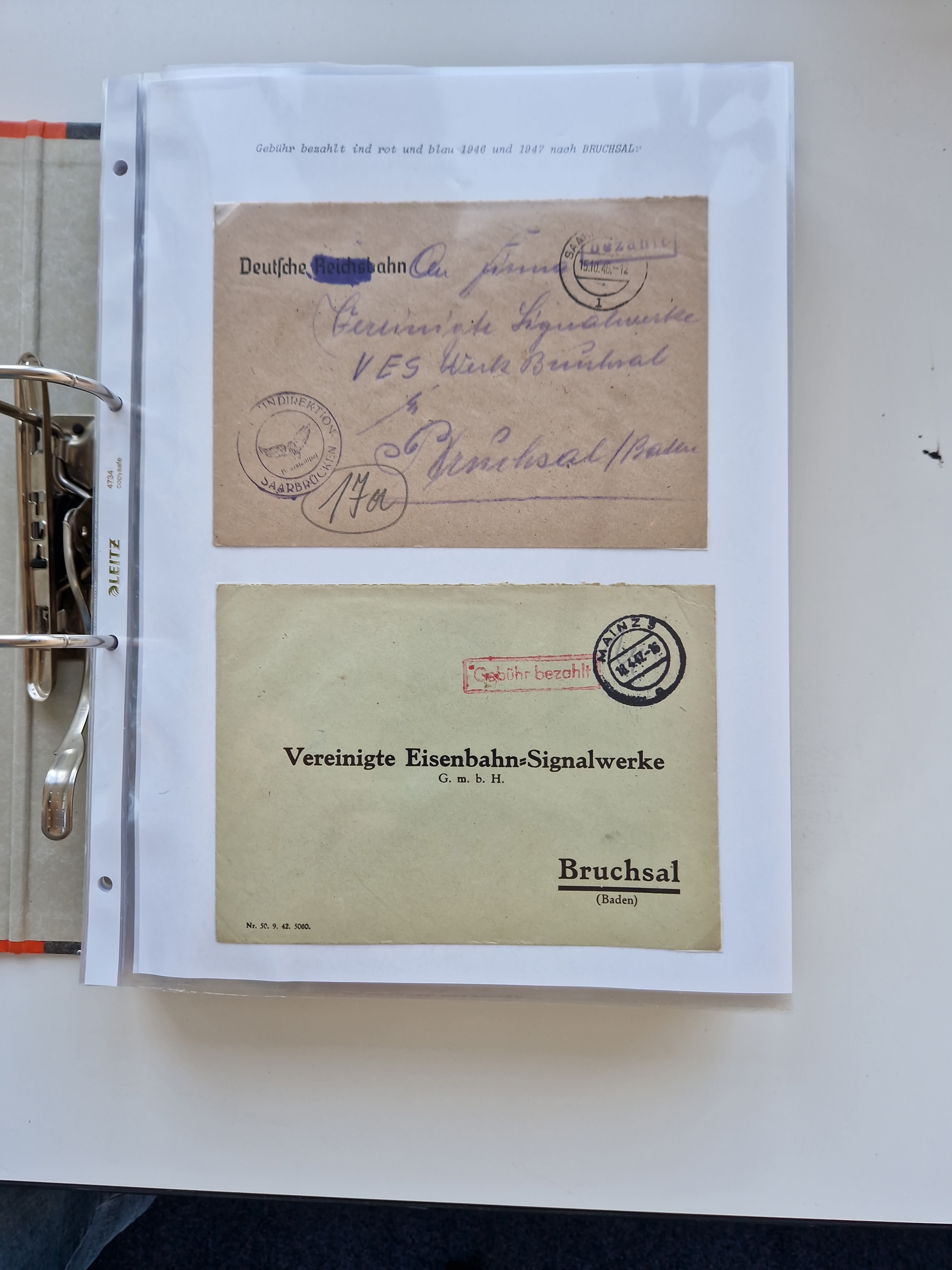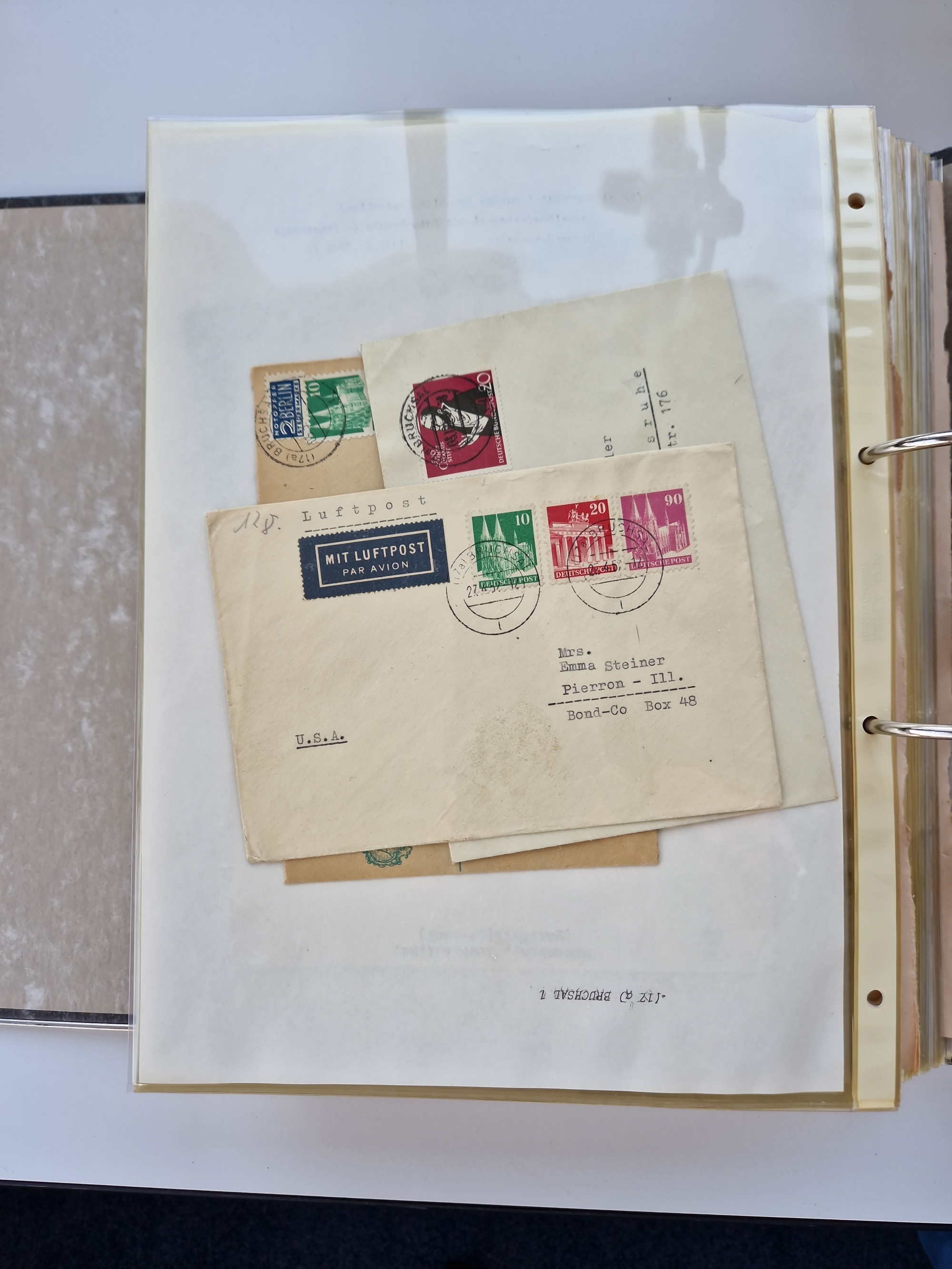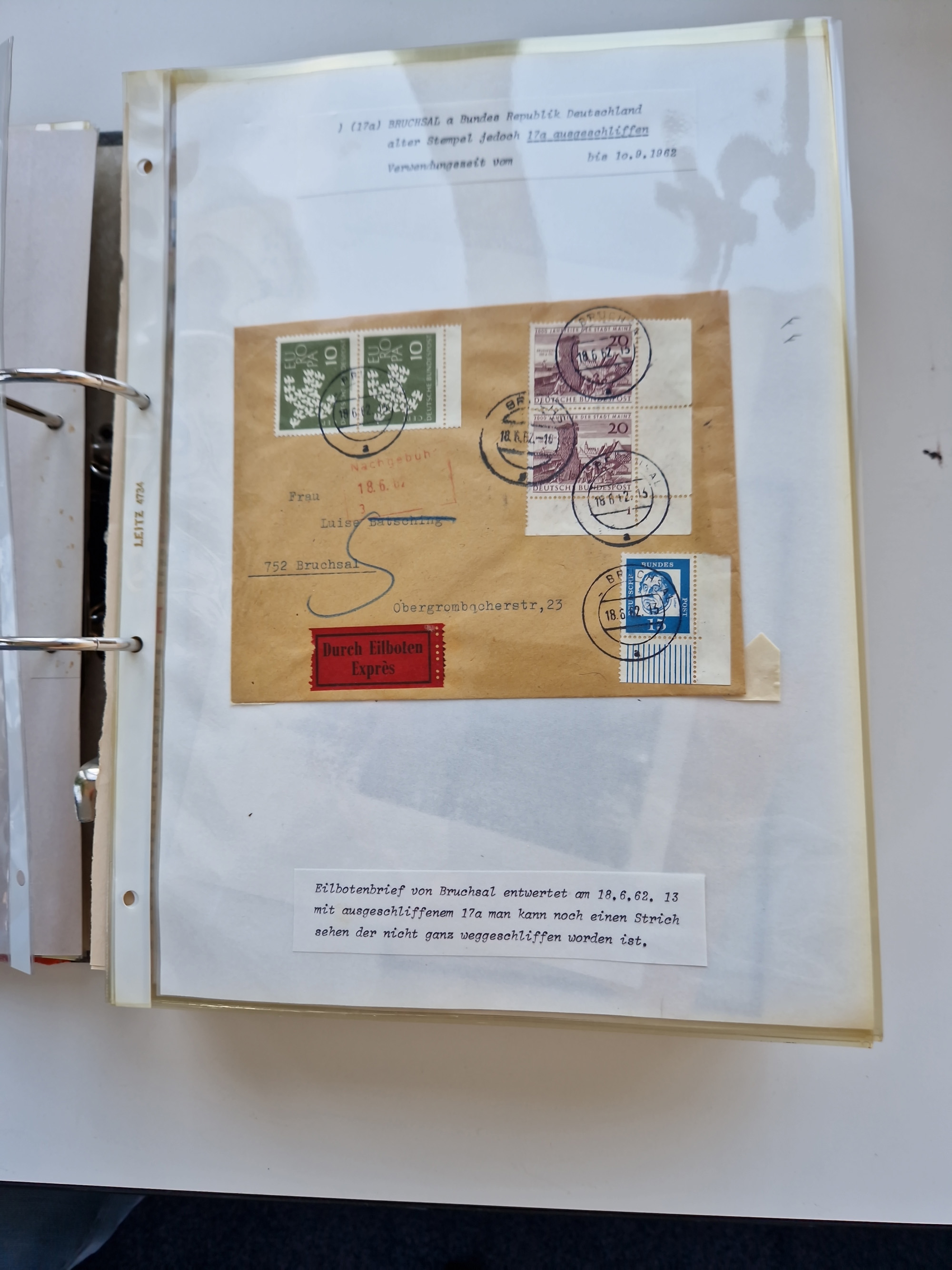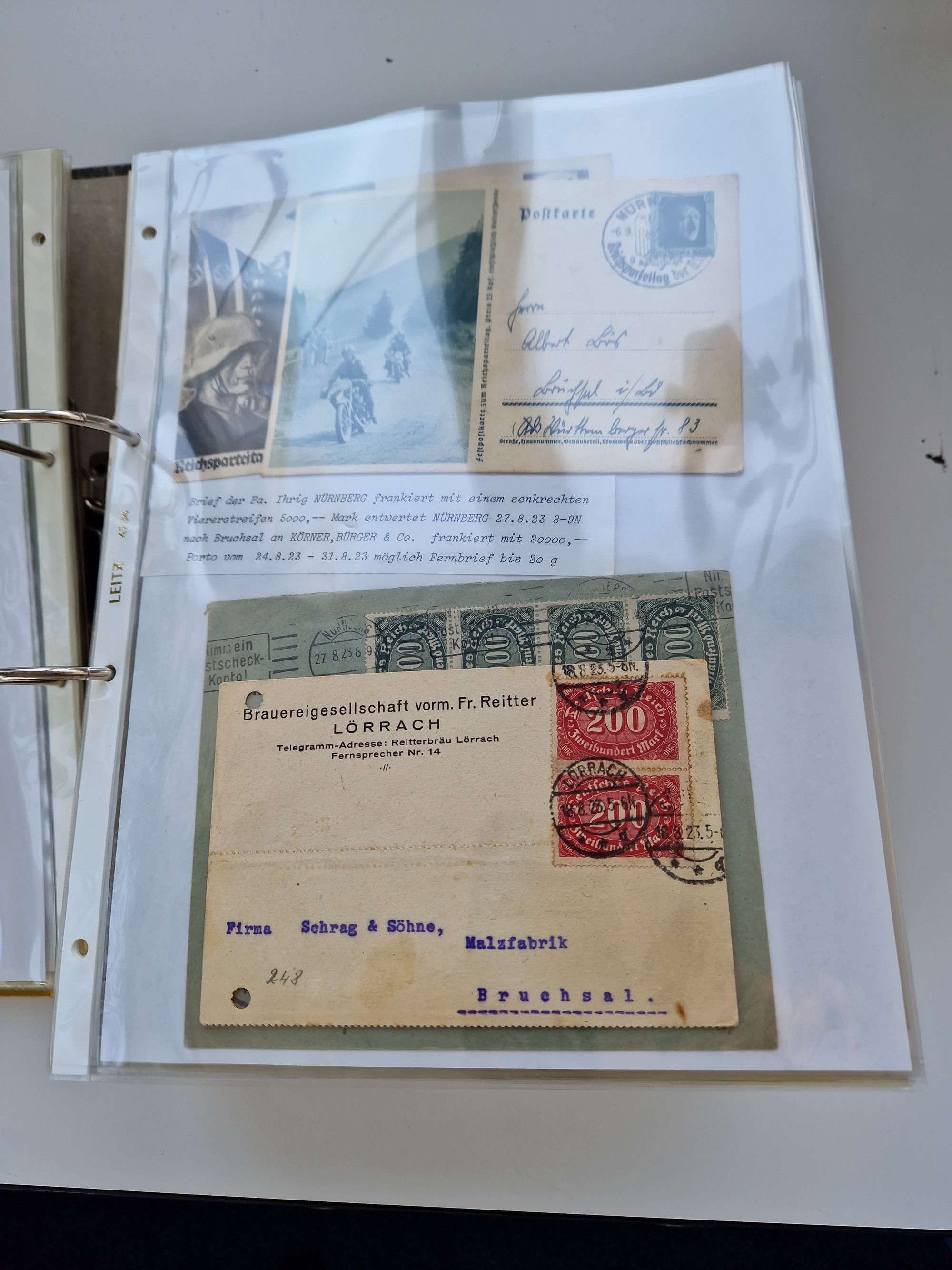 1870/2010 (ca.), Bruchsal und Umgebung, umfangreiche Heimatsammlung in 39 Ringordnern etwas unkonventionell, aber nichtsdestotrotz sehr inhaltsreich gesammelt mit zahlreichen Belegen ab Dt.Reich und auch losen Marken, u.a. Brustschilde mit Marken und besseren Frankaturen, Nachkriegszeit mit Besatzungszonen, auch eingehende Post aus Aller Welt.