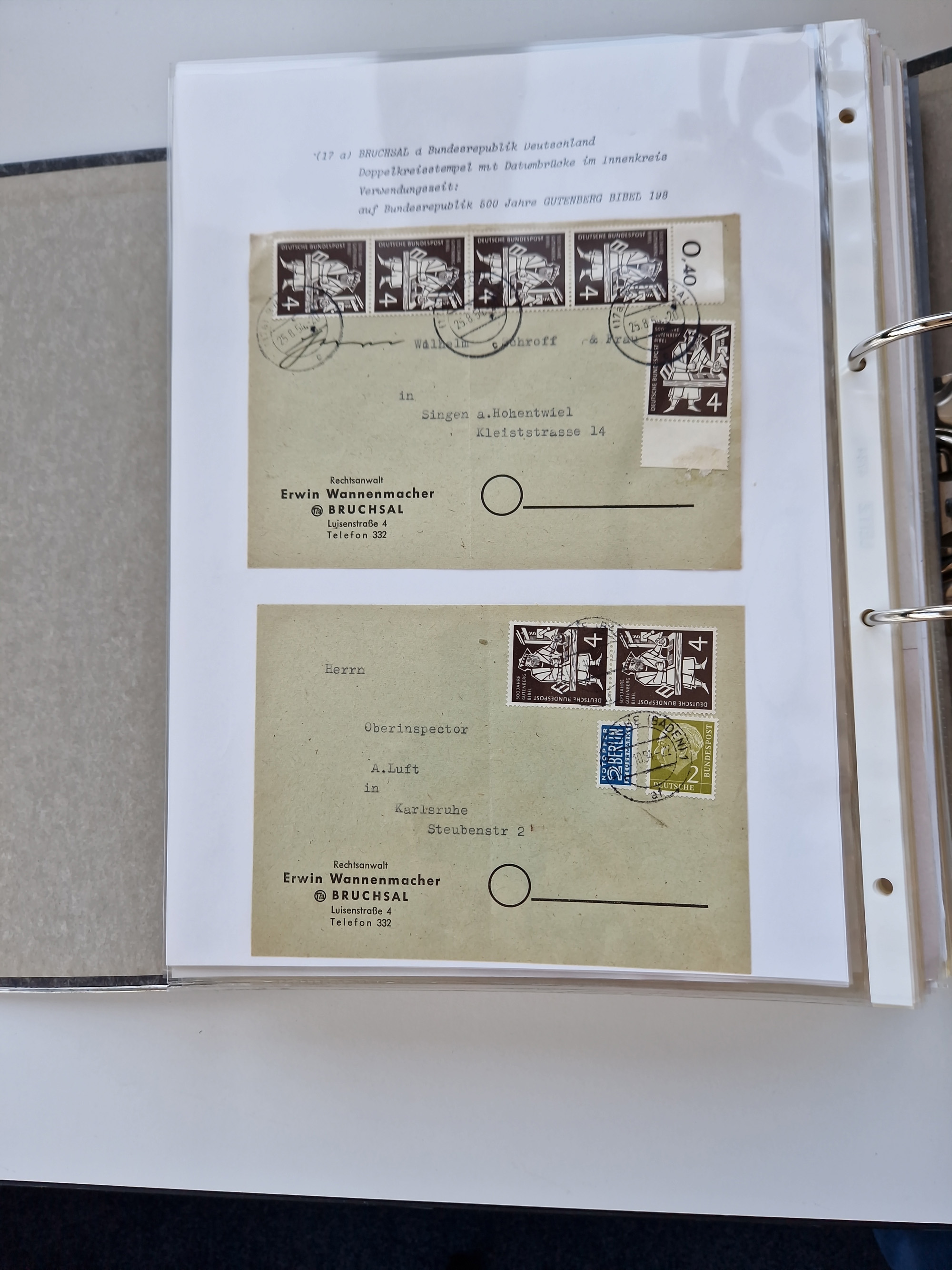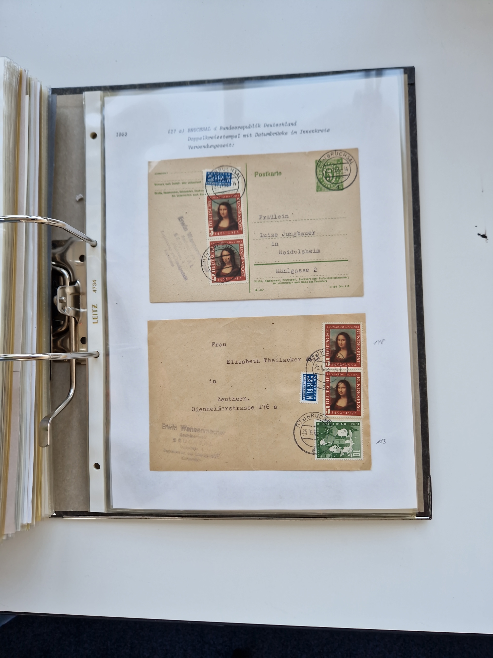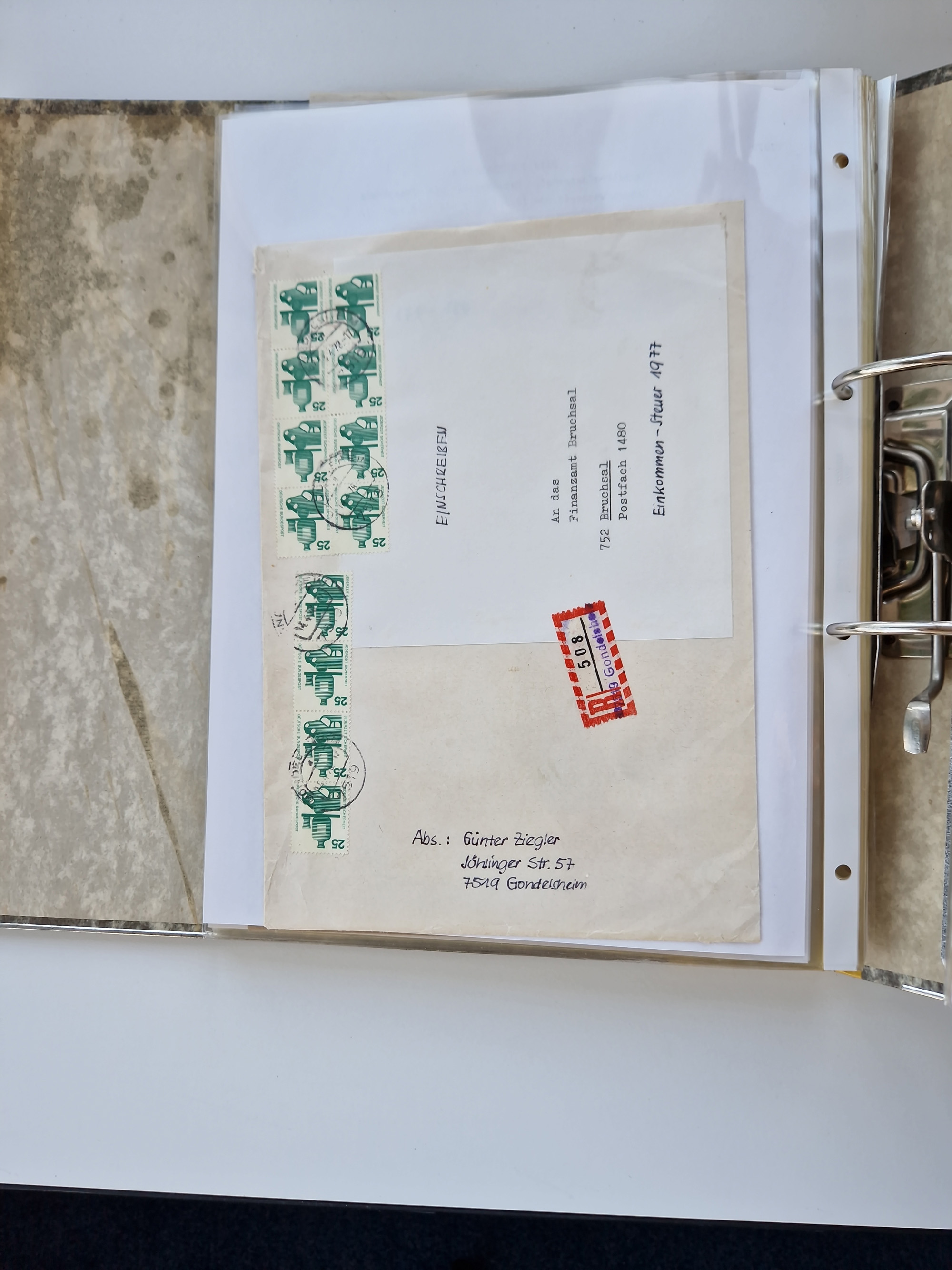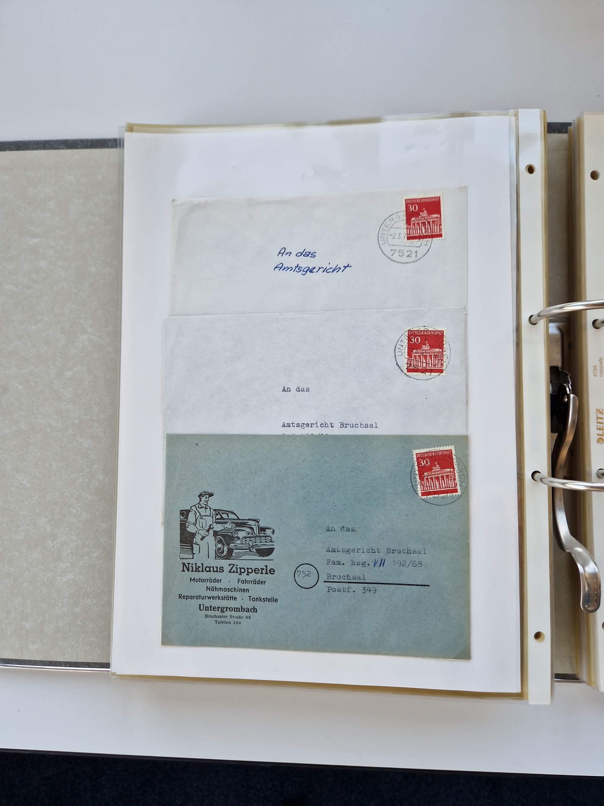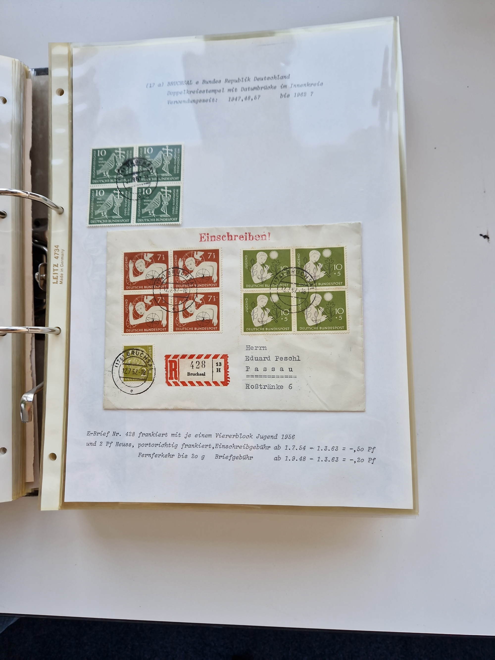 1870/2010 (ca.), Bruchsal und Umgebung, umfangreiche Heimatsammlung in 39 Ringordnern etwas unkonventionell, aber nichtsdestotrotz sehr inhaltsreich gesammelt mit zahlreichen Belegen ab Dt.Reich und auch losen Marken, u.a. Brustschilde mit Marken und besseren Frankaturen, Nachkriegszeit mit Besatzungszonen, auch eingehende Post aus Aller Welt.