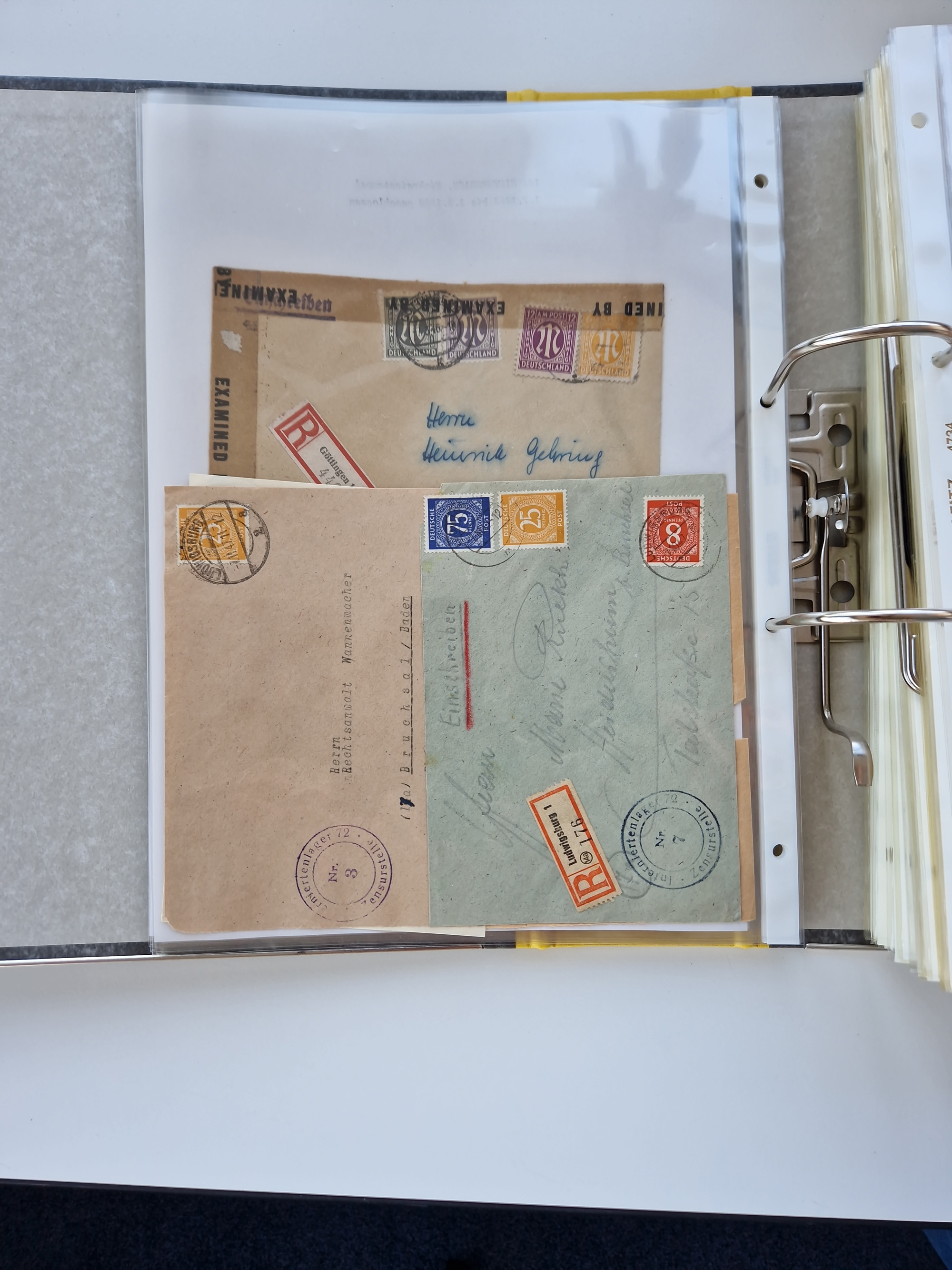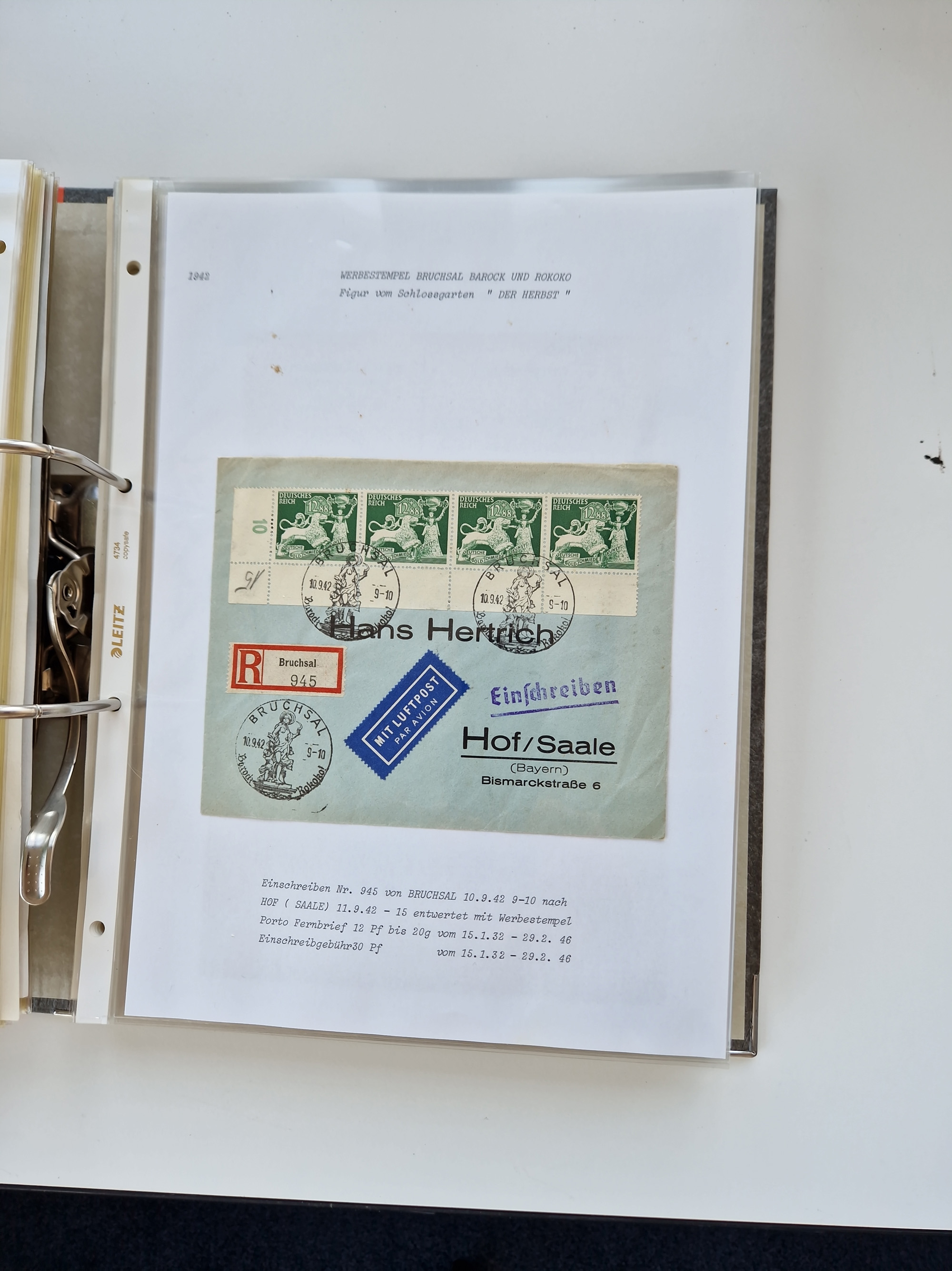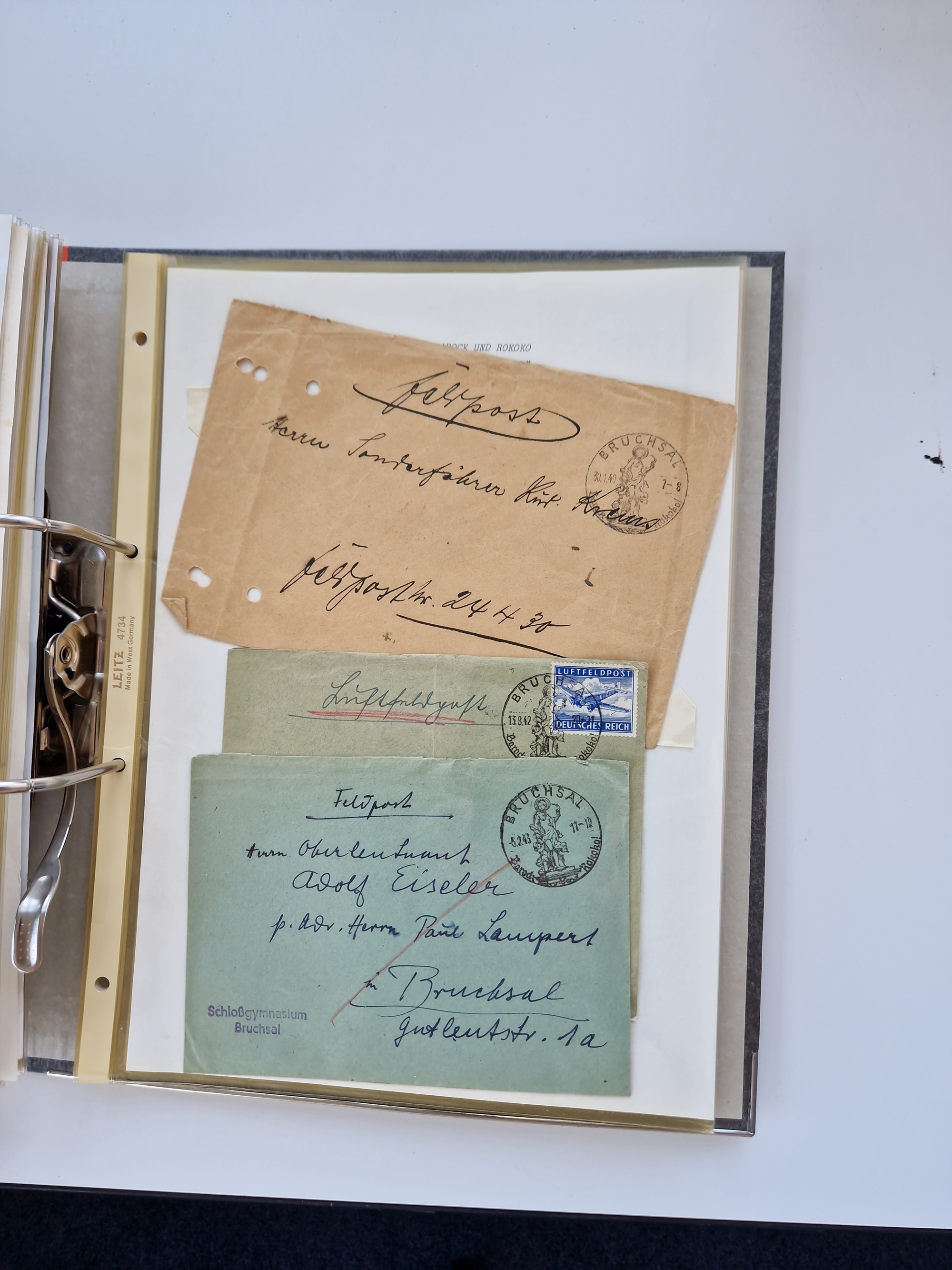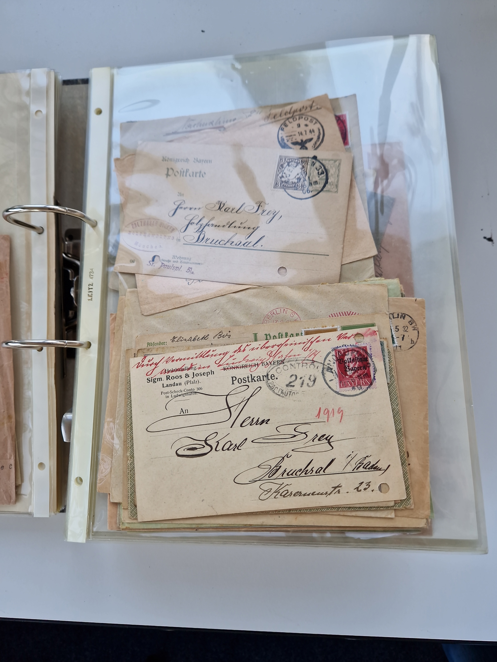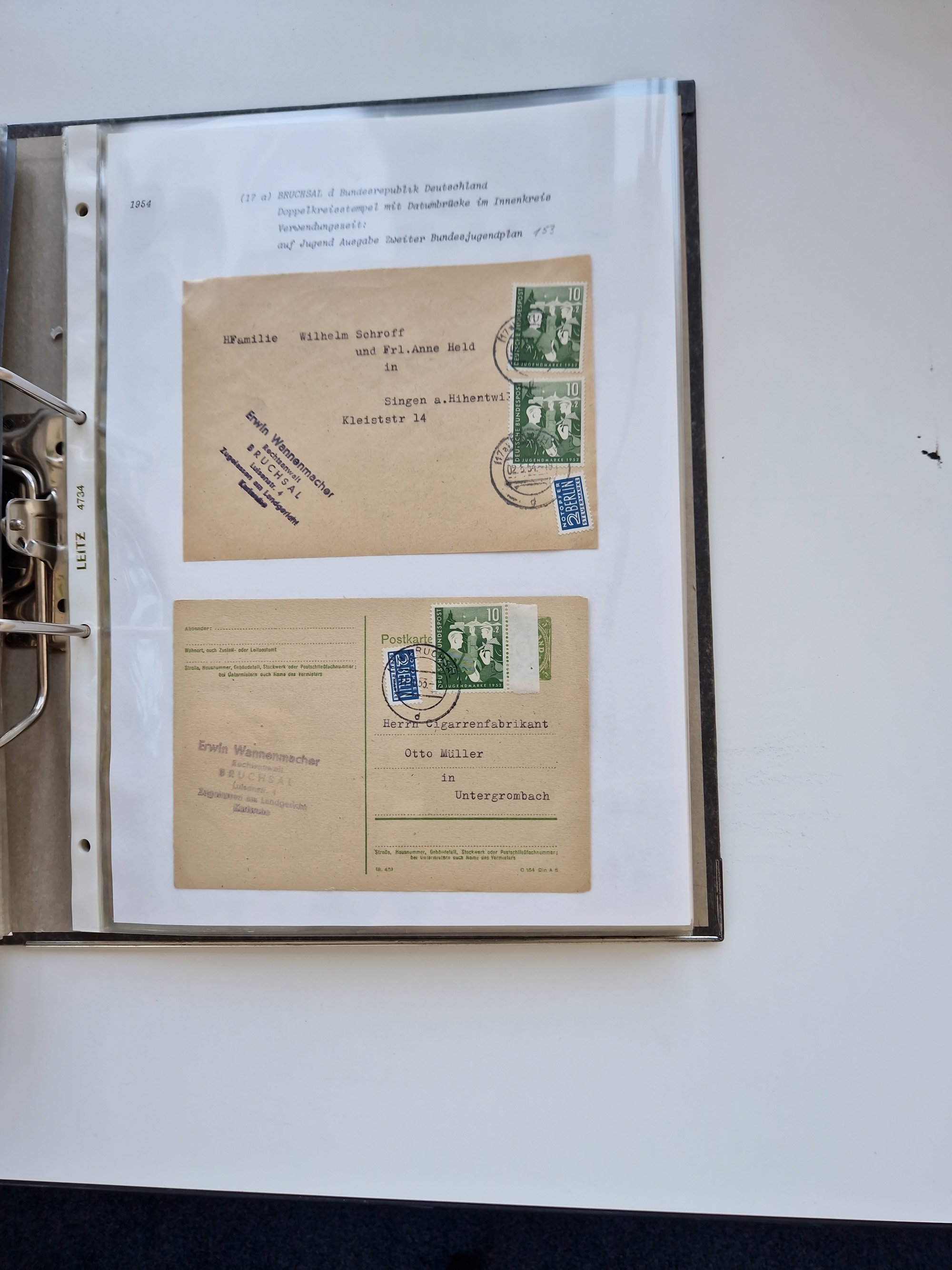 1870/2010 (ca.), Bruchsal und Umgebung, umfangreiche Heimatsammlung in 39 Ringordnern etwas unkonventionell, aber nichtsdestotrotz sehr inhaltsreich gesammelt mit zahlreichen Belegen ab Dt.Reich und auch losen Marken, u.a. Brustschilde mit Marken und besseren Frankaturen, Nachkriegszeit mit Besatzungszonen, auch eingehende Post aus Aller Welt.