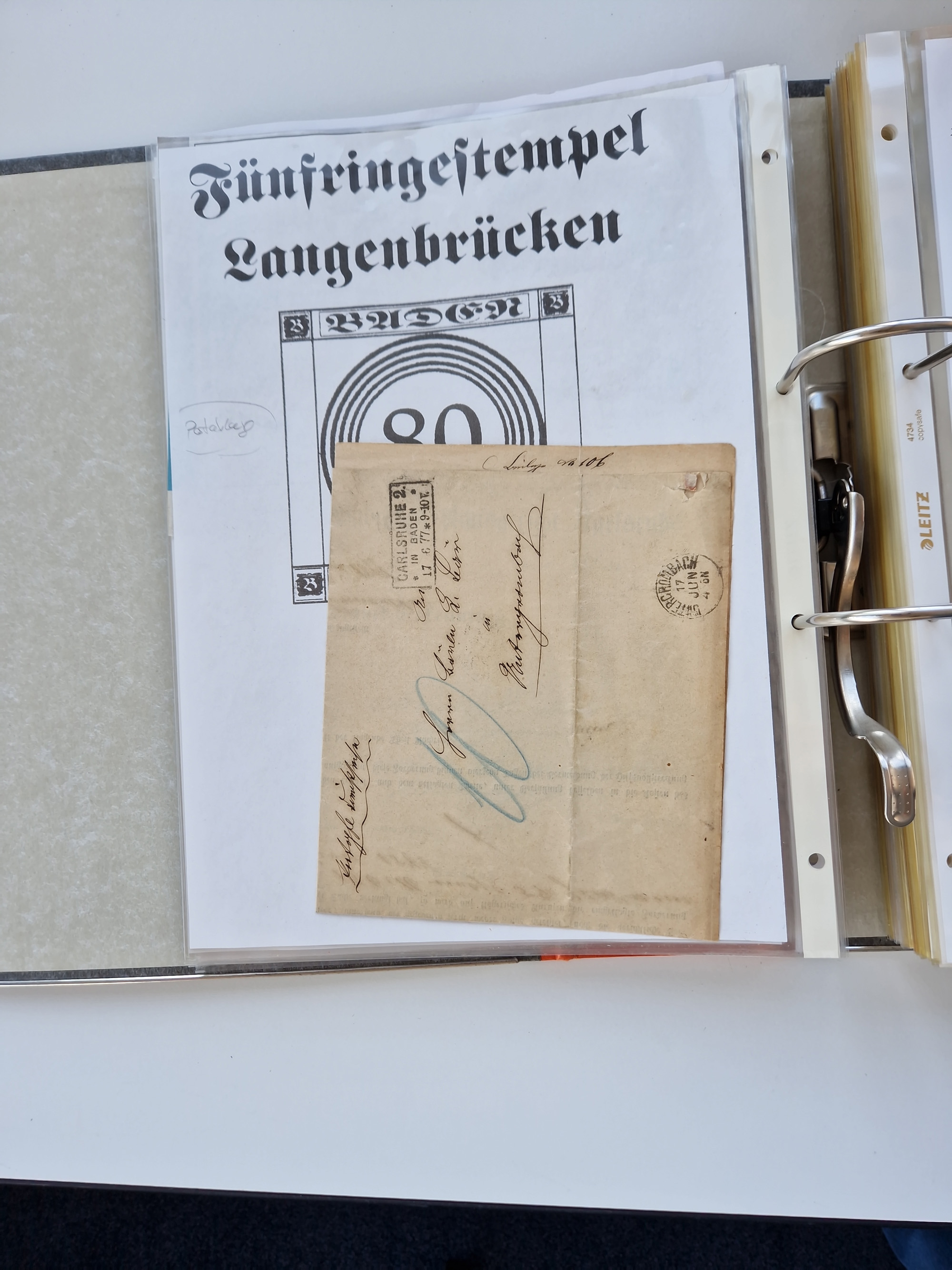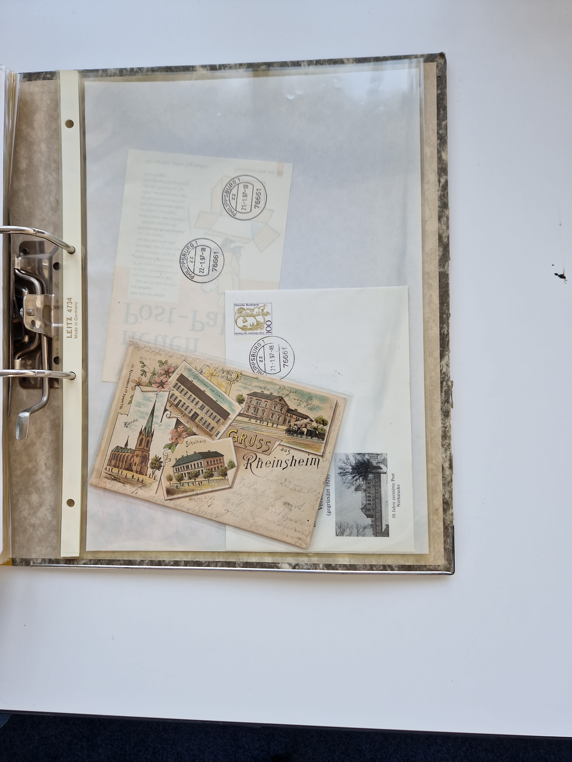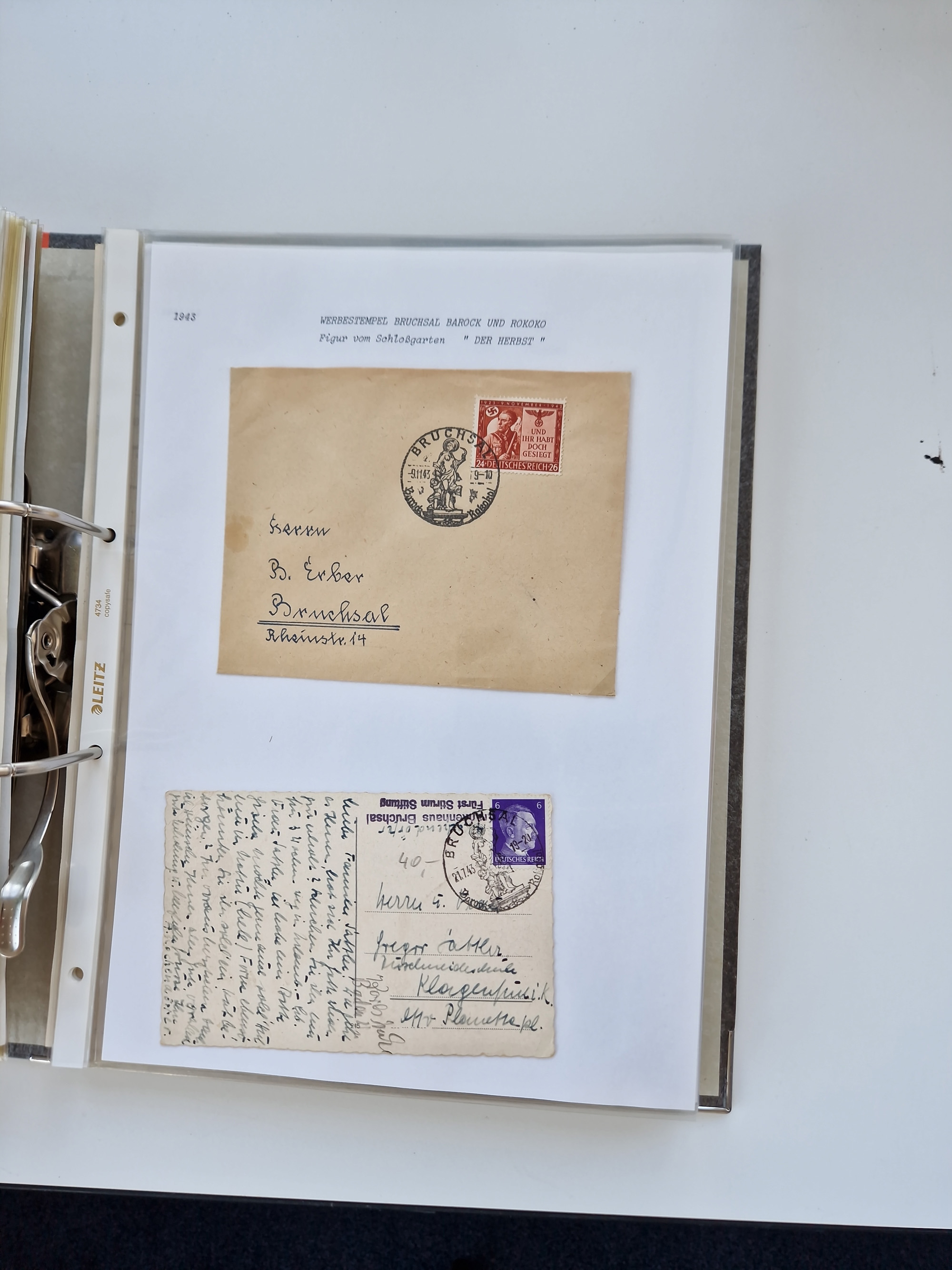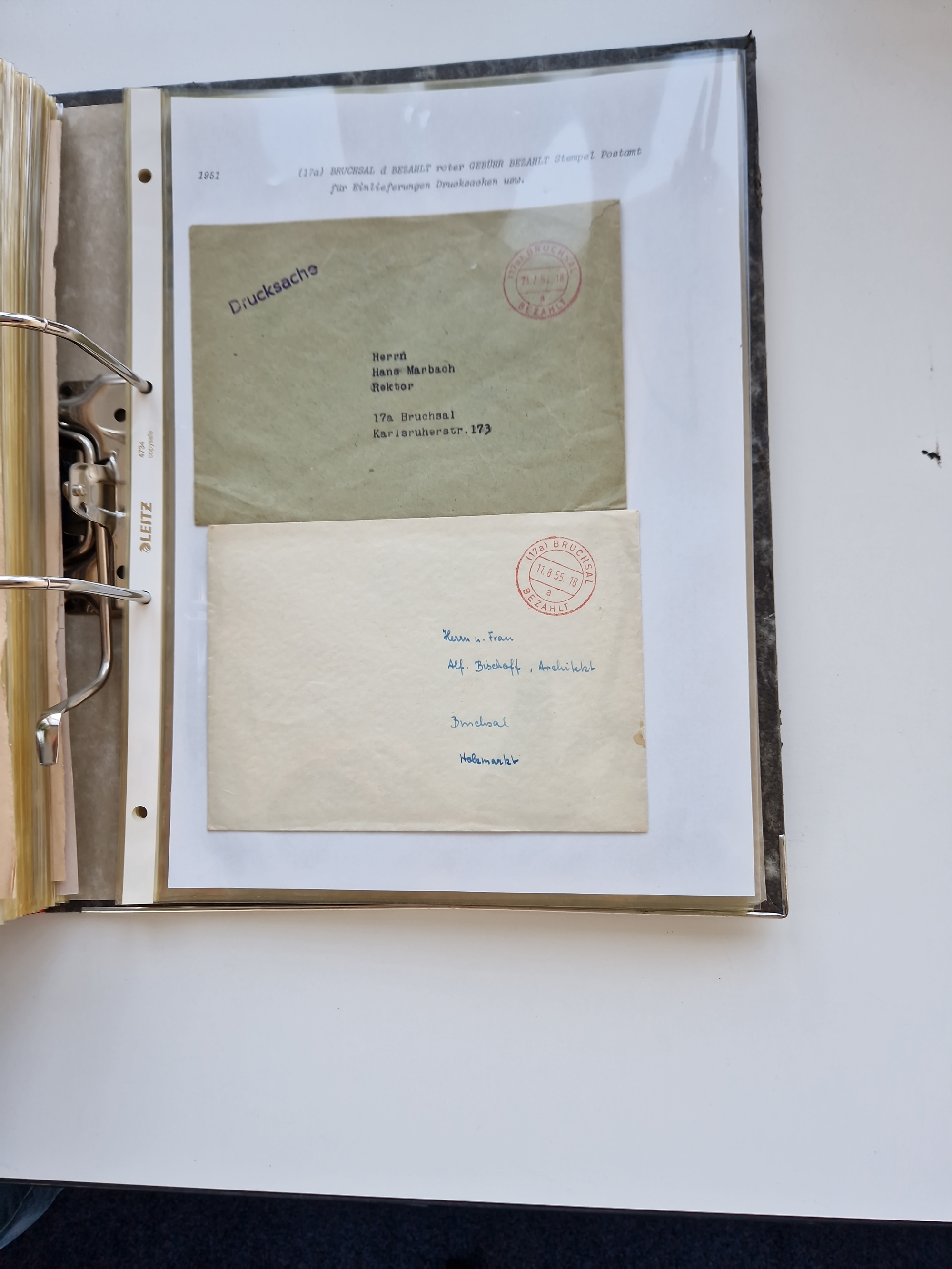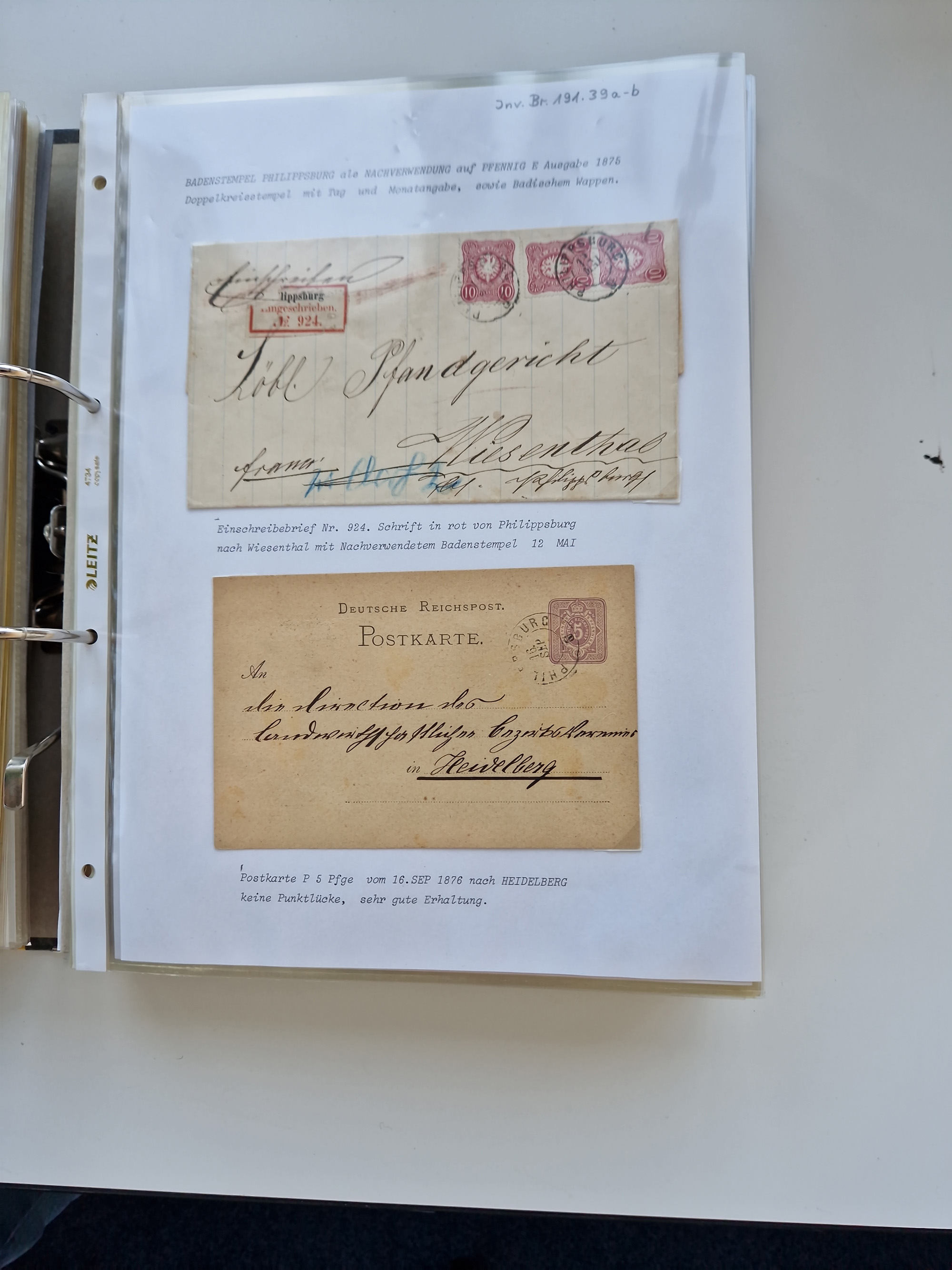 1870/2010 (ca.), Bruchsal und Umgebung, umfangreiche Heimatsammlung in 39 Ringordnern etwas unkonventionell, aber nichtsdestotrotz sehr inhaltsreich gesammelt mit zahlreichen Belegen ab Dt.Reich und auch losen Marken, u.a. Brustschilde mit Marken und besseren Frankaturen, Nachkriegszeit mit Besatzungszonen, auch eingehende Post aus Aller Welt.