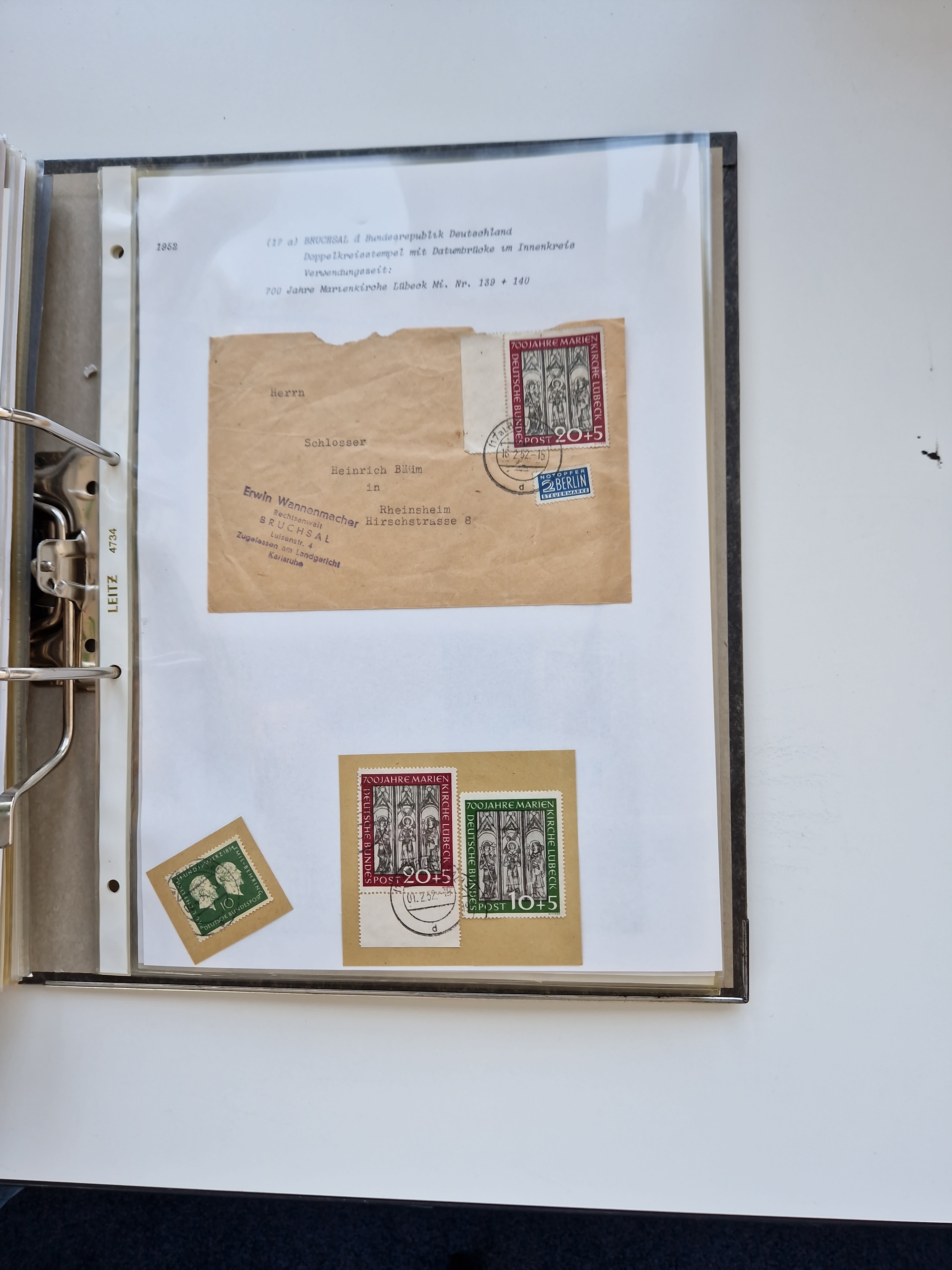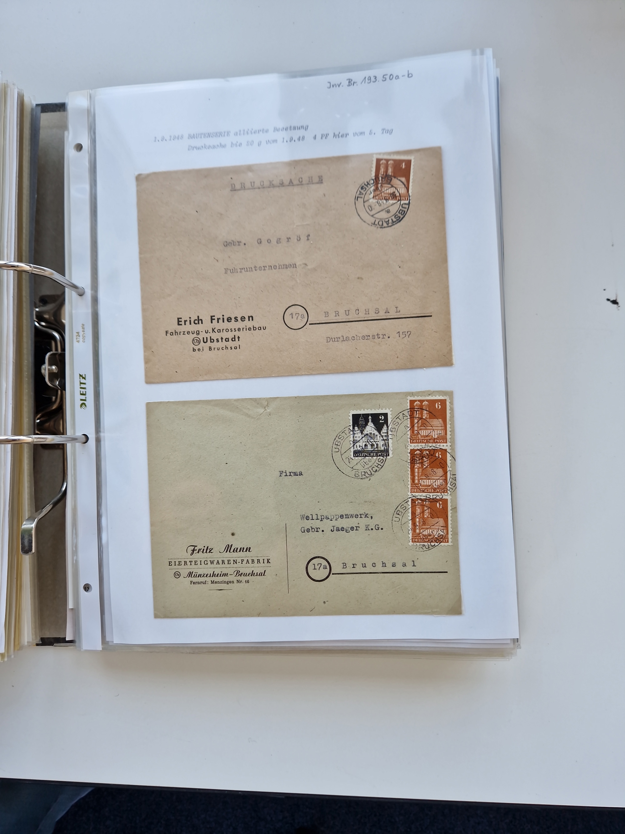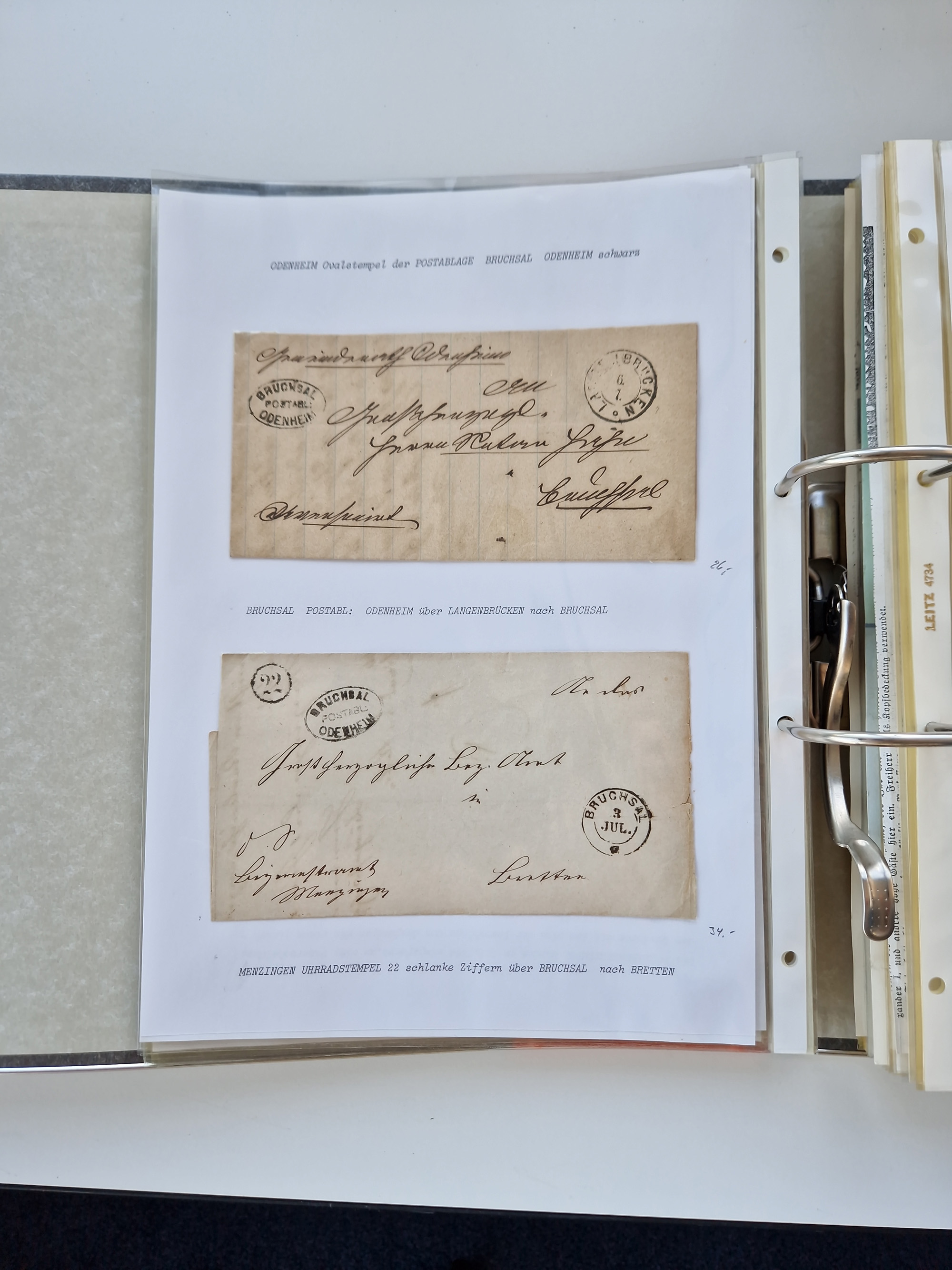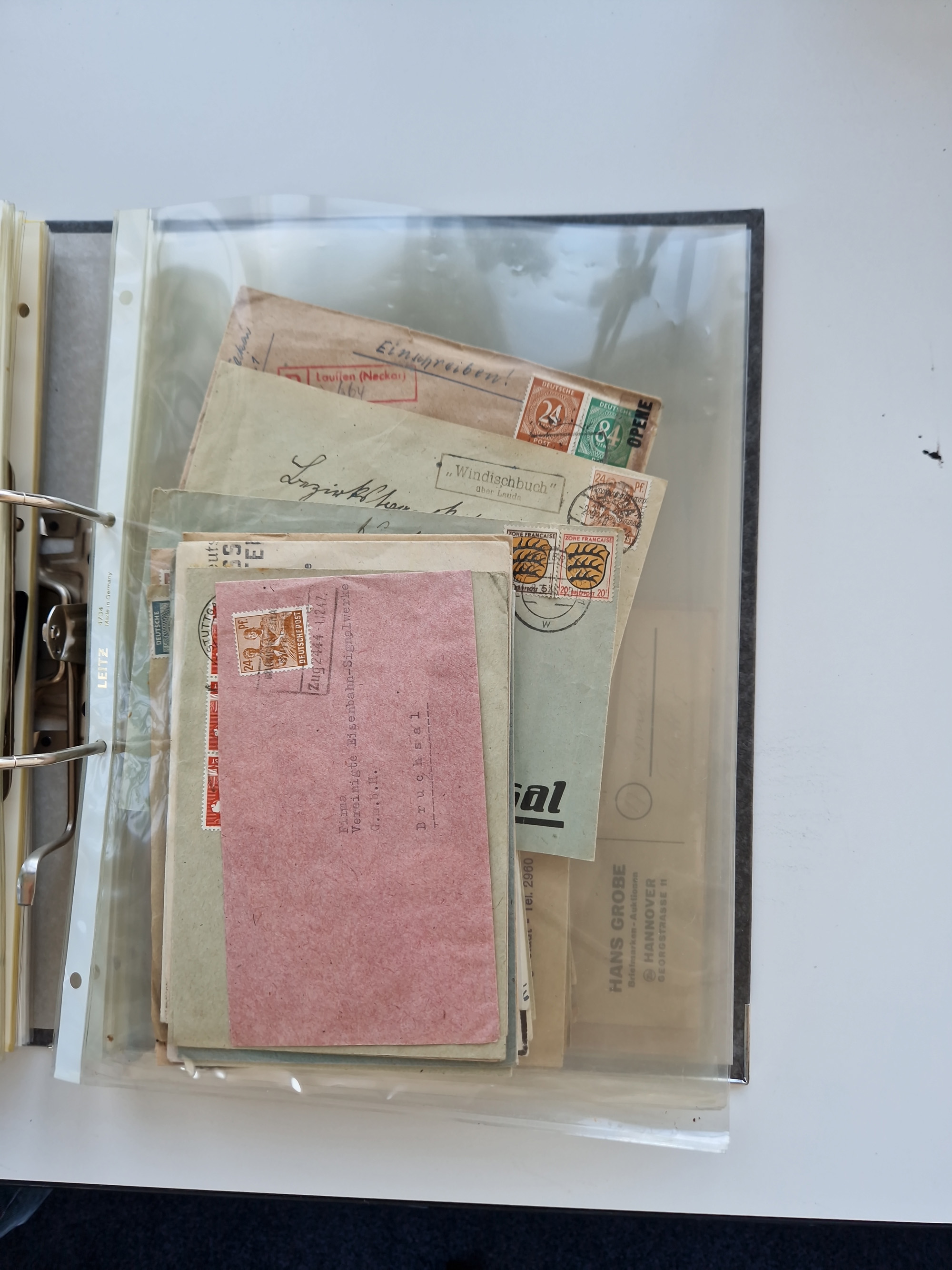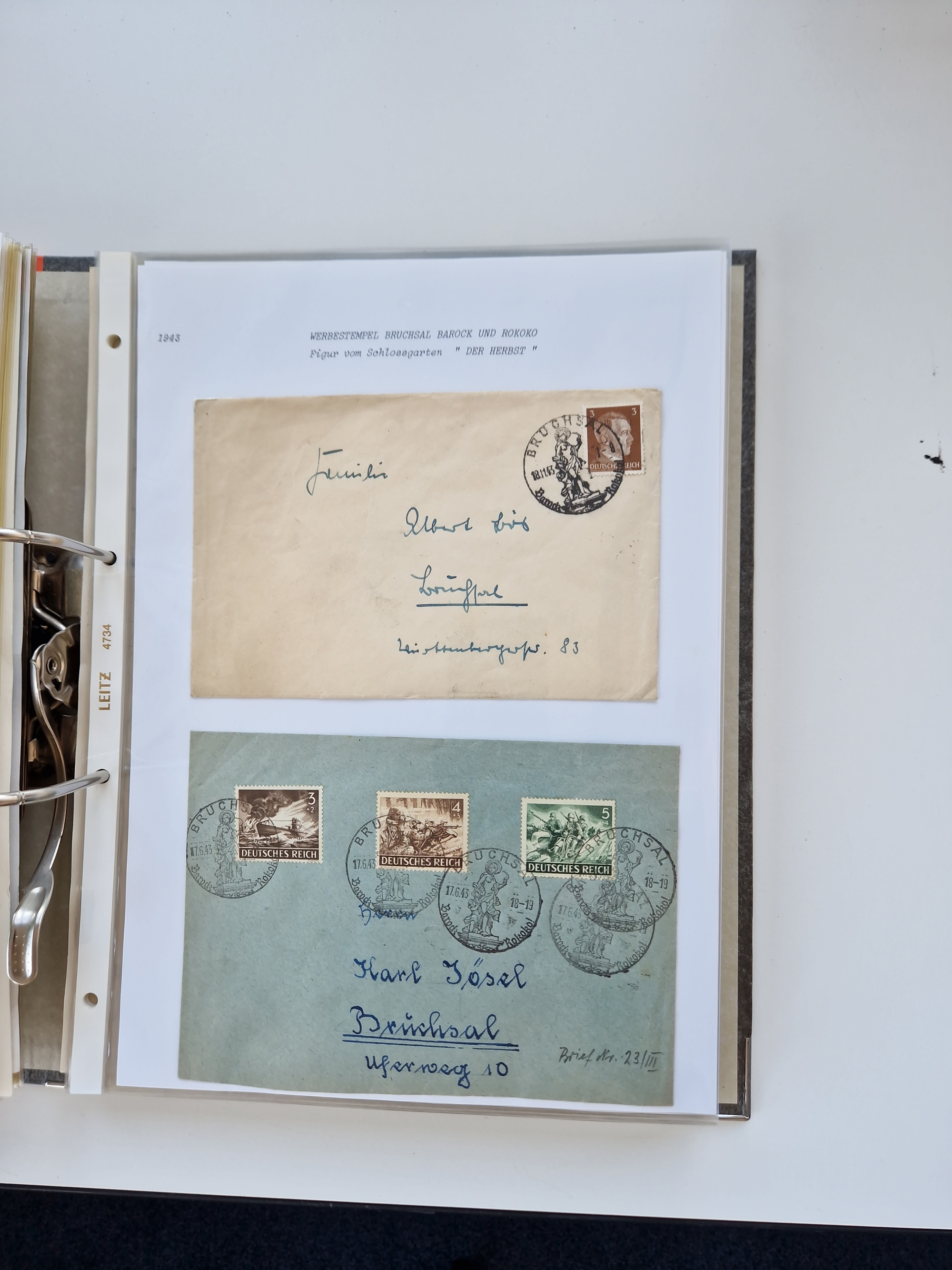 1870/2010 (ca.), Bruchsal und Umgebung, umfangreiche Heimatsammlung in 39 Ringordnern etwas unkonventionell, aber nichtsdestotrotz sehr inhaltsreich gesammelt mit zahlreichen Belegen ab Dt.Reich und auch losen Marken, u.a. Brustschilde mit Marken und besseren Frankaturen, Nachkriegszeit mit Besatzungszonen, auch eingehende Post aus Aller Welt.