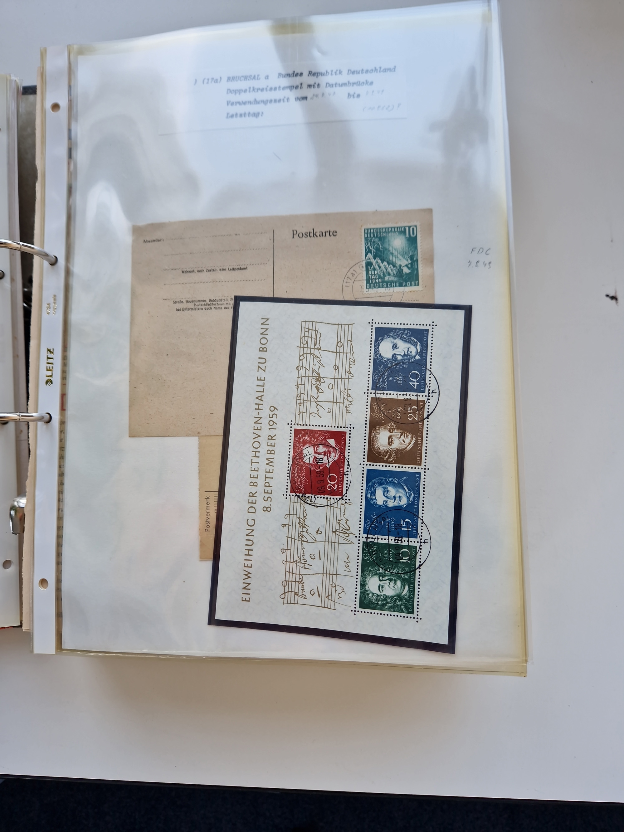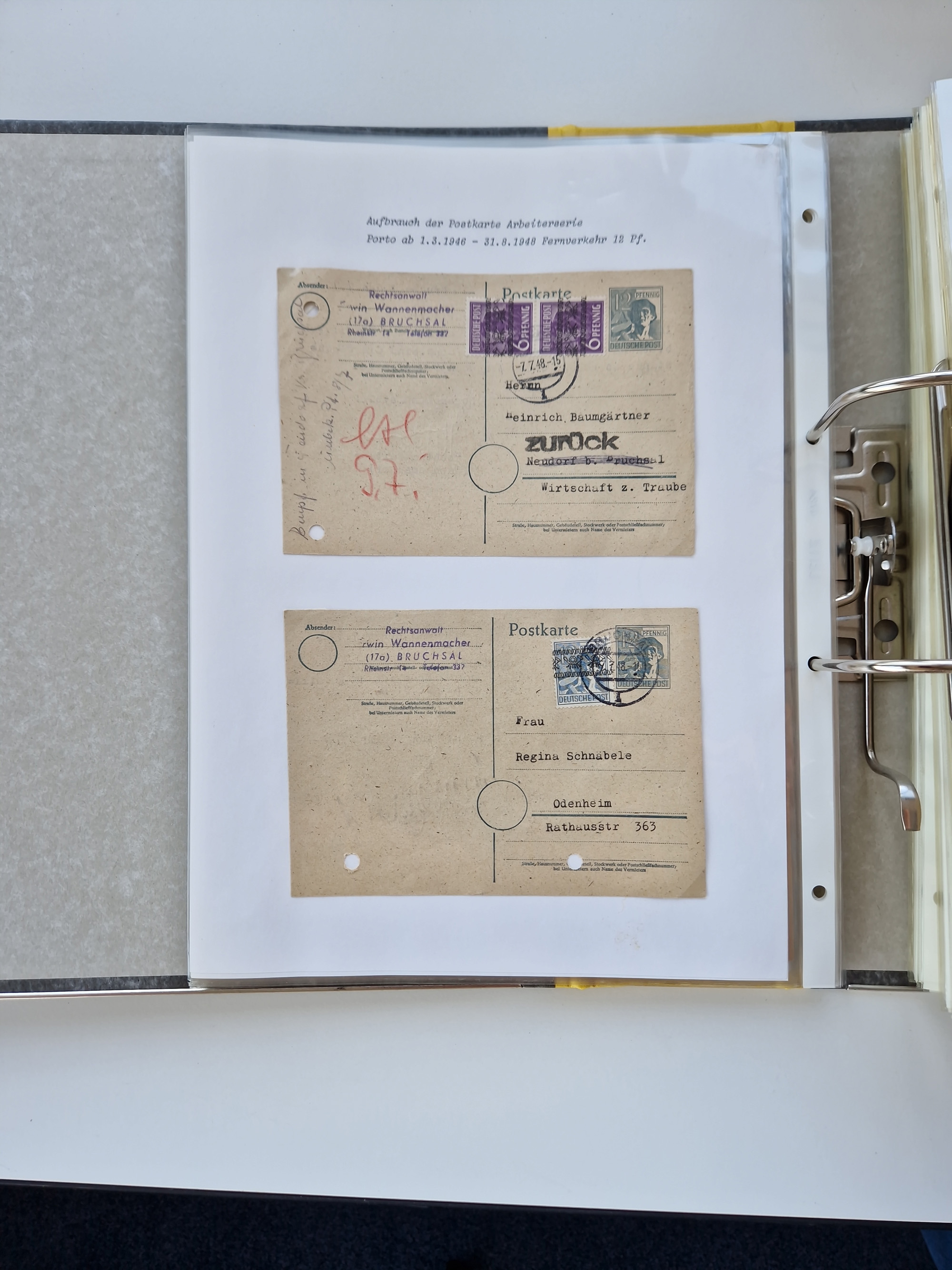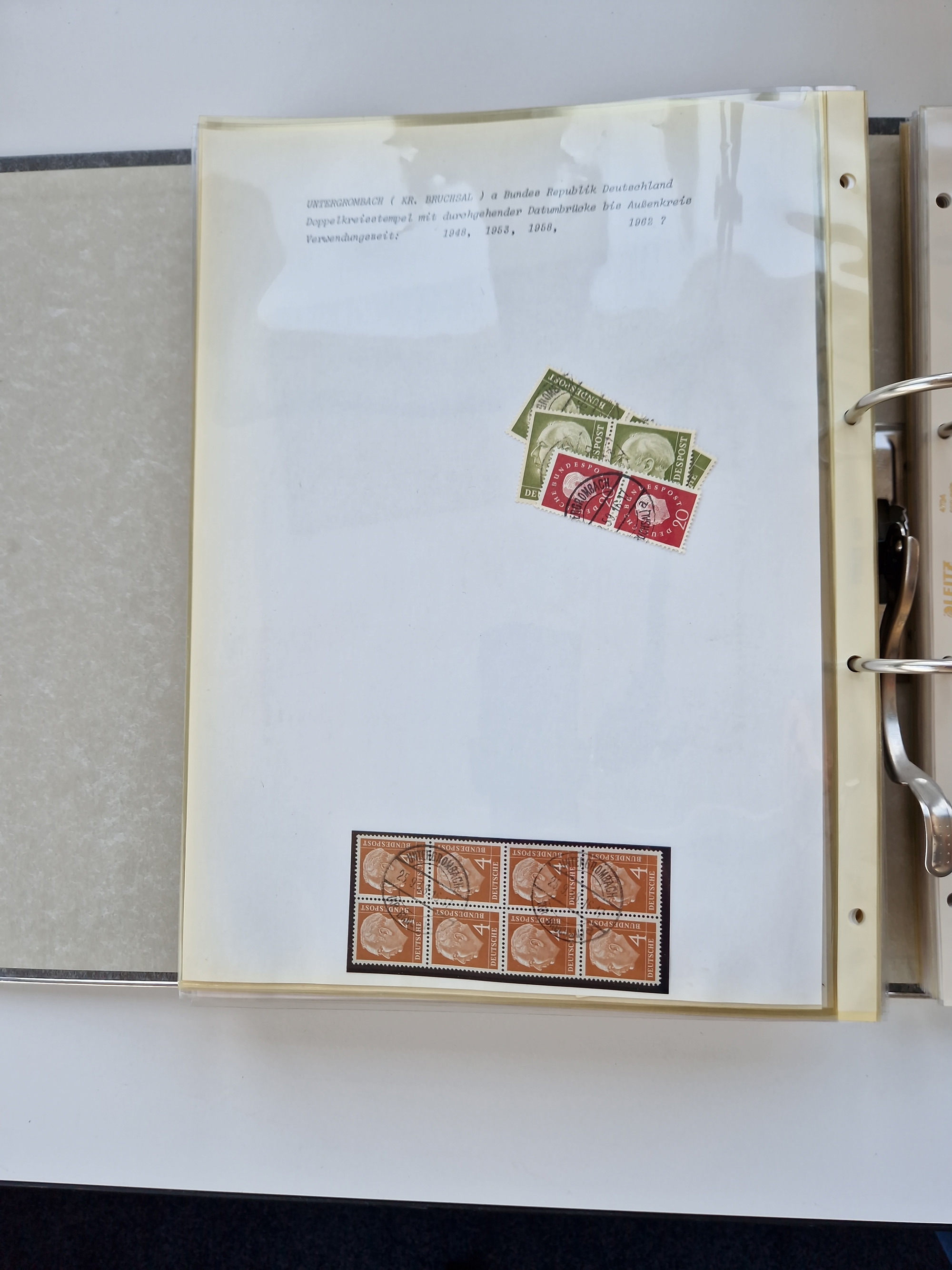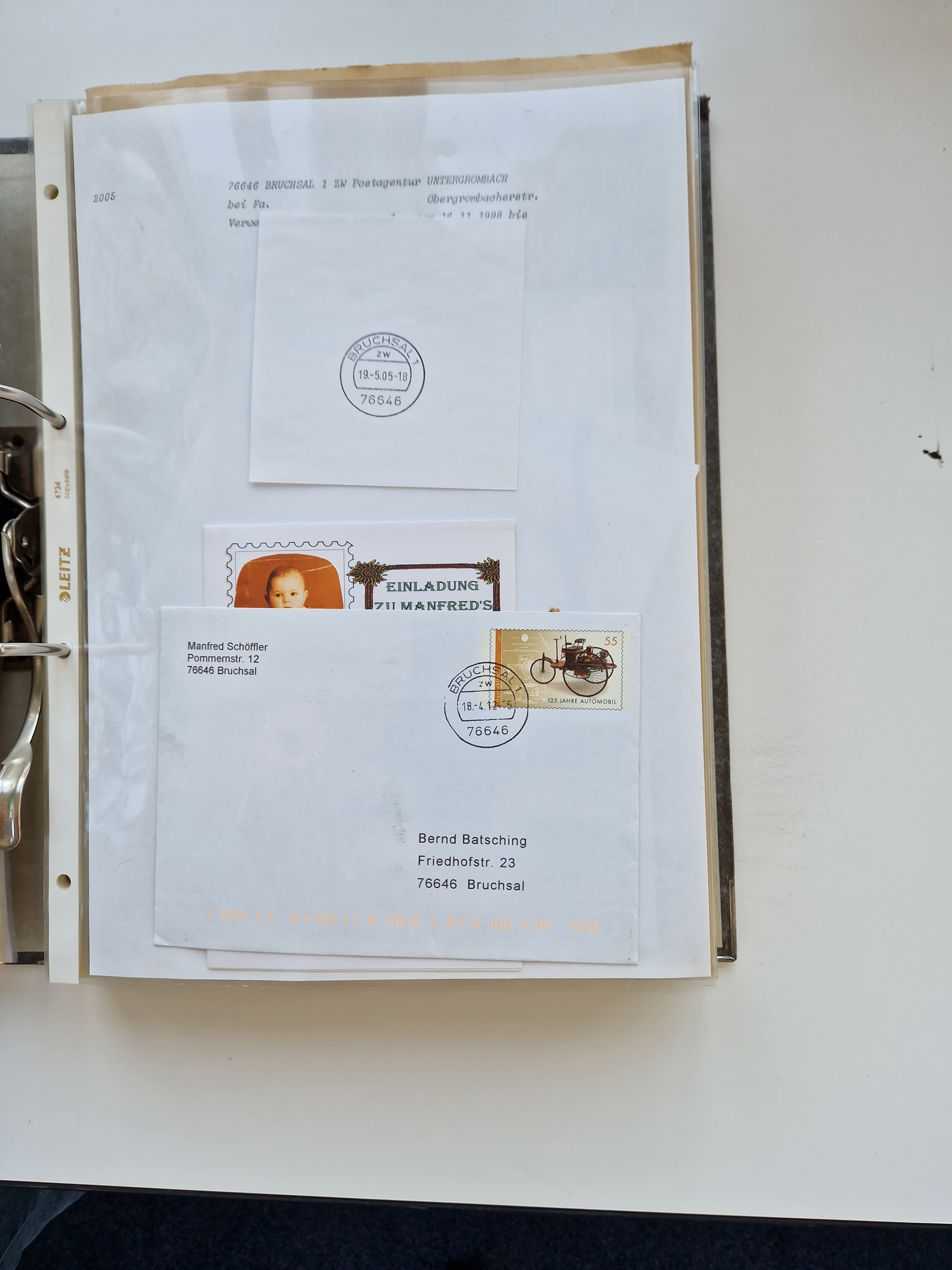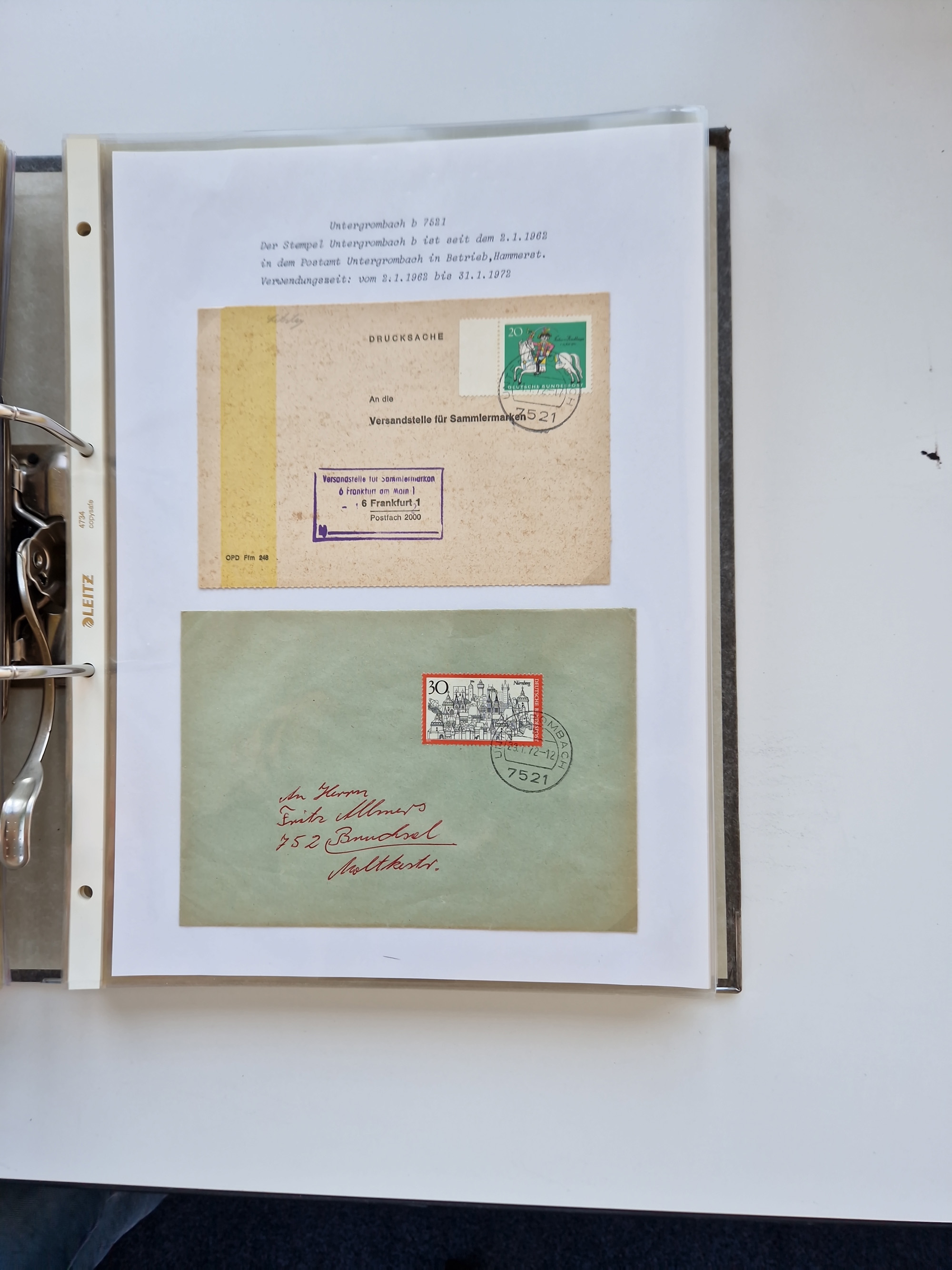 1870/2010 (ca.), Bruchsal und Umgebung, umfangreiche Heimatsammlung in 39 Ringordnern etwas unkonventionell, aber nichtsdestotrotz sehr inhaltsreich gesammelt mit zahlreichen Belegen ab Dt.Reich und auch losen Marken, u.a. Brustschilde mit Marken und besseren Frankaturen, Nachkriegszeit mit Besatzungszonen, auch eingehende Post aus Aller Welt.