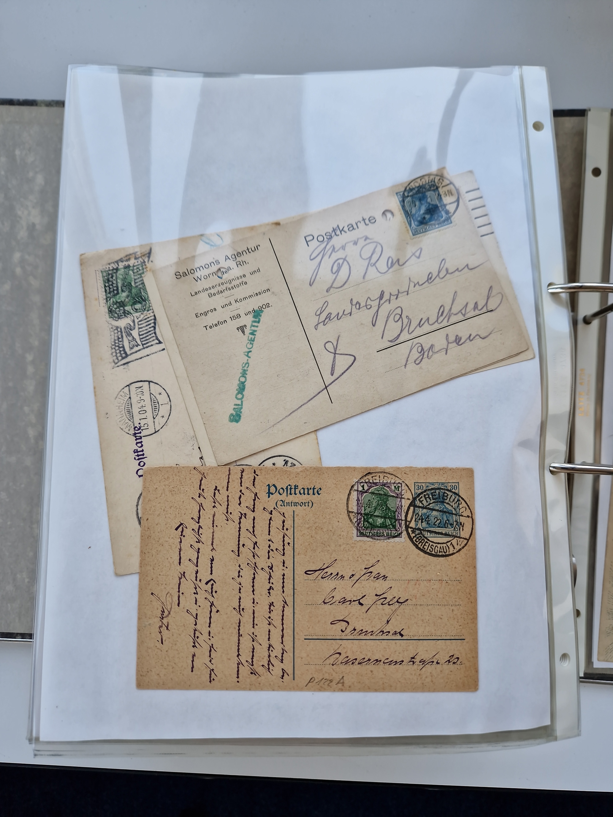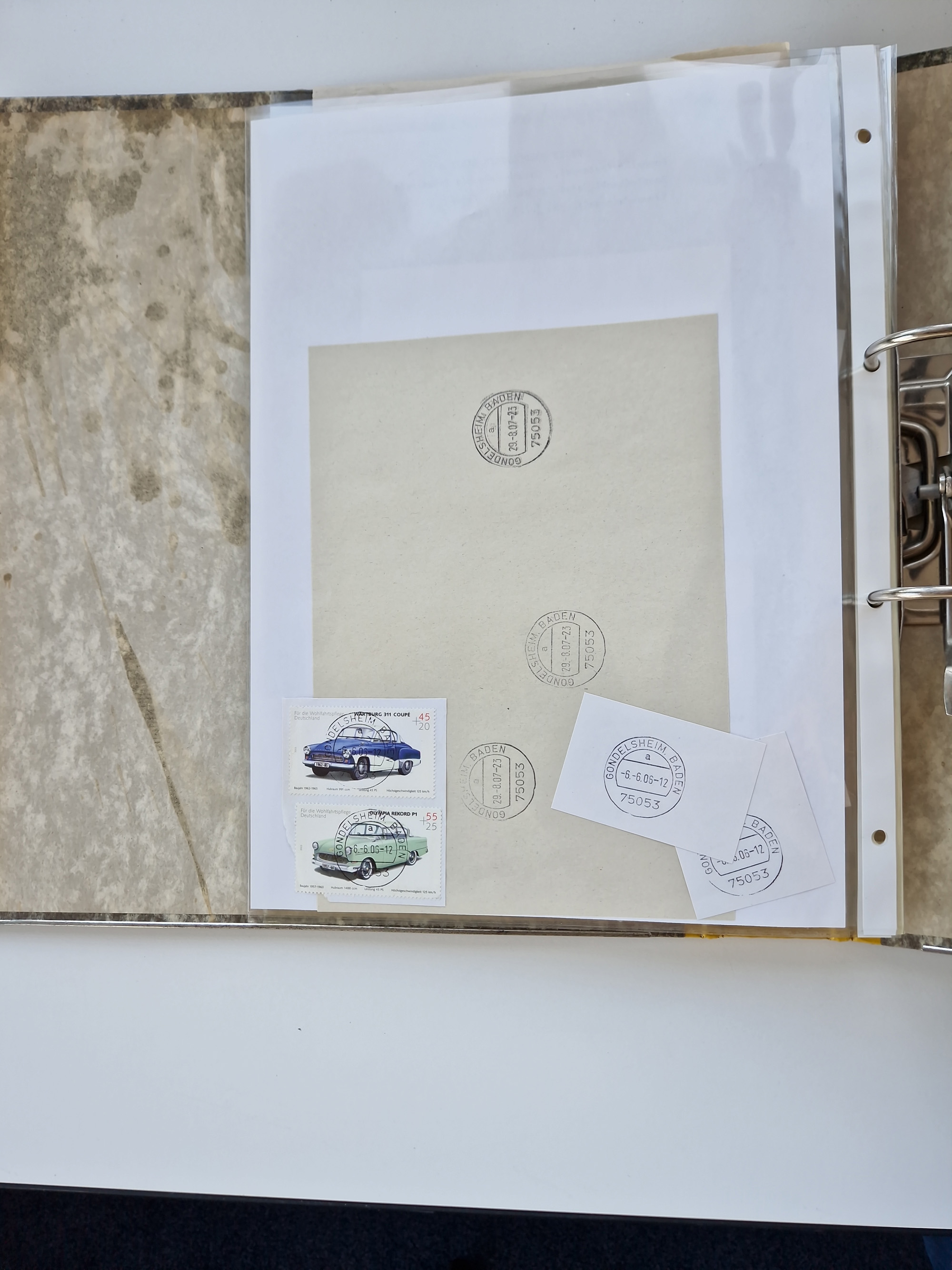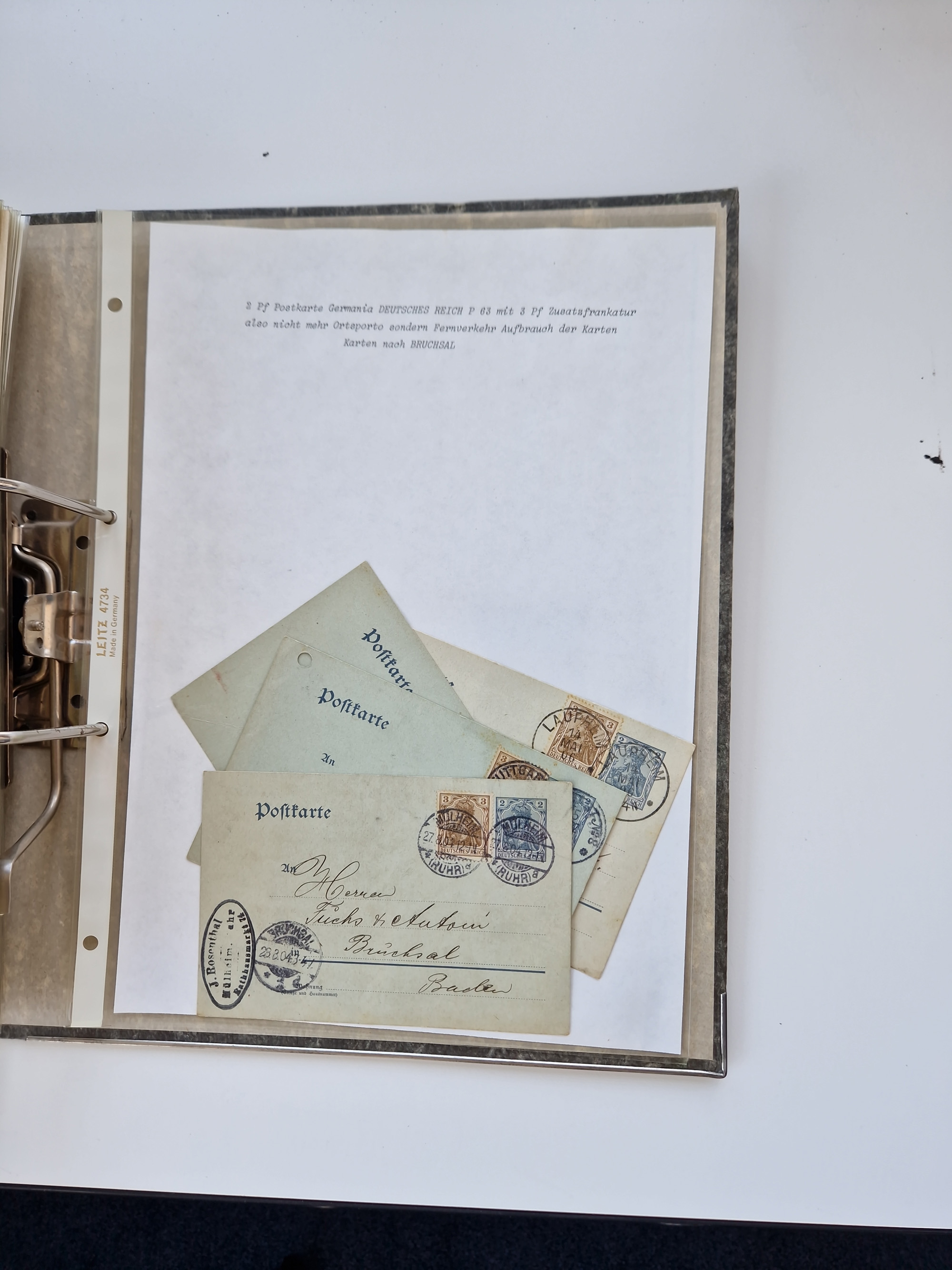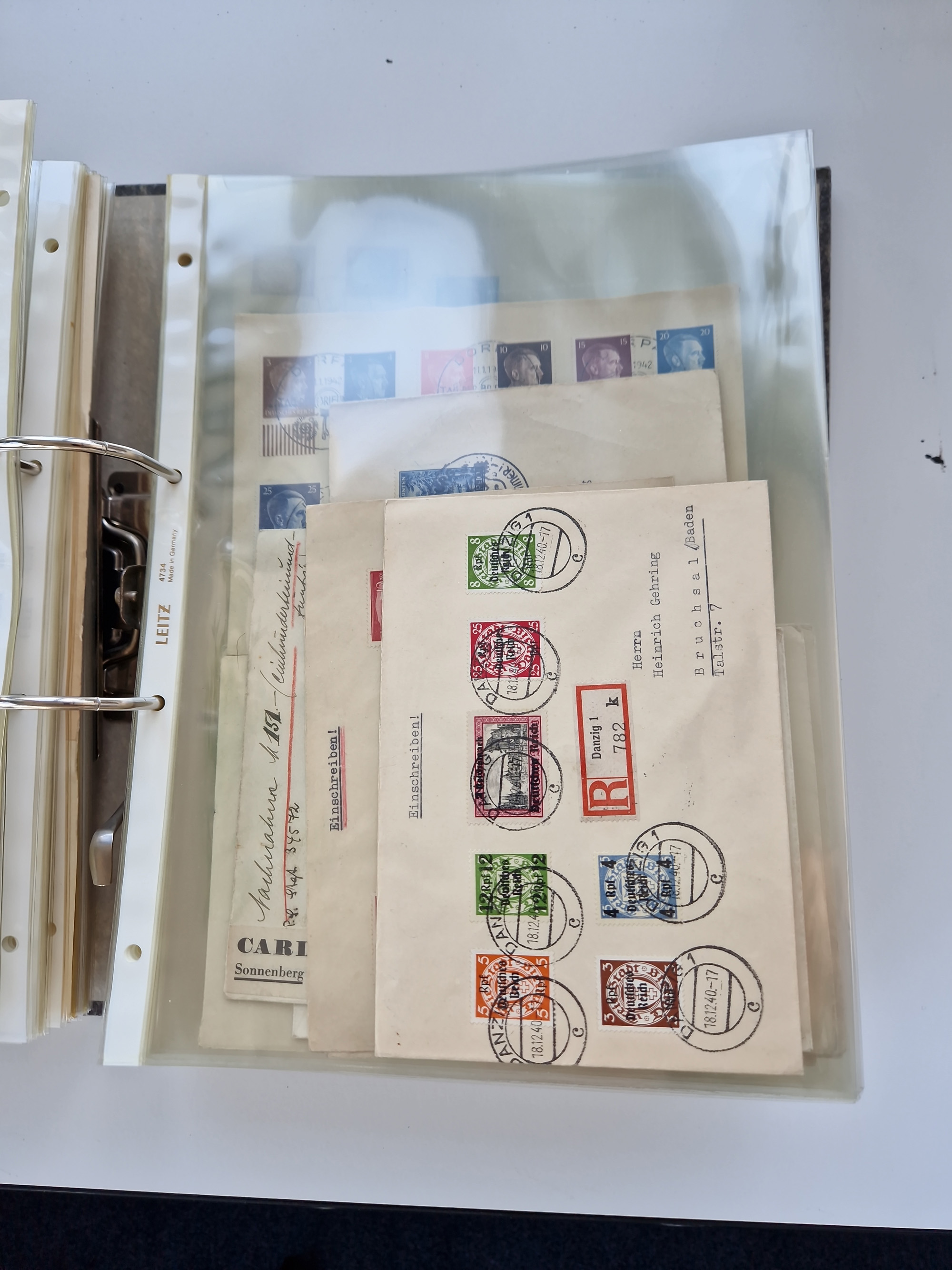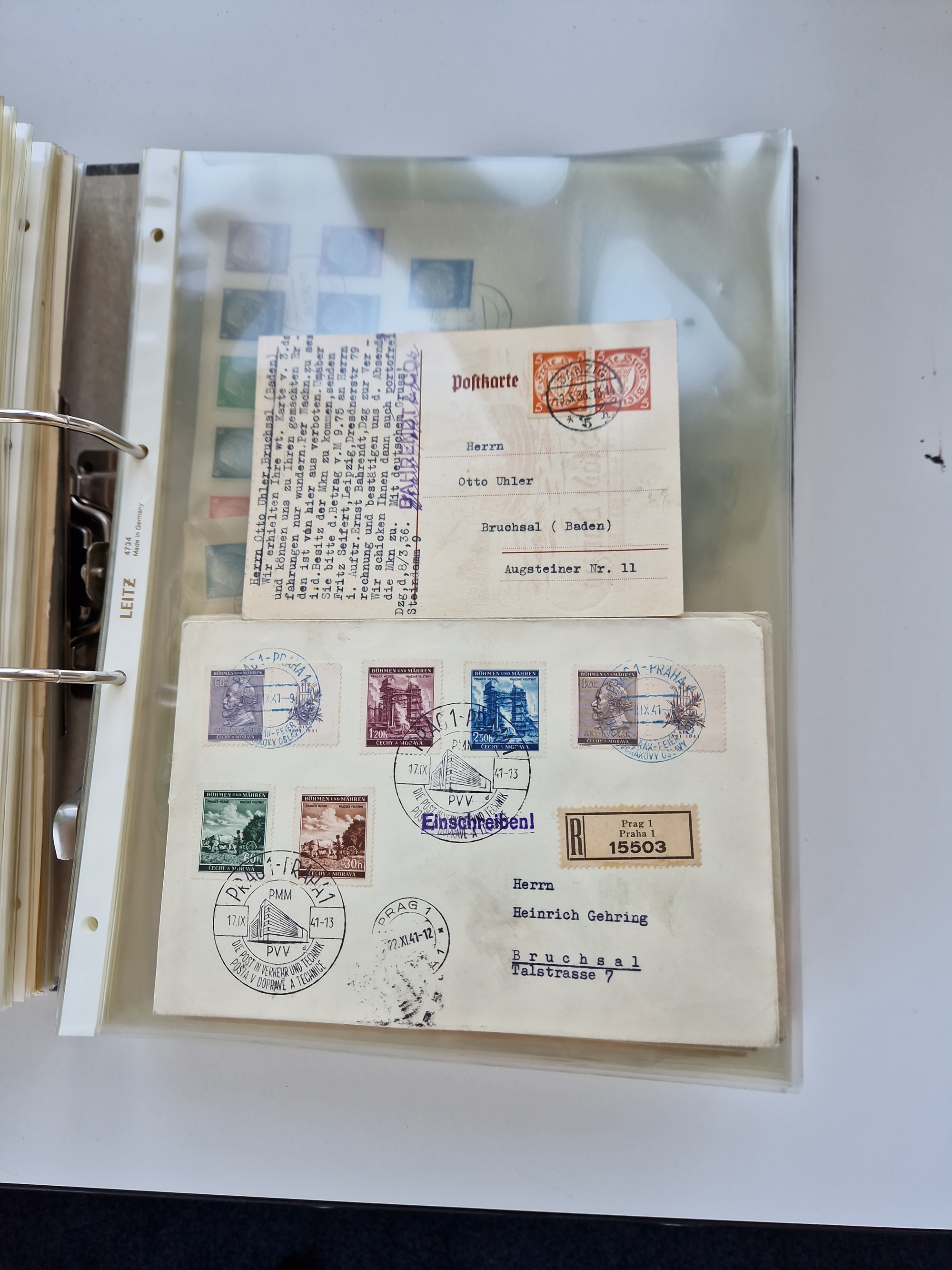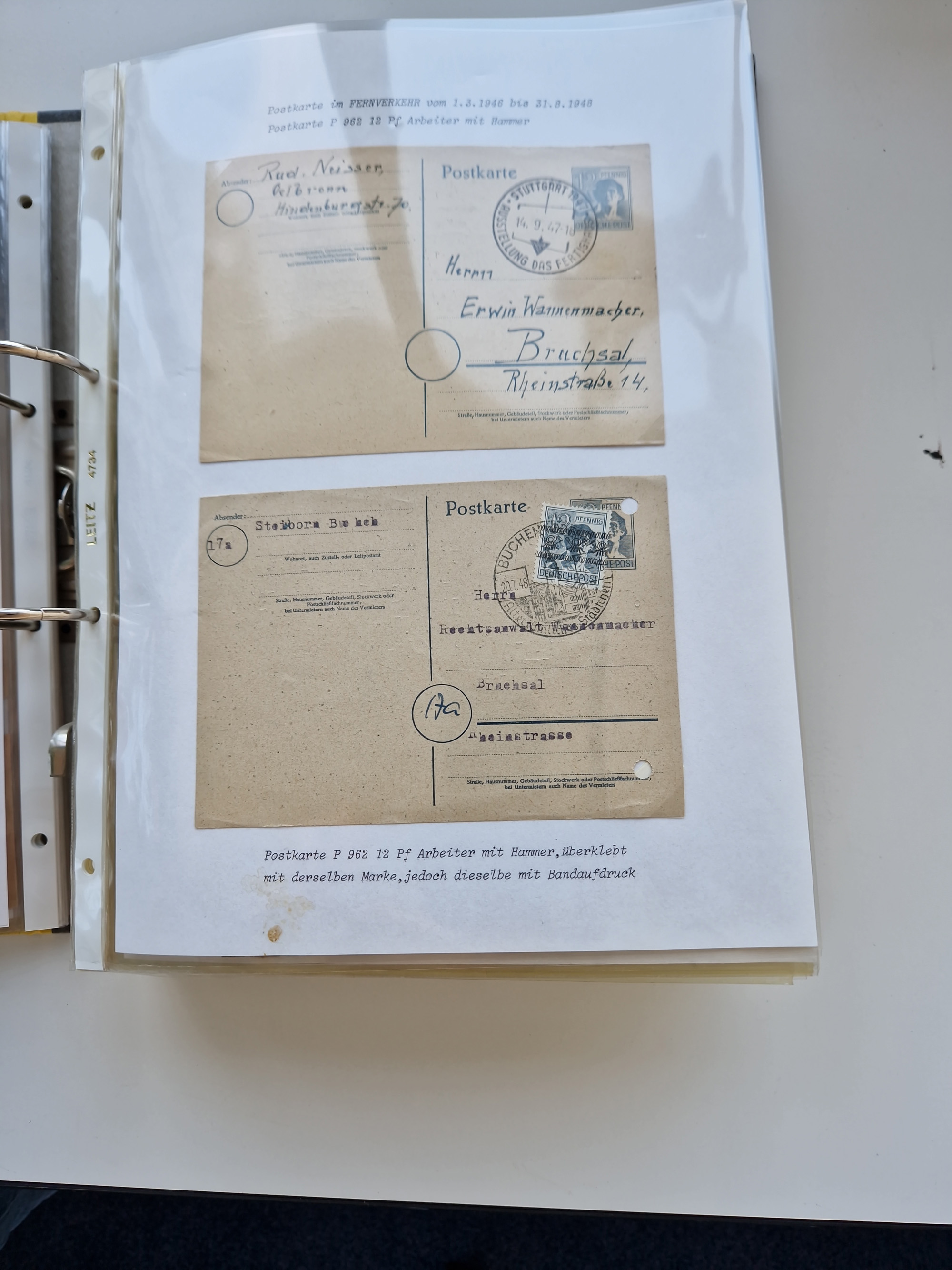 1870/2010 (ca.), Bruchsal und Umgebung, umfangreiche Heimatsammlung in 39 Ringordnern etwas unkonventionell, aber nichtsdestotrotz sehr inhaltsreich gesammelt mit zahlreichen Belegen ab Dt.Reich und auch losen Marken, u.a. Brustschilde mit Marken und besseren Frankaturen, Nachkriegszeit mit Besatzungszonen, auch eingehende Post aus Aller Welt.