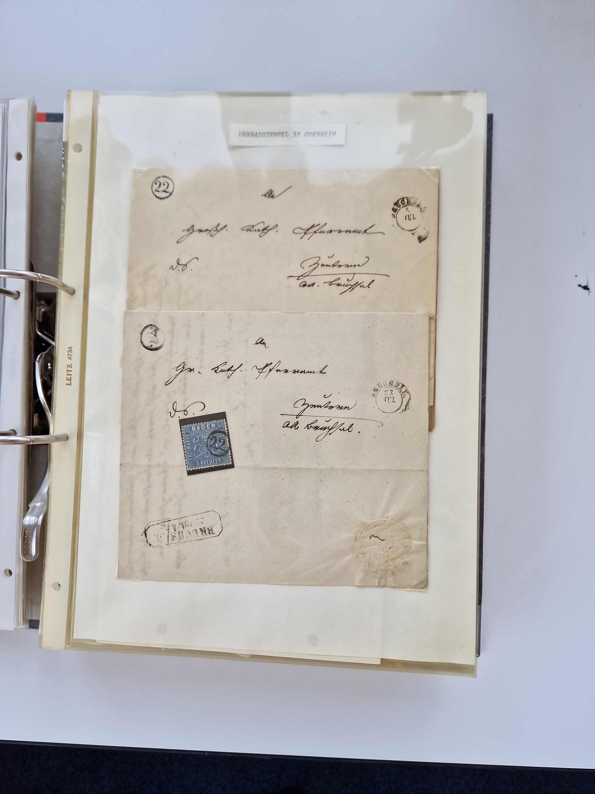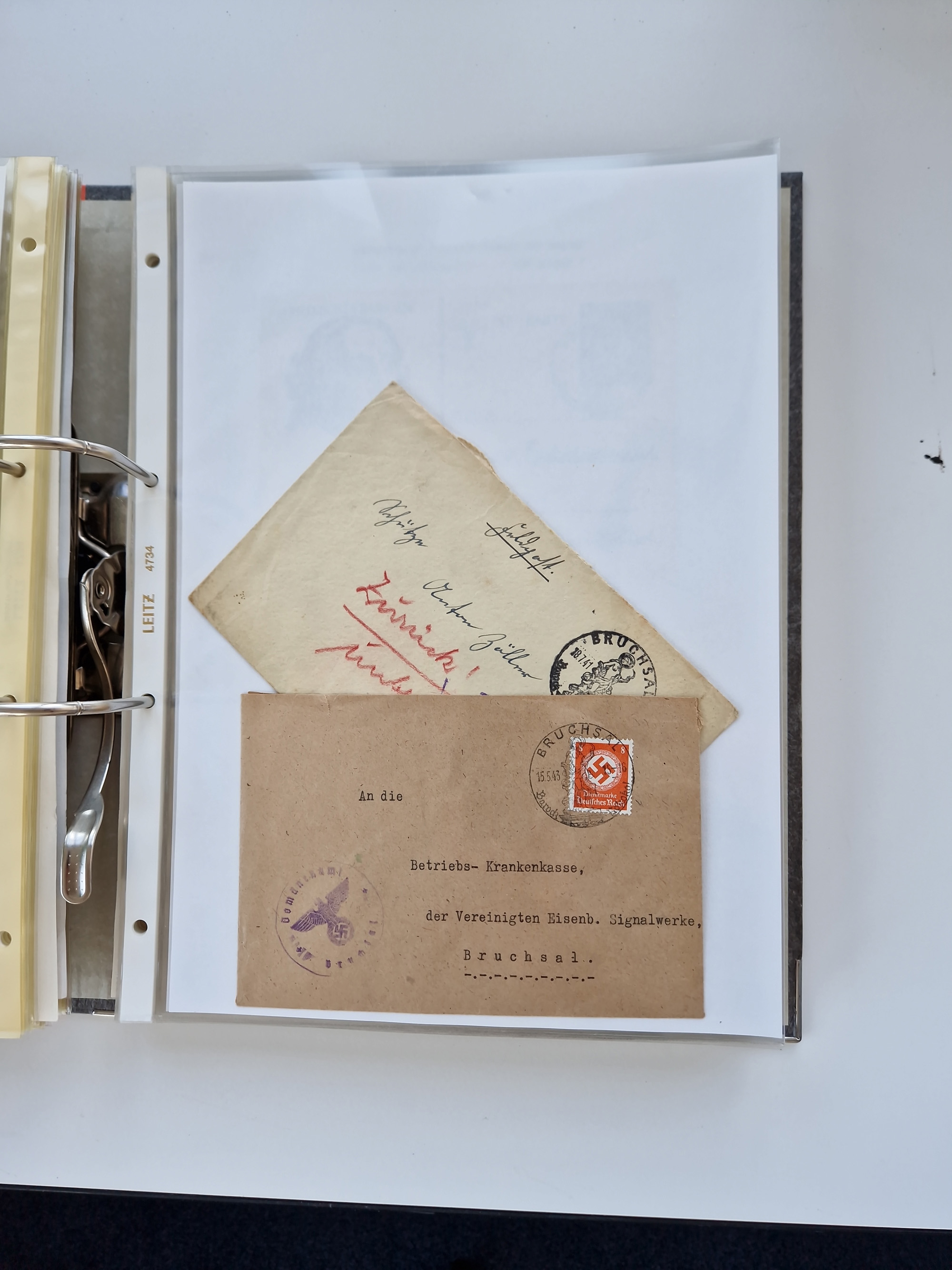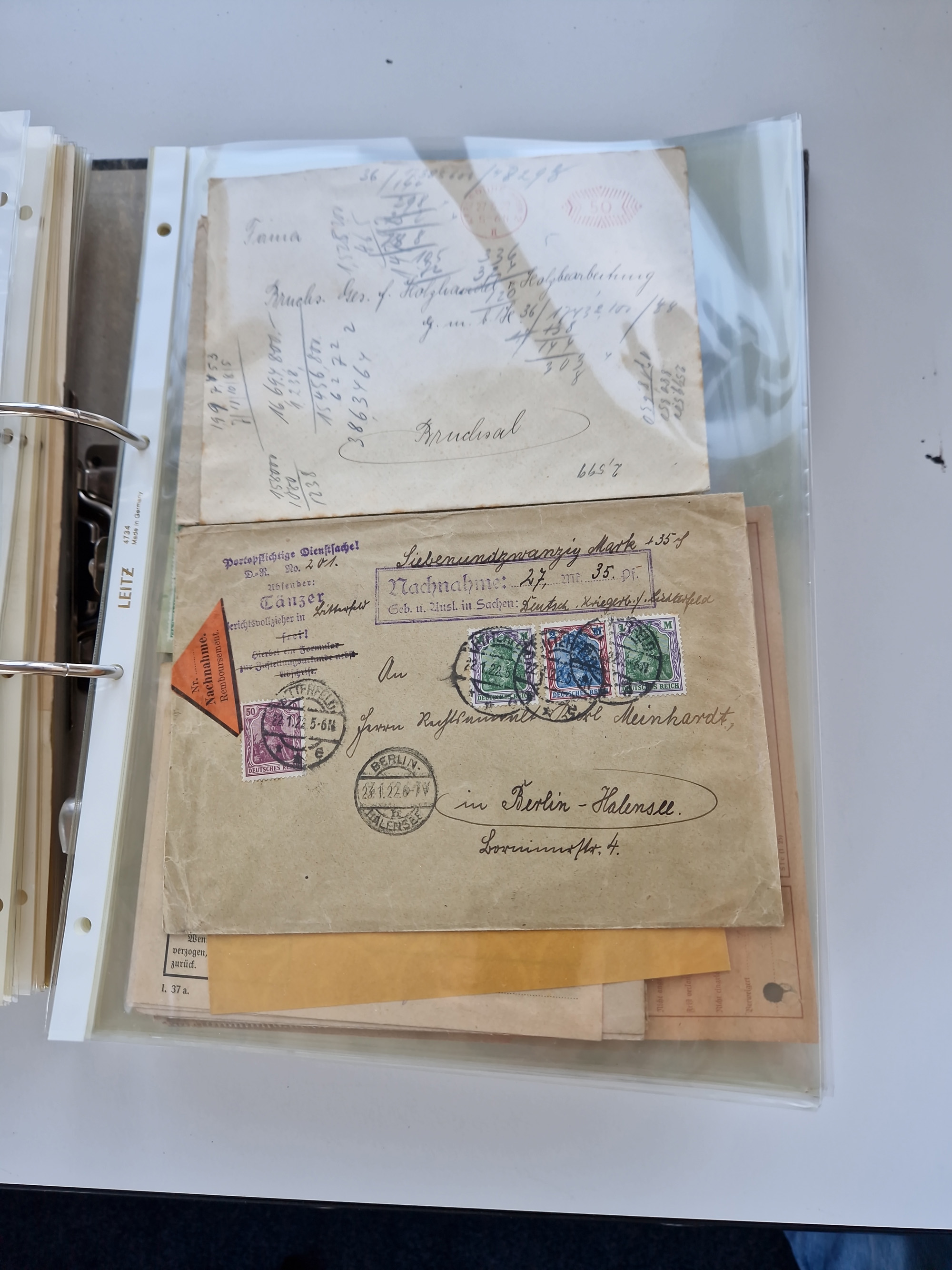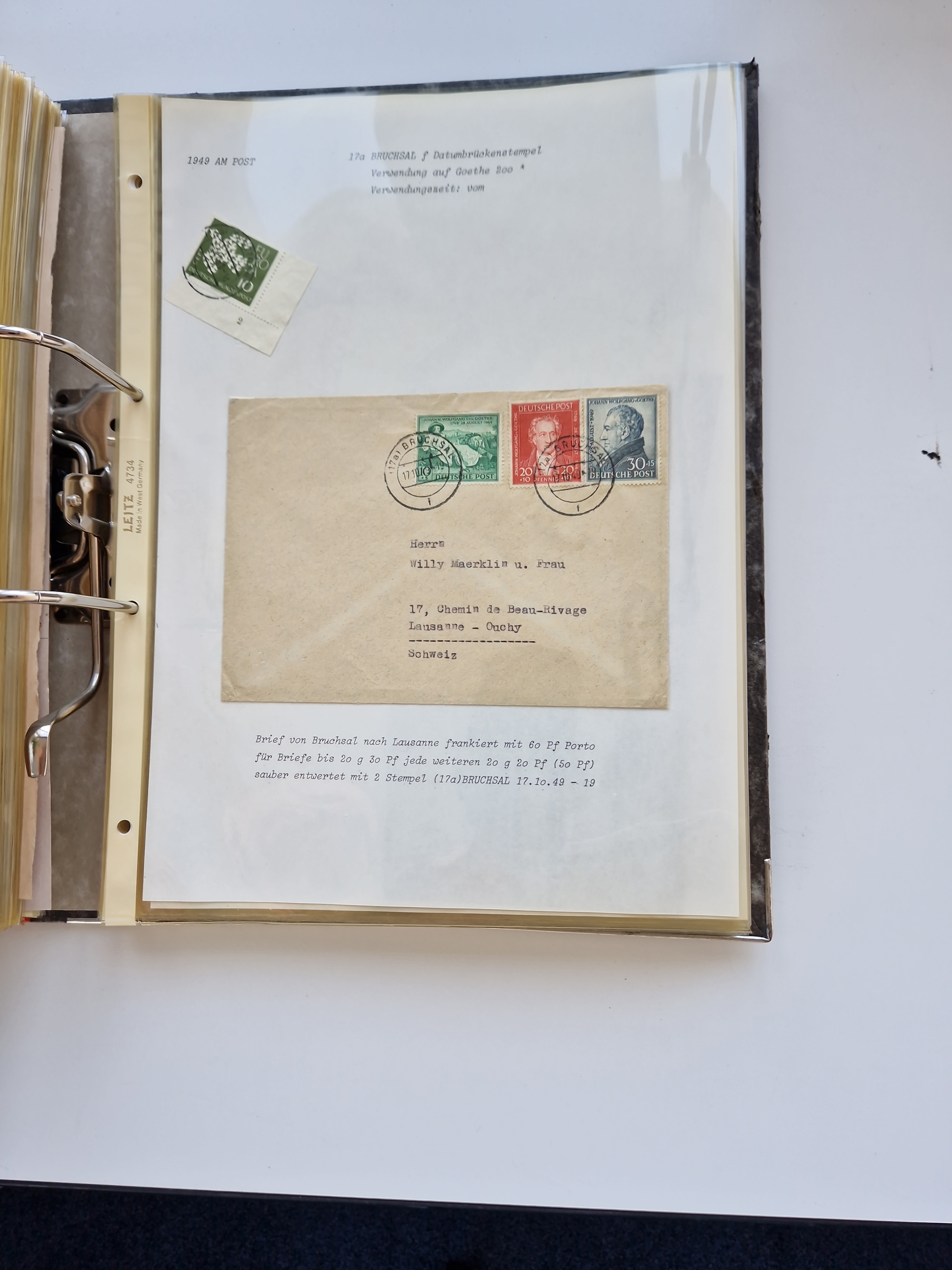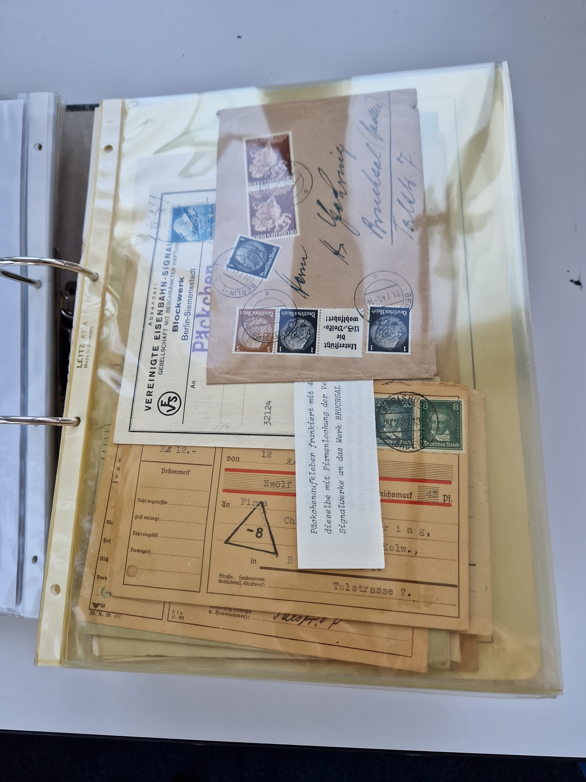 1870/2010 (ca.), Bruchsal und Umgebung, umfangreiche Heimatsammlung in 39 Ringordnern etwas unkonventionell, aber nichtsdestotrotz sehr inhaltsreich gesammelt mit zahlreichen Belegen ab Dt.Reich und auch losen Marken, u.a. Brustschilde mit Marken und besseren Frankaturen, Nachkriegszeit mit Besatzungszonen, auch eingehende Post aus Aller Welt.