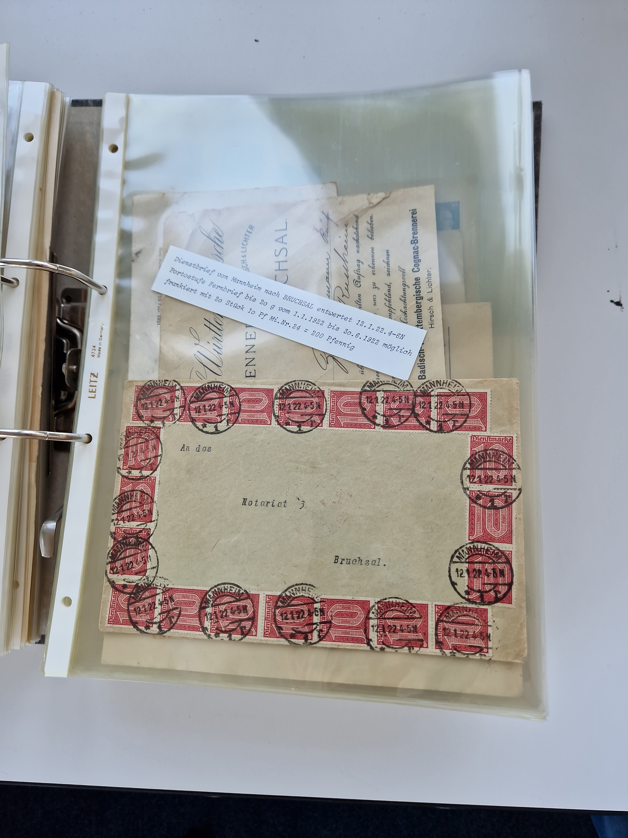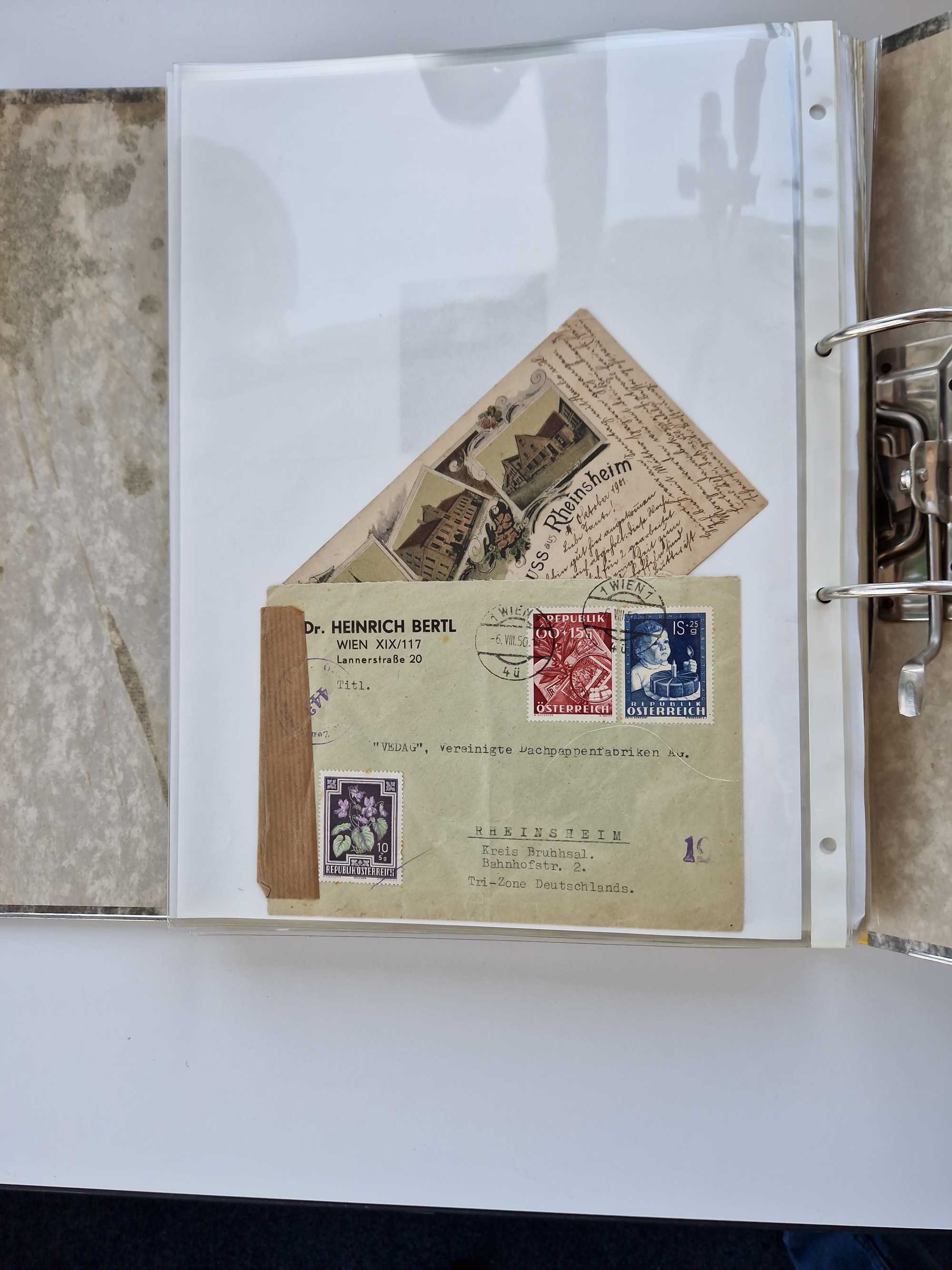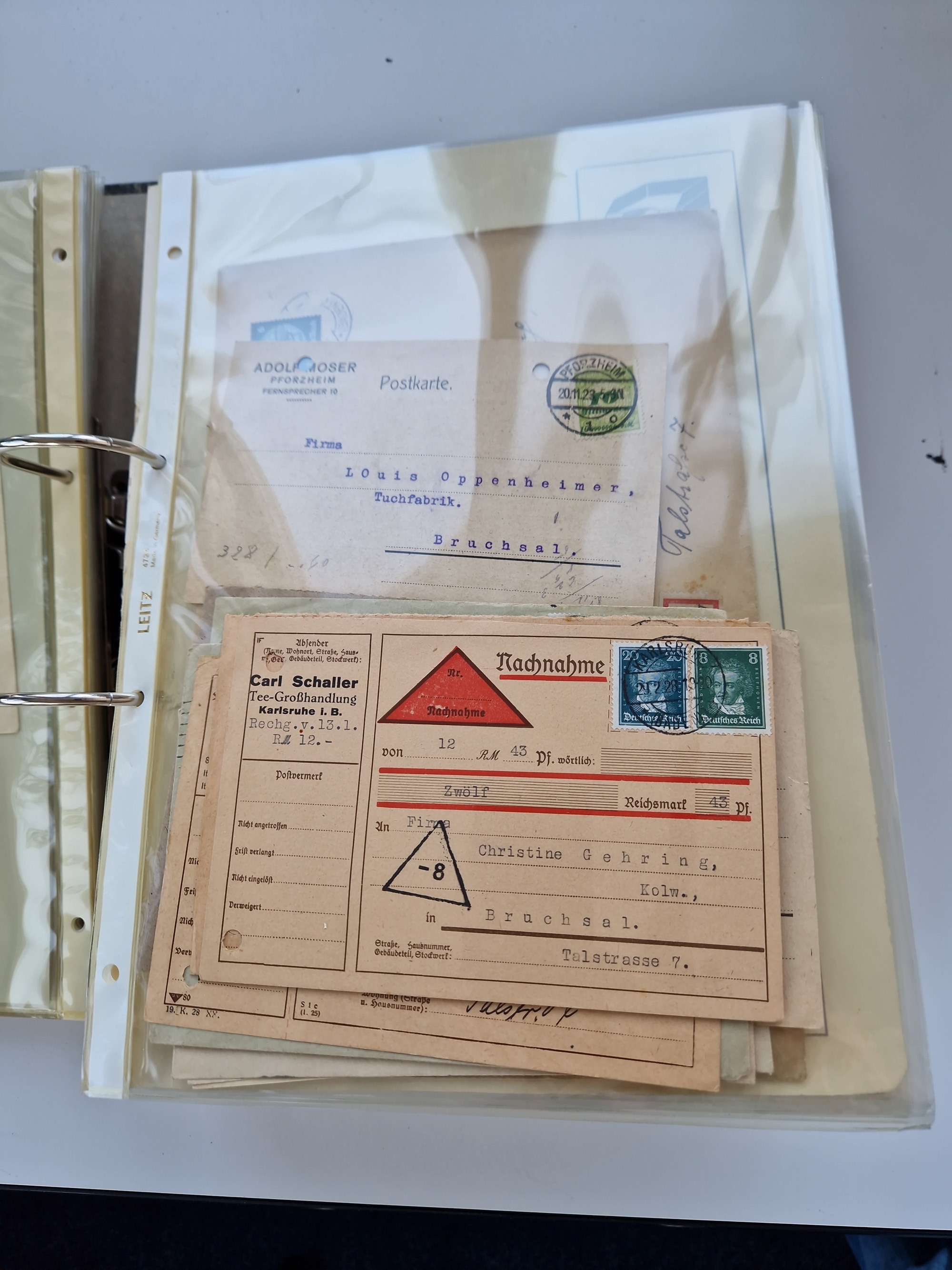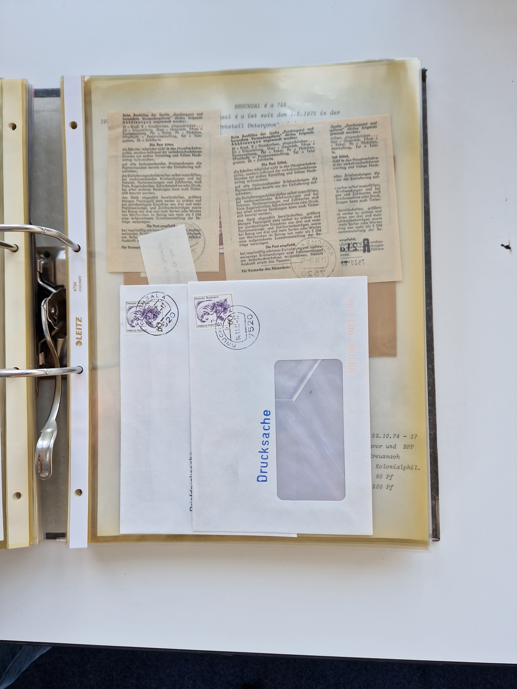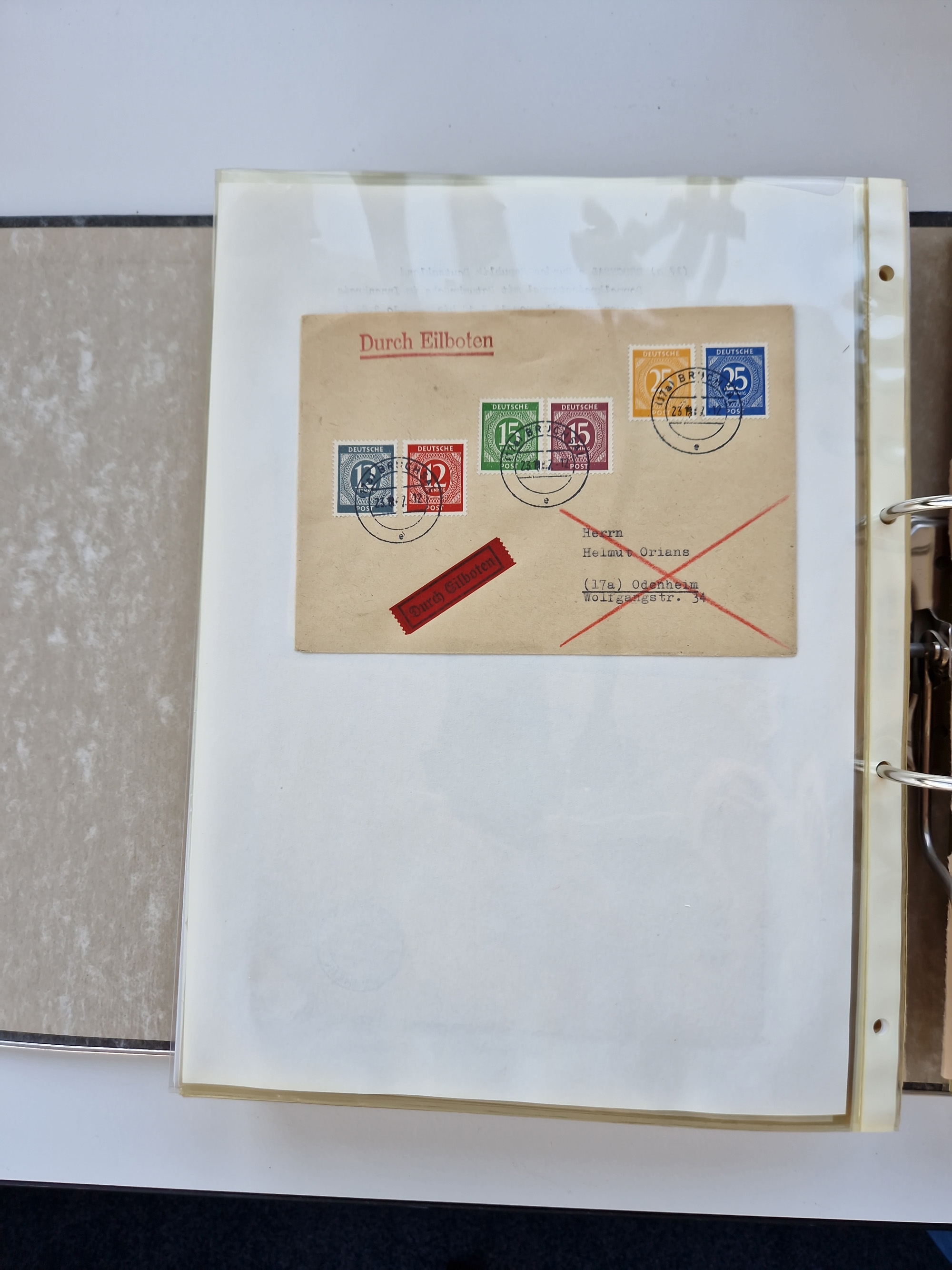 1870/2010 (ca.), Bruchsal und Umgebung, umfangreiche Heimatsammlung in 39 Ringordnern etwas unkonventionell, aber nichtsdestotrotz sehr inhaltsreich gesammelt mit zahlreichen Belegen ab Dt.Reich und auch losen Marken, u.a. Brustschilde mit Marken und besseren Frankaturen, Nachkriegszeit mit Besatzungszonen, auch eingehende Post aus Aller Welt.