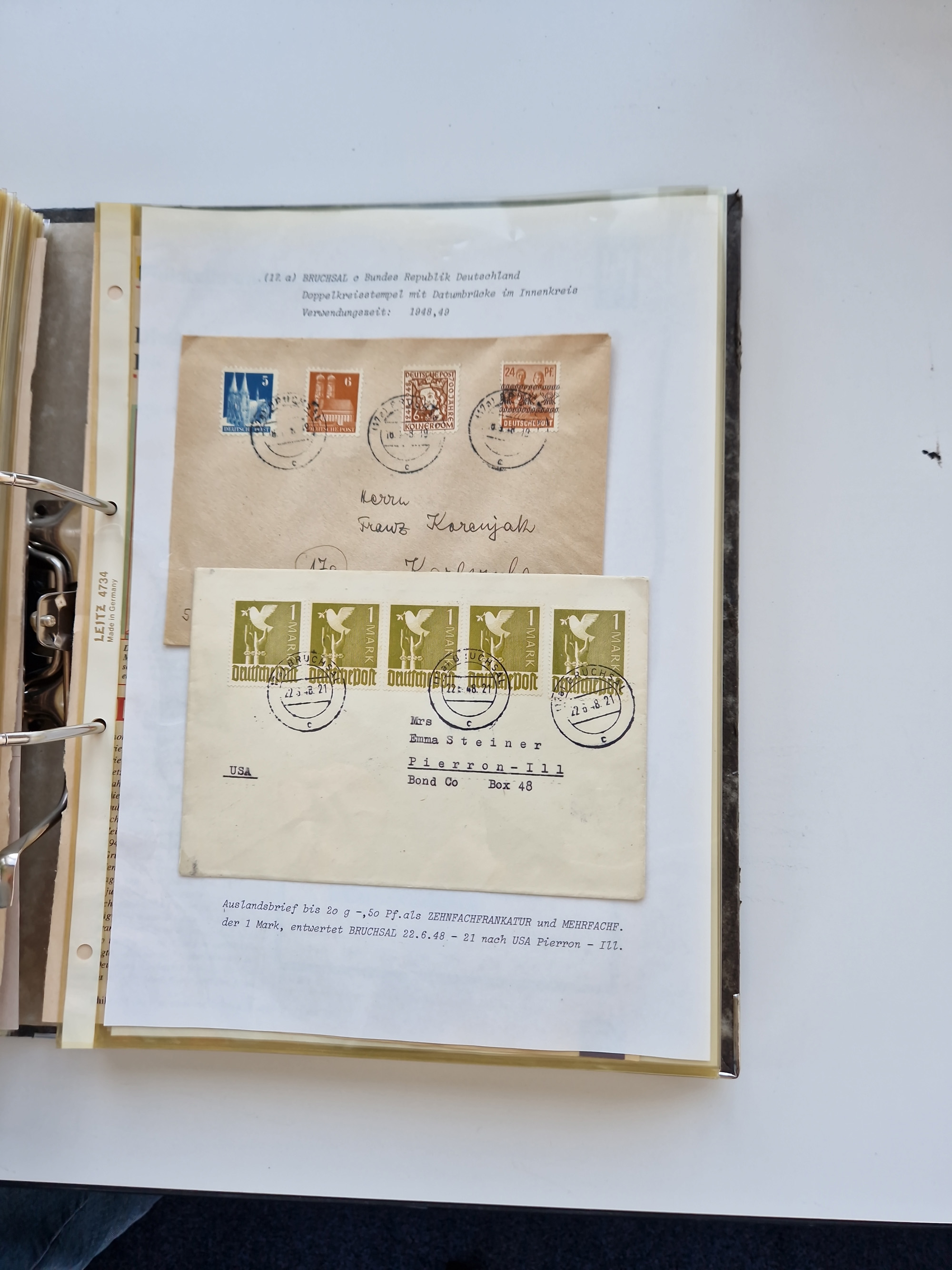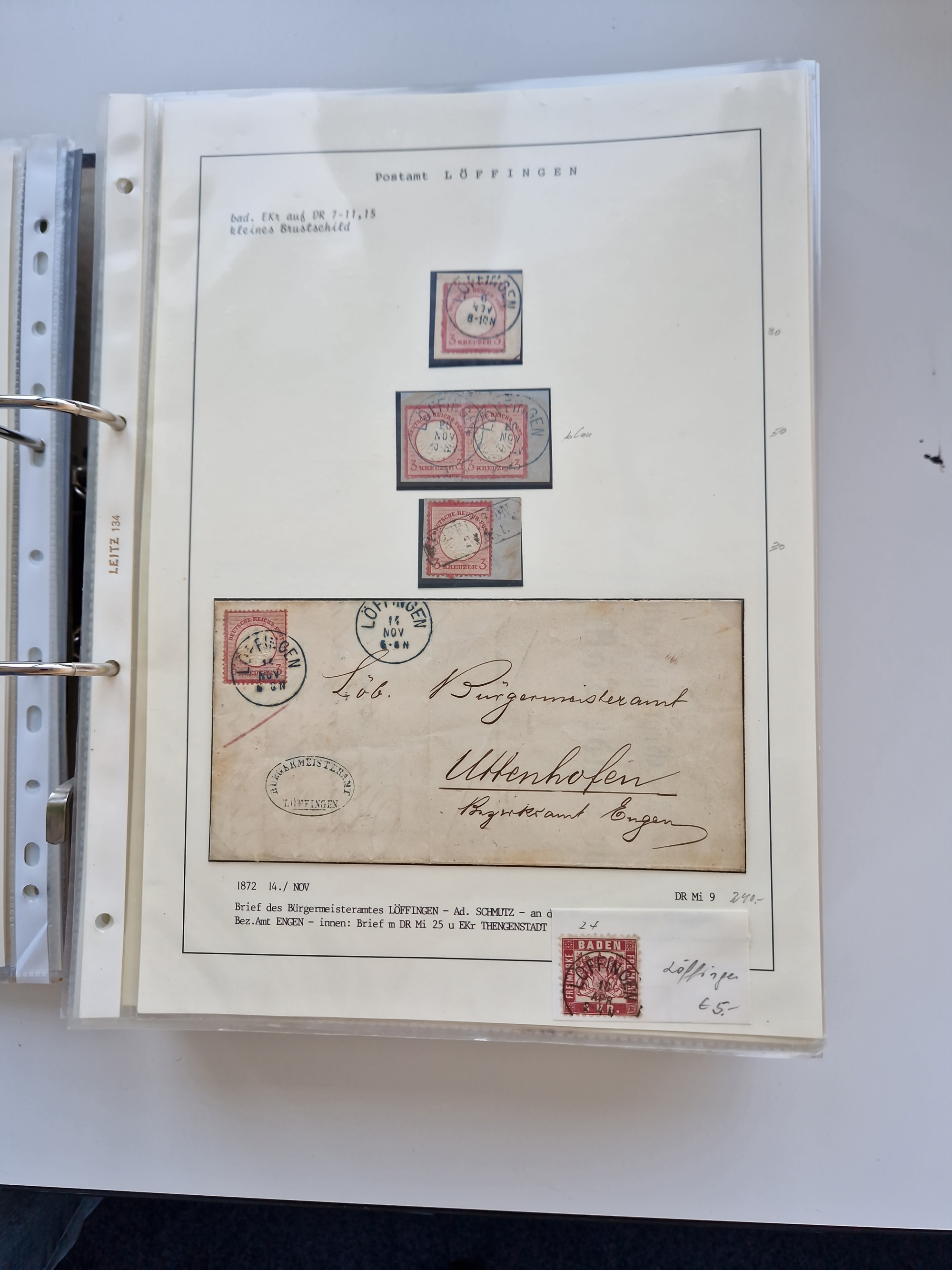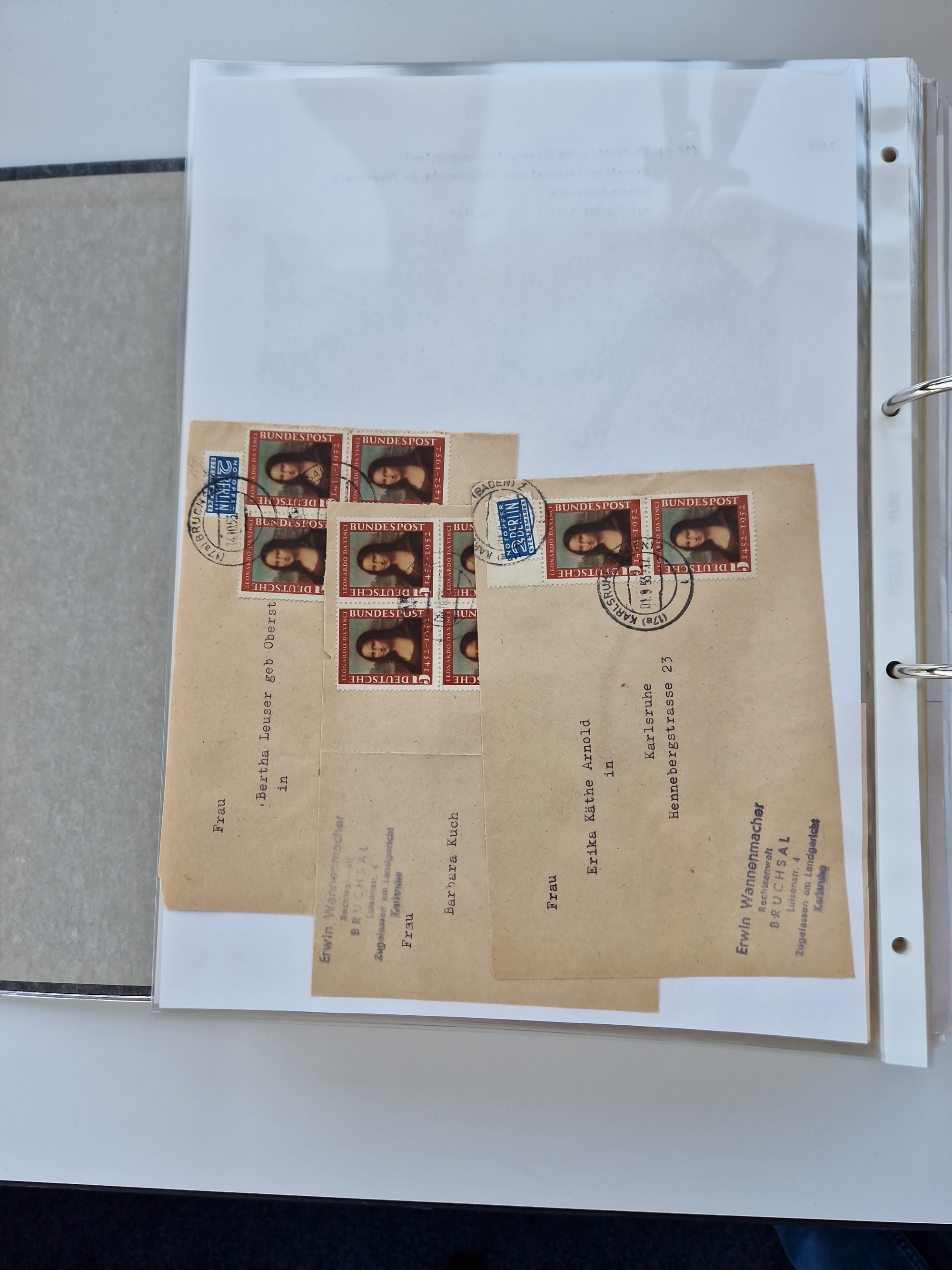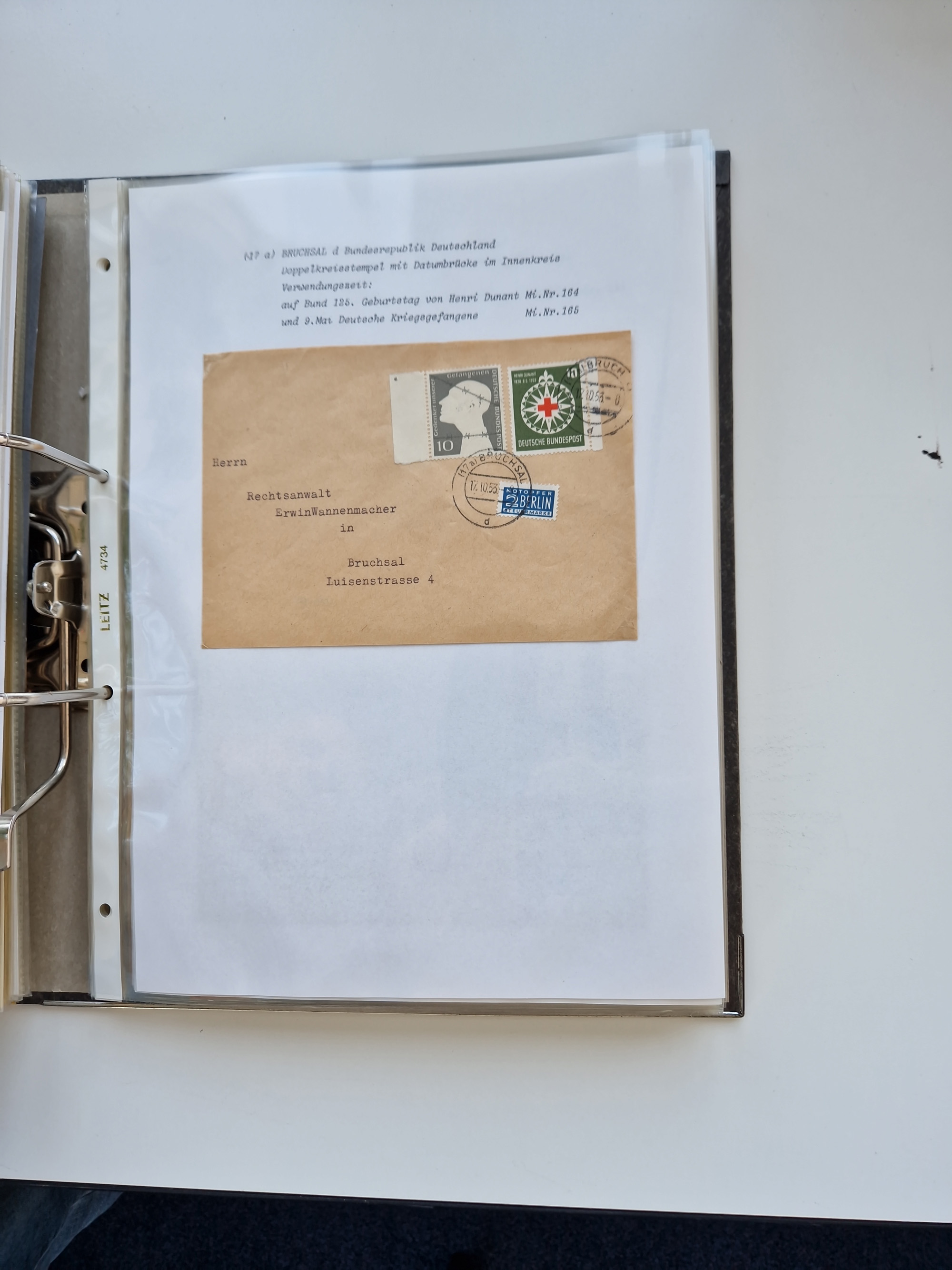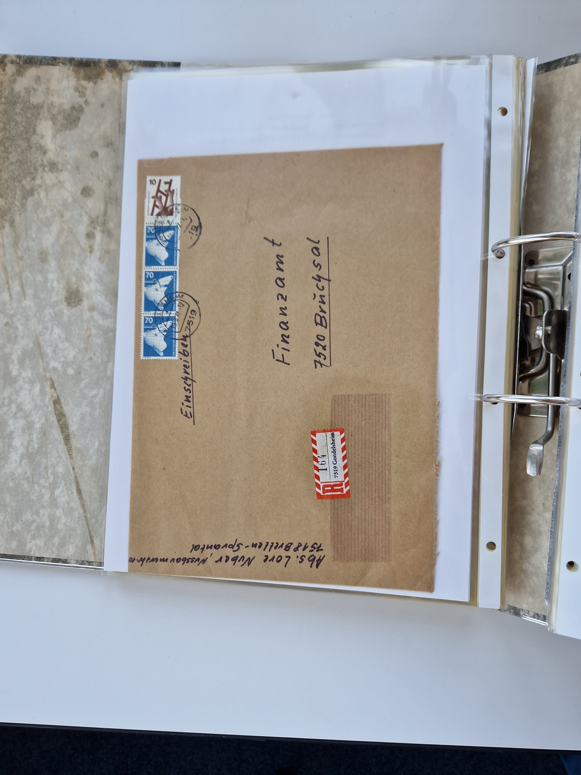 1870/2010 (ca.), Bruchsal und Umgebung, umfangreiche Heimatsammlung in 39 Ringordnern etwas unkonventionell, aber nichtsdestotrotz sehr inhaltsreich gesammelt mit zahlreichen Belegen ab Dt.Reich und auch losen Marken, u.a. Brustschilde mit Marken und besseren Frankaturen, Nachkriegszeit mit Besatzungszonen, auch eingehende Post aus Aller Welt.