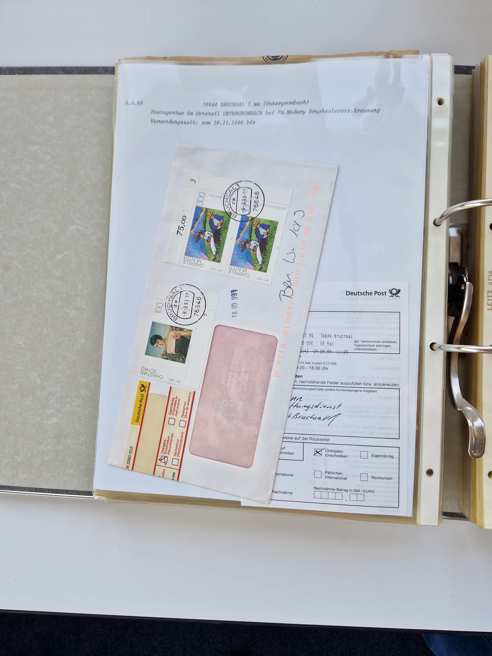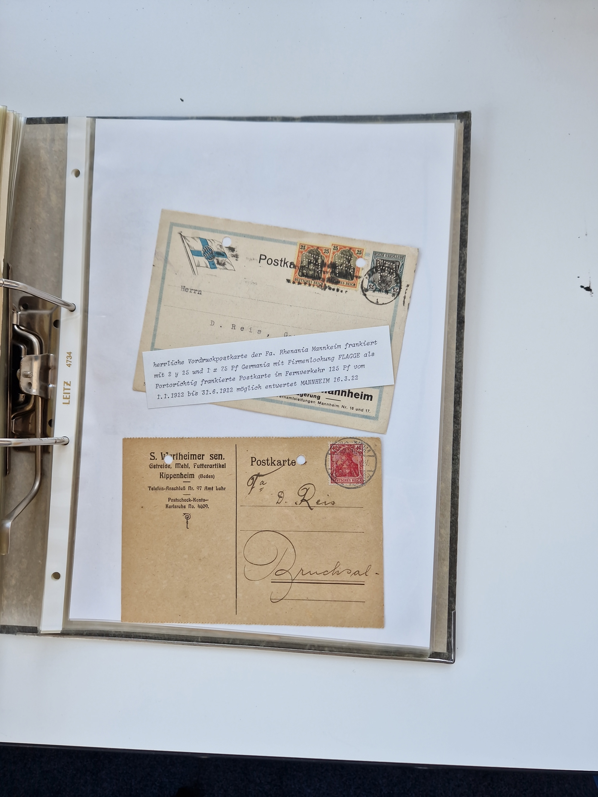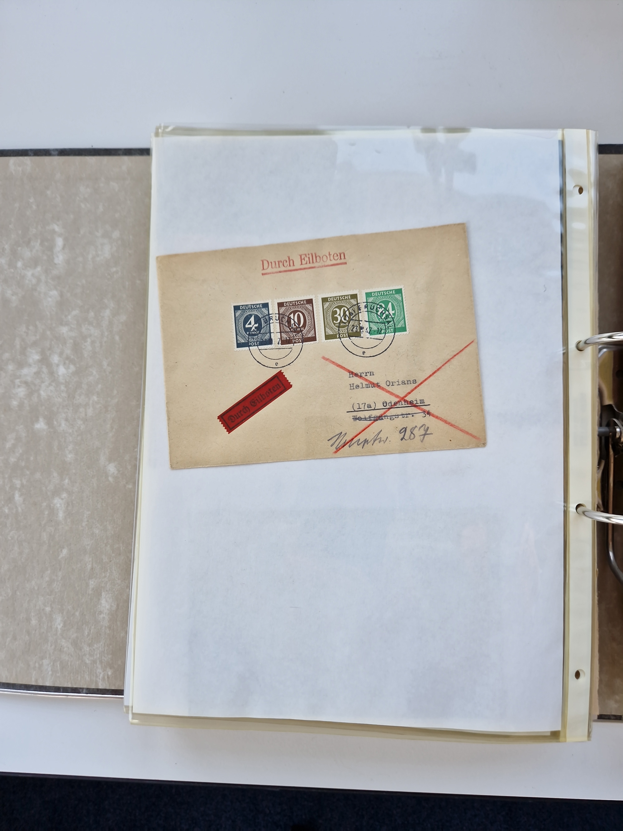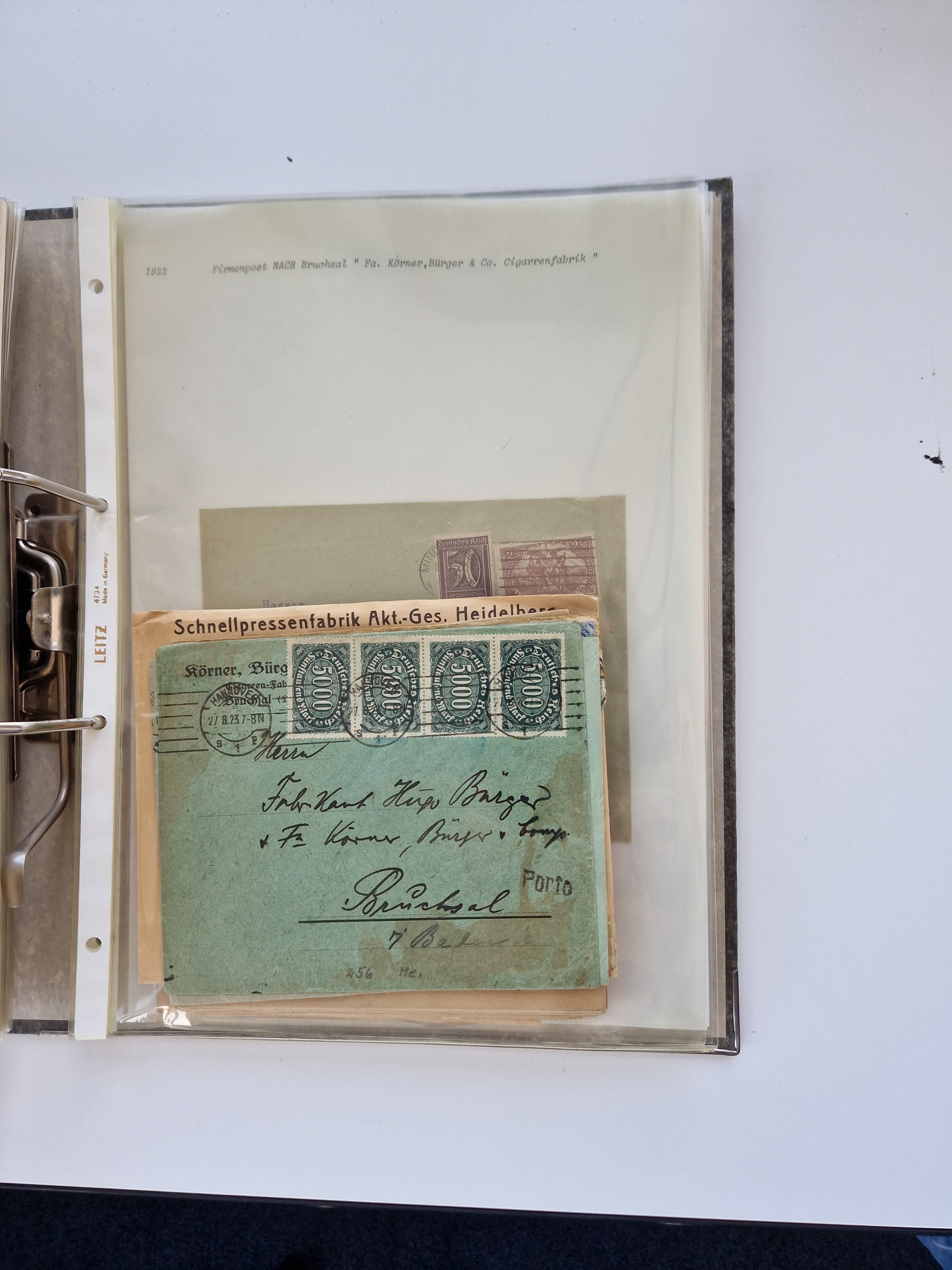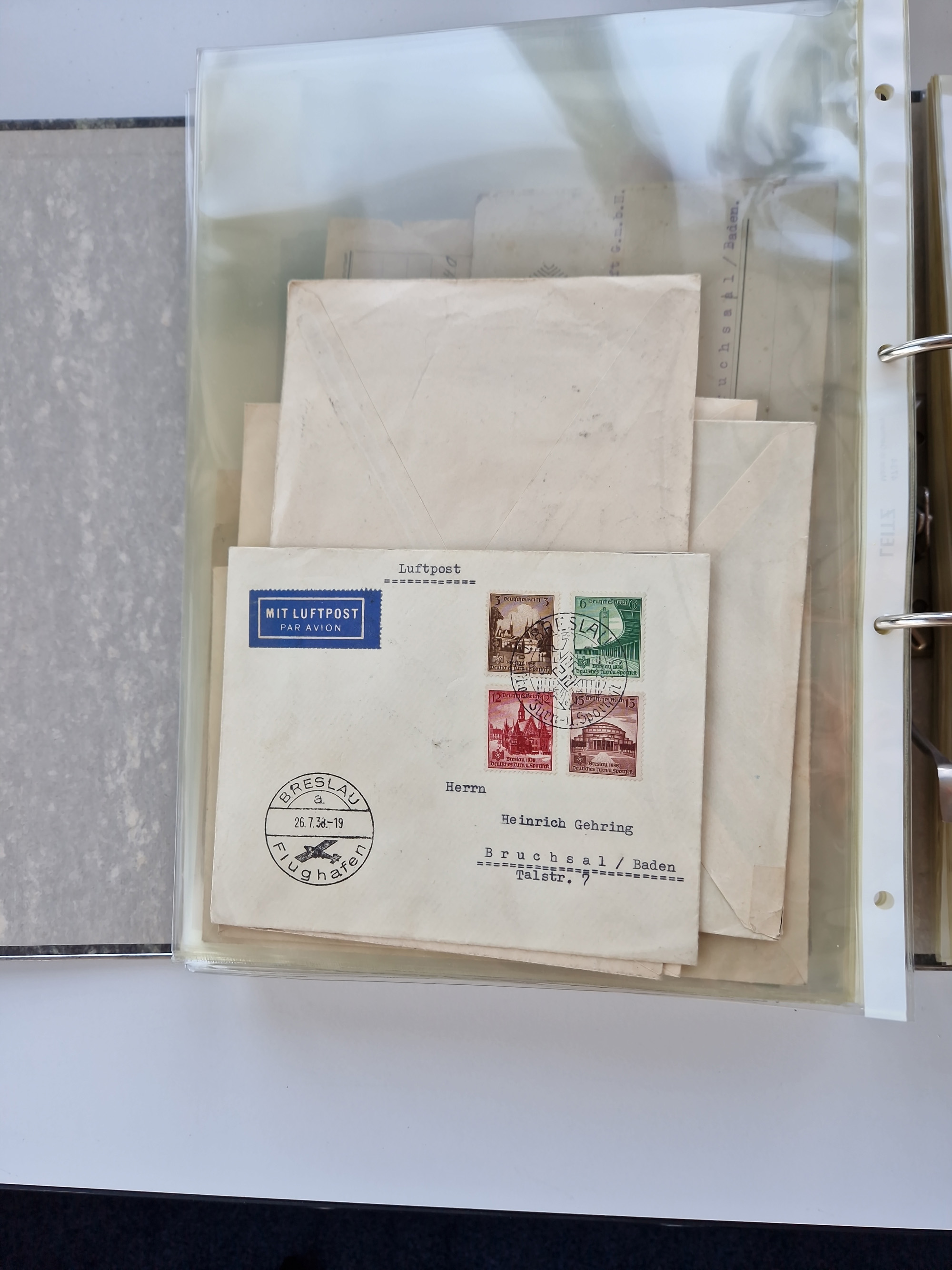 1870/2010 (ca.), Bruchsal und Umgebung, umfangreiche Heimatsammlung in 39 Ringordnern etwas unkonventionell, aber nichtsdestotrotz sehr inhaltsreich gesammelt mit zahlreichen Belegen ab Dt.Reich und auch losen Marken, u.a. Brustschilde mit Marken und besseren Frankaturen, Nachkriegszeit mit Besatzungszonen, auch eingehende Post aus Aller Welt.