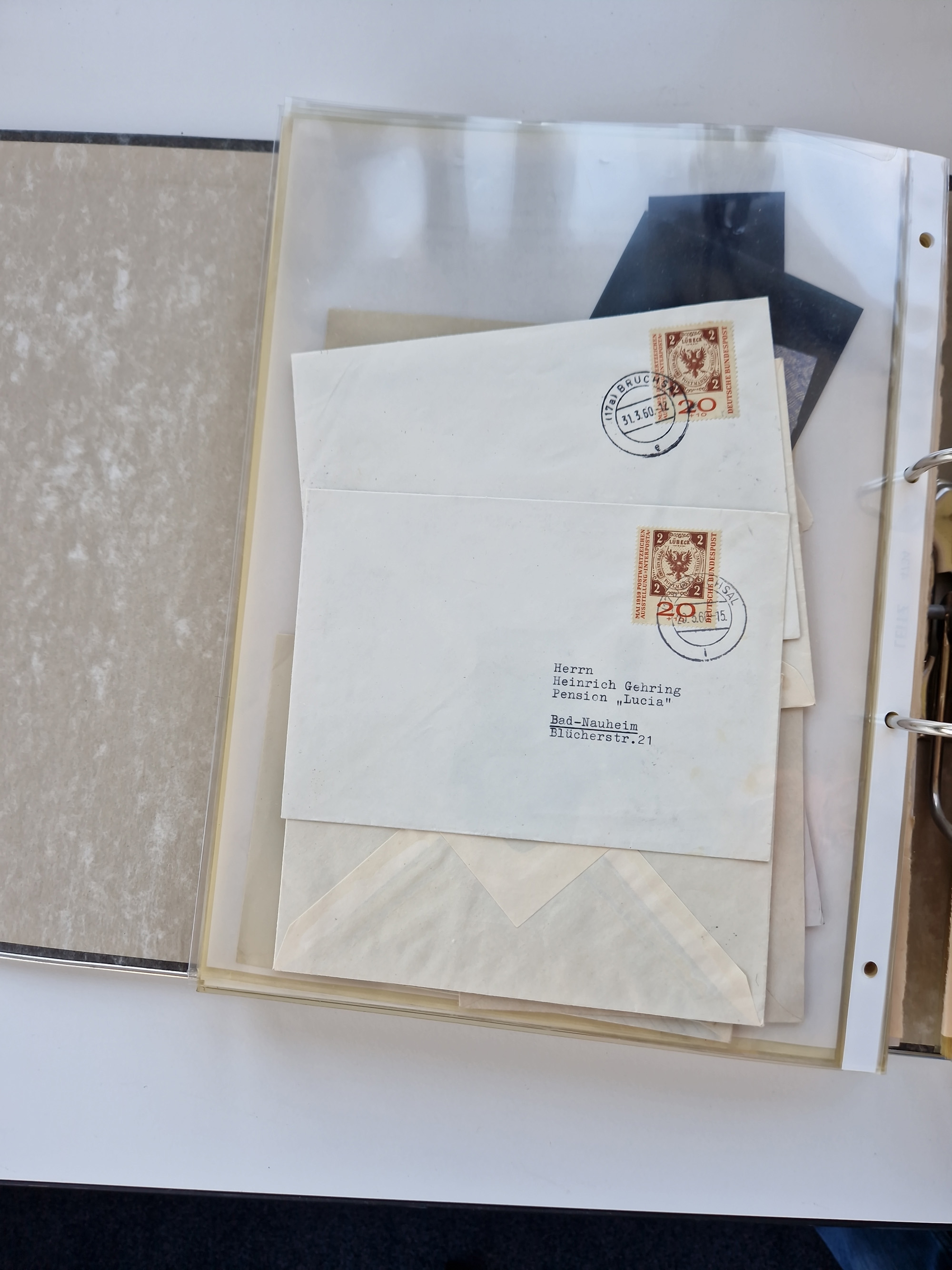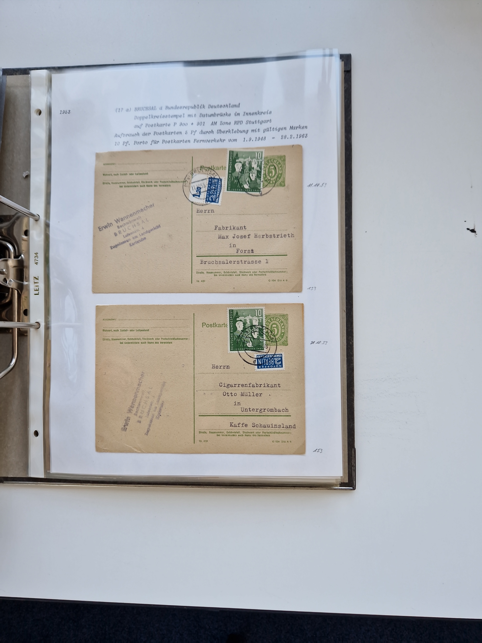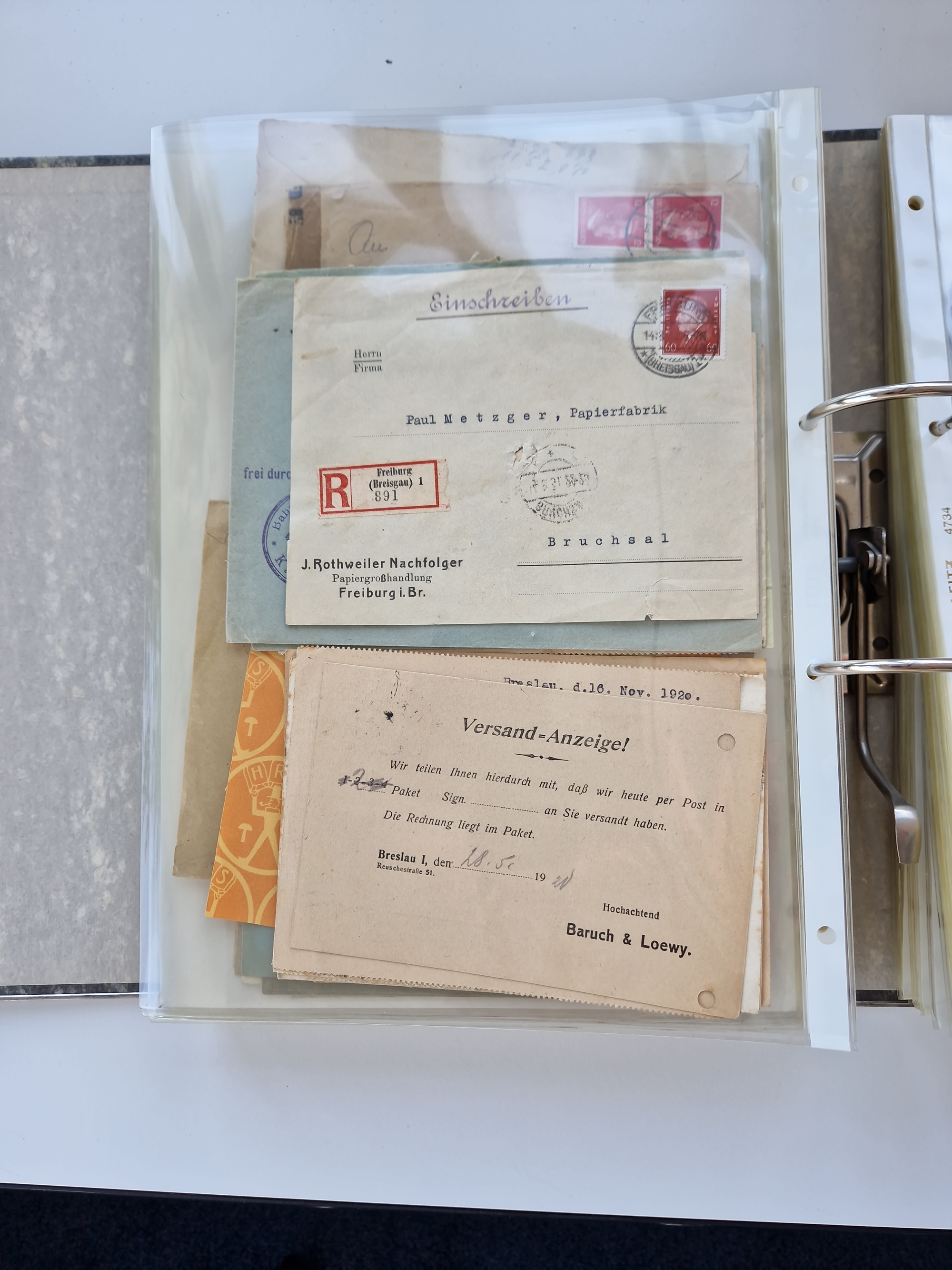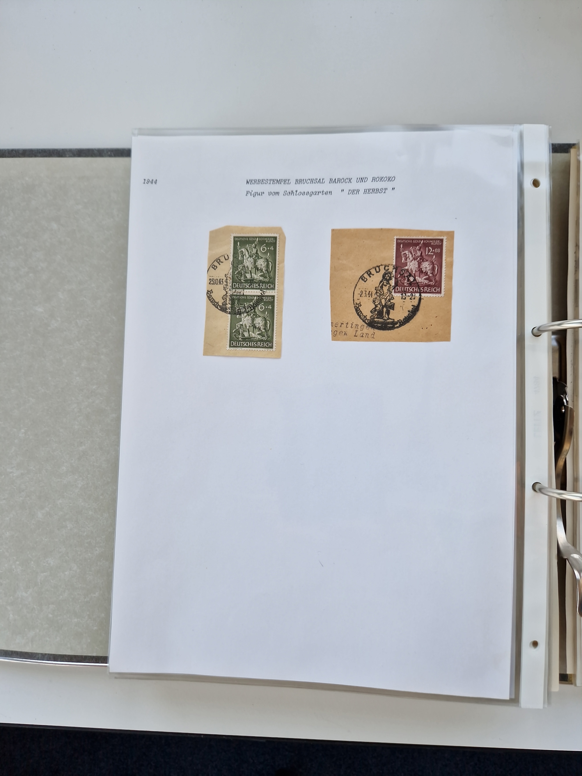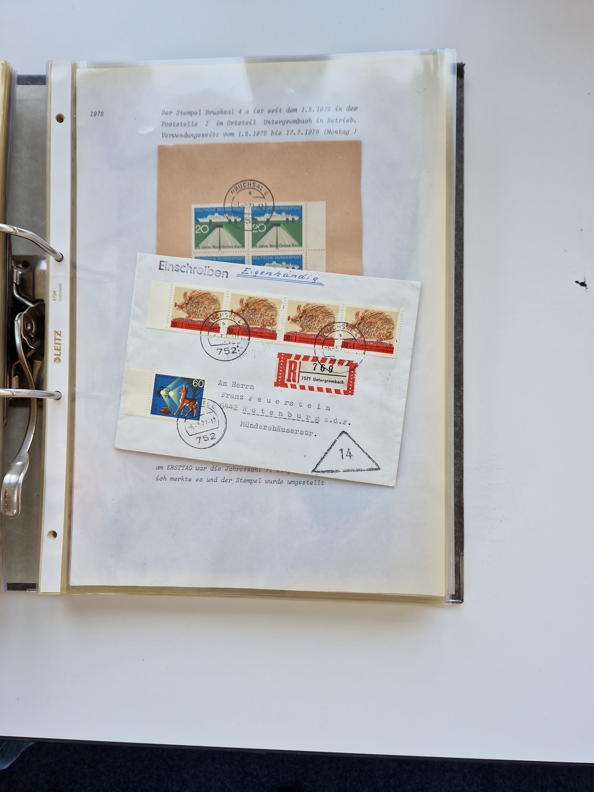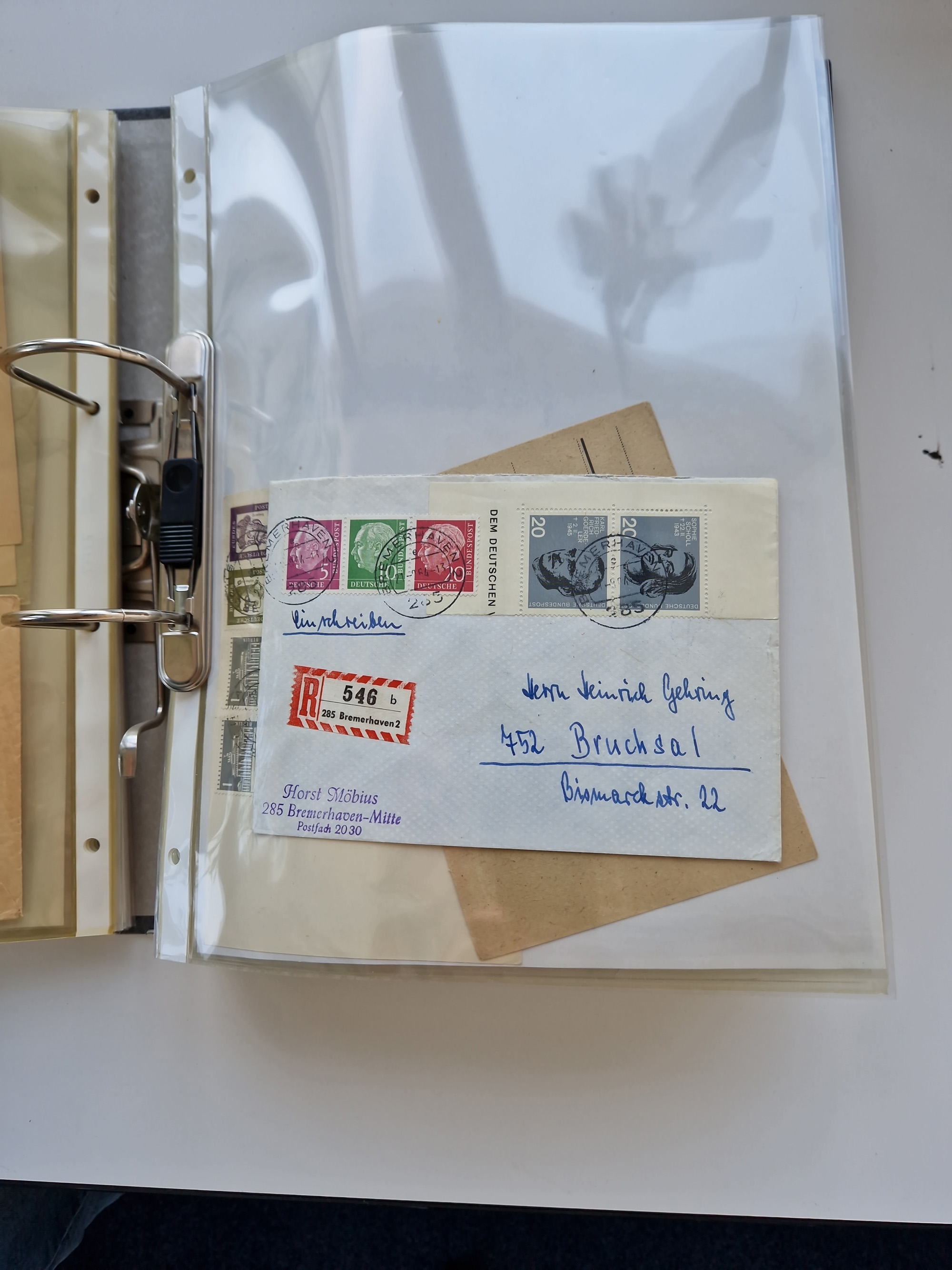 1870/2010 (ca.), Bruchsal und Umgebung, umfangreiche Heimatsammlung in 39 Ringordnern etwas unkonventionell, aber nichtsdestotrotz sehr inhaltsreich gesammelt mit zahlreichen Belegen ab Dt.Reich und auch losen Marken, u.a. Brustschilde mit Marken und besseren Frankaturen, Nachkriegszeit mit Besatzungszonen, auch eingehende Post aus Aller Welt.