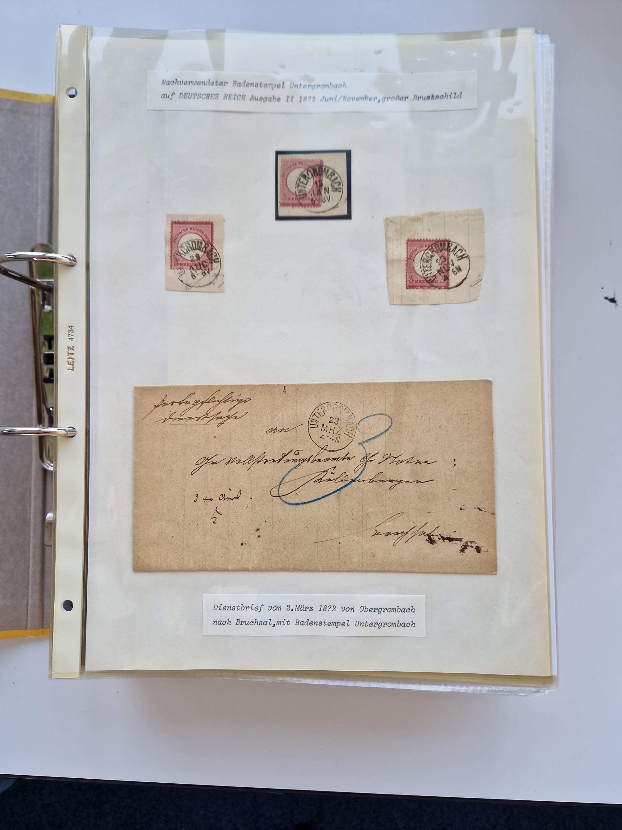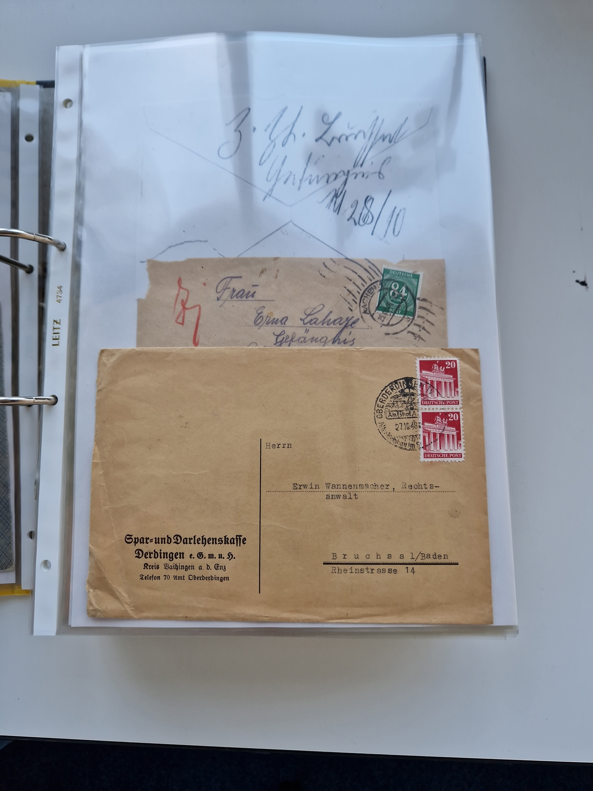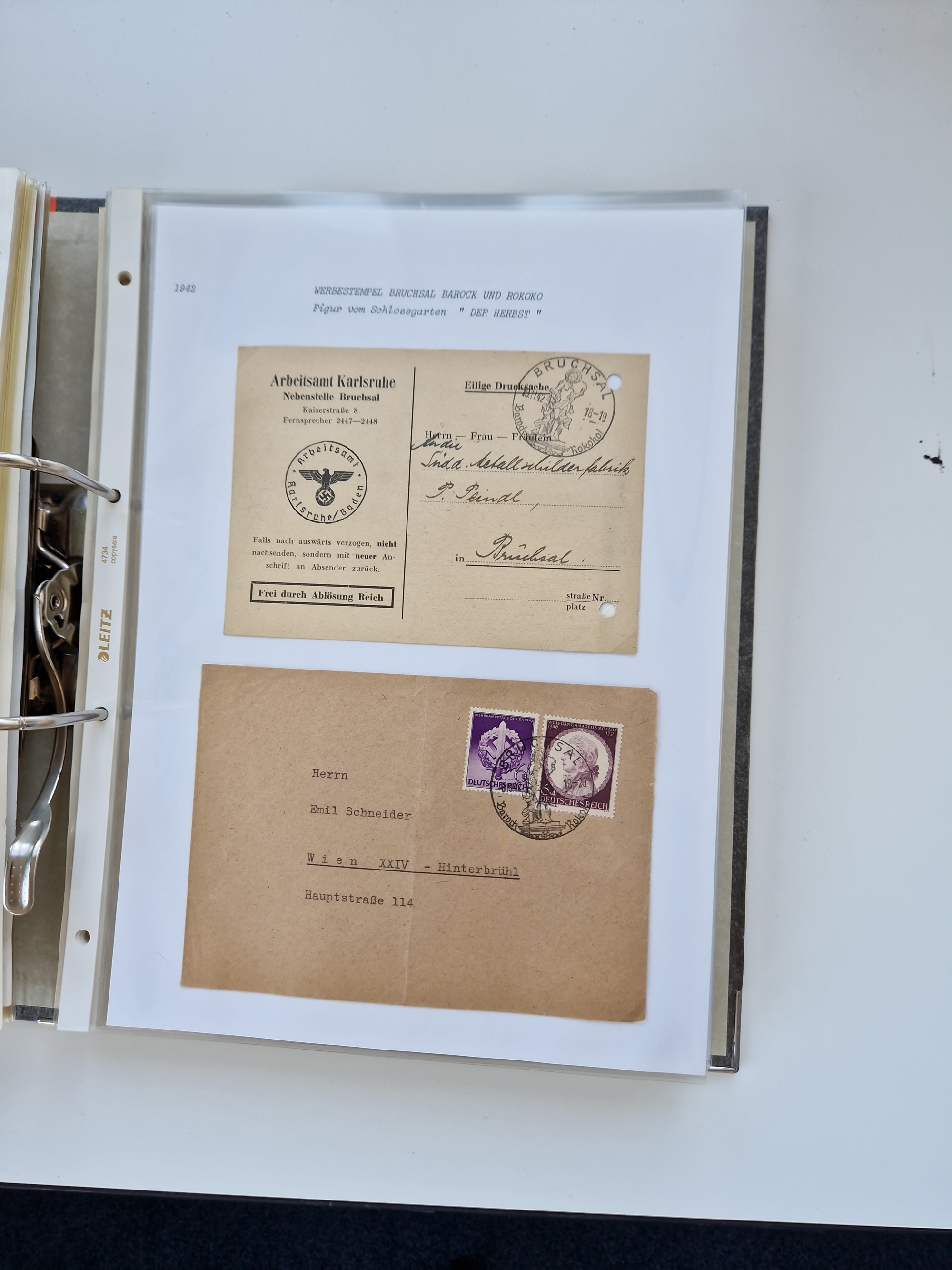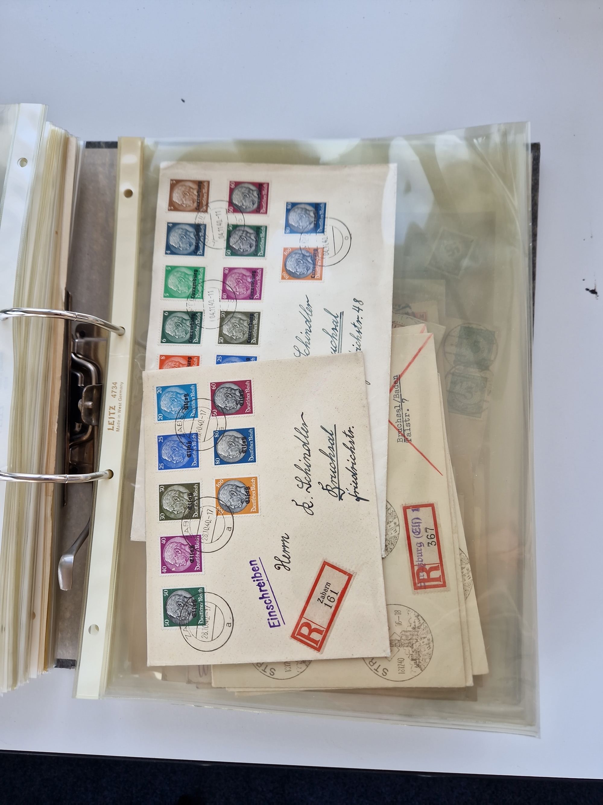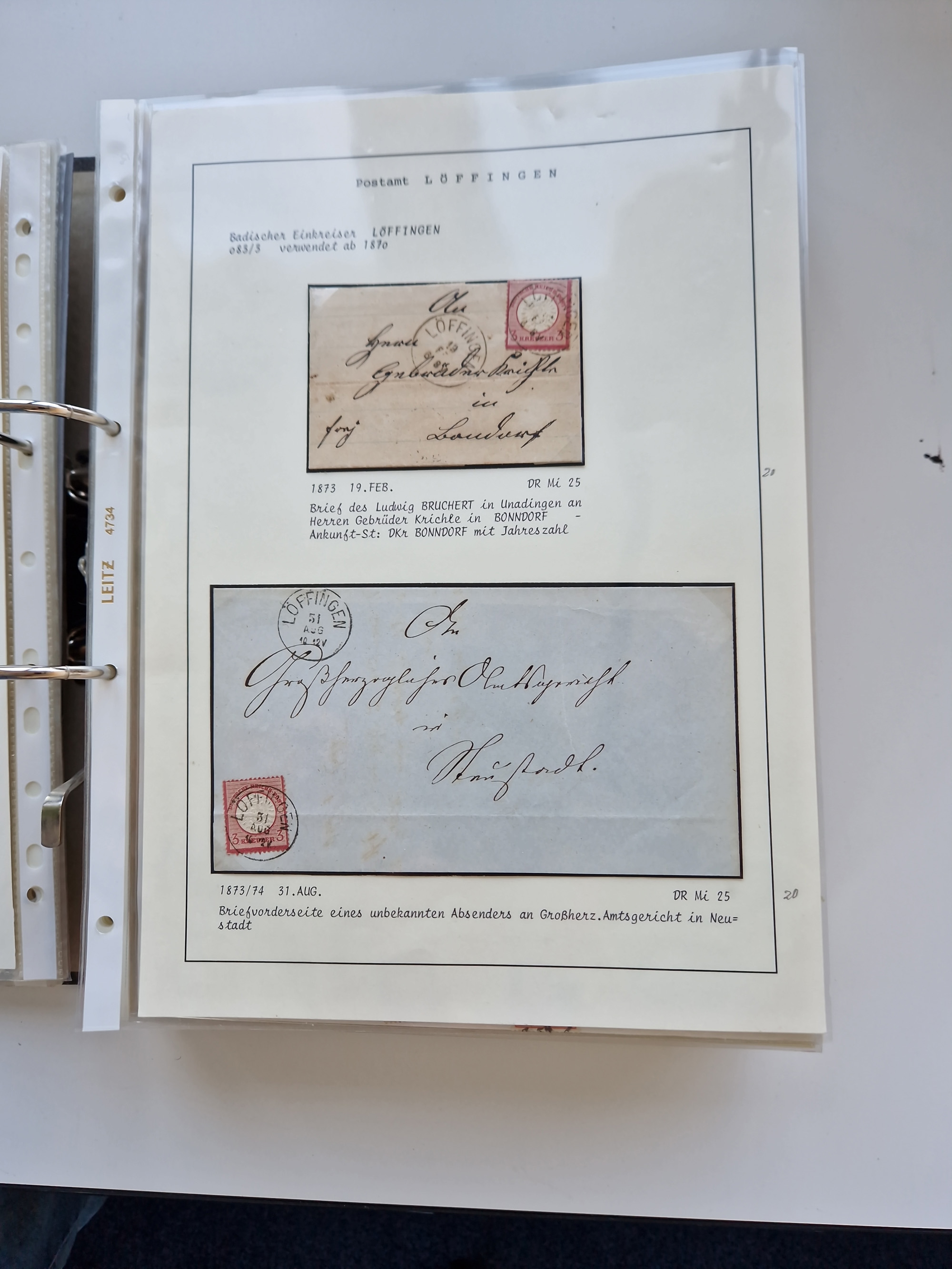 1870/2010 (ca.), Bruchsal und Umgebung, umfangreiche Heimatsammlung in 39 Ringordnern etwas unkonventionell, aber nichtsdestotrotz sehr inhaltsreich gesammelt mit zahlreichen Belegen ab Dt.Reich und auch losen Marken, u.a. Brustschilde mit Marken und besseren Frankaturen, Nachkriegszeit mit Besatzungszonen, auch eingehende Post aus Aller Welt.