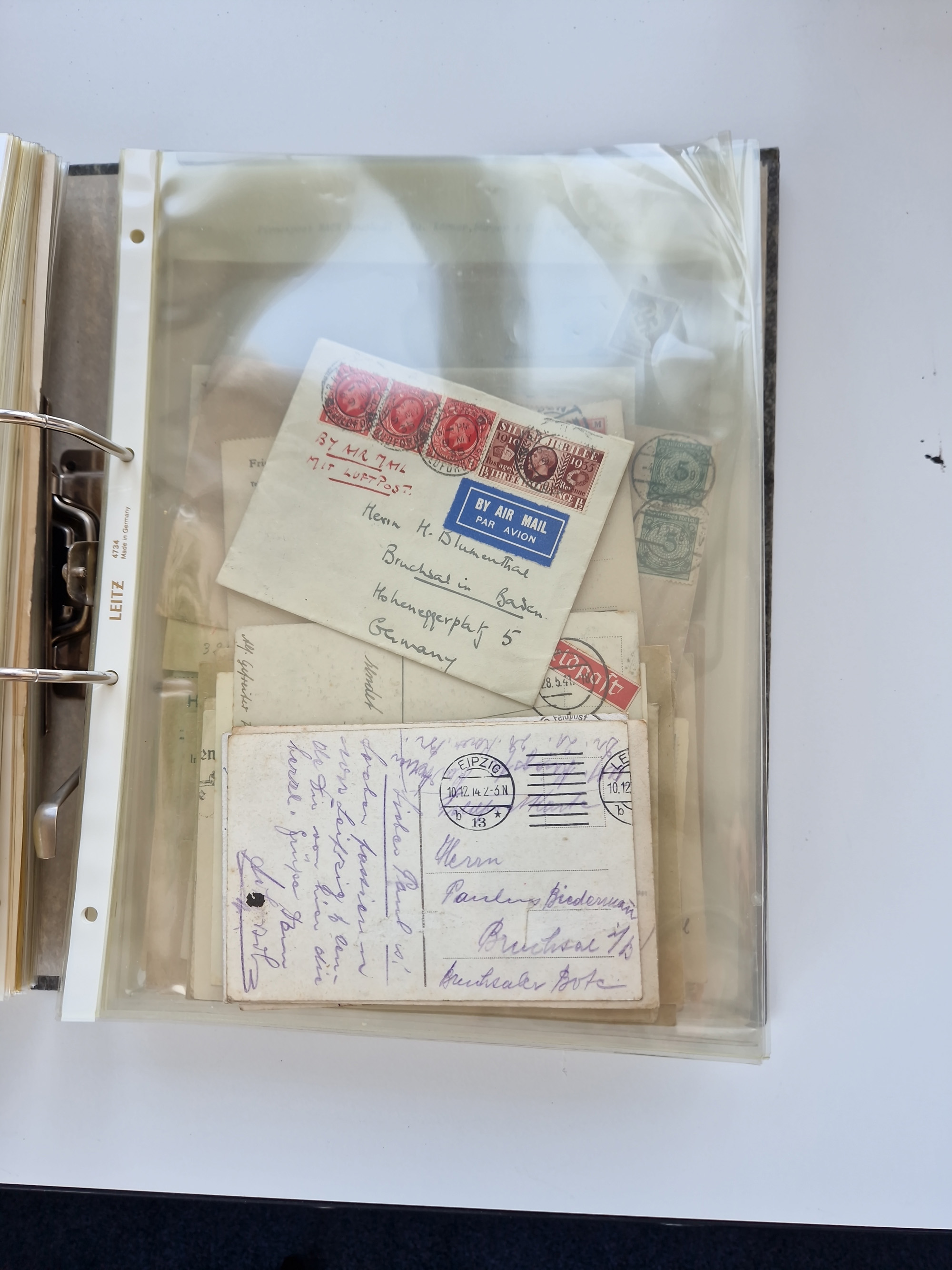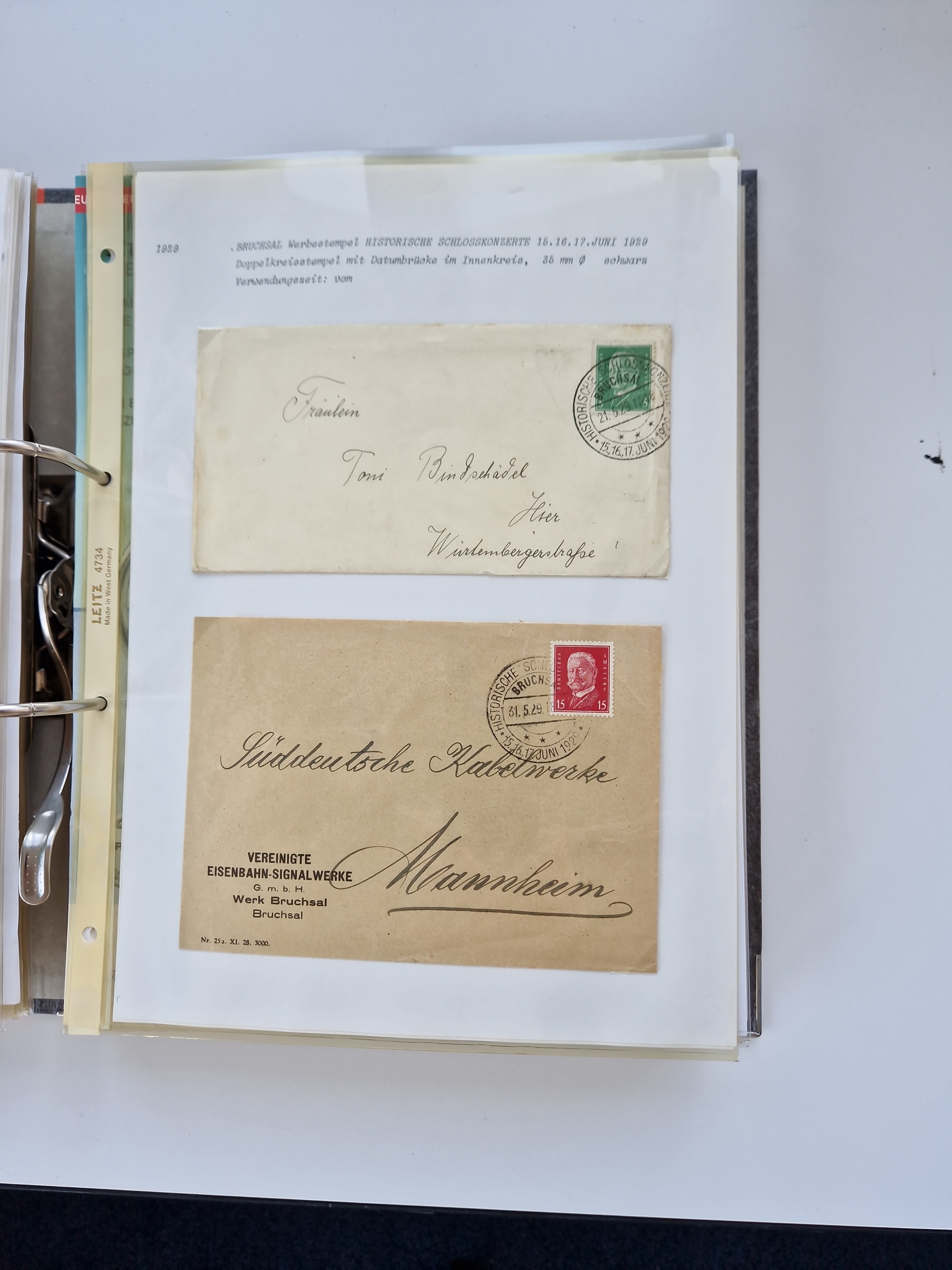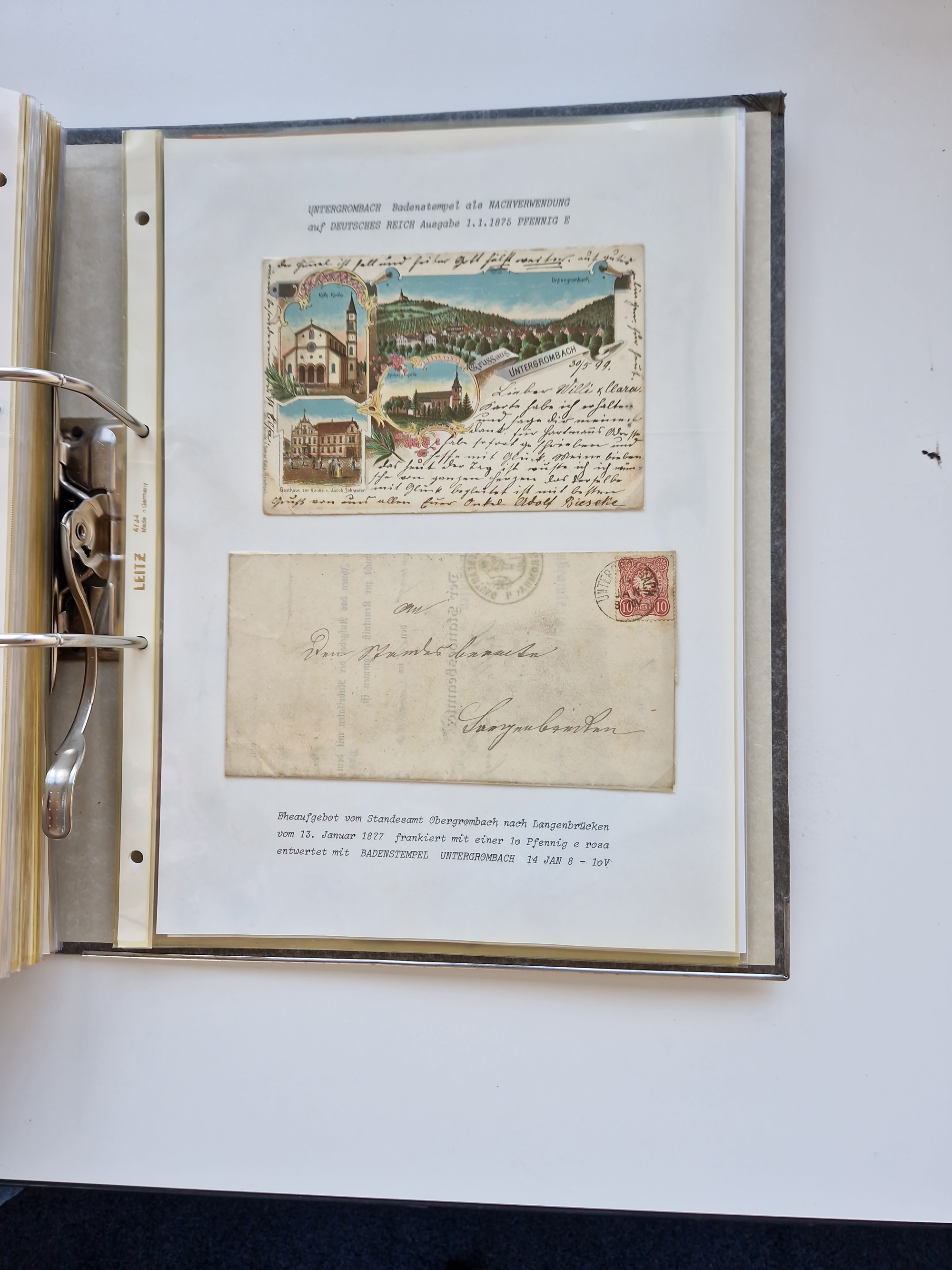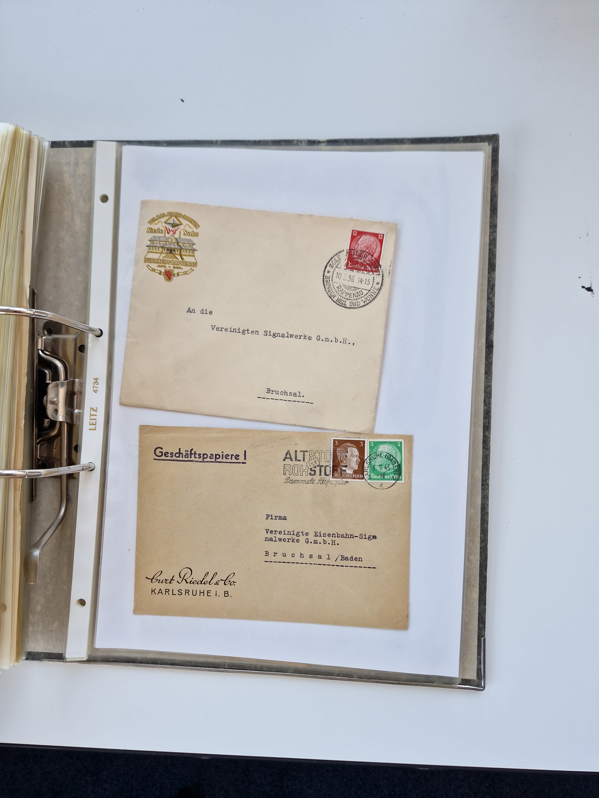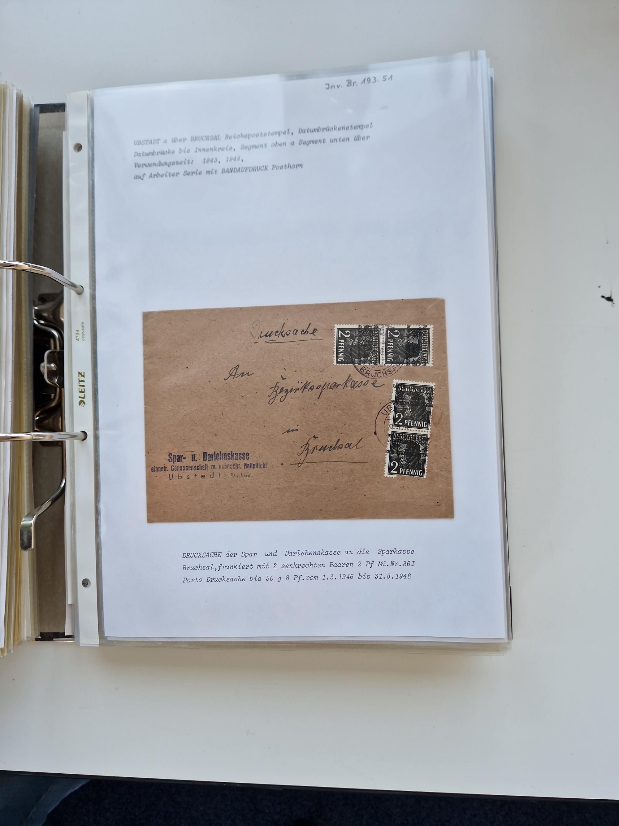 1870/2010 (ca.), Bruchsal und Umgebung, umfangreiche Heimatsammlung in 39 Ringordnern etwas unkonventionell, aber nichtsdestotrotz sehr inhaltsreich gesammelt mit zahlreichen Belegen ab Dt.Reich und auch losen Marken, u.a. Brustschilde mit Marken und besseren Frankaturen, Nachkriegszeit mit Besatzungszonen, auch eingehende Post aus Aller Welt.
