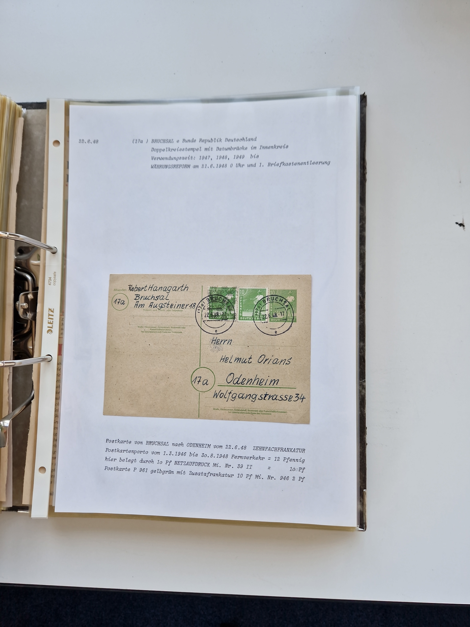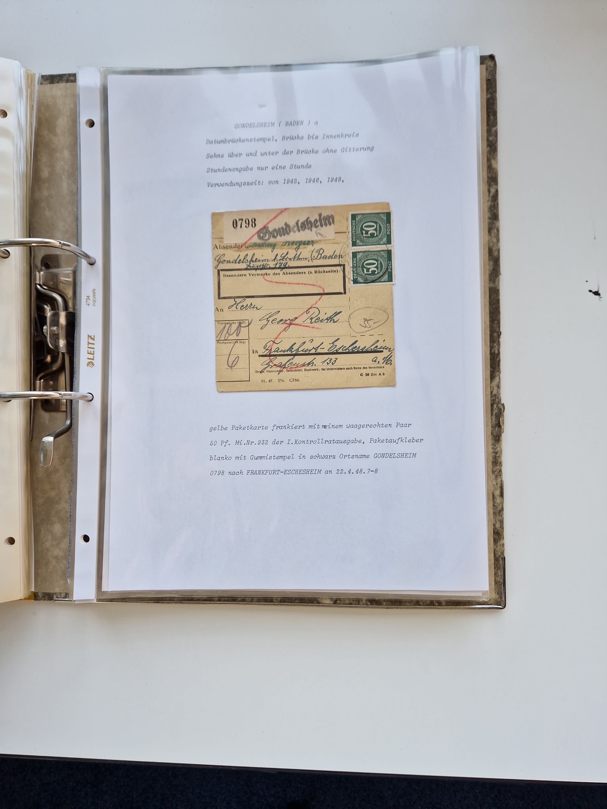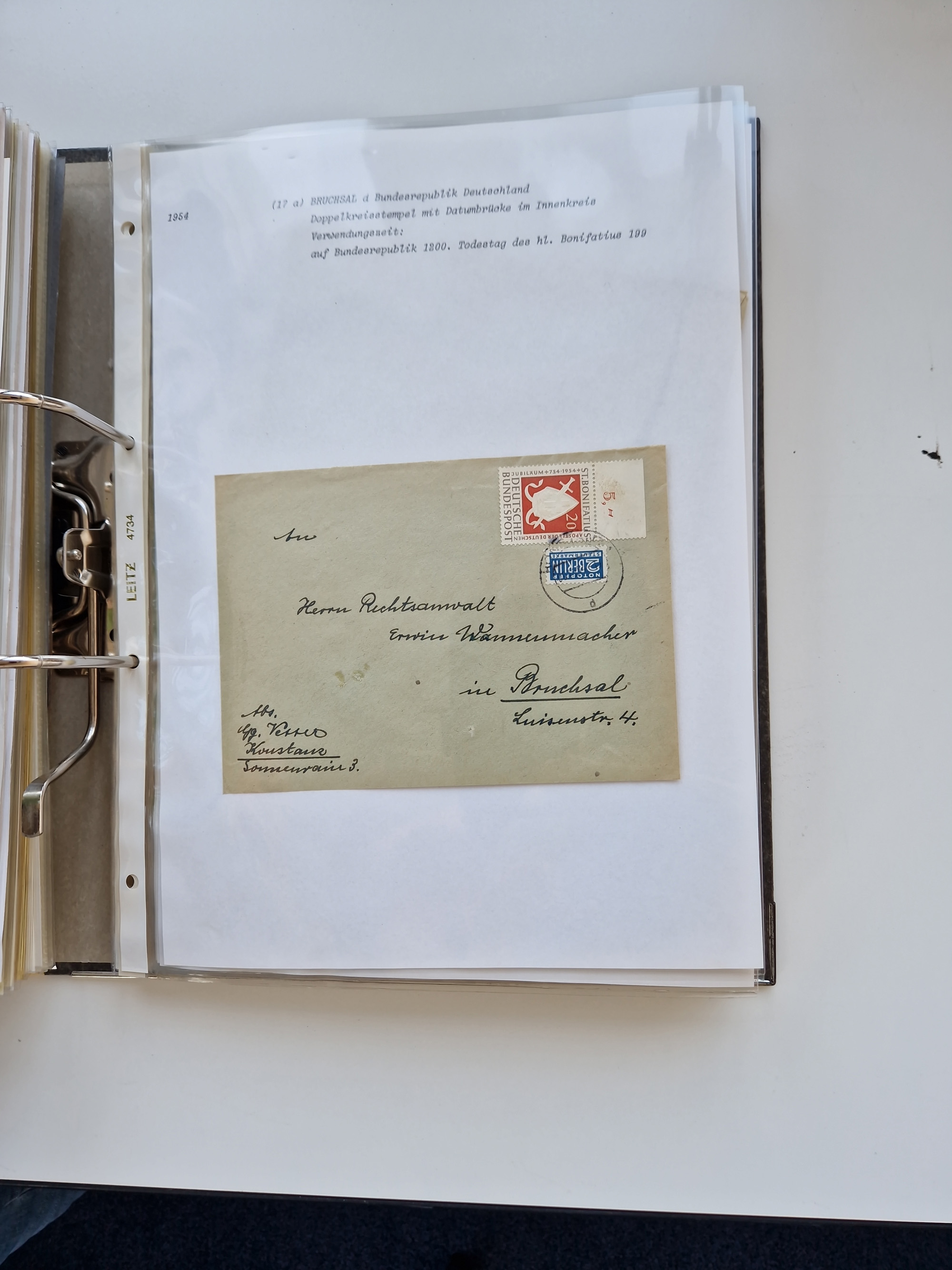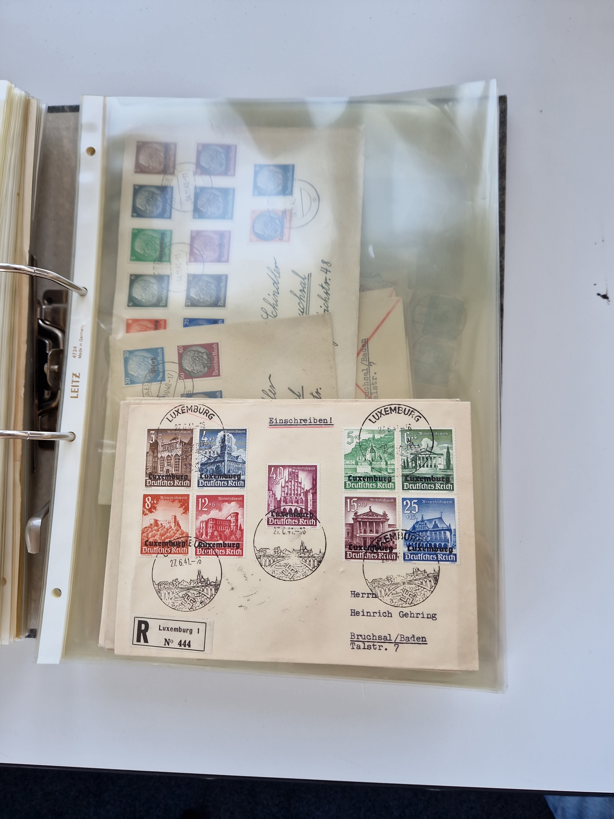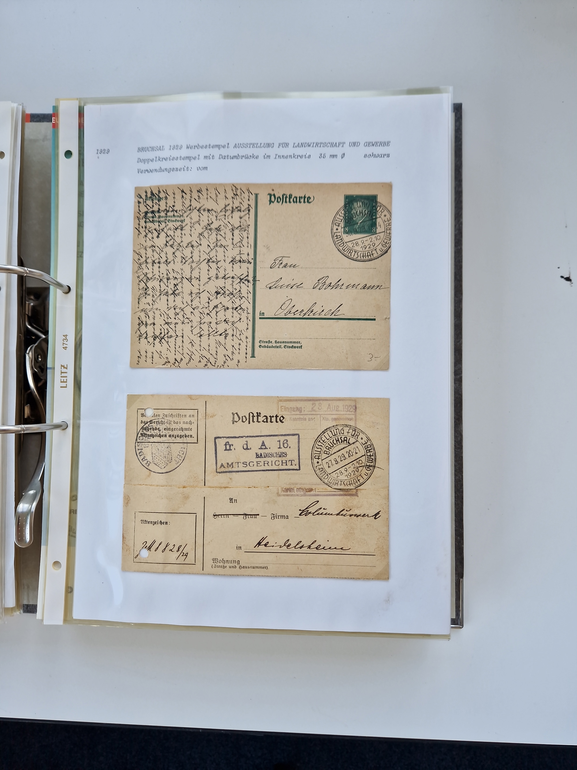 1870/2010 (ca.), Bruchsal und Umgebung, umfangreiche Heimatsammlung in 39 Ringordnern etwas unkonventionell, aber nichtsdestotrotz sehr inhaltsreich gesammelt mit zahlreichen Belegen ab Dt.Reich und auch losen Marken, u.a. Brustschilde mit Marken und besseren Frankaturen, Nachkriegszeit mit Besatzungszonen, auch eingehende Post aus Aller Welt.