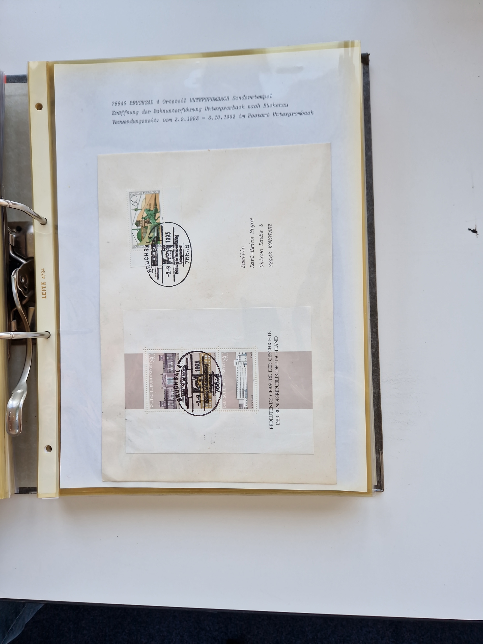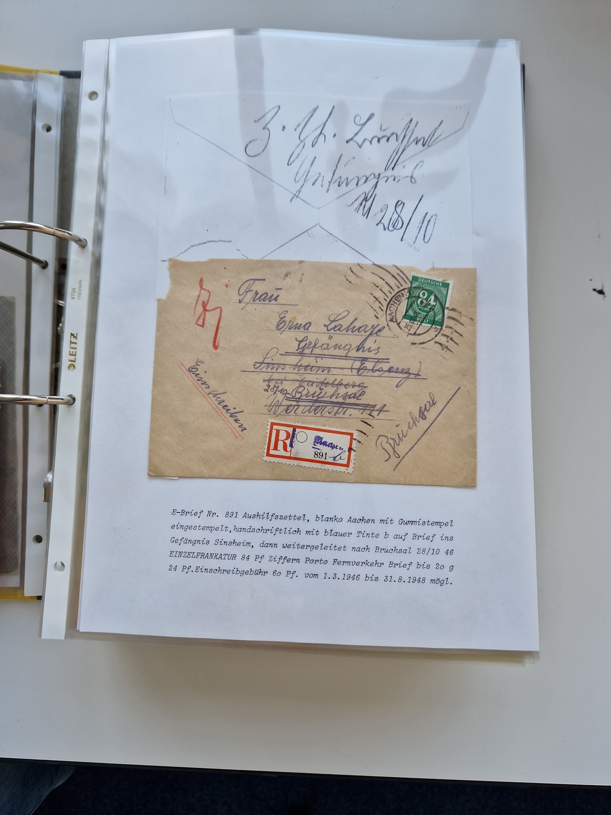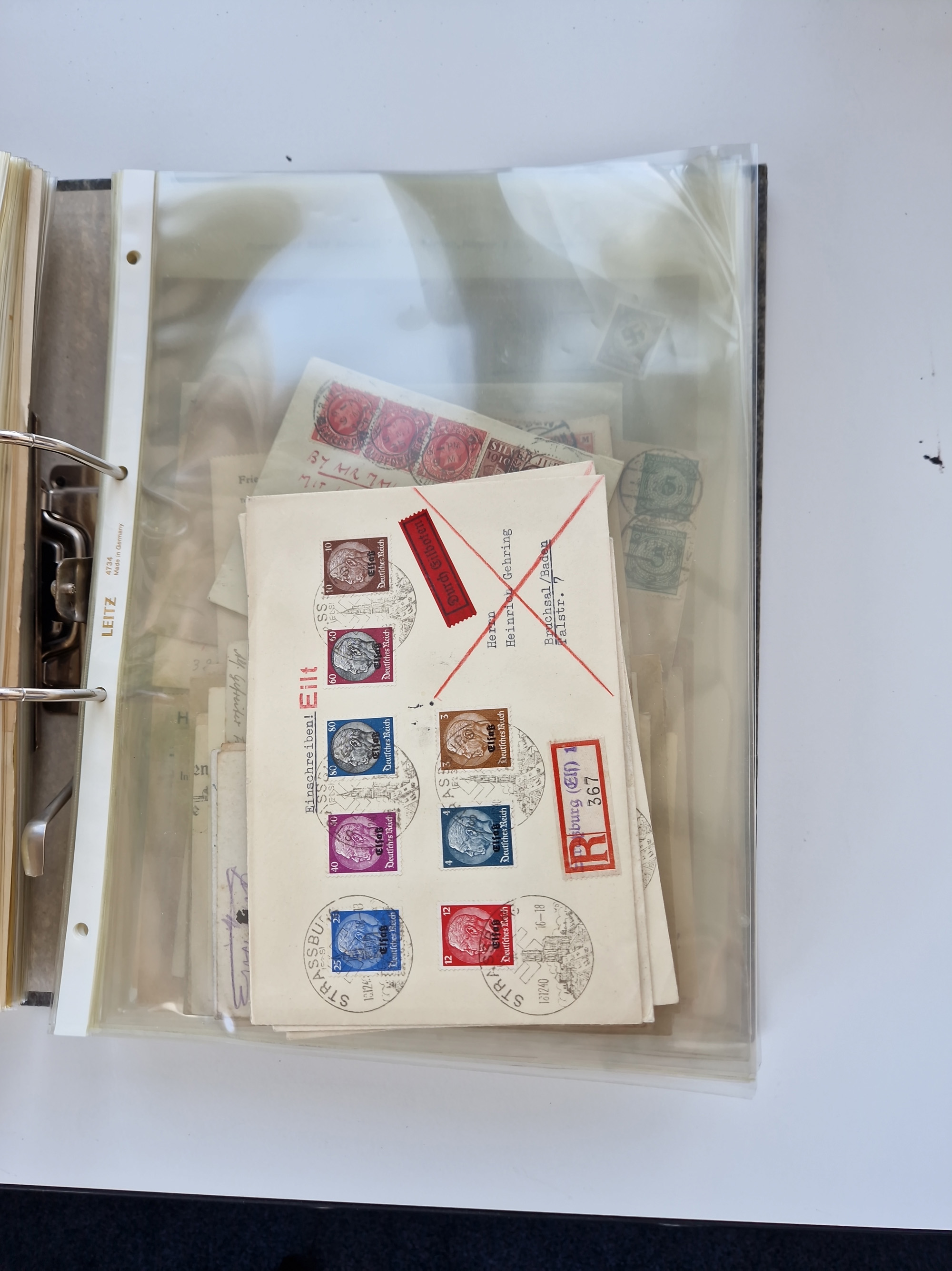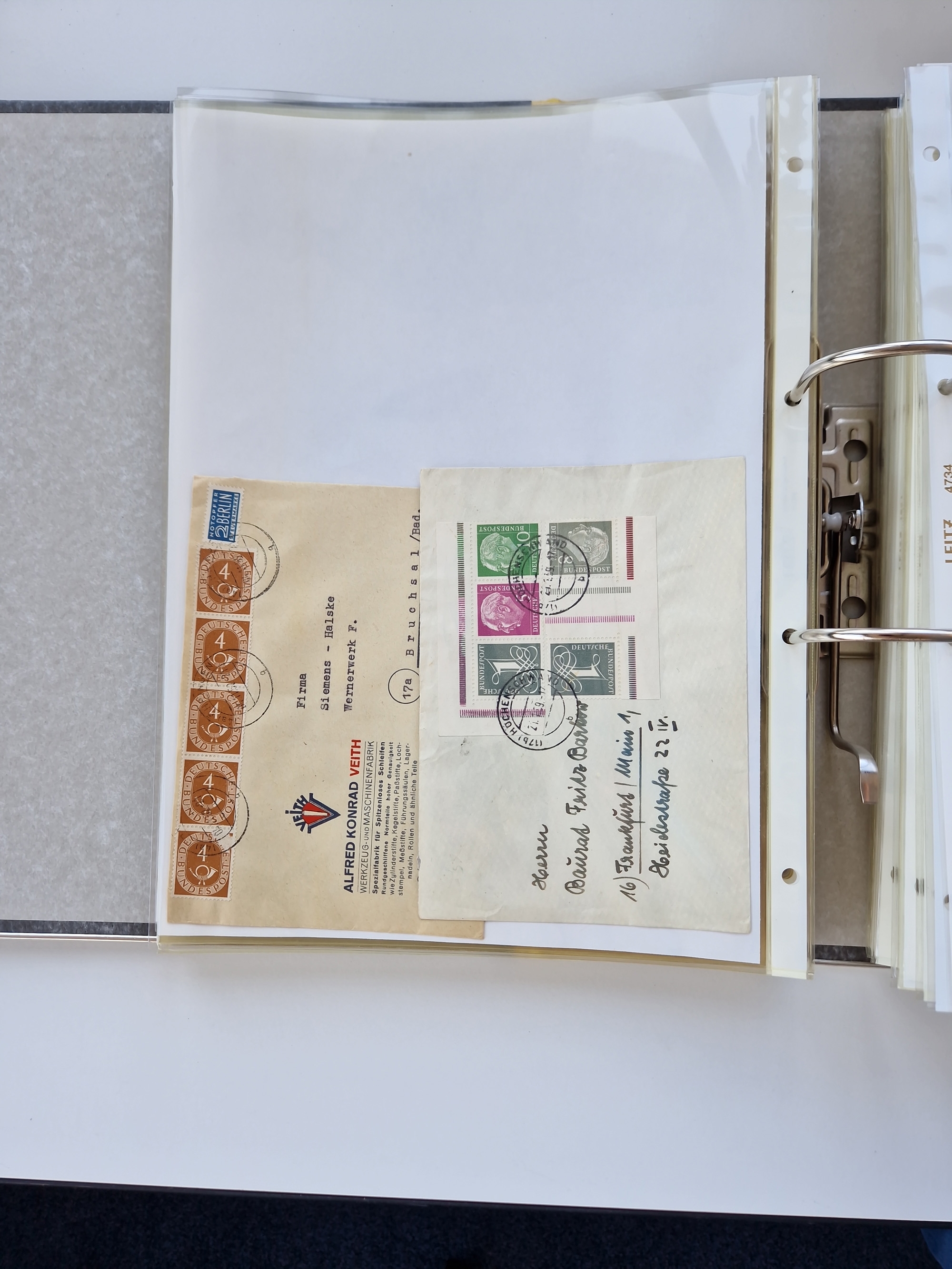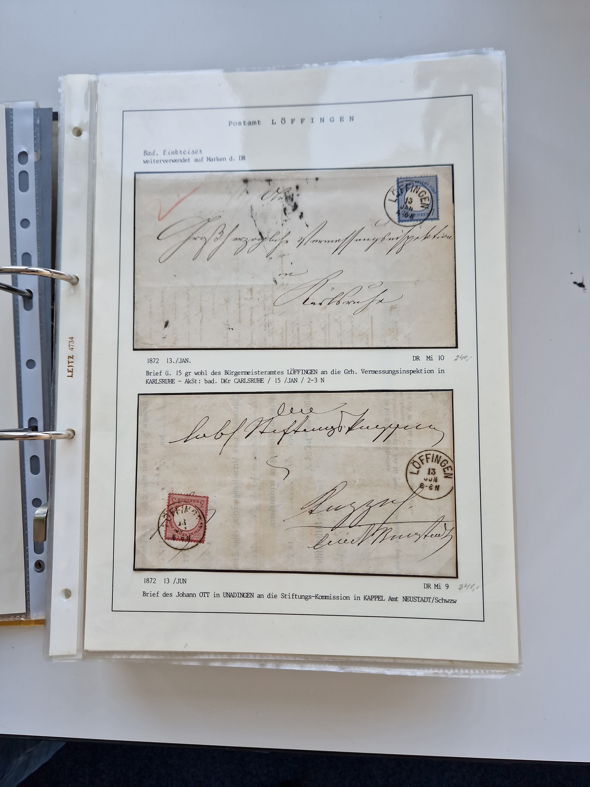 1870/2010 (ca.), Bruchsal und Umgebung, umfangreiche Heimatsammlung in 39 Ringordnern etwas unkonventionell, aber nichtsdestotrotz sehr inhaltsreich gesammelt mit zahlreichen Belegen ab Dt.Reich und auch losen Marken, u.a. Brustschilde mit Marken und besseren Frankaturen, Nachkriegszeit mit Besatzungszonen, auch eingehende Post aus Aller Welt.