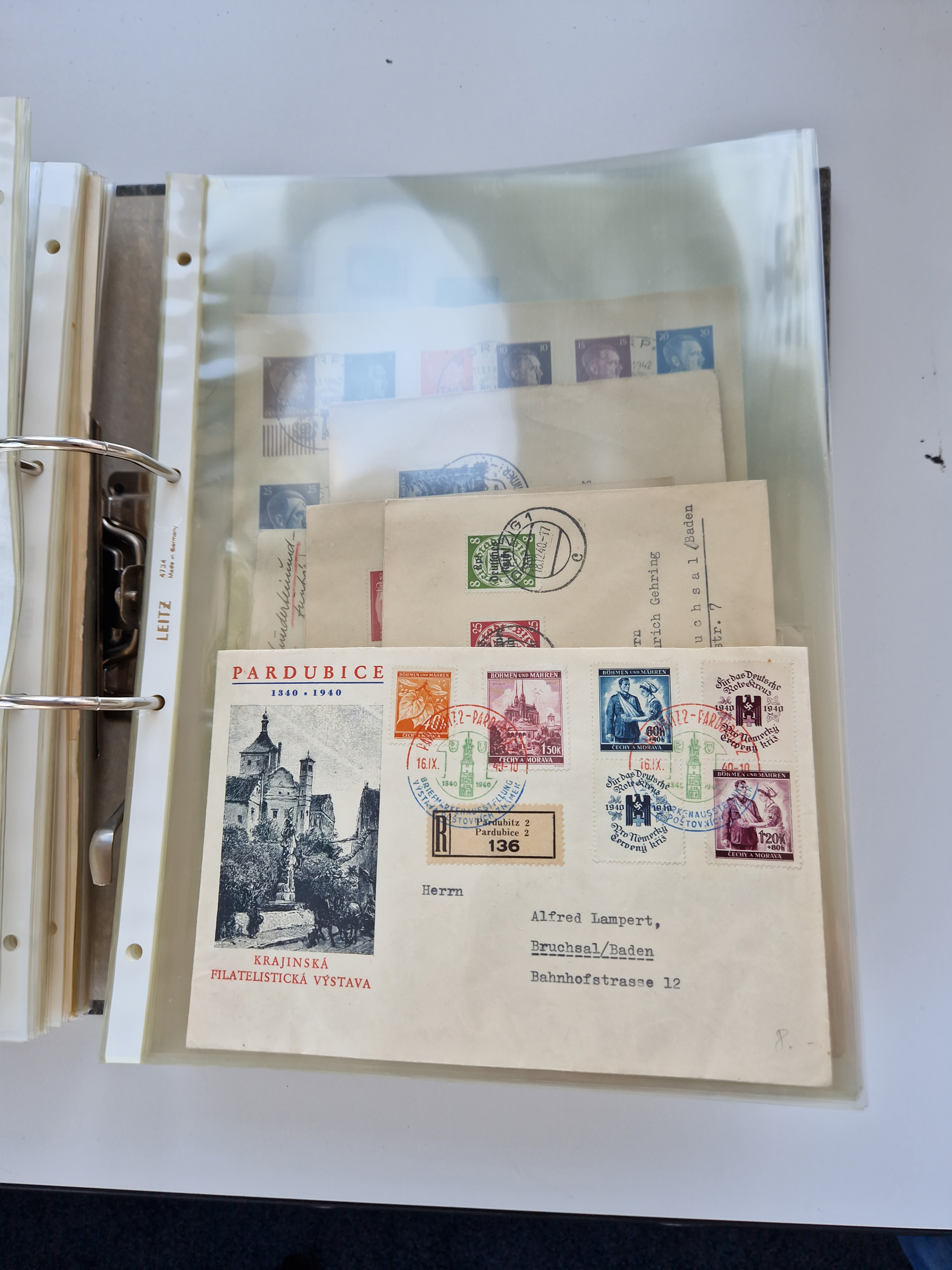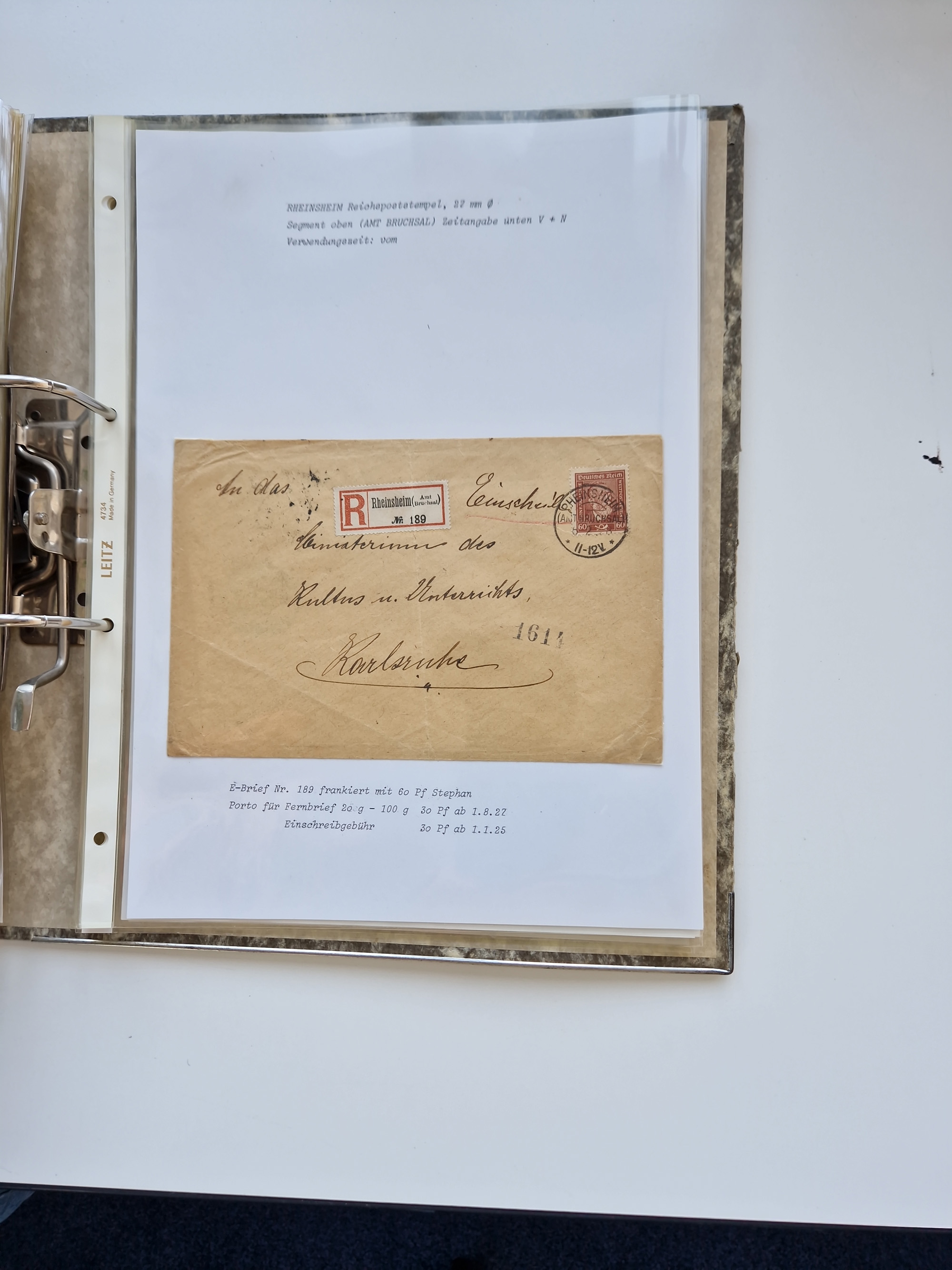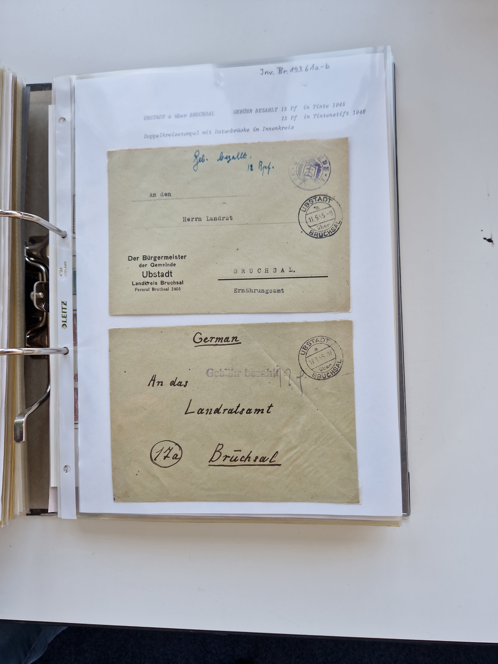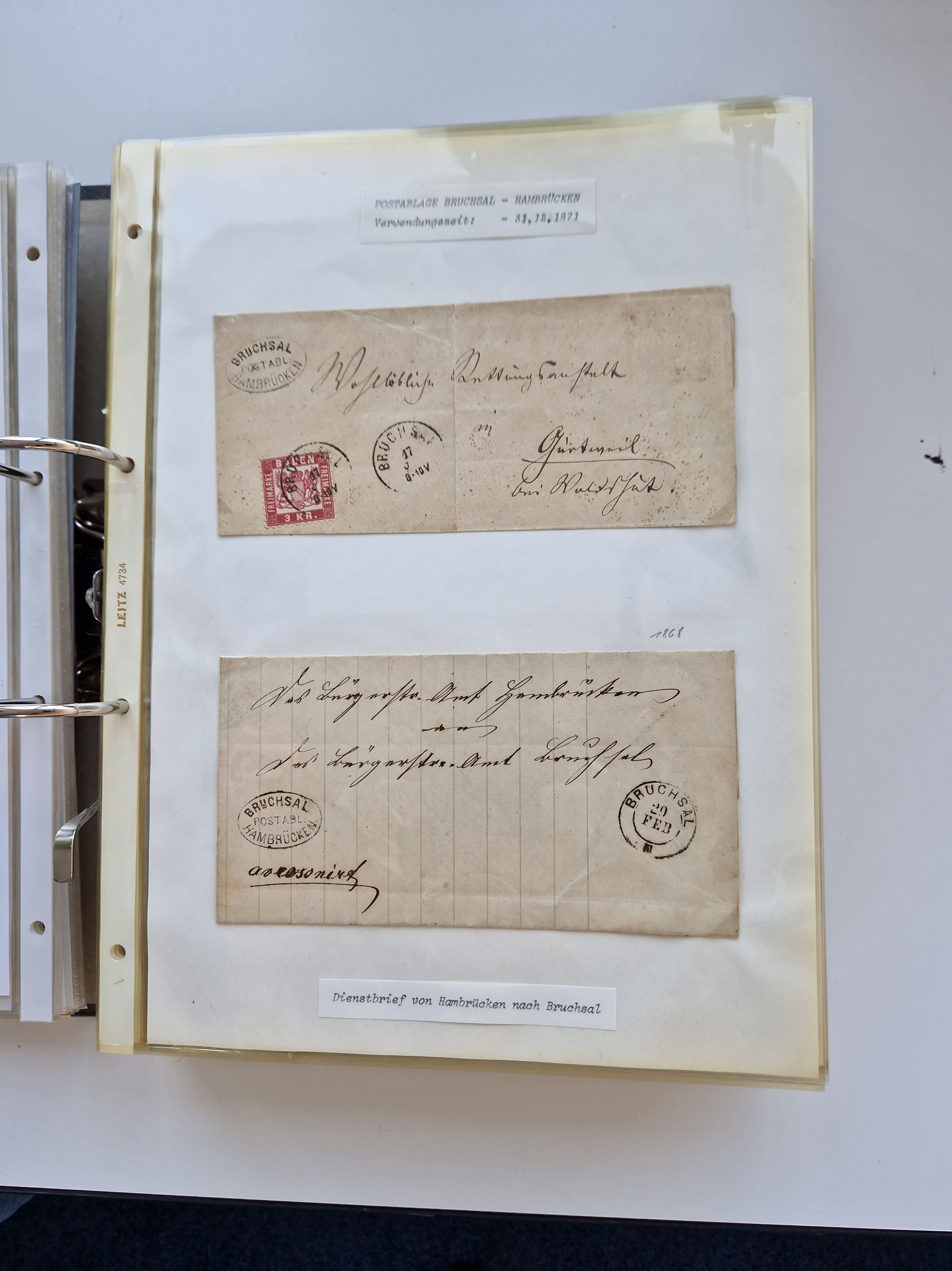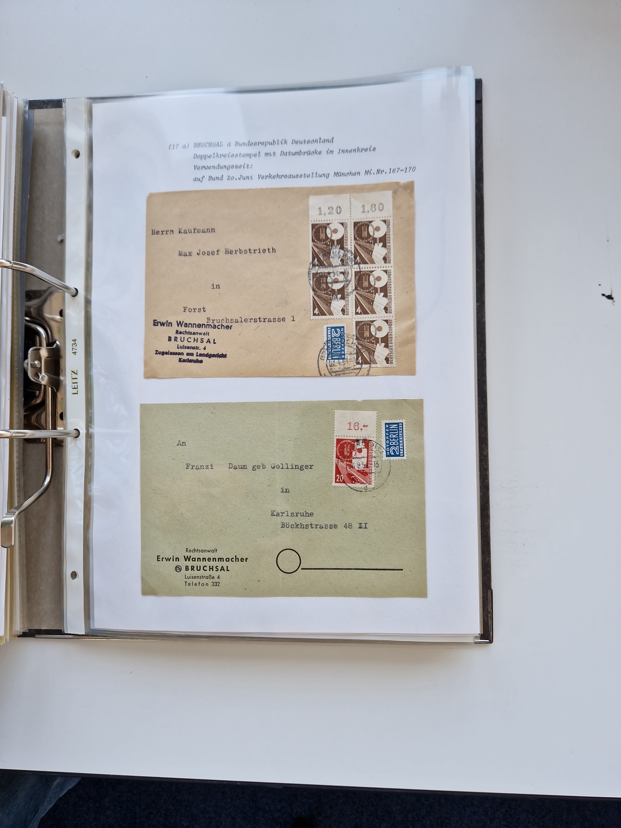 1870/2010 (ca.), Bruchsal und Umgebung, umfangreiche Heimatsammlung in 39 Ringordnern etwas unkonventionell, aber nichtsdestotrotz sehr inhaltsreich gesammelt mit zahlreichen Belegen ab Dt.Reich und auch losen Marken, u.a. Brustschilde mit Marken und besseren Frankaturen, Nachkriegszeit mit Besatzungszonen, auch eingehende Post aus Aller Welt.