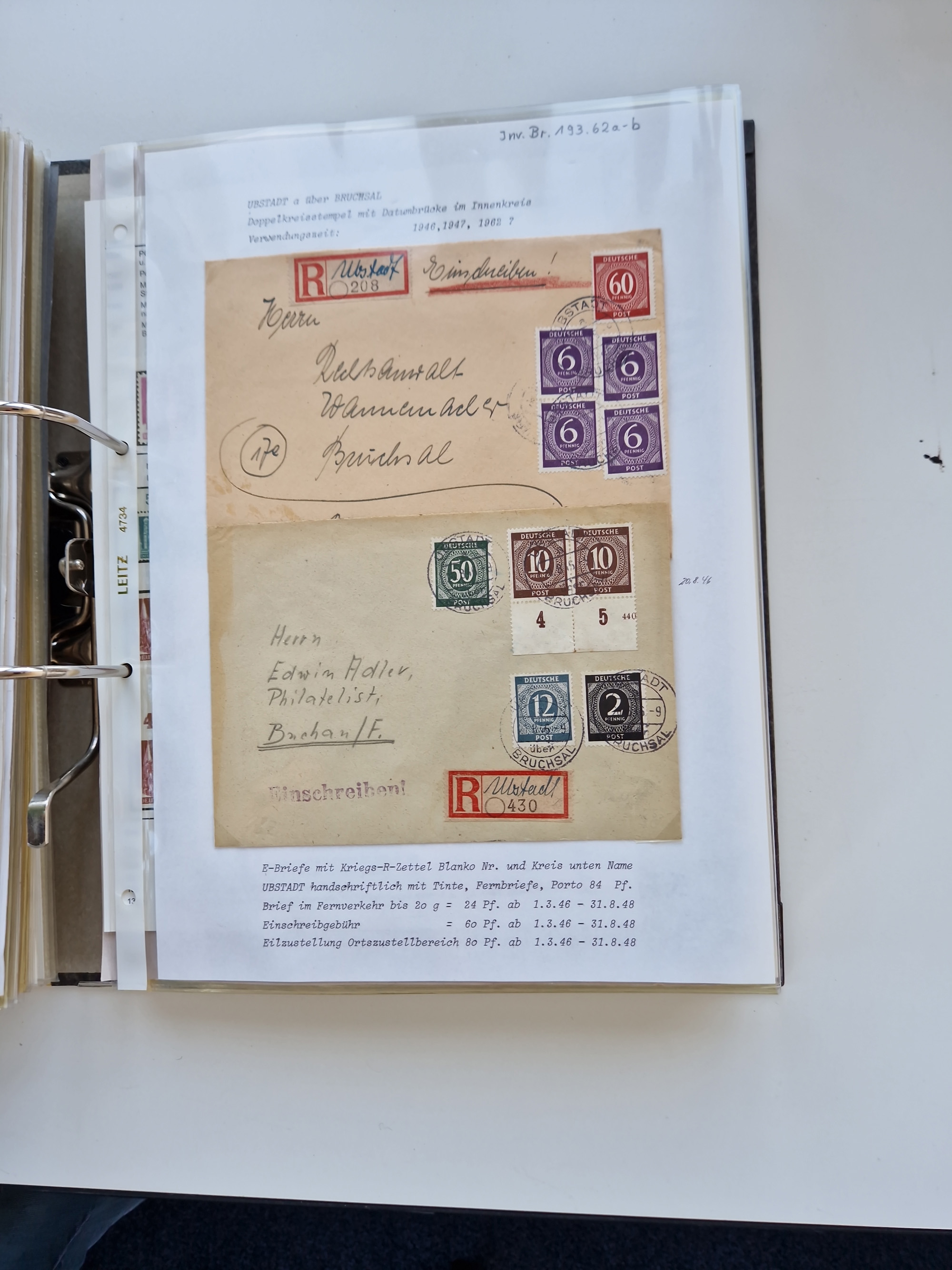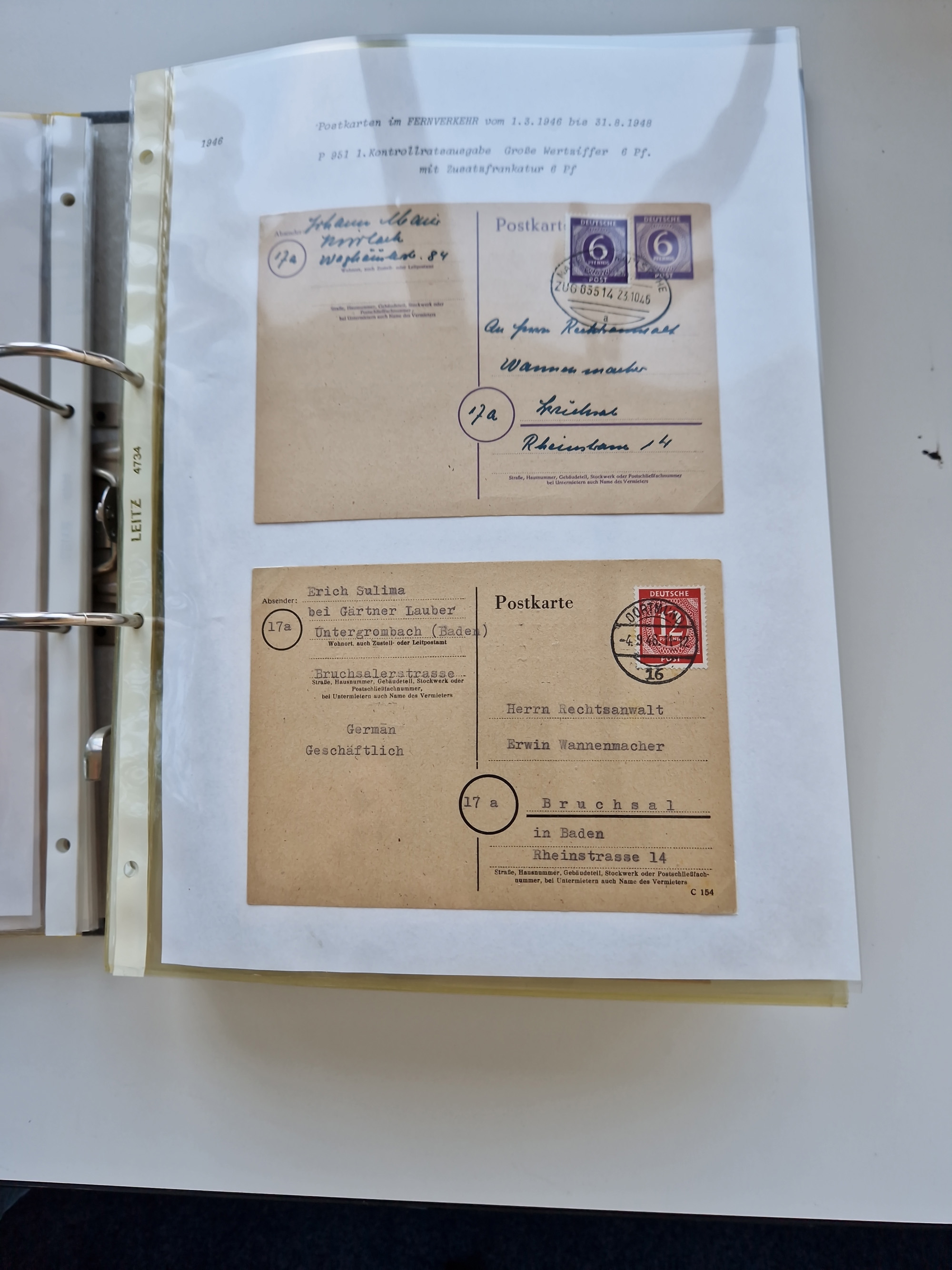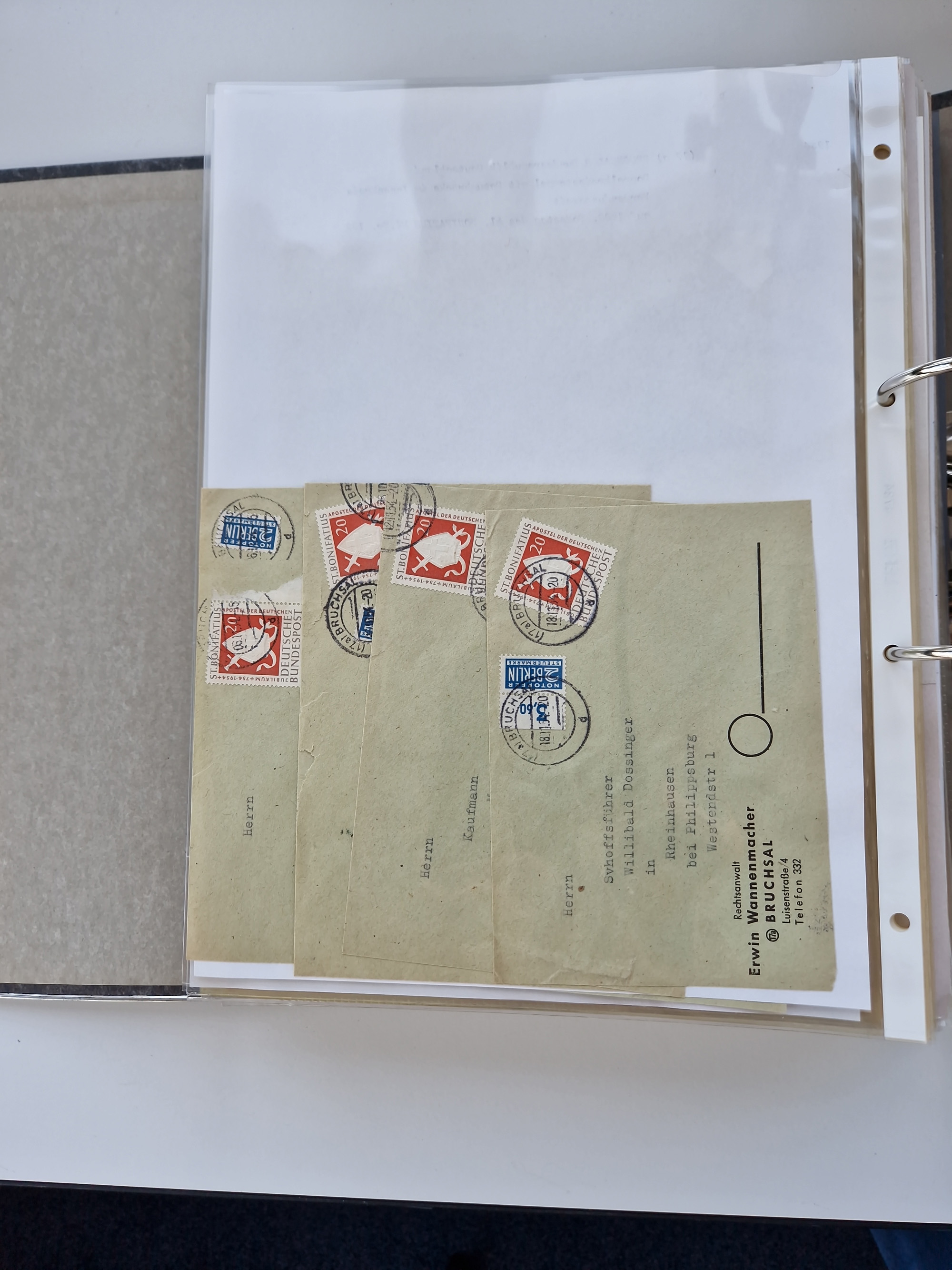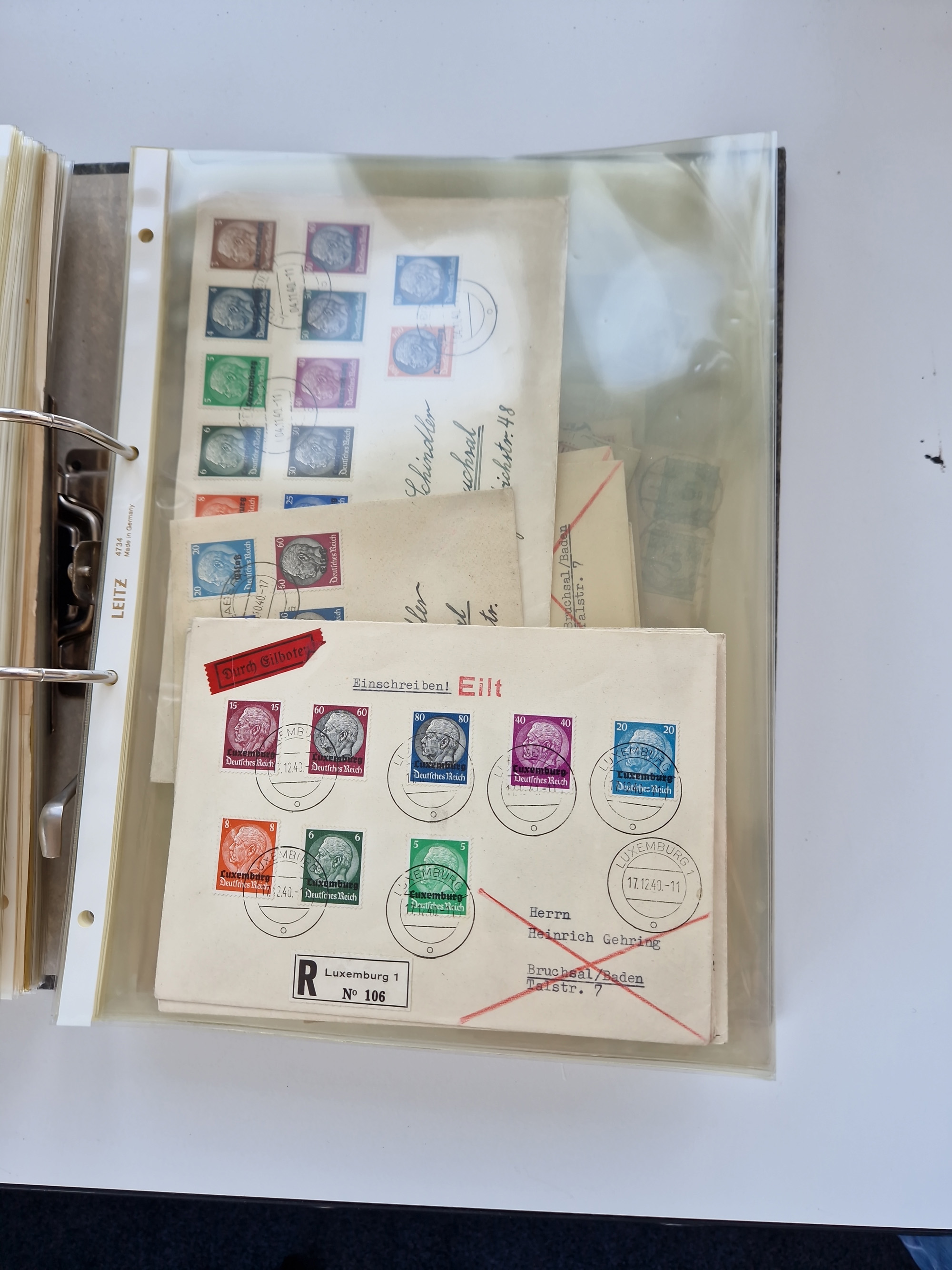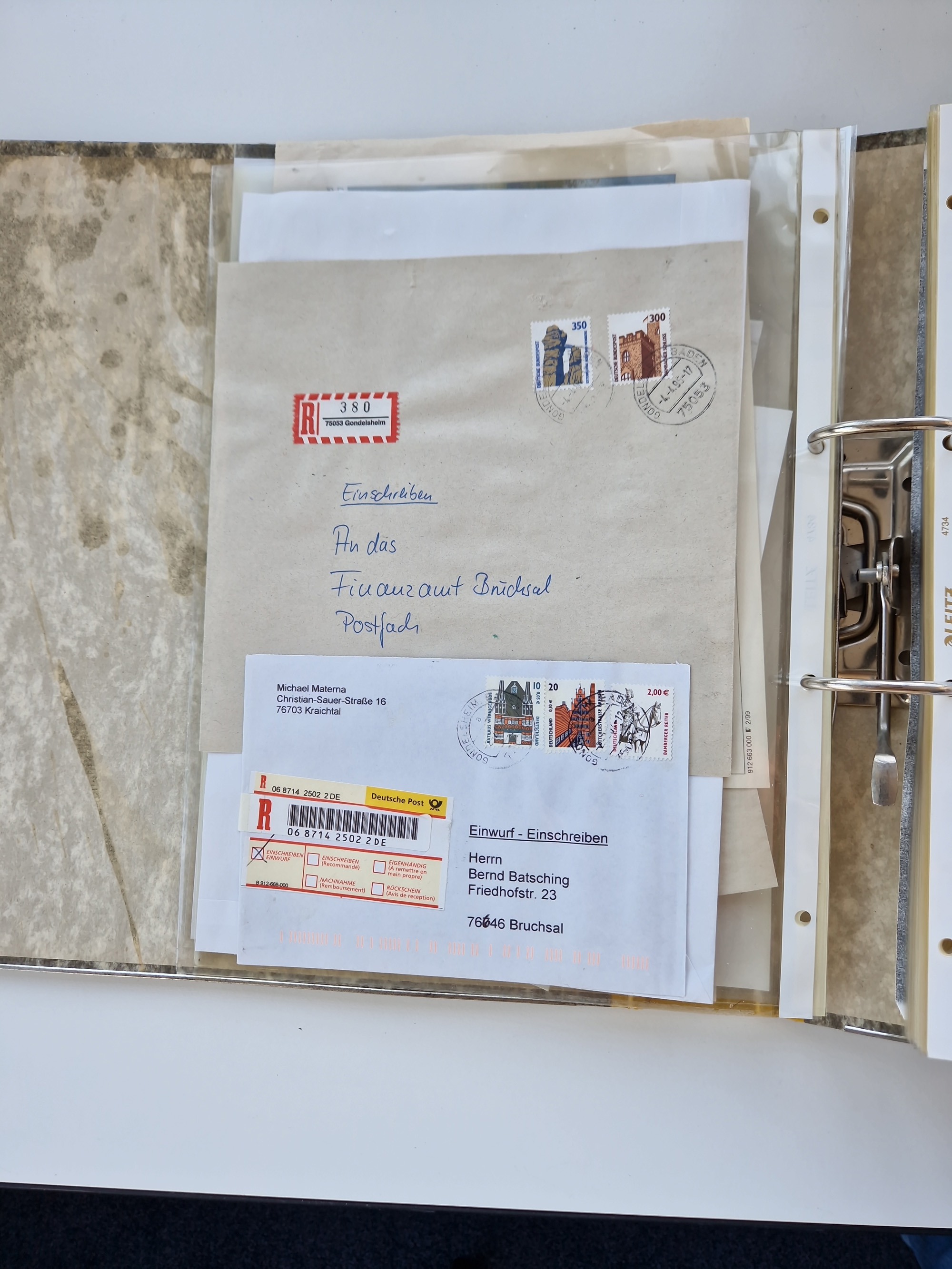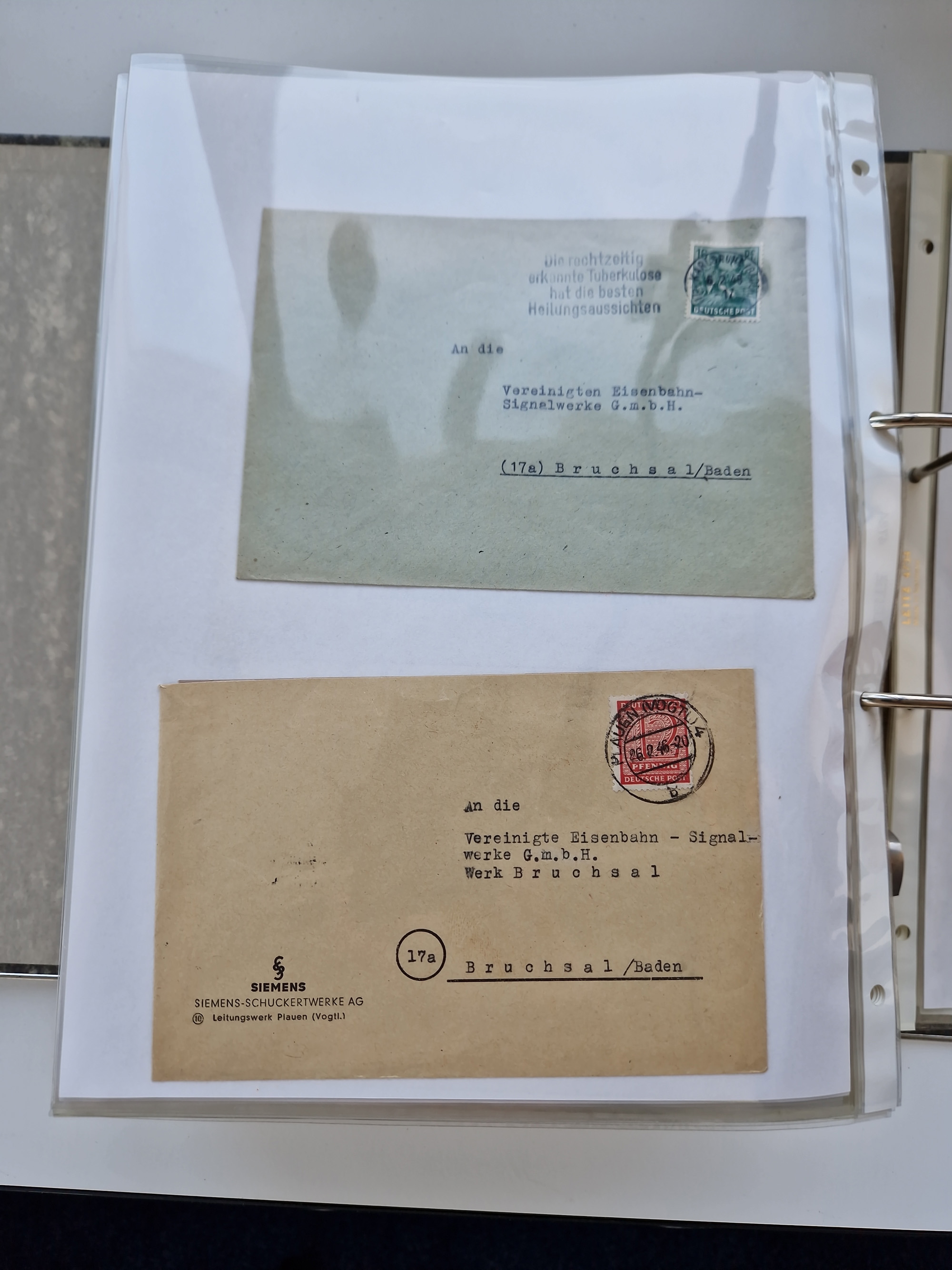 1870/2010 (ca.), Bruchsal und Umgebung, umfangreiche Heimatsammlung in 39 Ringordnern etwas unkonventionell, aber nichtsdestotrotz sehr inhaltsreich gesammelt mit zahlreichen Belegen ab Dt.Reich und auch losen Marken, u.a. Brustschilde mit Marken und besseren Frankaturen, Nachkriegszeit mit Besatzungszonen, auch eingehende Post aus Aller Welt.