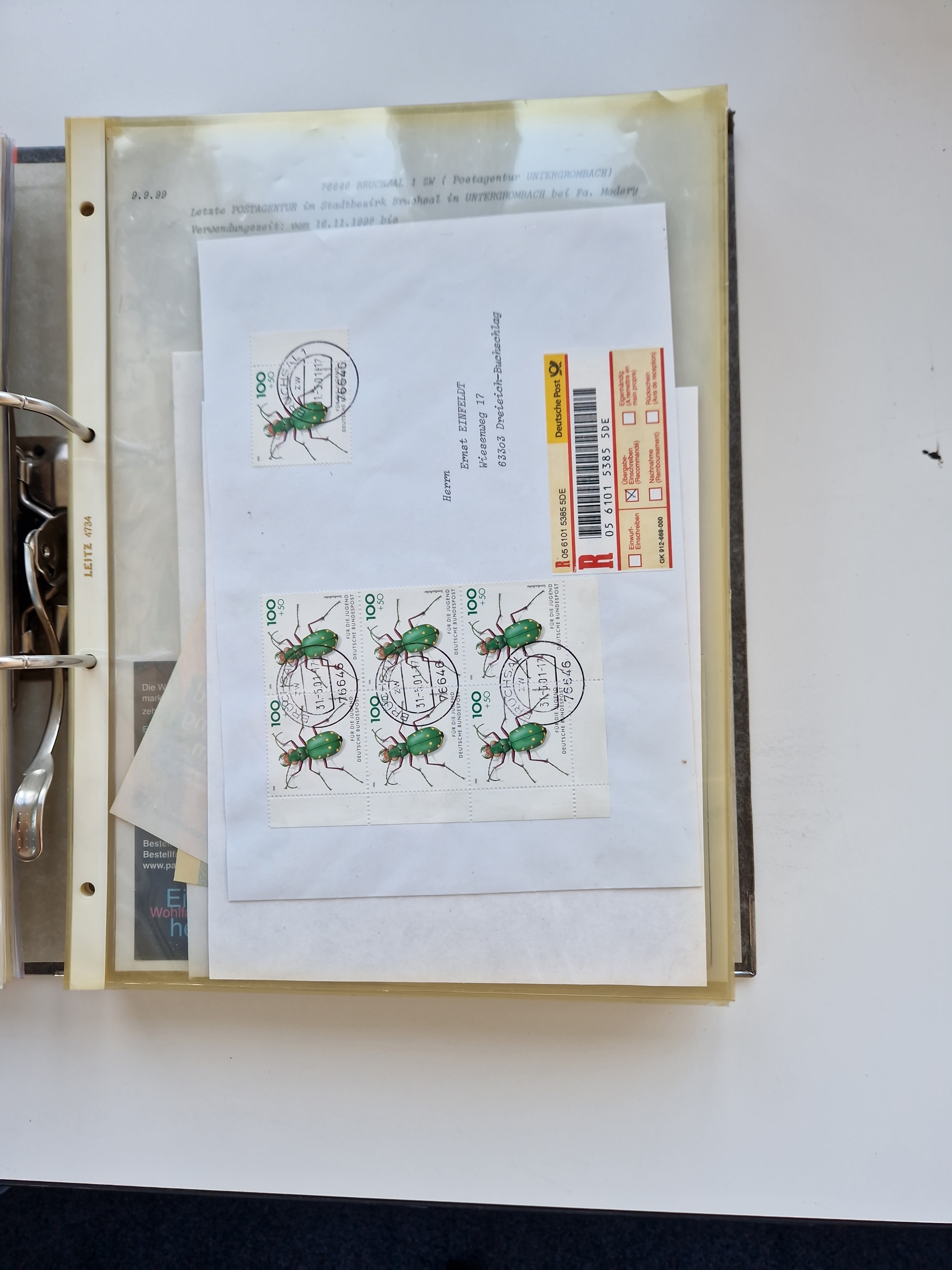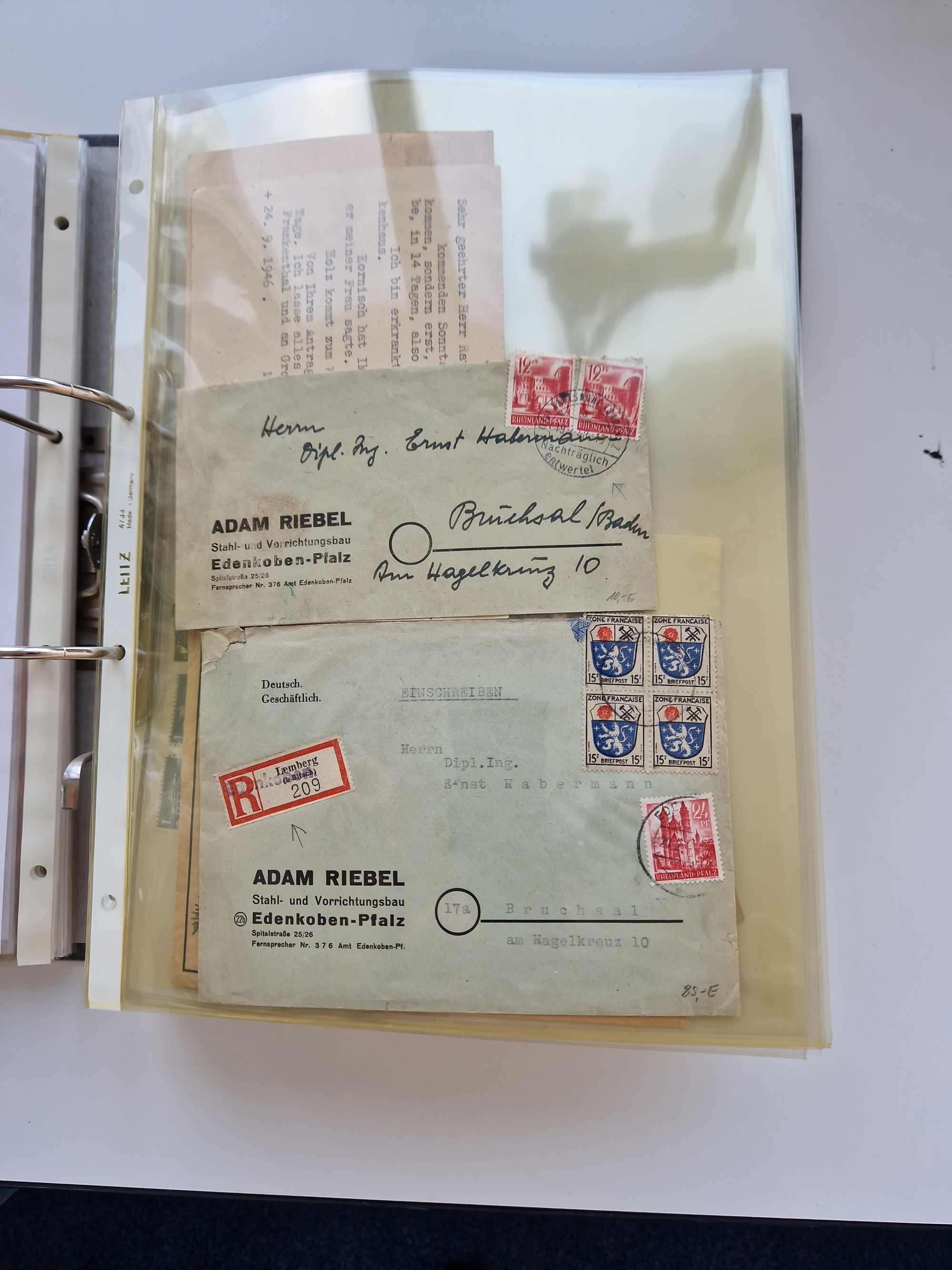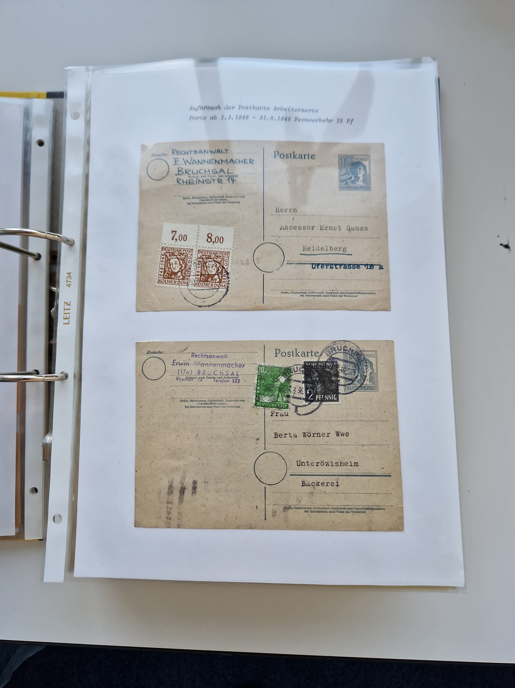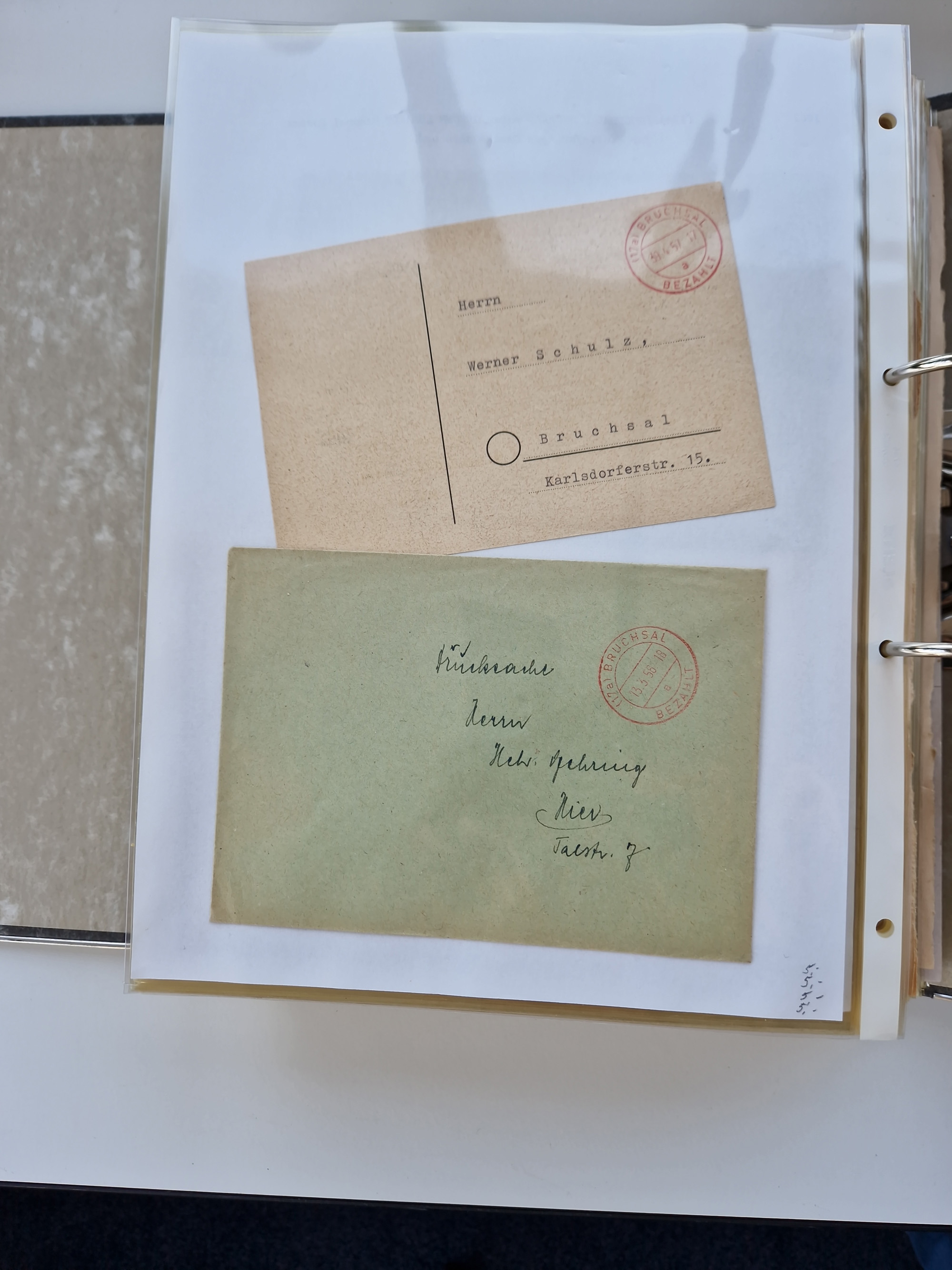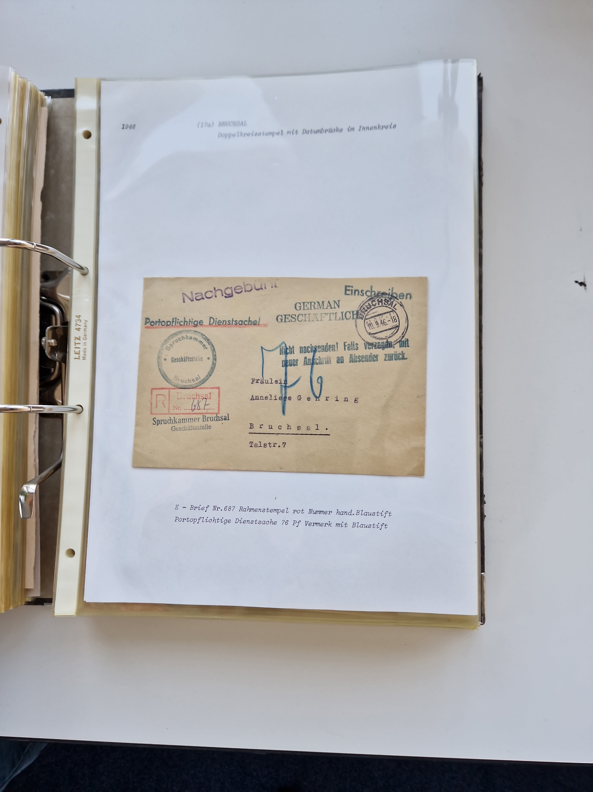 1870/2010 (ca.), Bruchsal und Umgebung, umfangreiche Heimatsammlung in 39 Ringordnern etwas unkonventionell, aber nichtsdestotrotz sehr inhaltsreich gesammelt mit zahlreichen Belegen ab Dt.Reich und auch losen Marken, u.a. Brustschilde mit Marken und besseren Frankaturen, Nachkriegszeit mit Besatzungszonen, auch eingehende Post aus Aller Welt.