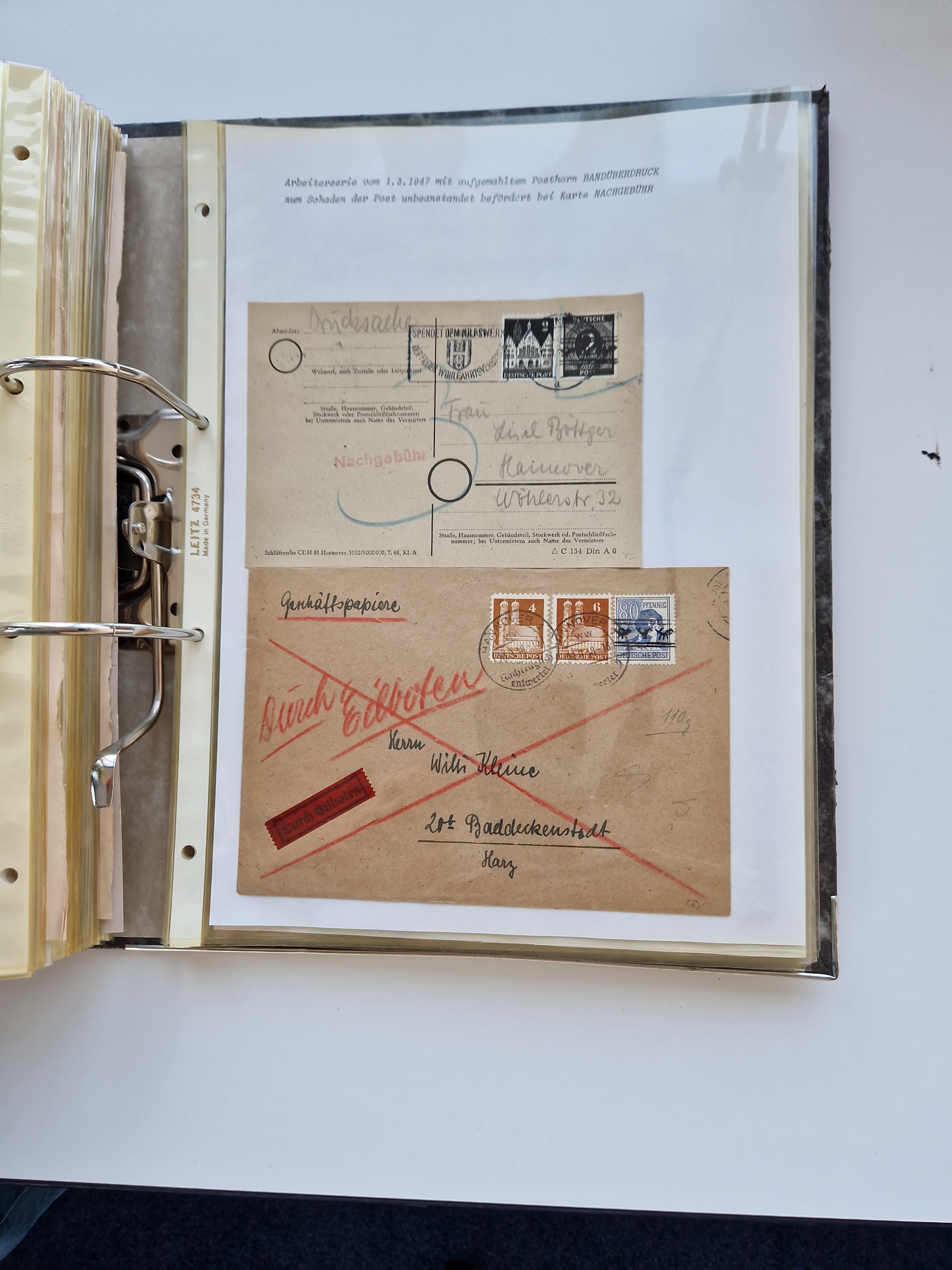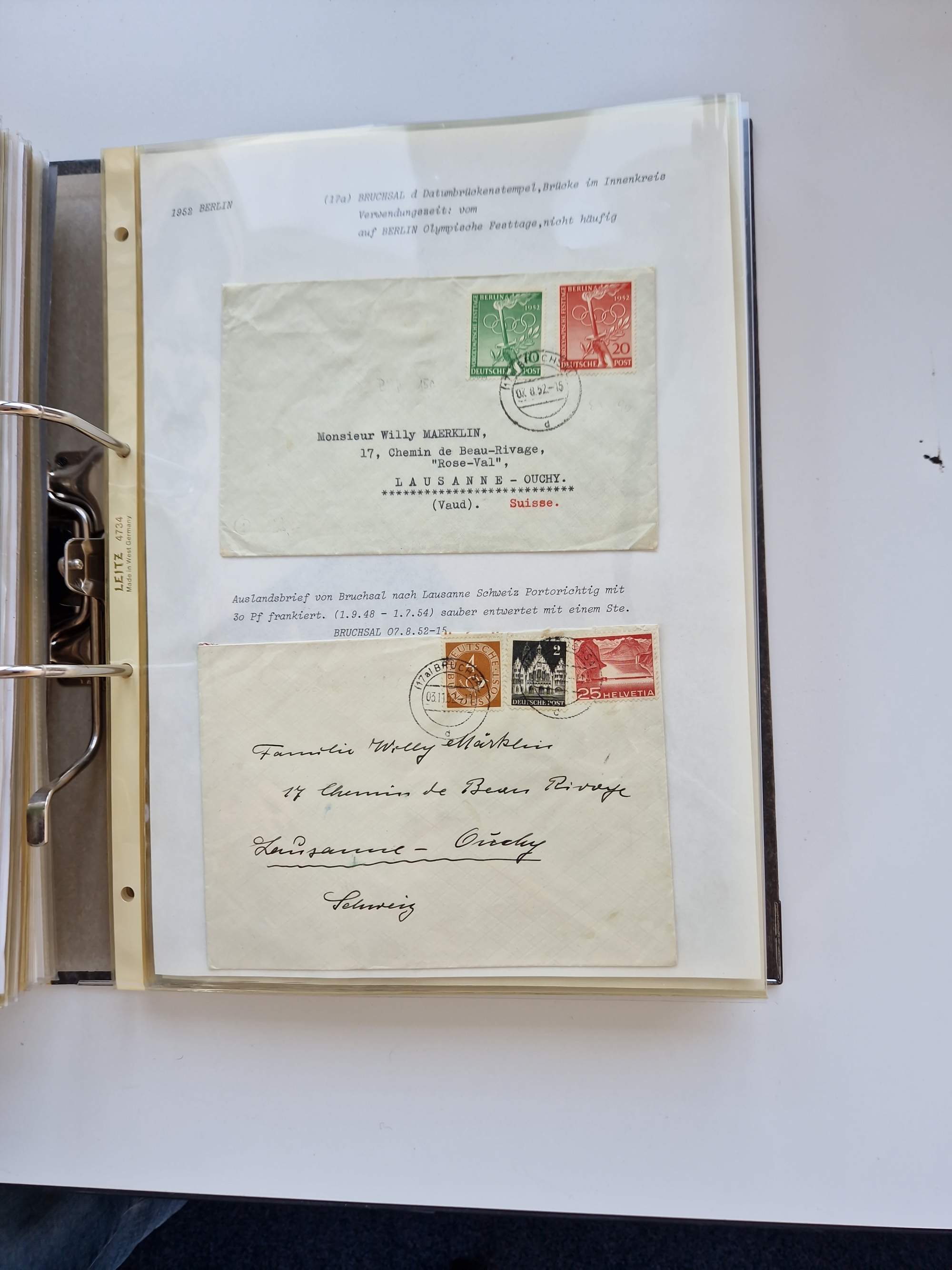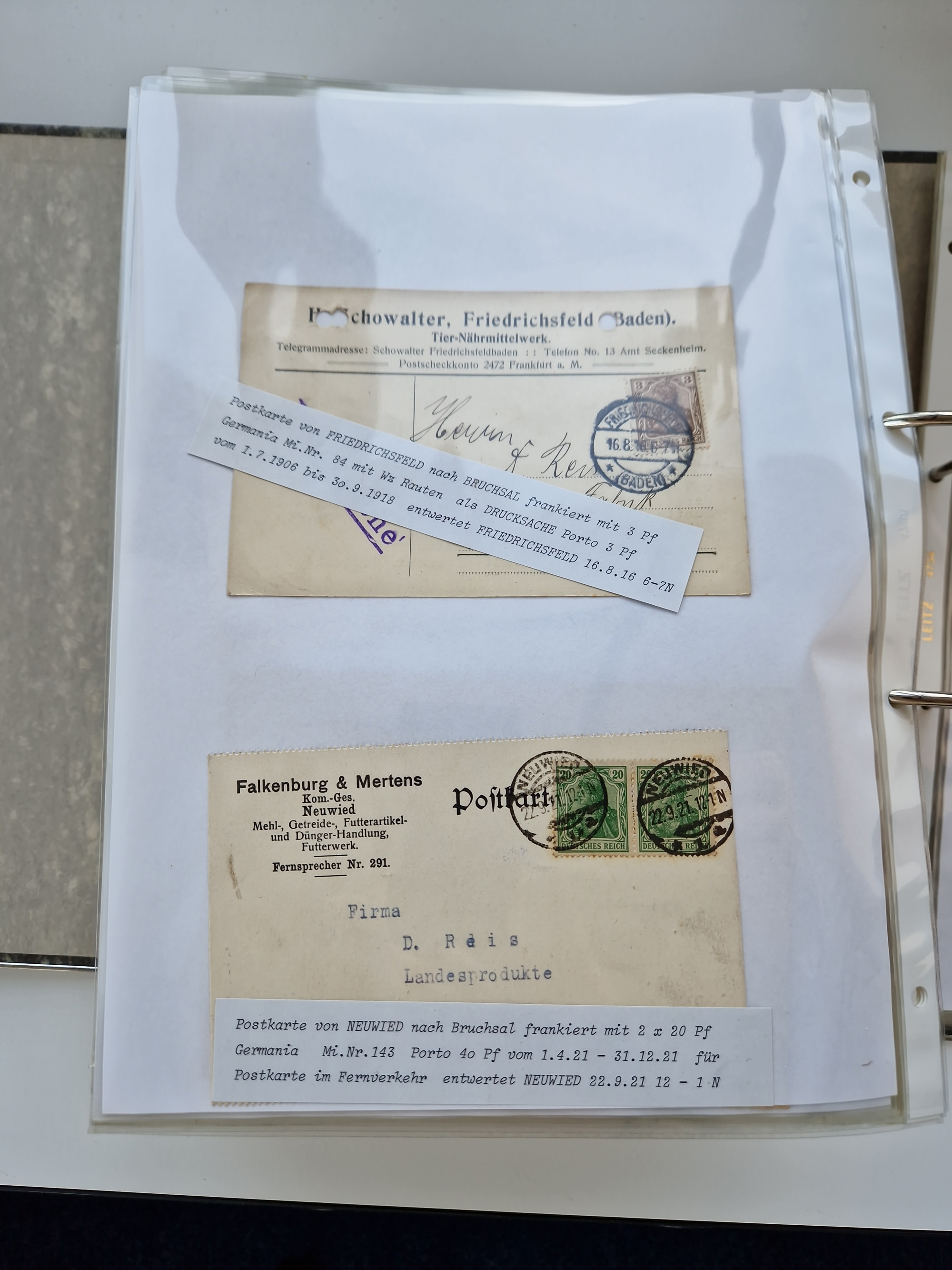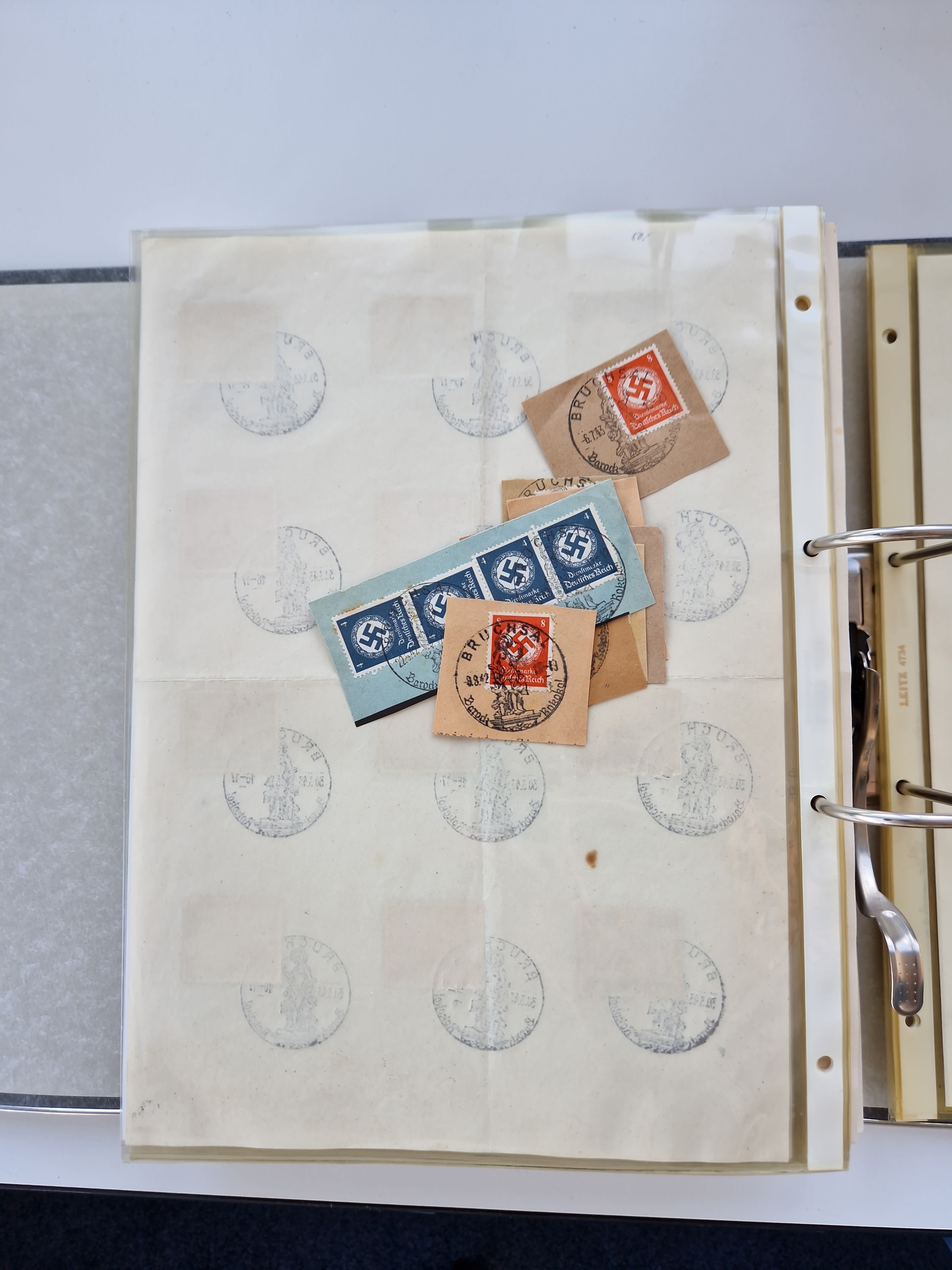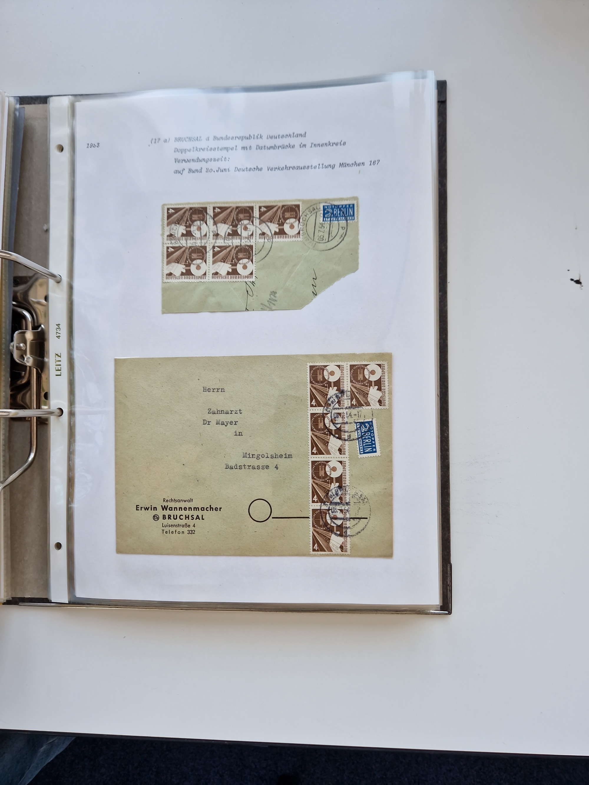 1870/2010 (ca.), Bruchsal und Umgebung, umfangreiche Heimatsammlung in 39 Ringordnern etwas unkonventionell, aber nichtsdestotrotz sehr inhaltsreich gesammelt mit zahlreichen Belegen ab Dt.Reich und auch losen Marken, u.a. Brustschilde mit Marken und besseren Frankaturen, Nachkriegszeit mit Besatzungszonen, auch eingehende Post aus Aller Welt.