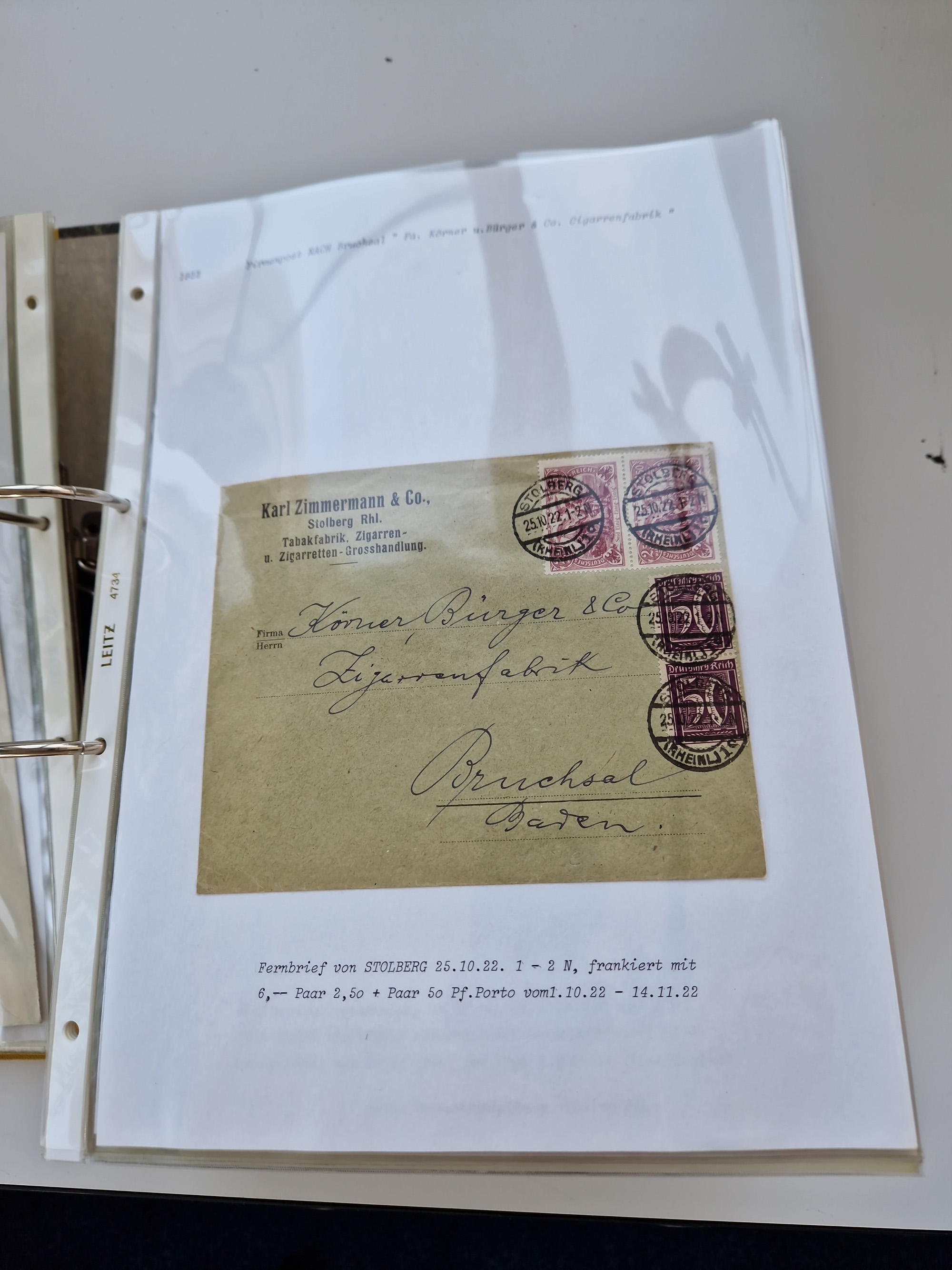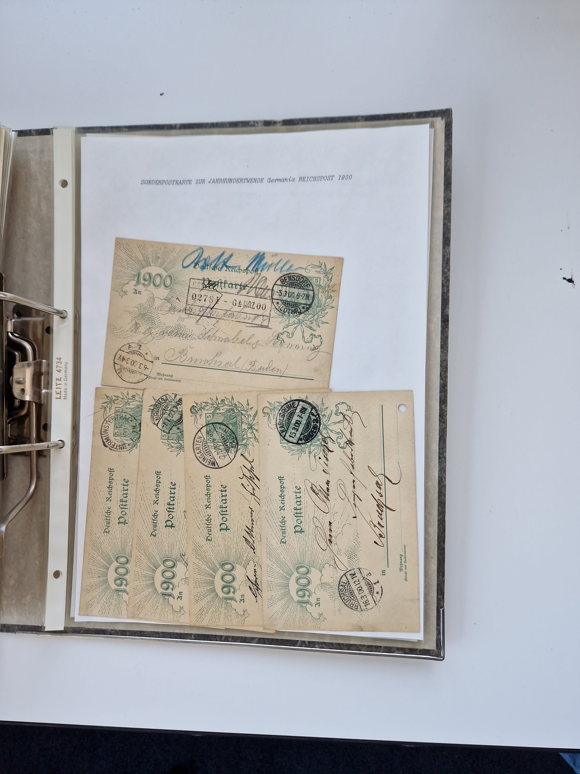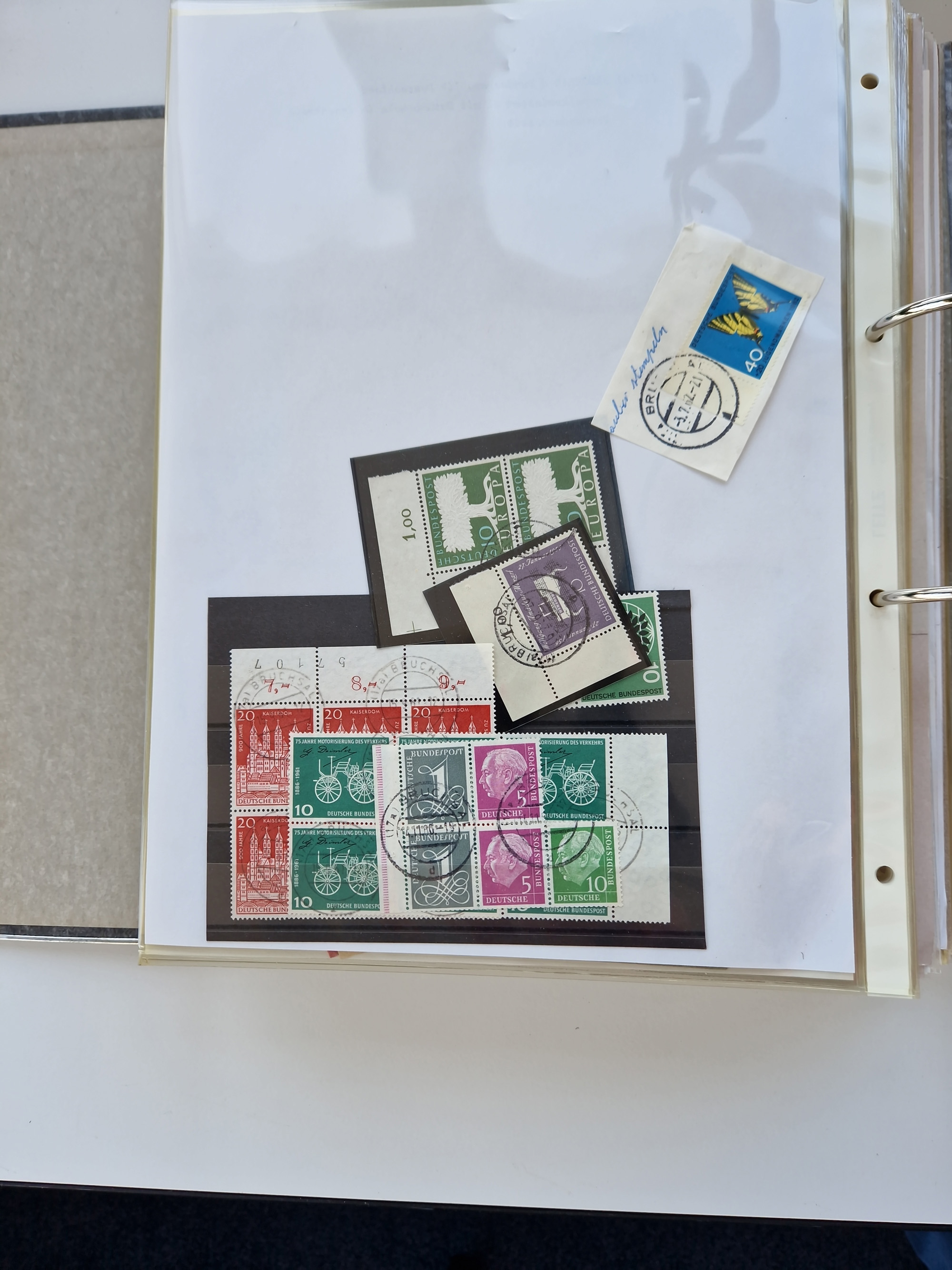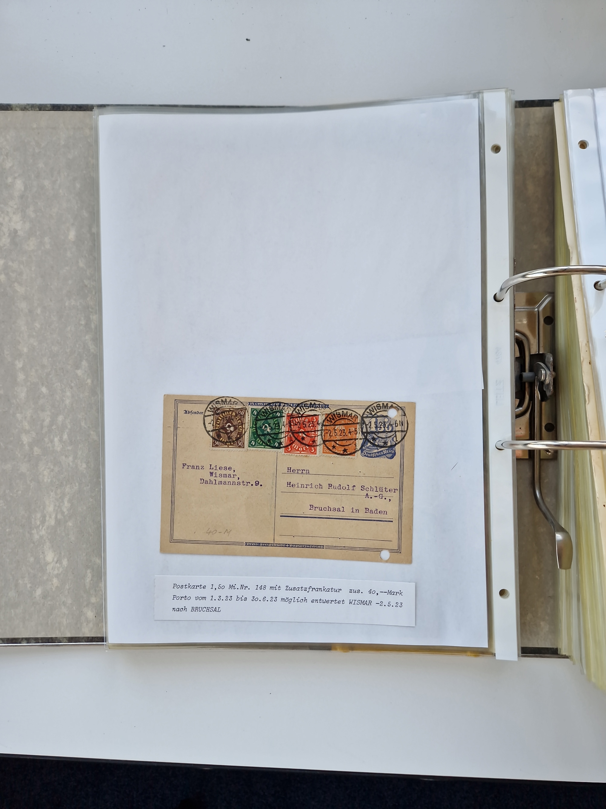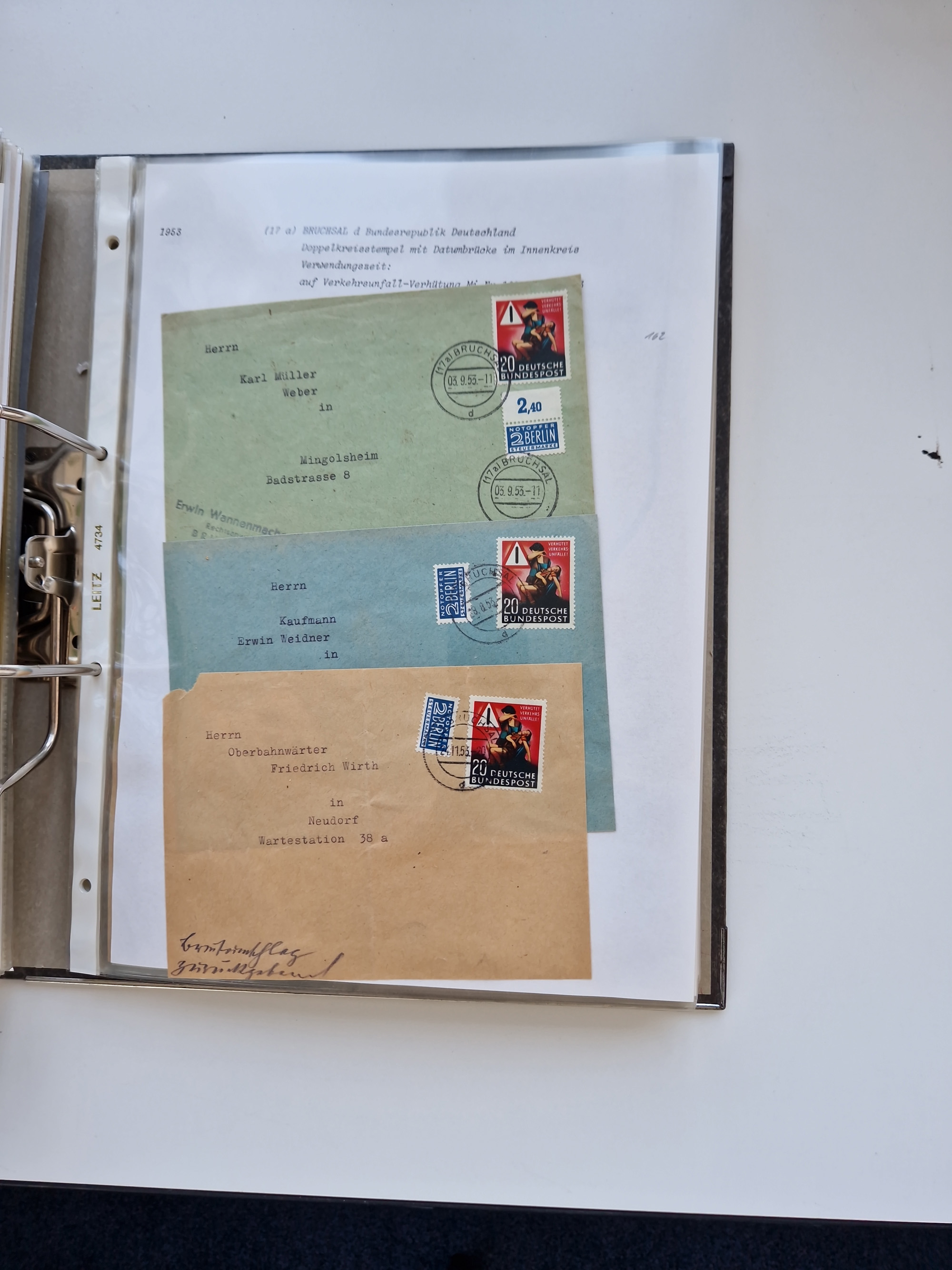1870/2010 (ca.), Bruchsal und Umgebung, umfangreiche Heimatsammlung in 39 Ringordnern etwas unkonventionell, aber nichtsdestotrotz sehr inhaltsreich gesammelt mit zahlreichen Belegen ab Dt.Reich und auch losen Marken, u.a. Brustschilde mit Marken und besseren Frankaturen, Nachkriegszeit mit Besatzungszonen, auch eingehende Post aus Aller Welt.