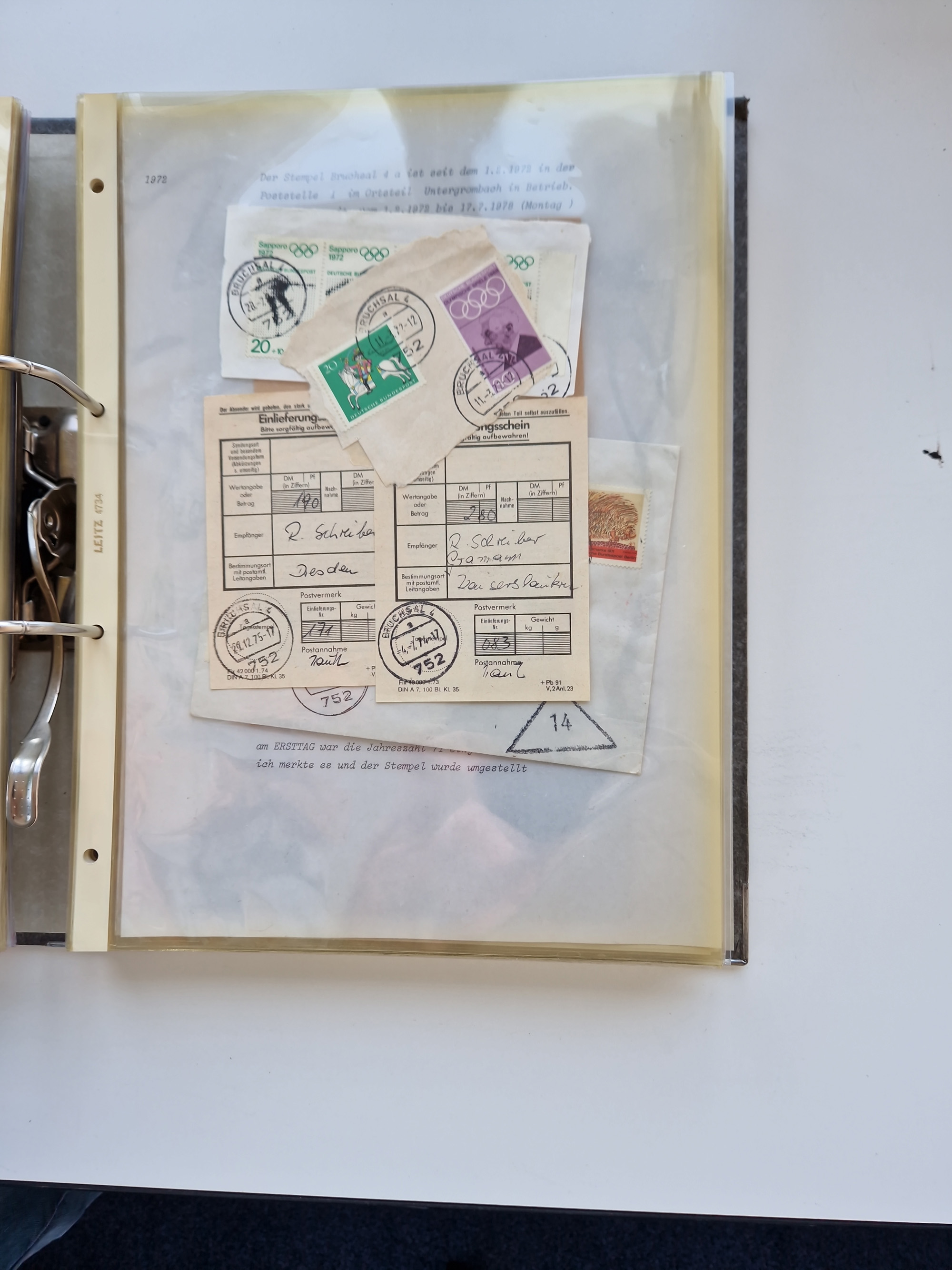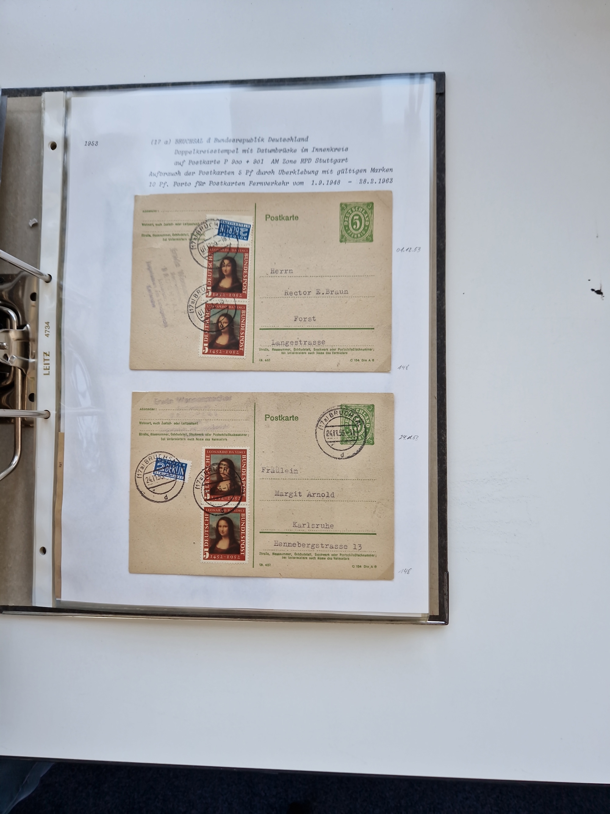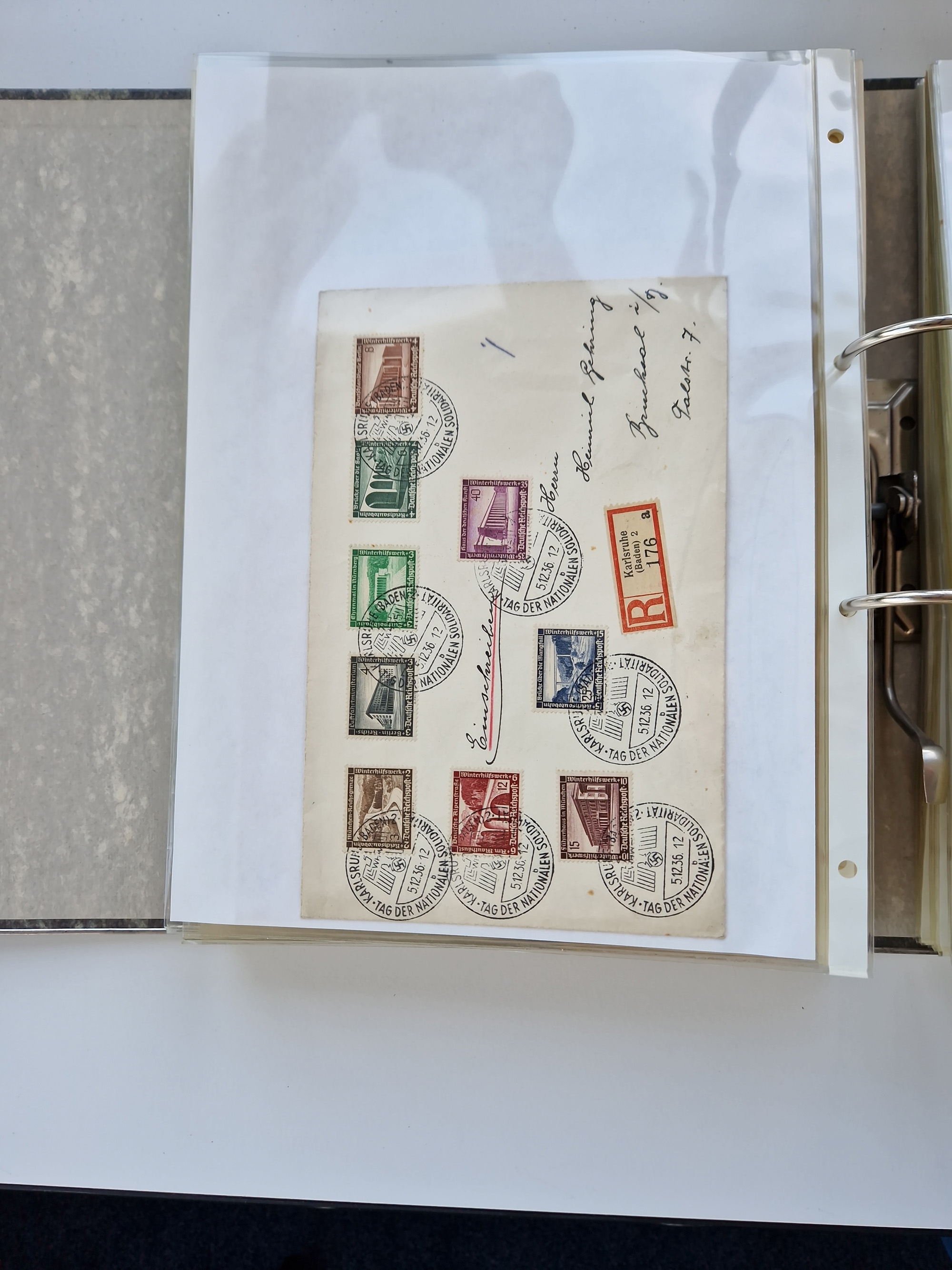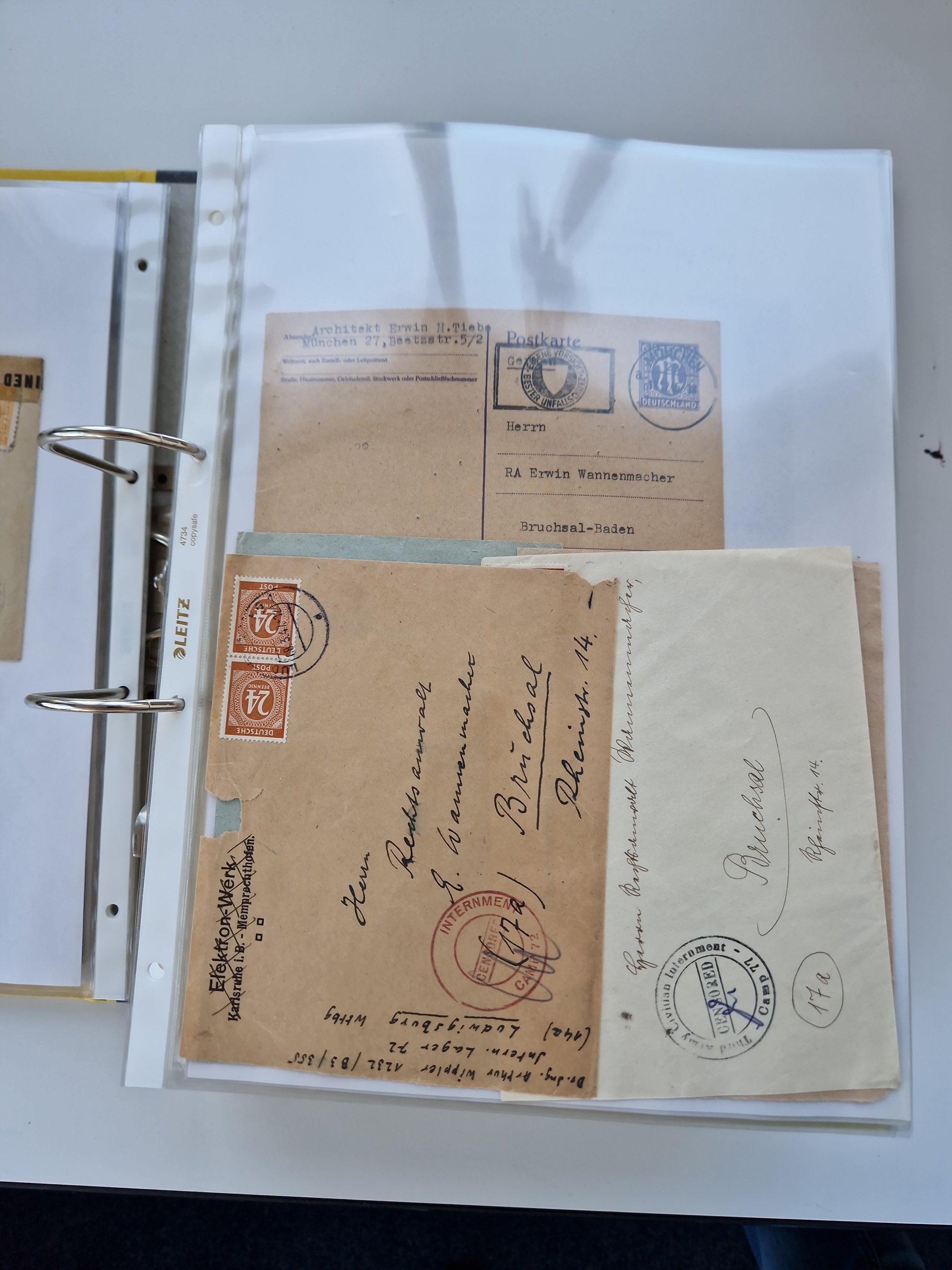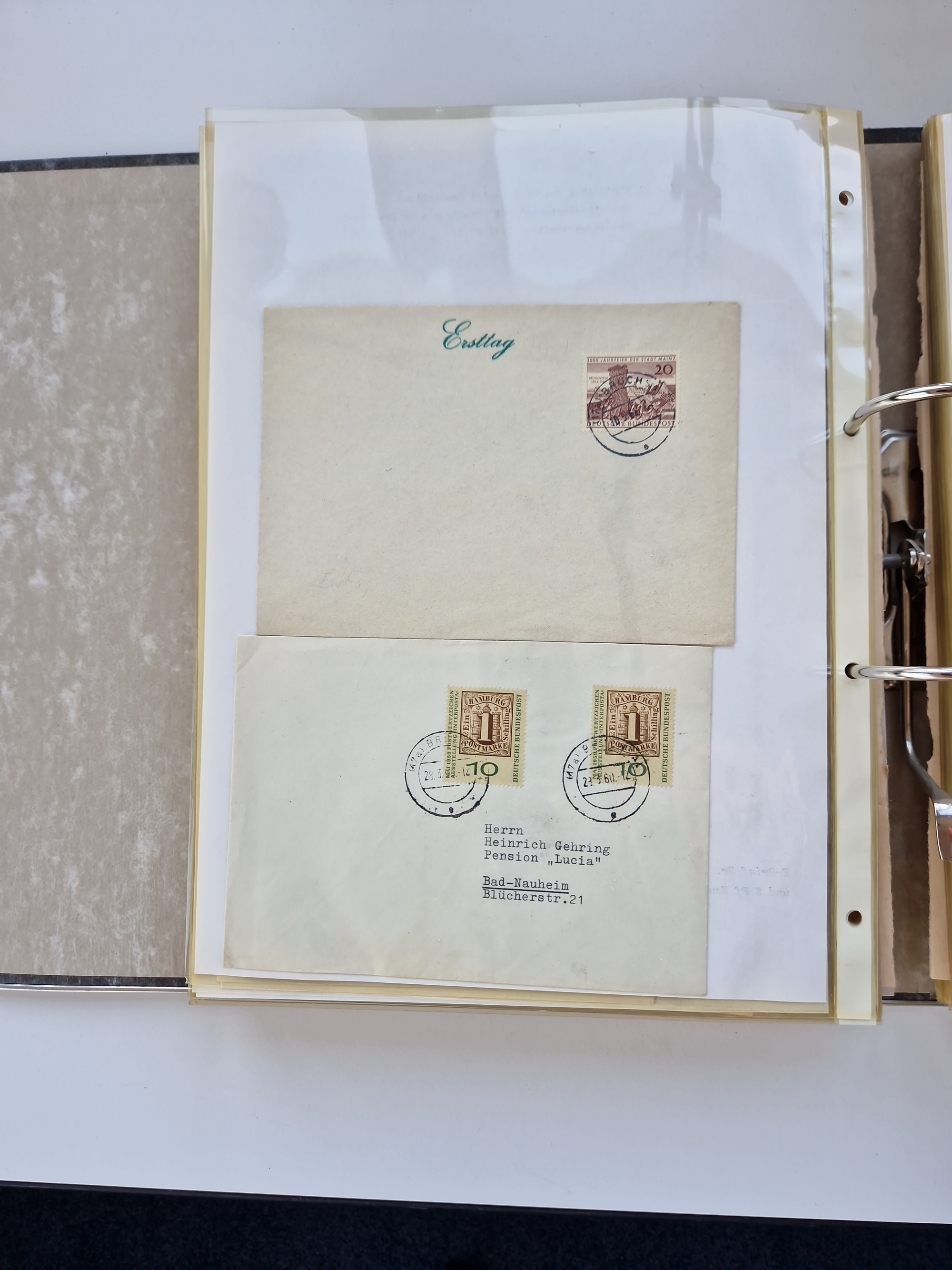 1870/2010 (ca.), Bruchsal und Umgebung, umfangreiche Heimatsammlung in 39 Ringordnern etwas unkonventionell, aber nichtsdestotrotz sehr inhaltsreich gesammelt mit zahlreichen Belegen ab Dt.Reich und auch losen Marken, u.a. Brustschilde mit Marken und besseren Frankaturen, Nachkriegszeit mit Besatzungszonen, auch eingehende Post aus Aller Welt.