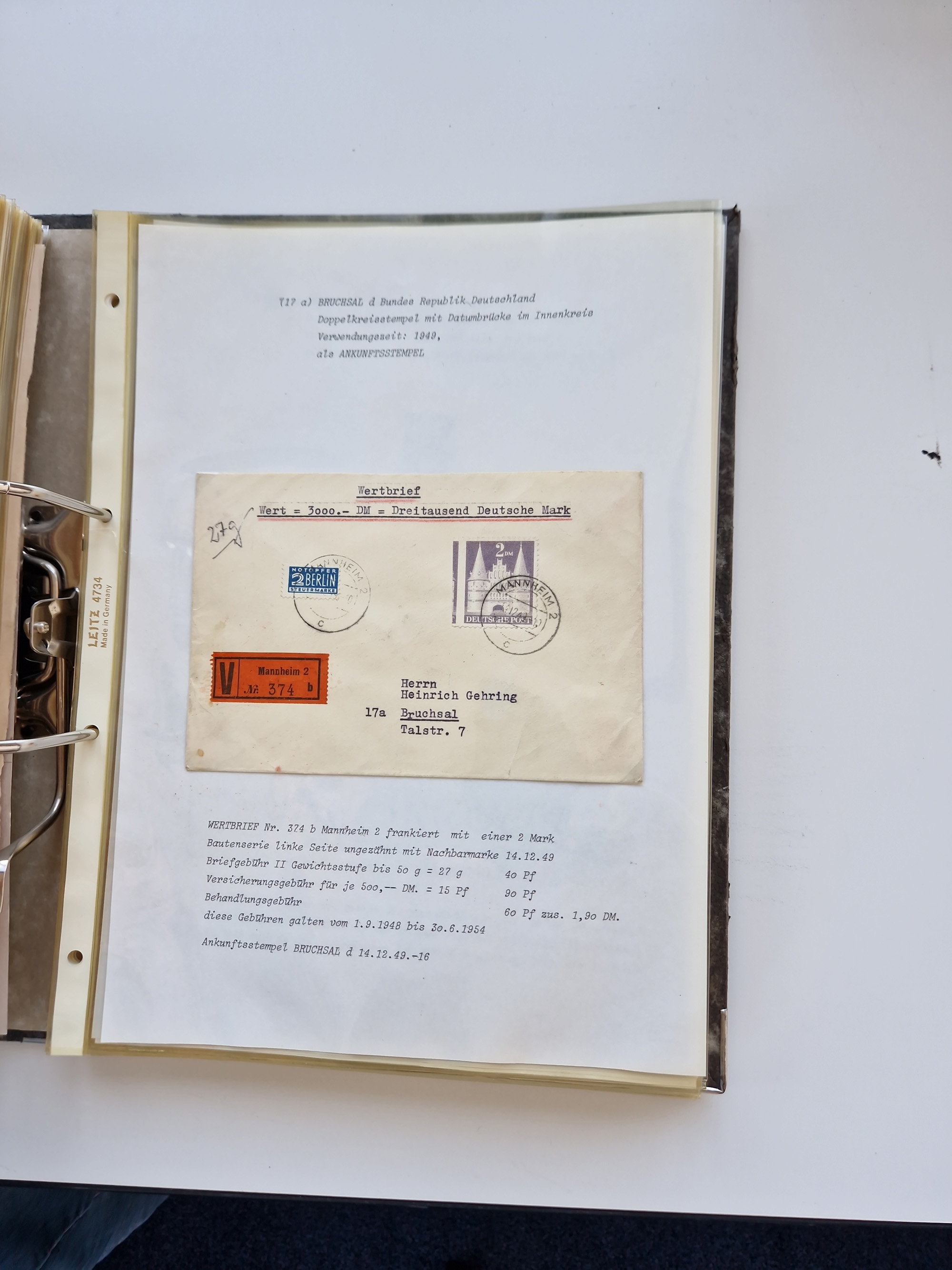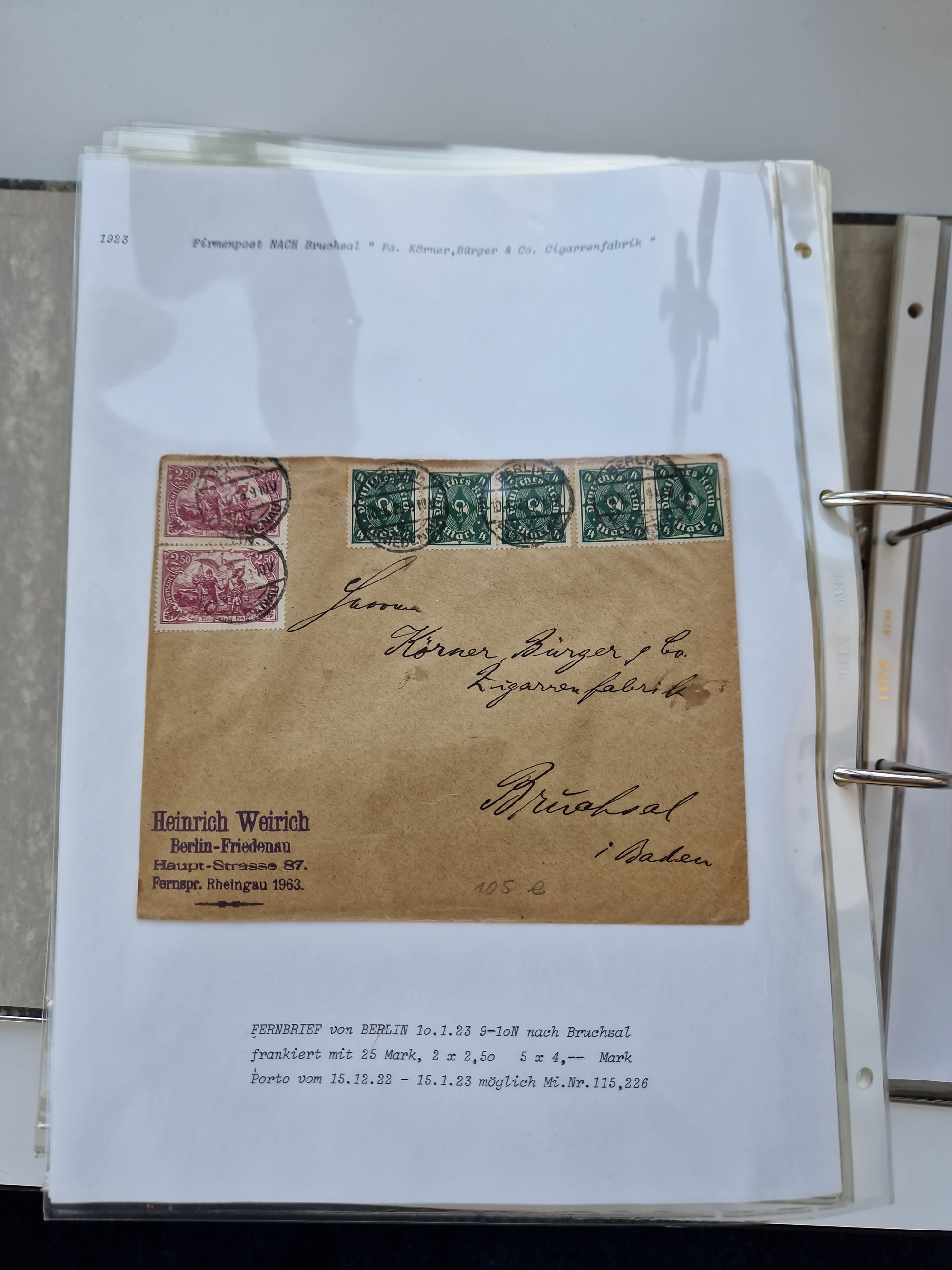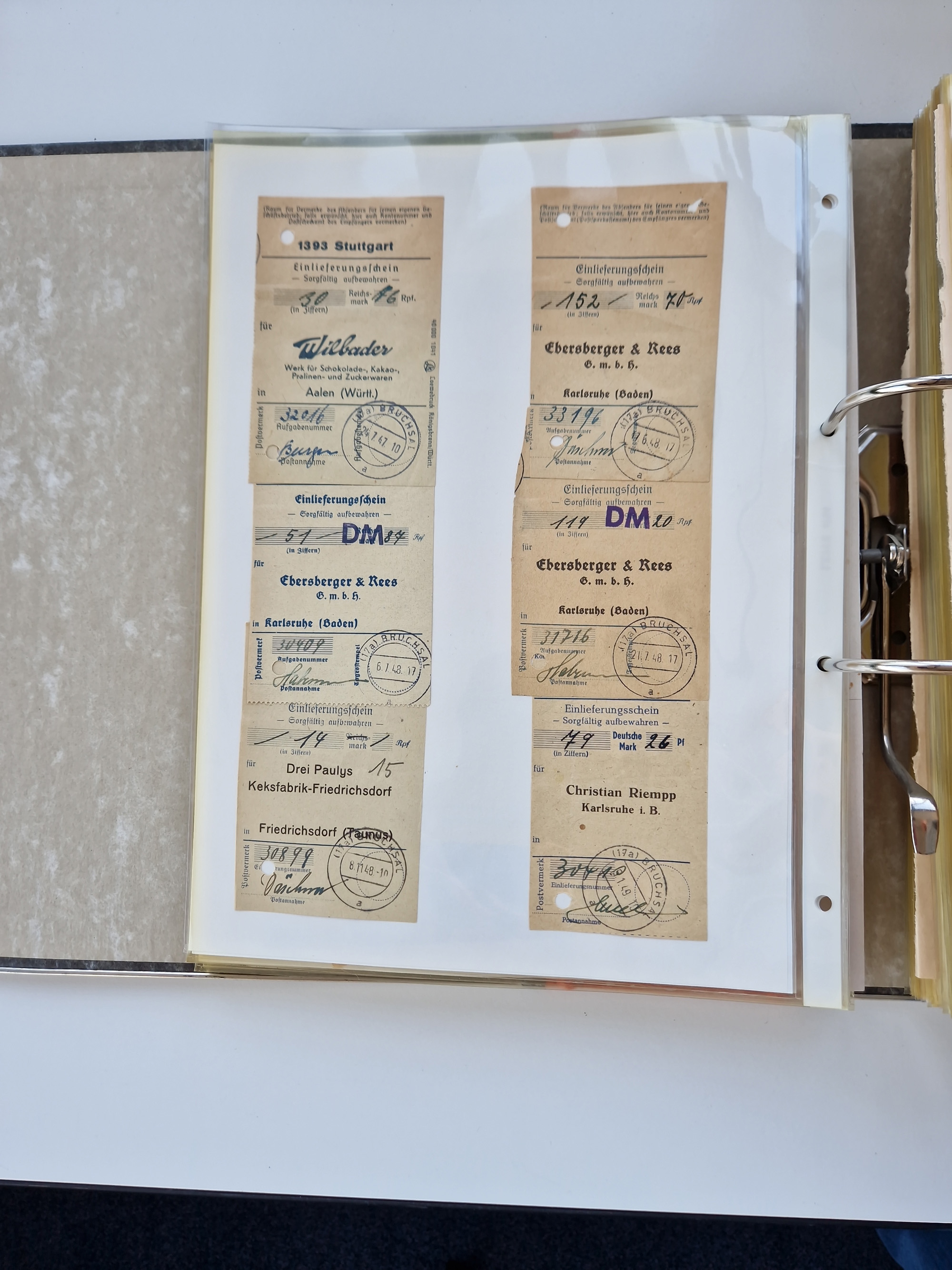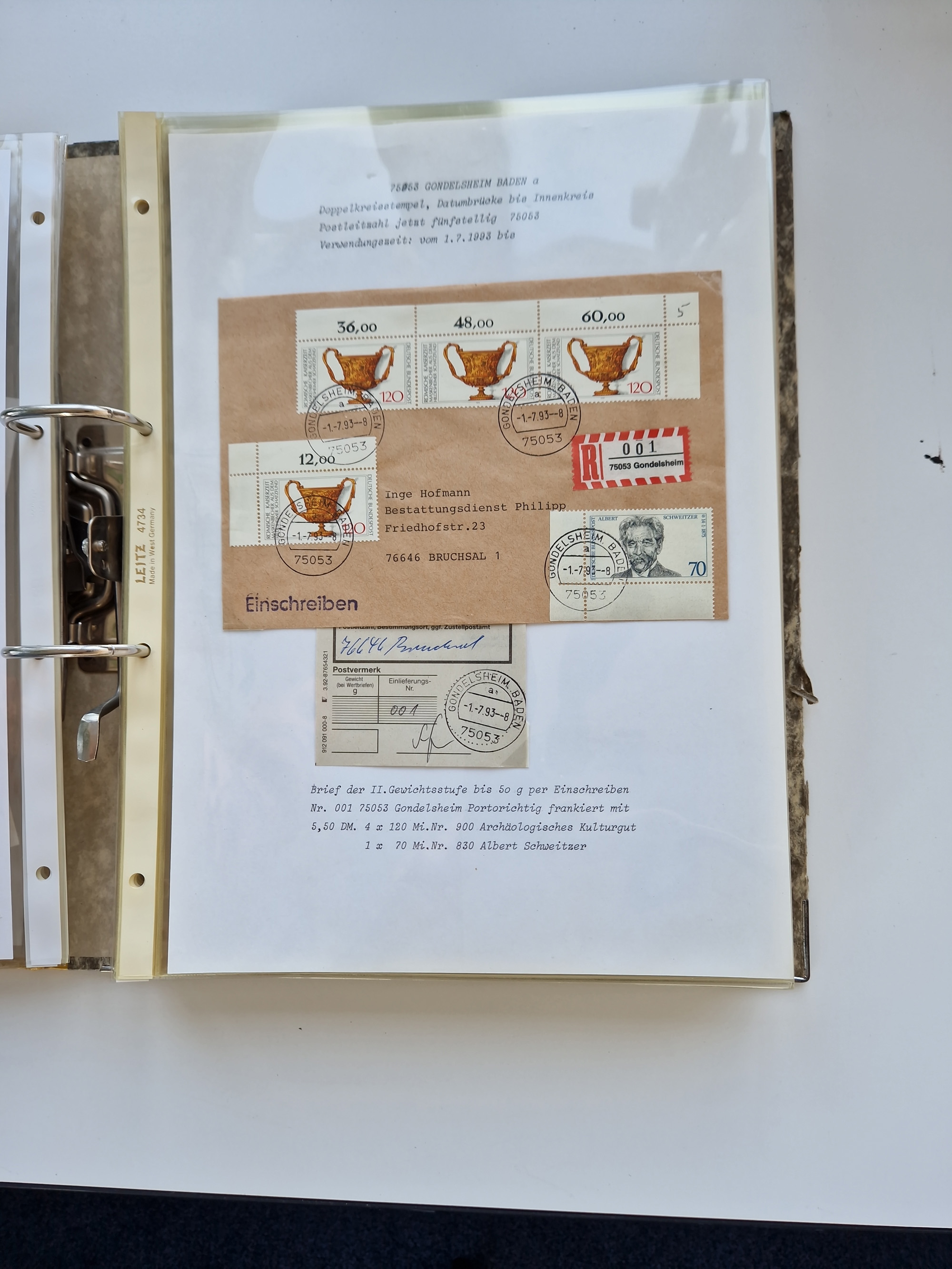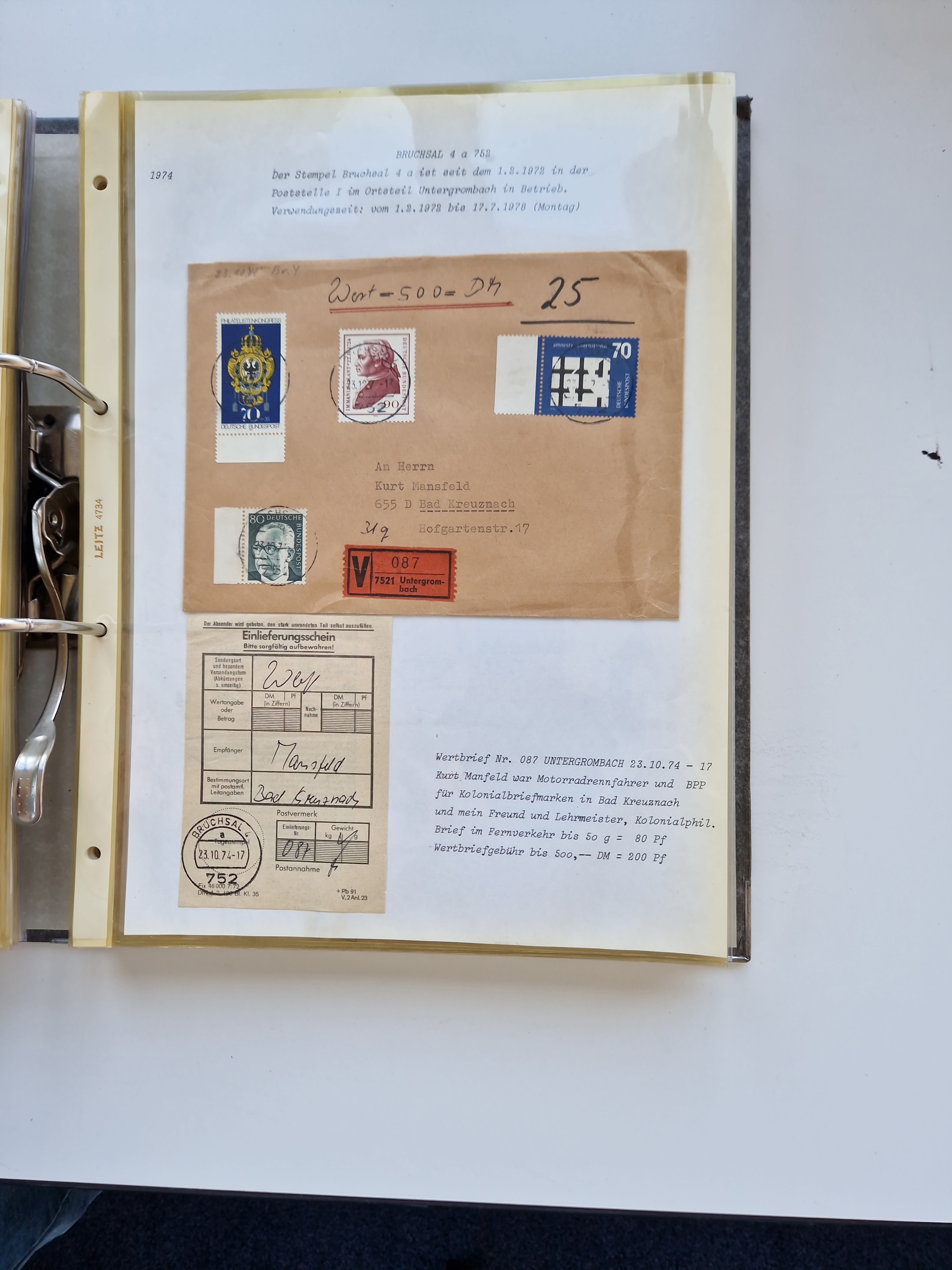 1870/2010 (ca.), Bruchsal und Umgebung, umfangreiche Heimatsammlung in 39 Ringordnern etwas unkonventionell, aber nichtsdestotrotz sehr inhaltsreich gesammelt mit zahlreichen Belegen ab Dt.Reich und auch losen Marken, u.a. Brustschilde mit Marken und besseren Frankaturen, Nachkriegszeit mit Besatzungszonen, auch eingehende Post aus Aller Welt.
