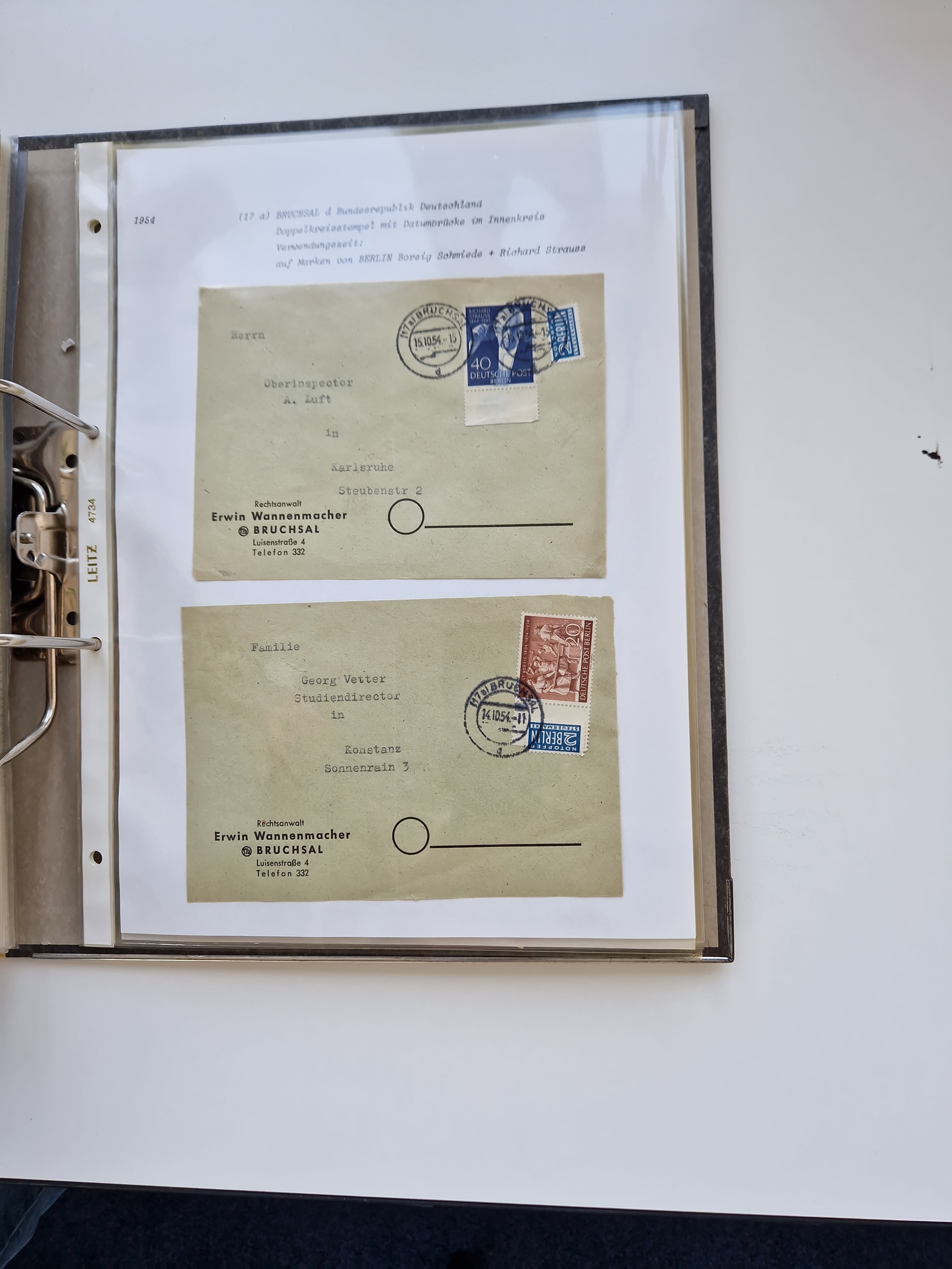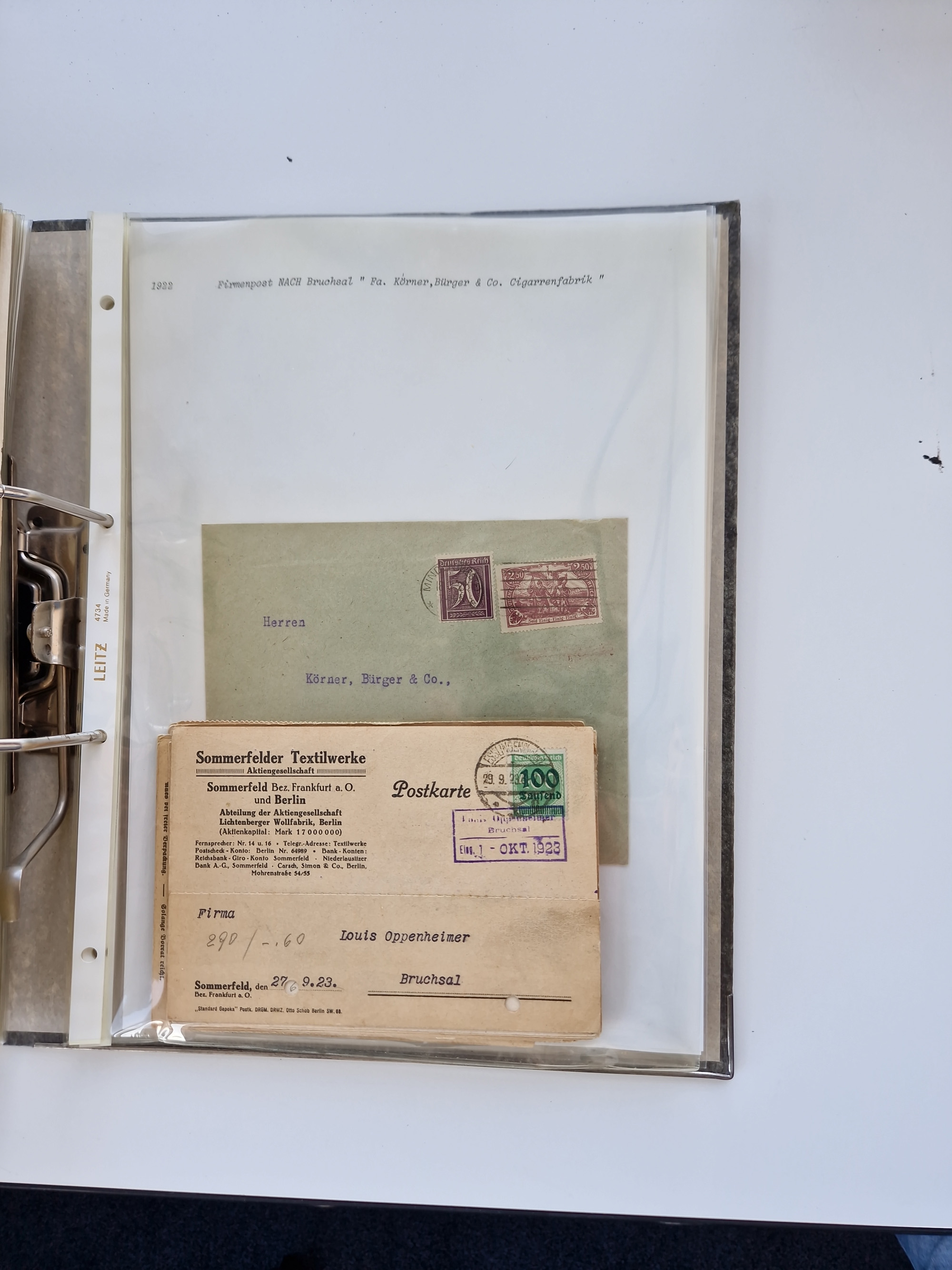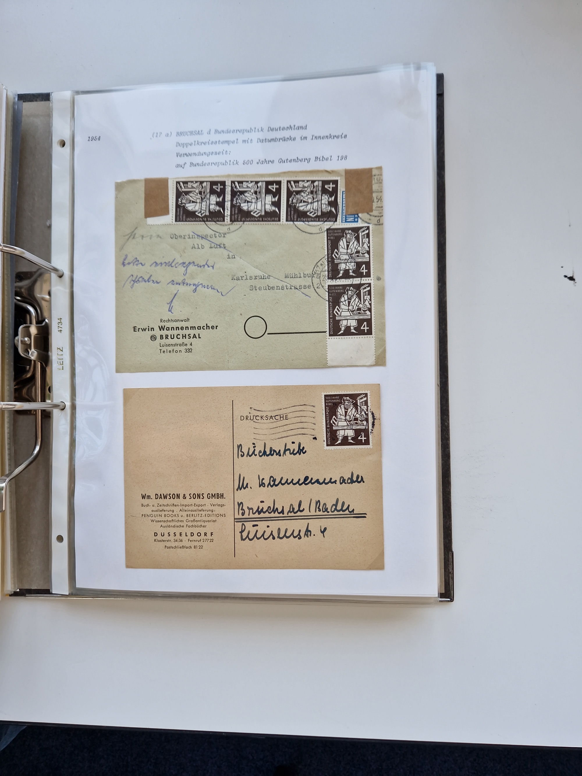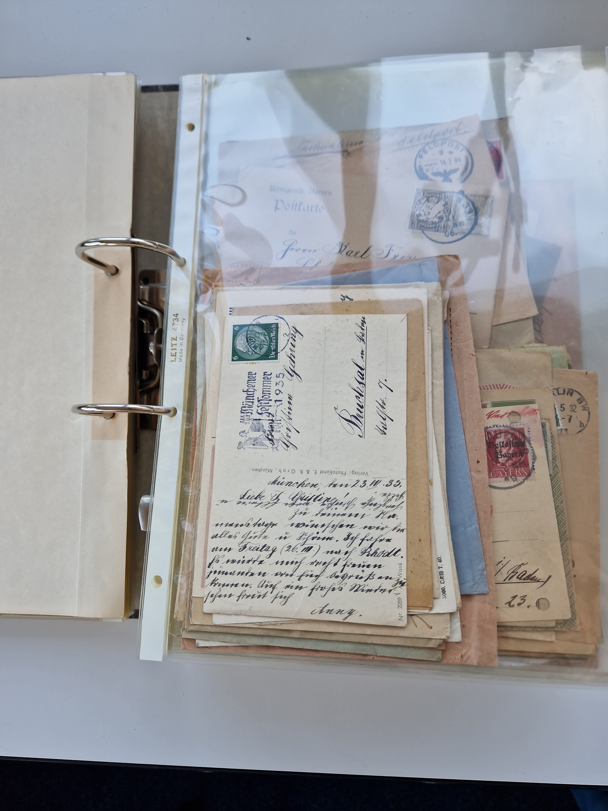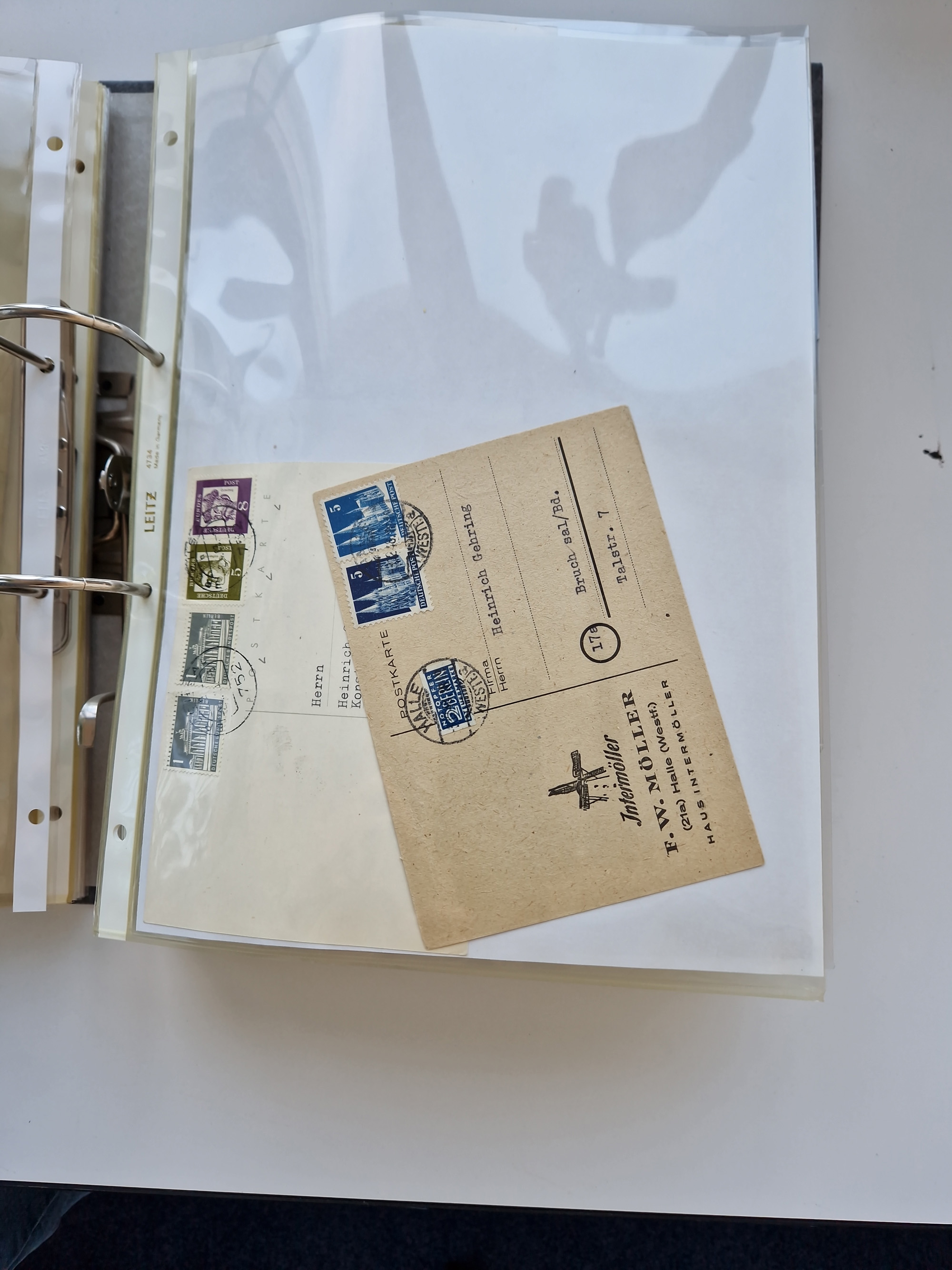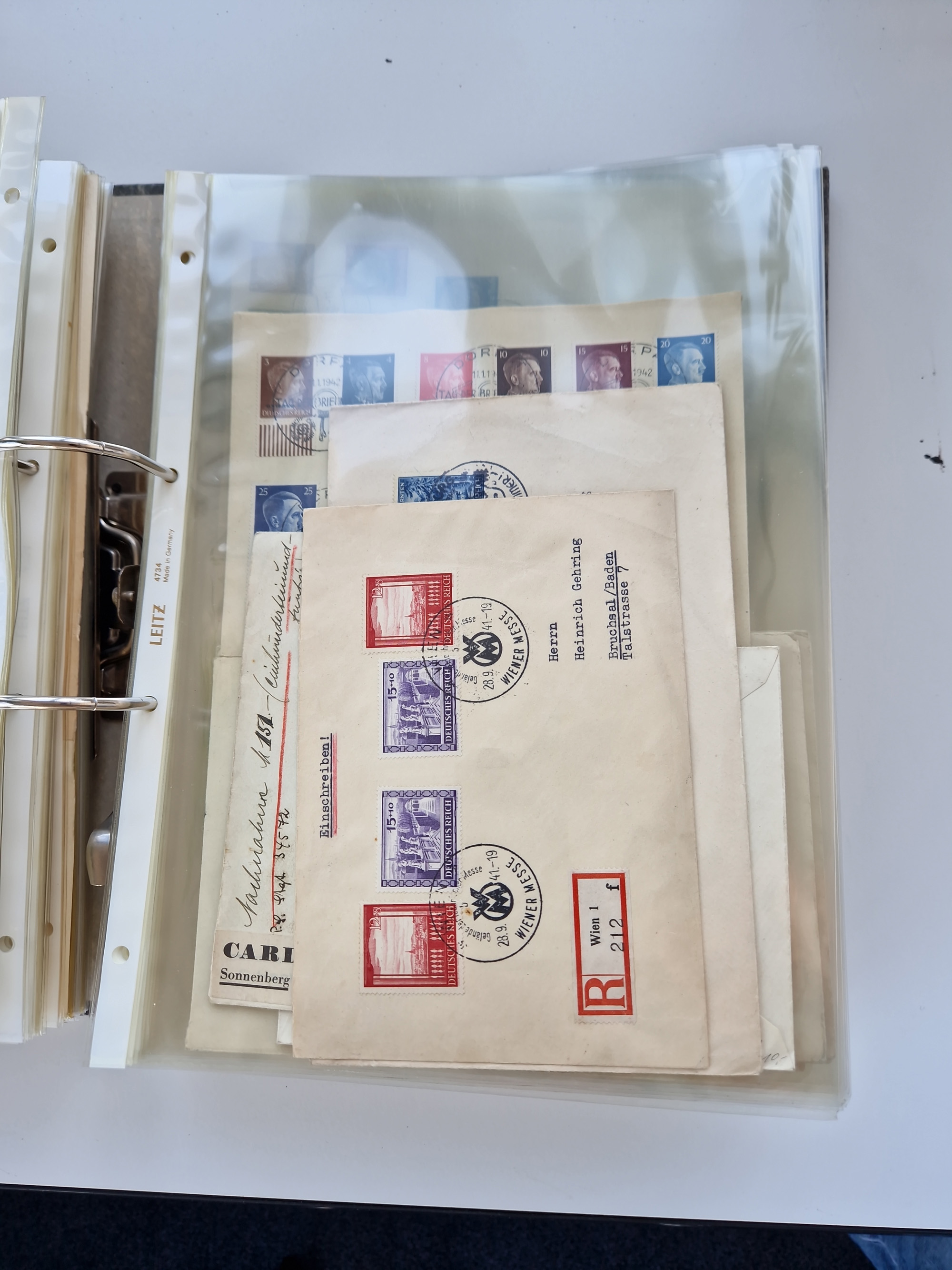 1870/2010 (ca.), Bruchsal und Umgebung, umfangreiche Heimatsammlung in 39 Ringordnern etwas unkonventionell, aber nichtsdestotrotz sehr inhaltsreich gesammelt mit zahlreichen Belegen ab Dt.Reich und auch losen Marken, u.a. Brustschilde mit Marken und besseren Frankaturen, Nachkriegszeit mit Besatzungszonen, auch eingehende Post aus Aller Welt.