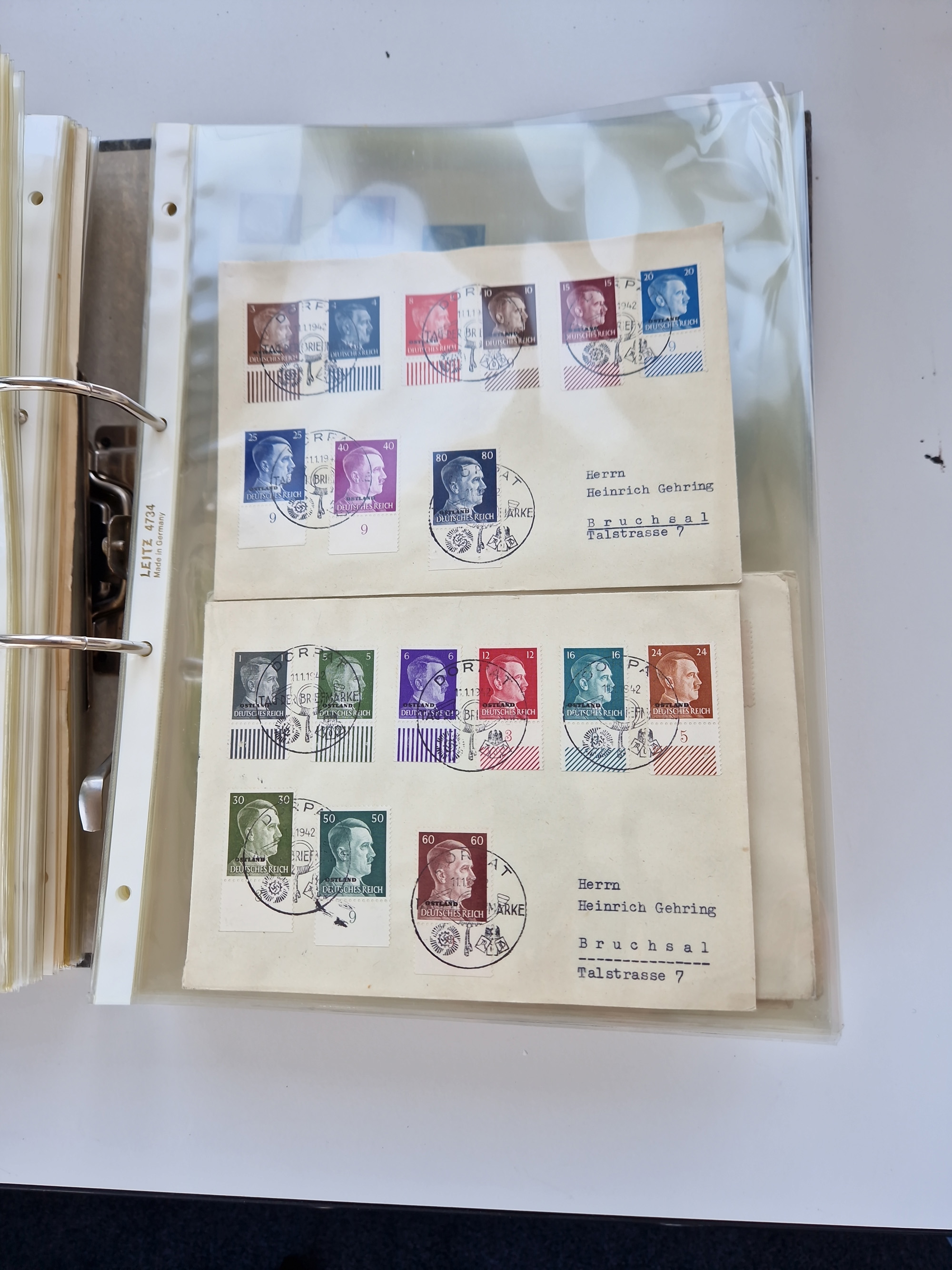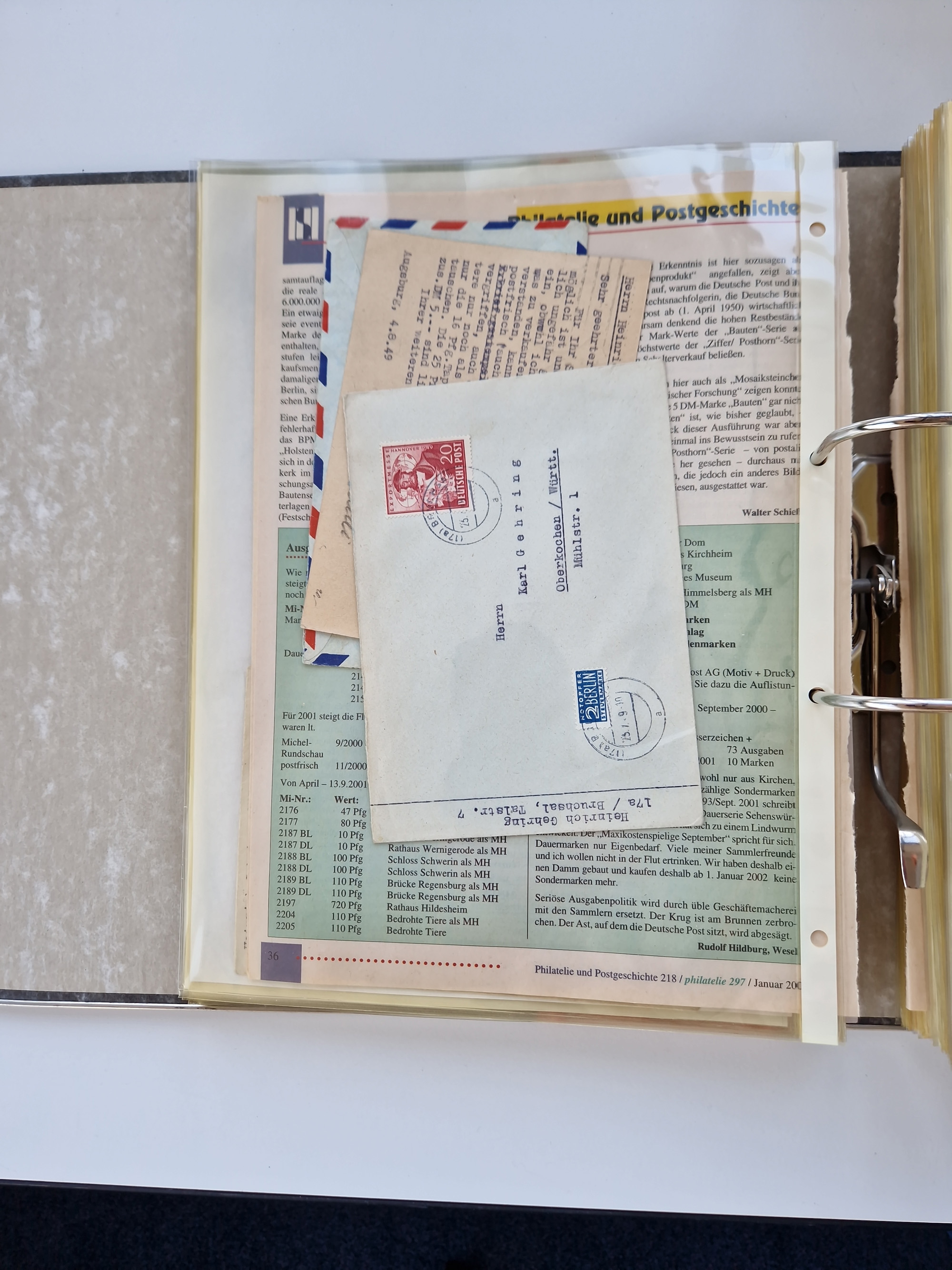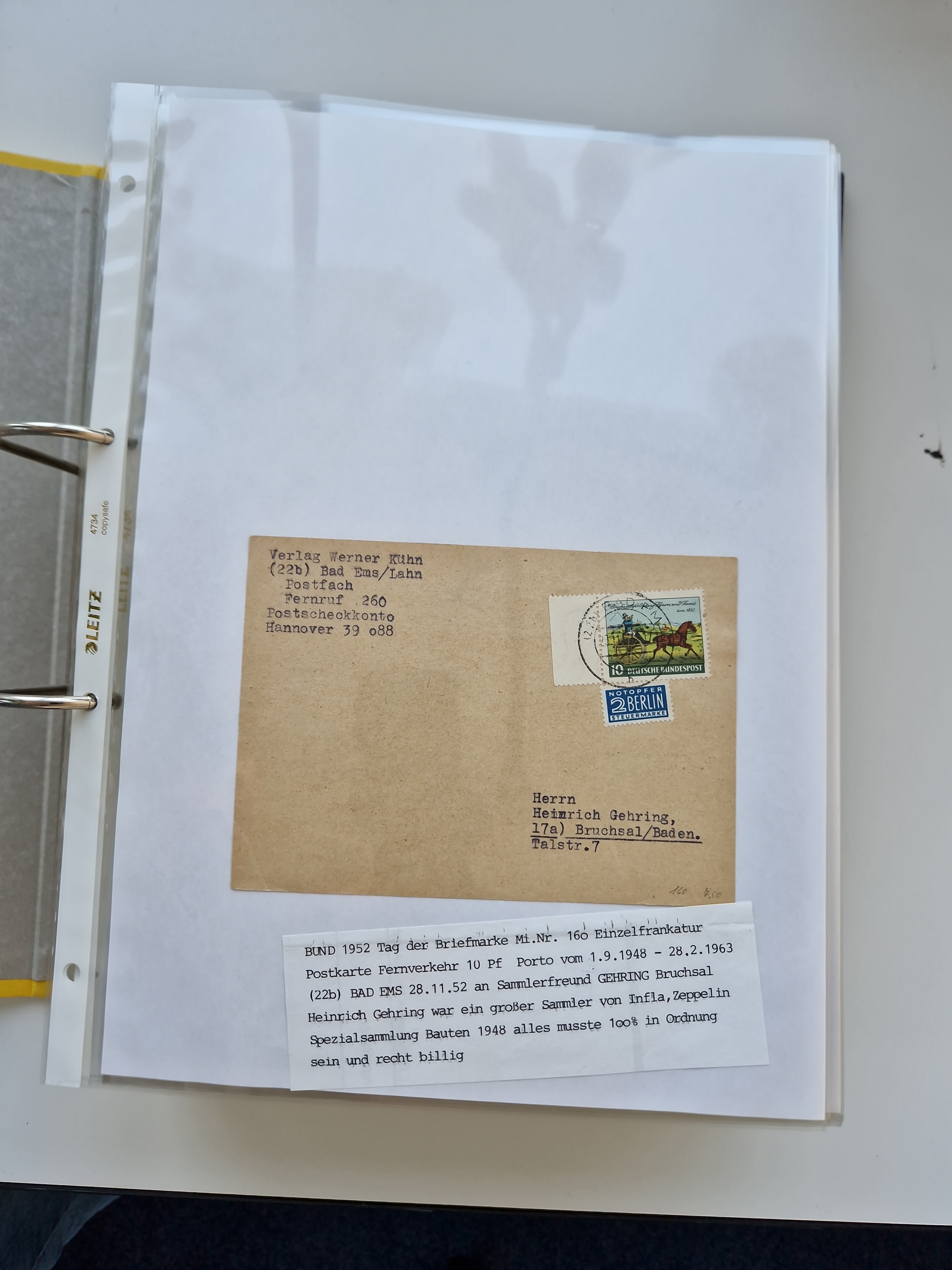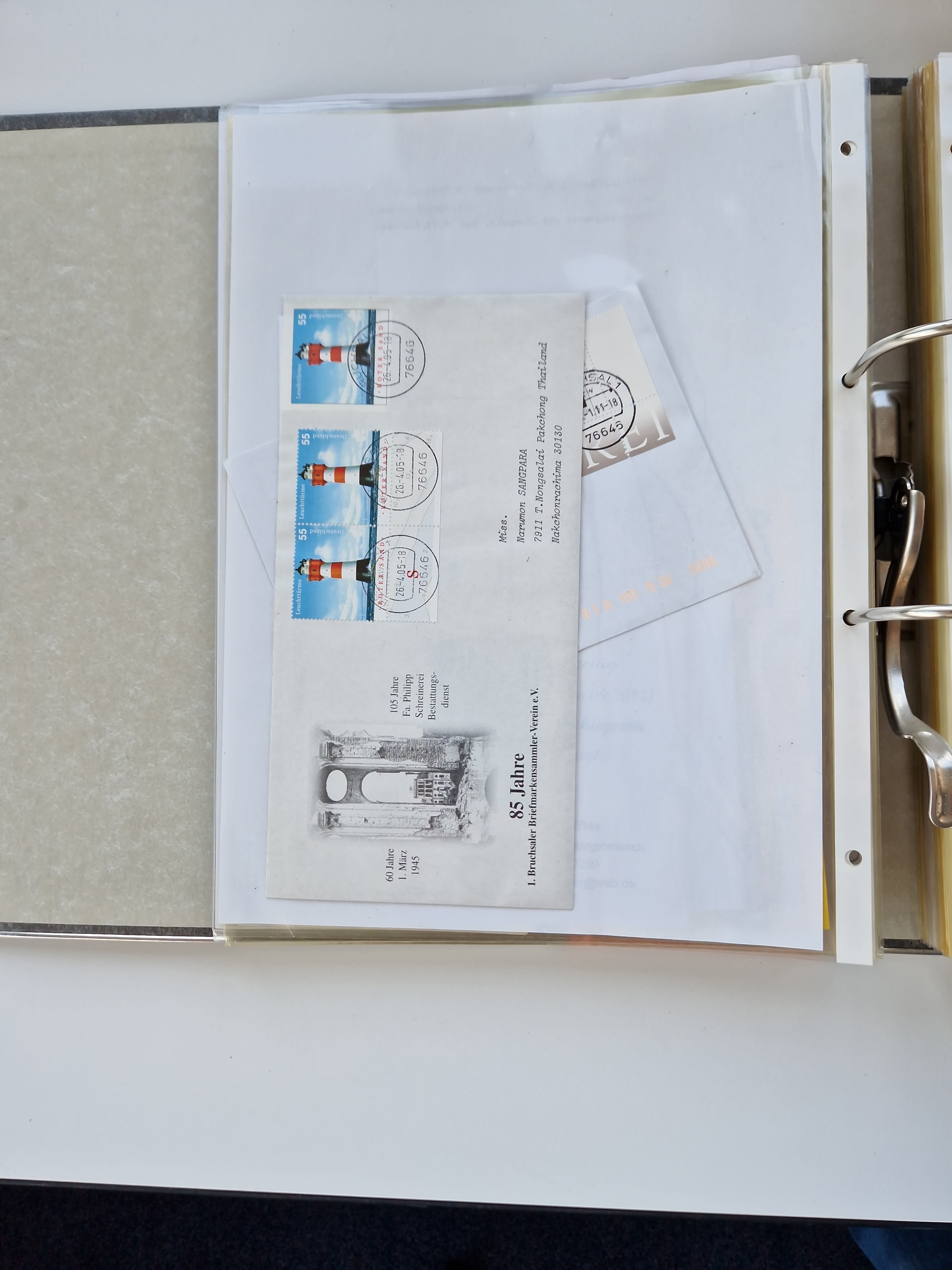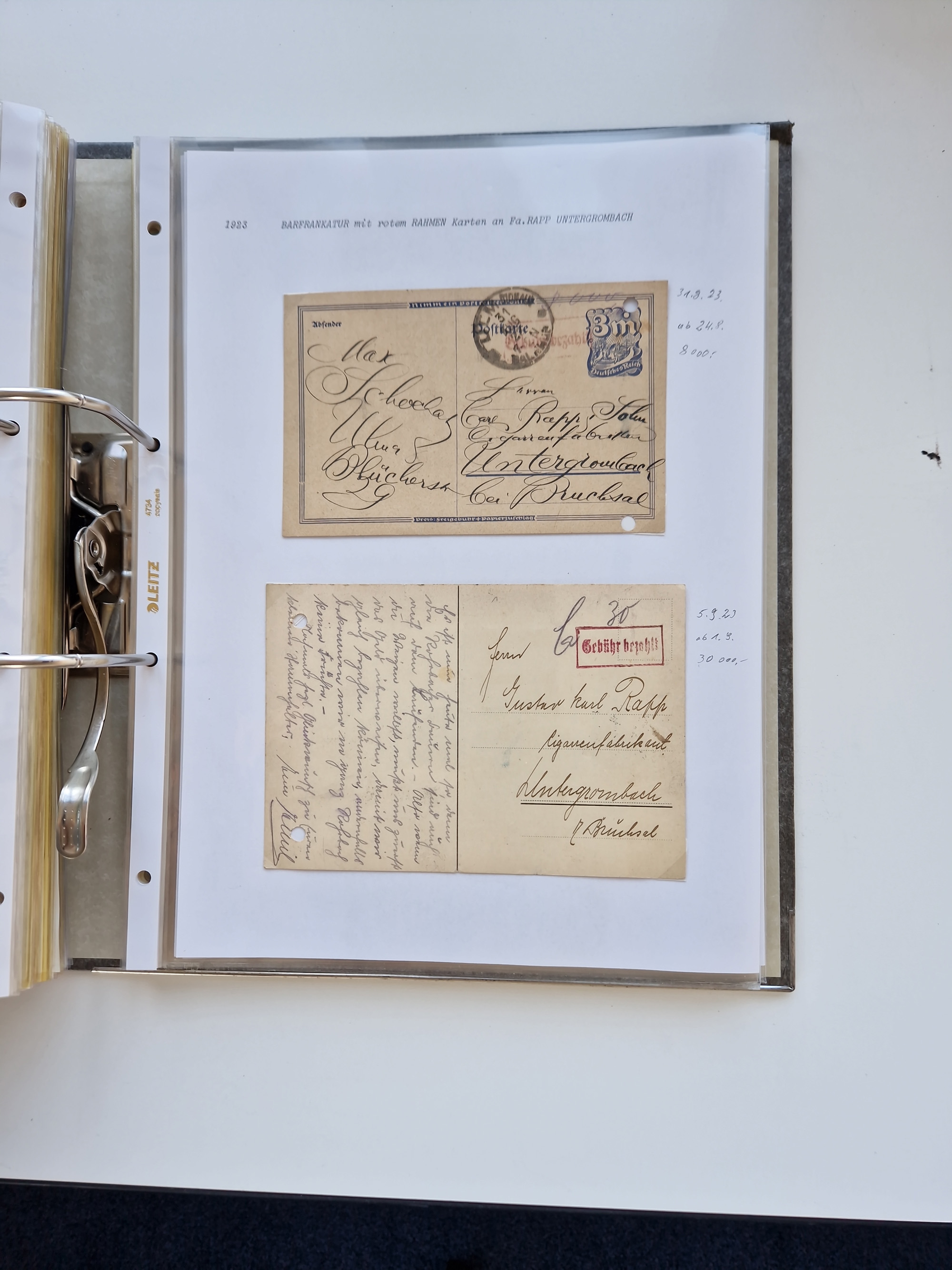 1870/2010 (ca.), Bruchsal und Umgebung, umfangreiche Heimatsammlung in 39 Ringordnern etwas unkonventionell, aber nichtsdestotrotz sehr inhaltsreich gesammelt mit zahlreichen Belegen ab Dt.Reich und auch losen Marken, u.a. Brustschilde mit Marken und besseren Frankaturen, Nachkriegszeit mit Besatzungszonen, auch eingehende Post aus Aller Welt.