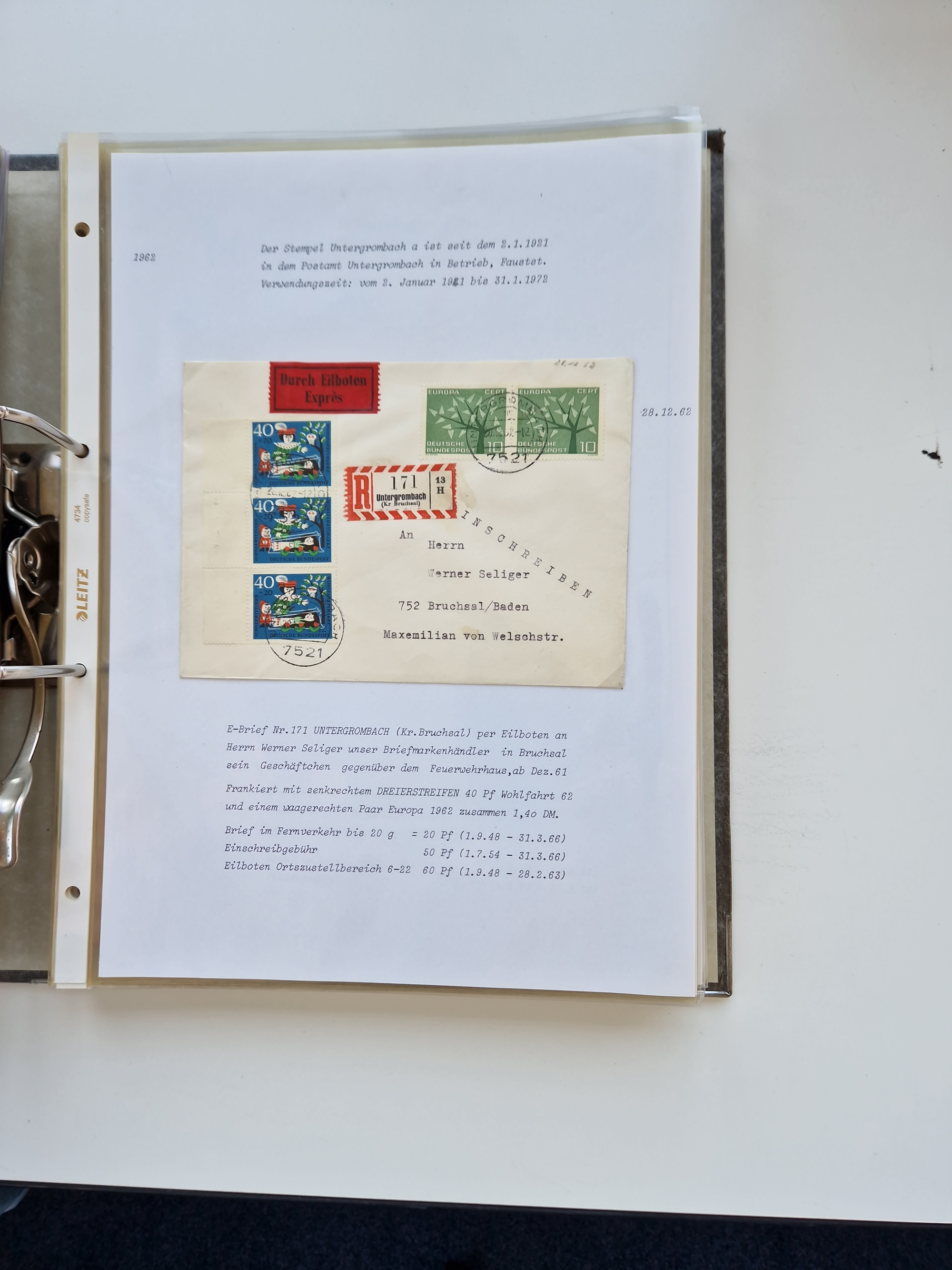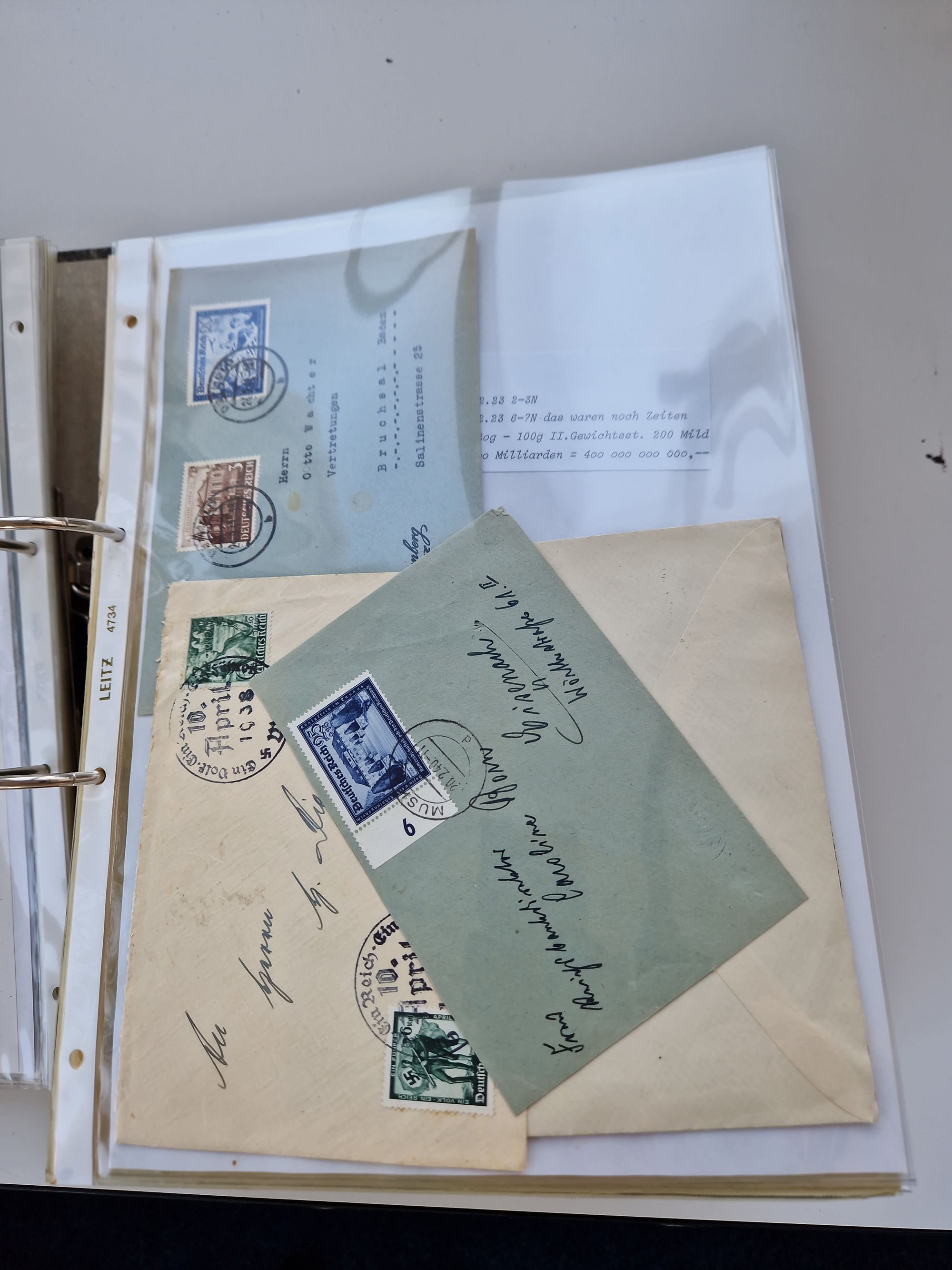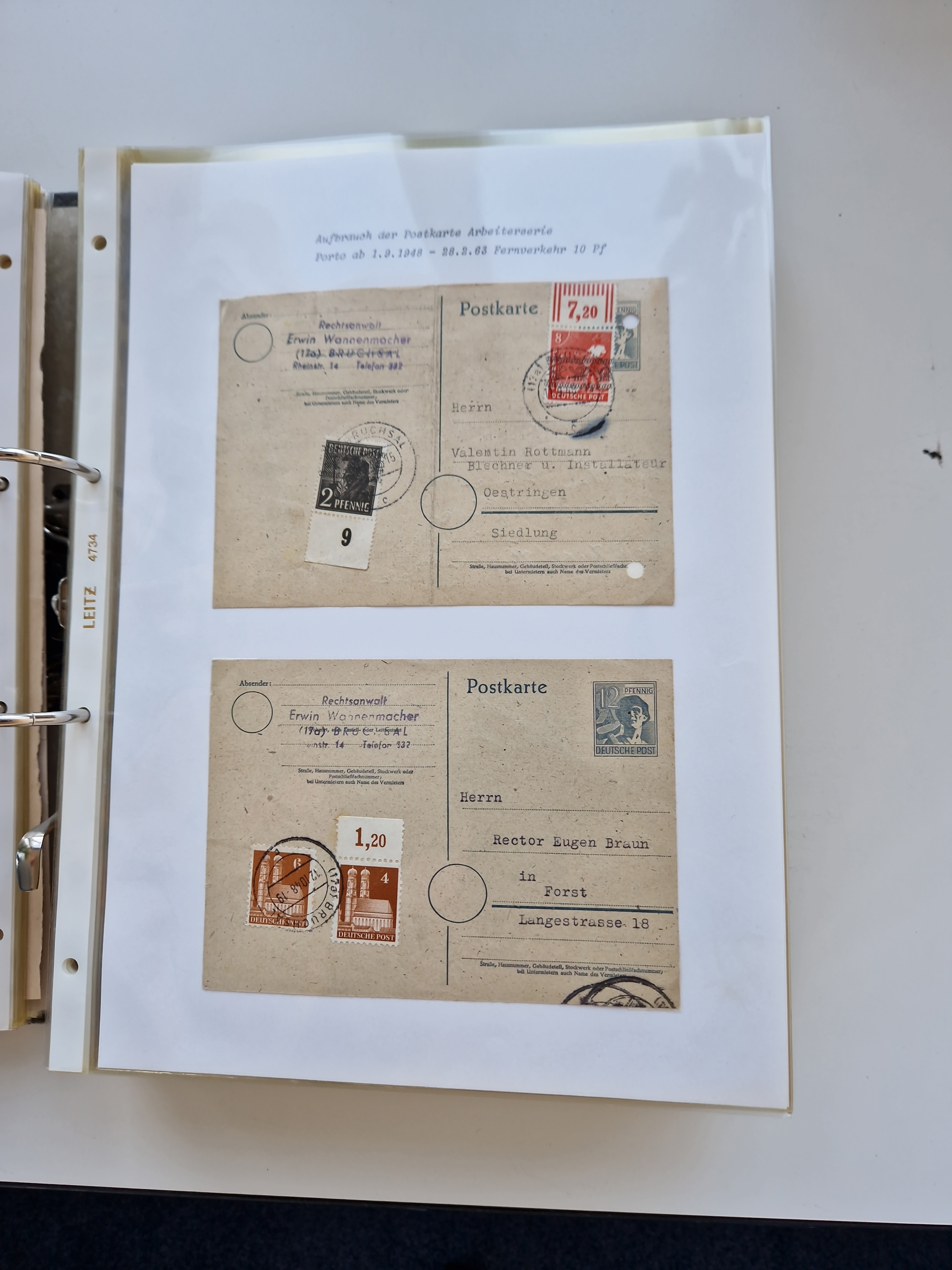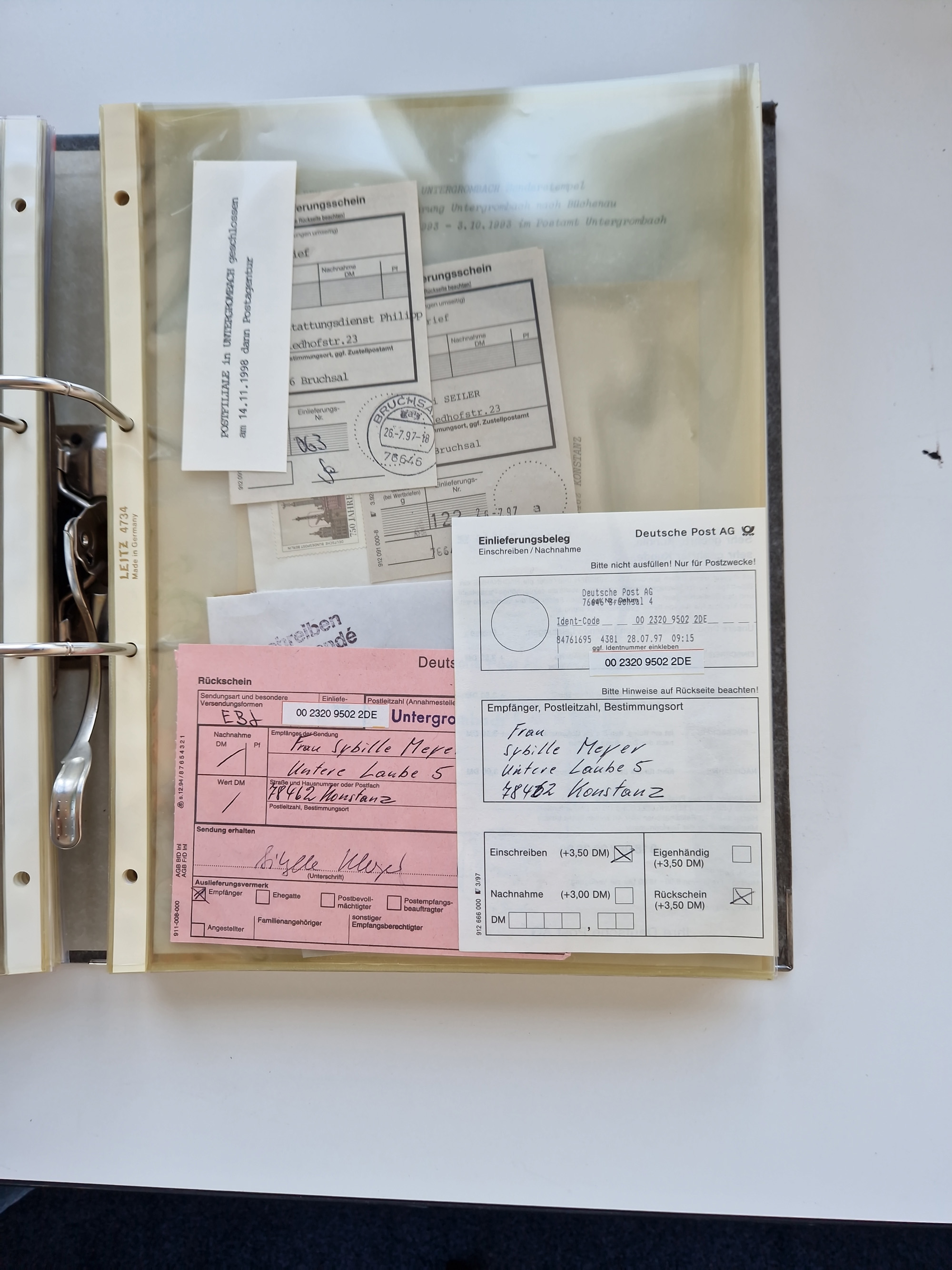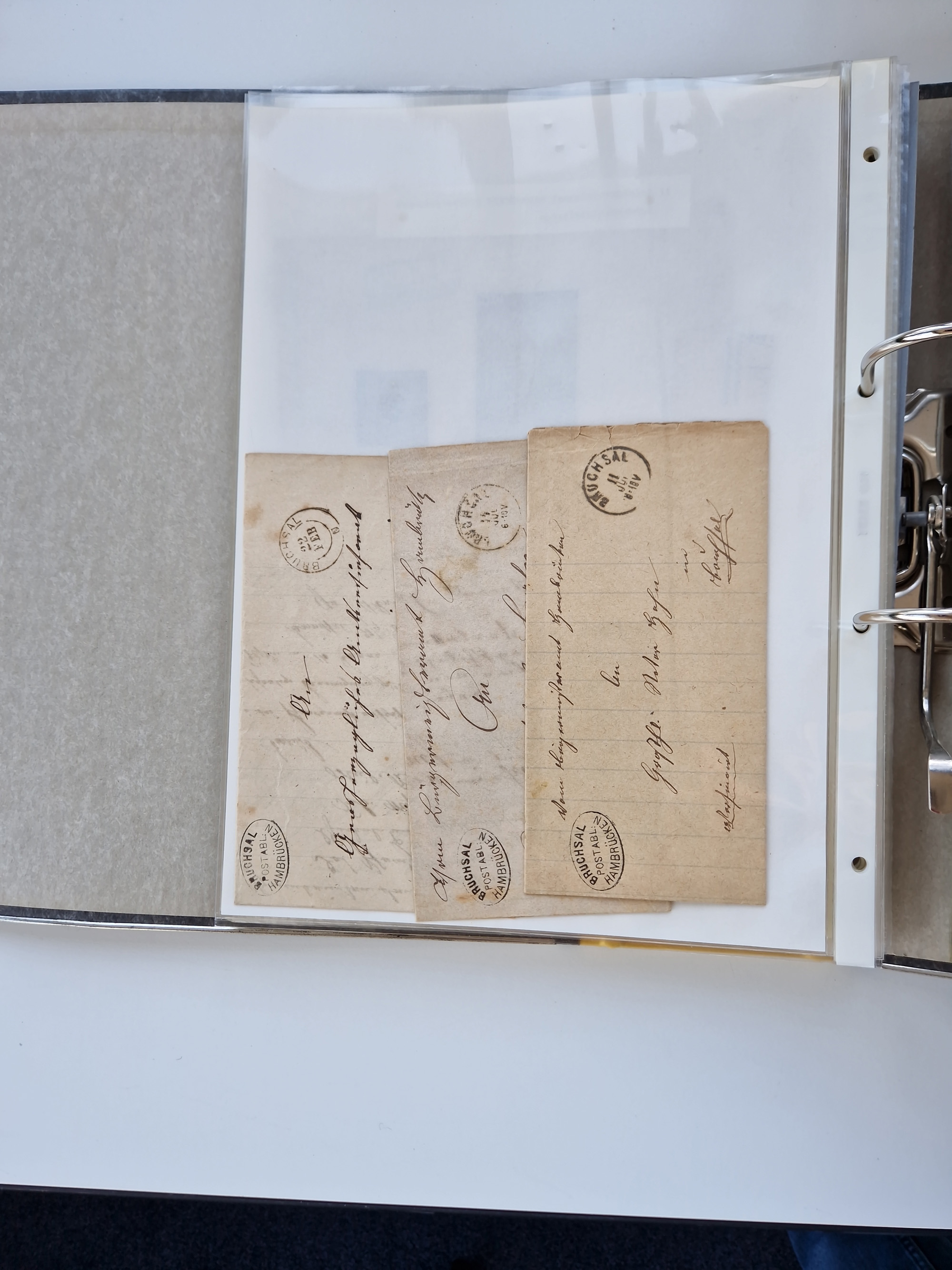 1870/2010 (ca.), Bruchsal und Umgebung, umfangreiche Heimatsammlung in 39 Ringordnern etwas unkonventionell, aber nichtsdestotrotz sehr inhaltsreich gesammelt mit zahlreichen Belegen ab Dt.Reich und auch losen Marken, u.a. Brustschilde mit Marken und besseren Frankaturen, Nachkriegszeit mit Besatzungszonen, auch eingehende Post aus Aller Welt.