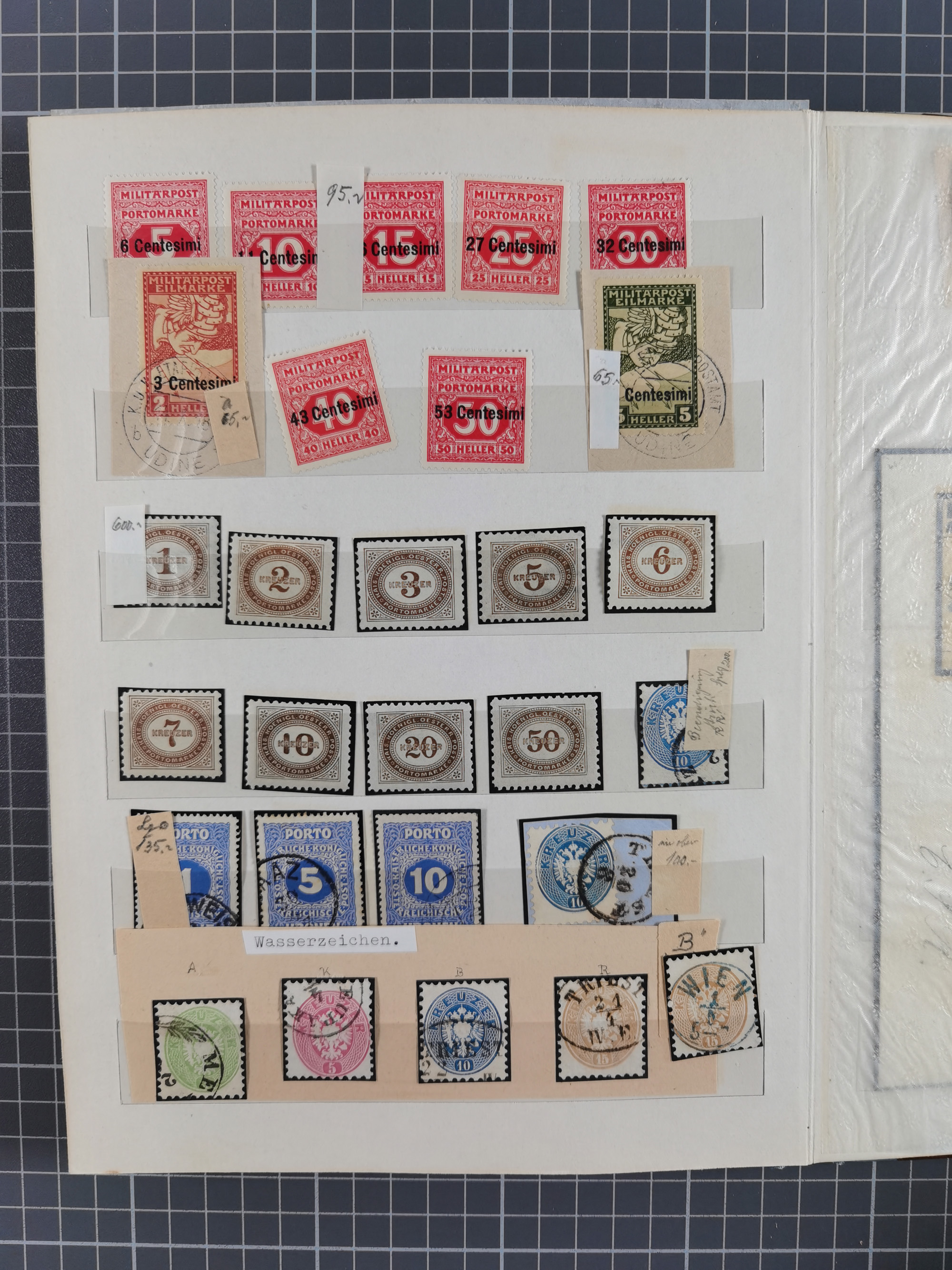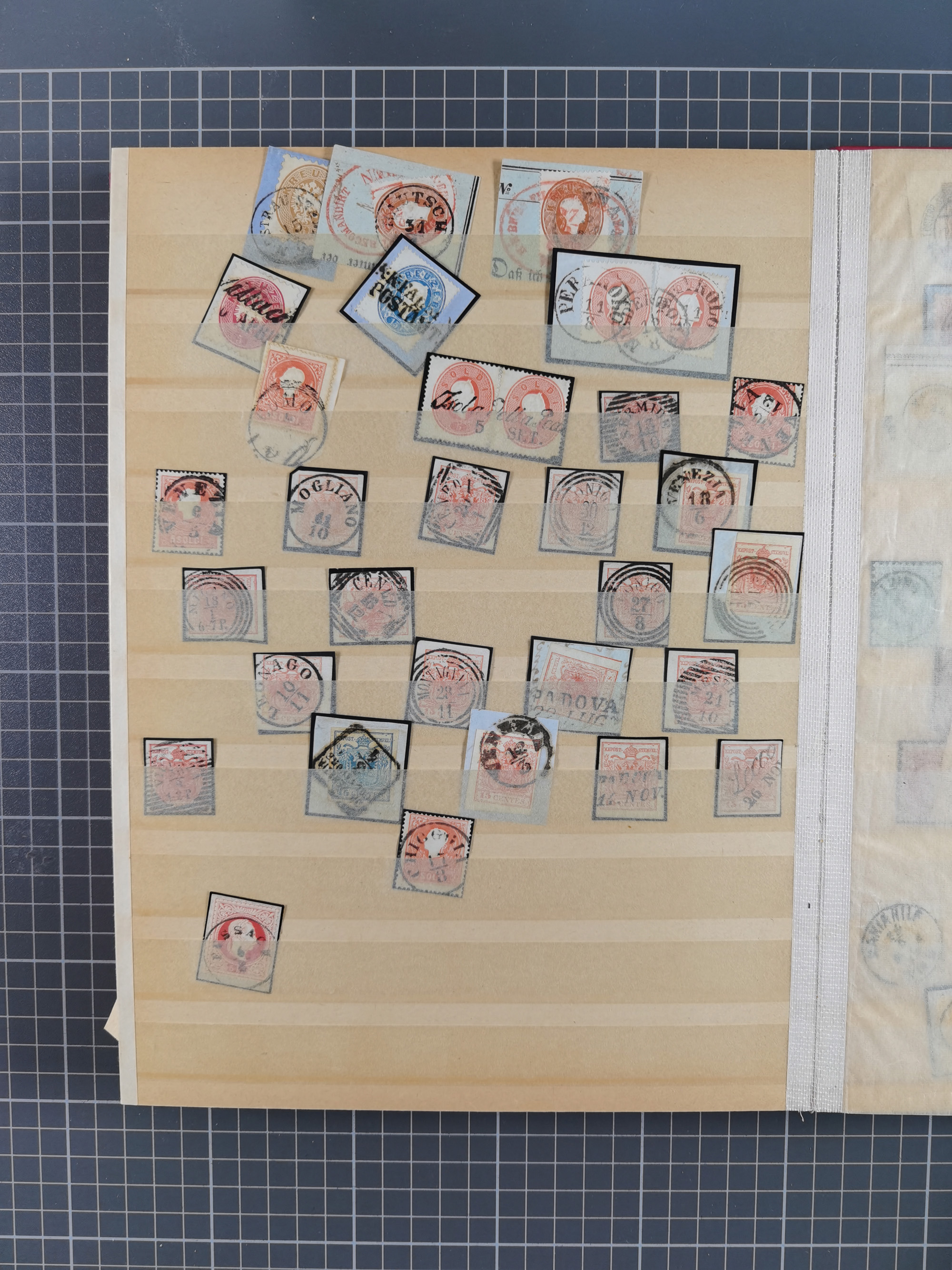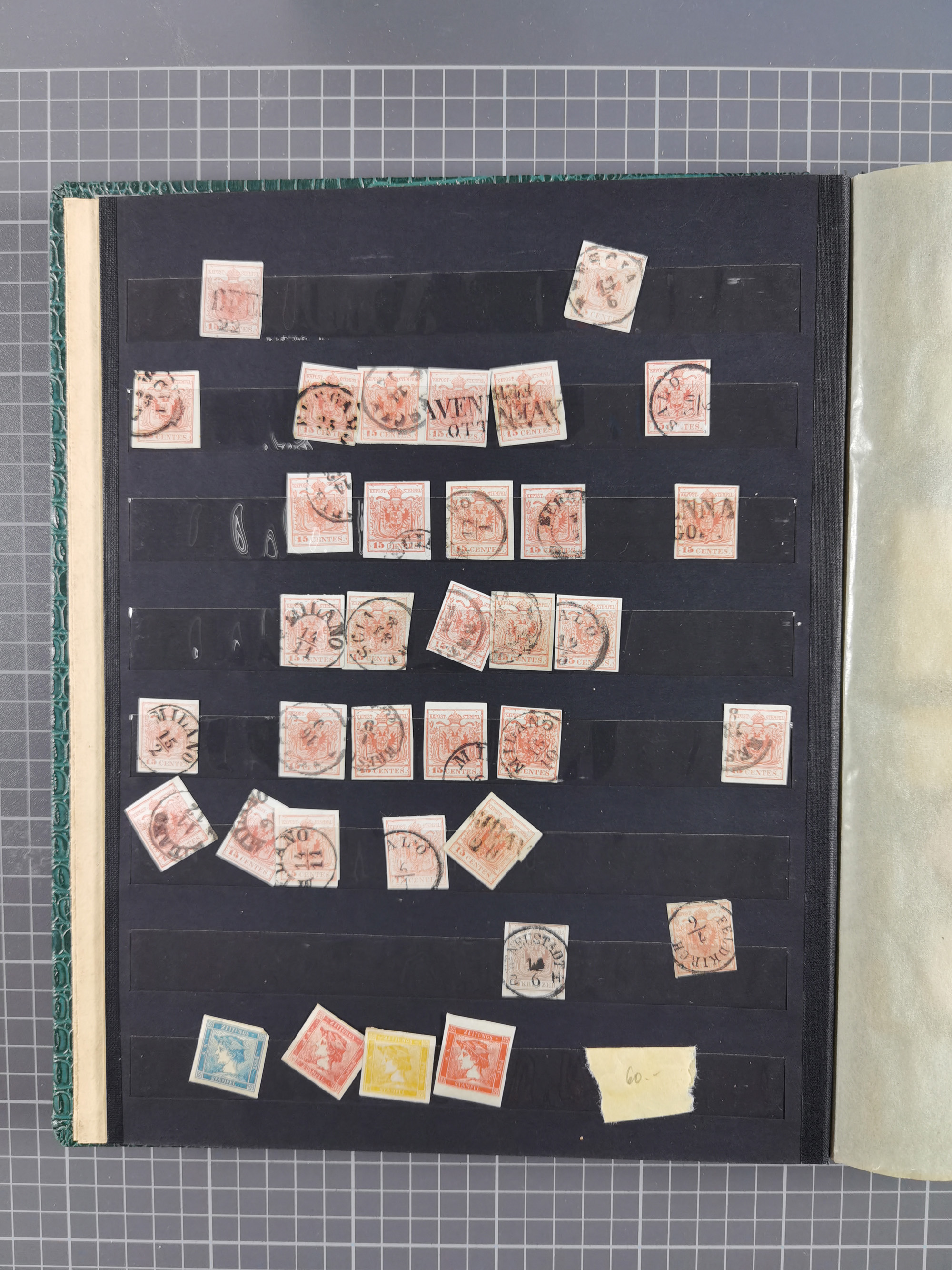 1850/80, hochwertige, meist gestempelte Sammlung der ersten Ausgaben, mit vielen ausgesuchten Stücken mit Druck- und Papierbesonderheiten, Farben, Typen, Papieren, Andreaskreuz-Ansätzen, sowie ein späterer Teil mit verschiedenen Stempeln, Fingerhutstempeln, roten und blauen Abstempelungen, etc., dabei Mi.-Nr. 1 (40), 2 (30), 3-5 mit über 400 Werten, etc., zudem ein Teil Lombardei-Venetien mit ca. 50 Werten, dabei u.a. 4xbIII Bogenecke gestempelt (KB Rismondo BPP), sowie ferner Constantinopel und einige Briefe und Karten, abschließend eine Studie 5 Gr. im Kreis sowie ein guter Teil Literatur, insgesamt 55 Kurz-/Befunde Ferchenbauer, Goller und Rismondo BPP, meist gute bis tadellose Erhaltung, im Steckbuch