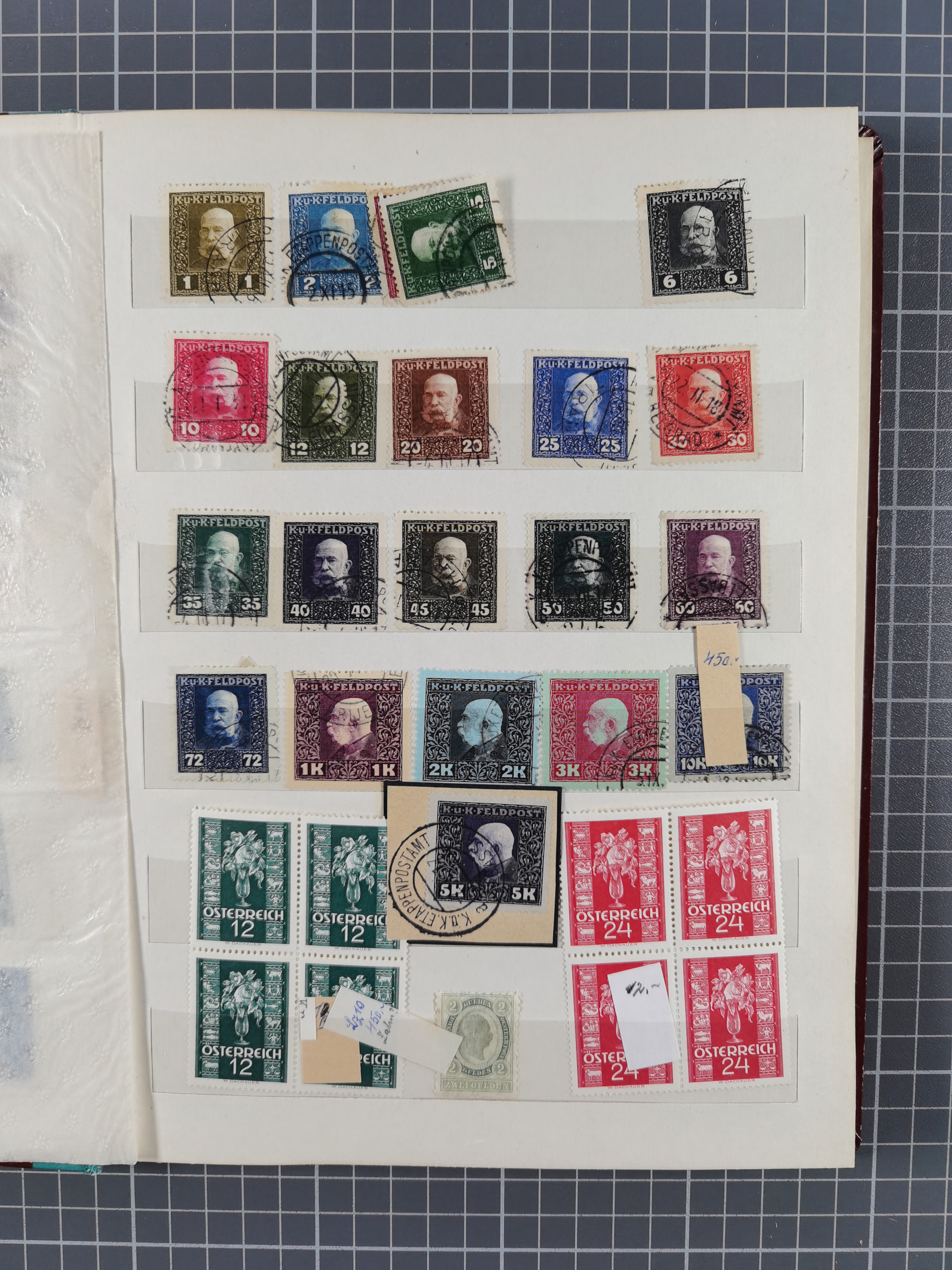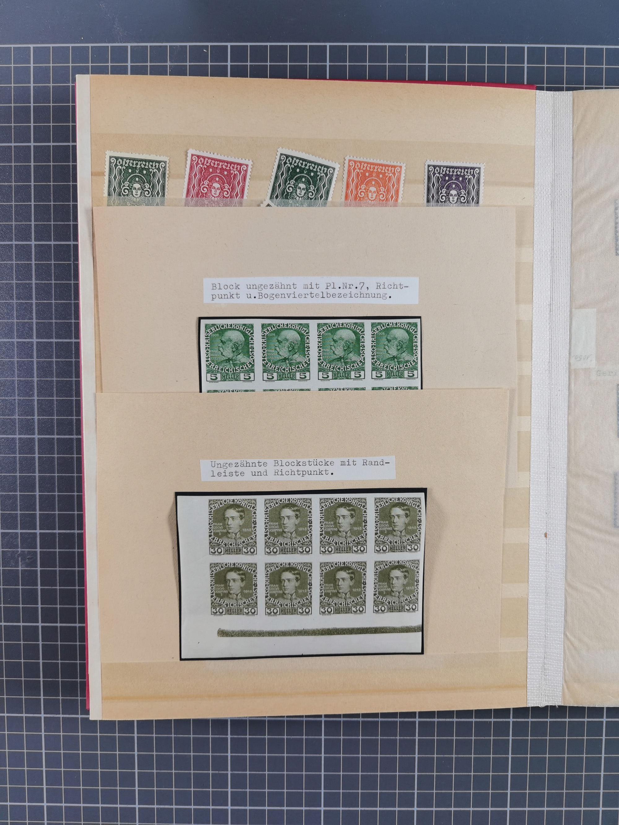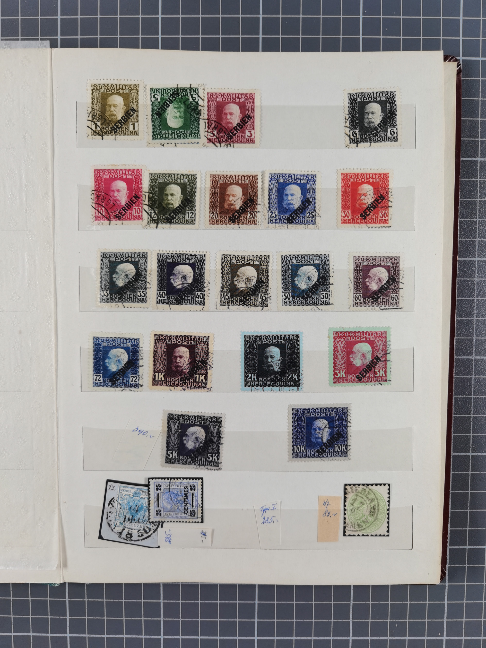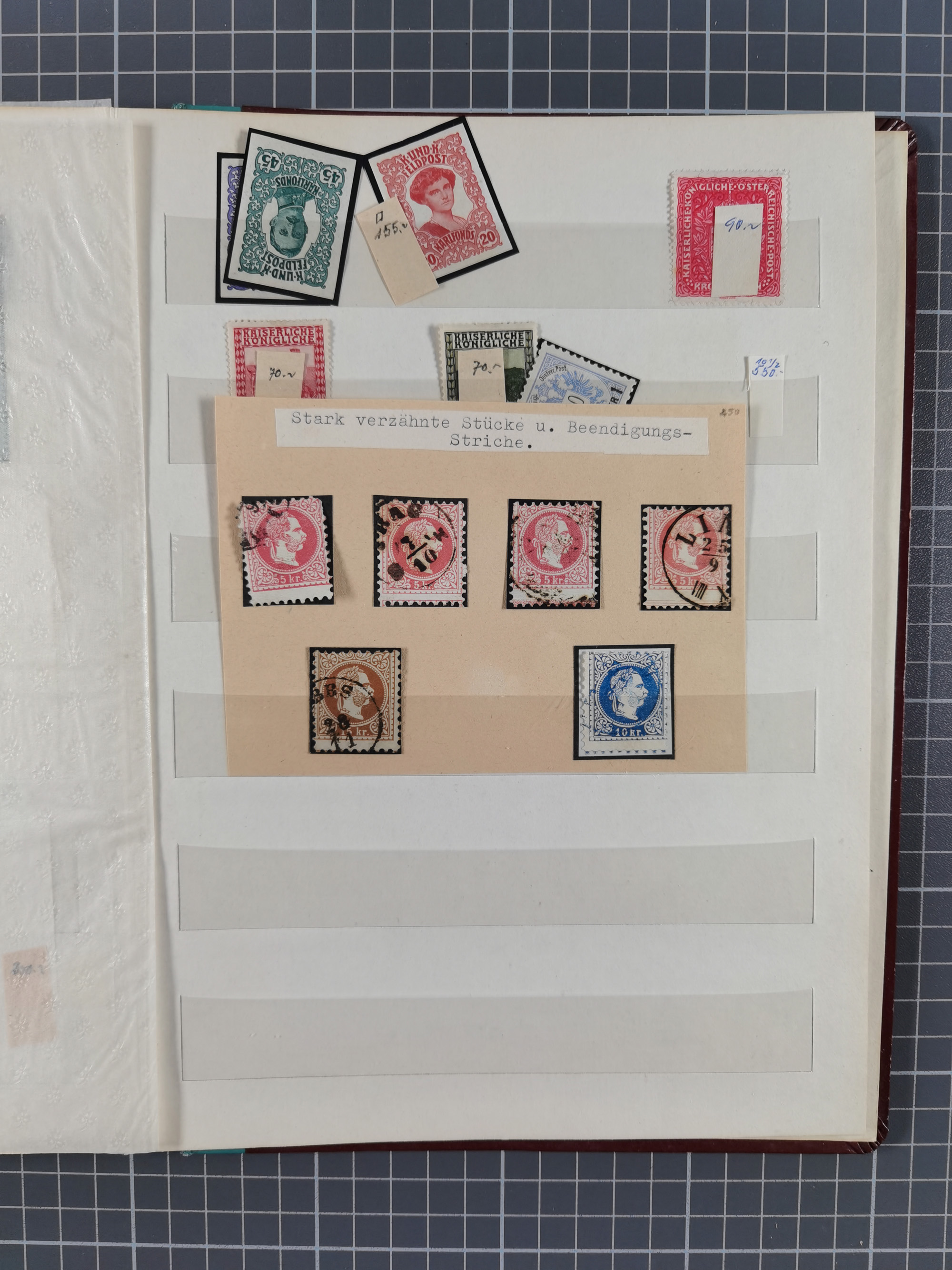 1850/80, hochwertige, meist gestempelte Sammlung der ersten Ausgaben, mit vielen ausgesuchten Stücken mit Druck- und Papierbesonderheiten, Farben, Typen, Papieren, Andreaskreuz-Ansätzen, sowie ein späterer Teil mit verschiedenen Stempeln, Fingerhutstempeln, roten und blauen Abstempelungen, etc., dabei Mi.-Nr. 1 (40), 2 (30), 3-5 mit über 400 Werten, etc., zudem ein Teil Lombardei-Venetien mit ca. 50 Werten, dabei u.a. 4xbIII Bogenecke gestempelt (KB Rismondo BPP), sowie ferner Constantinopel und einige Briefe und Karten, abschließend eine Studie 5 Gr. im Kreis sowie ein guter Teil Literatur, insgesamt 55 Kurz-/Befunde Ferchenbauer, Goller und Rismondo BPP, meist gute bis tadellose Erhaltung, im Steckbuch