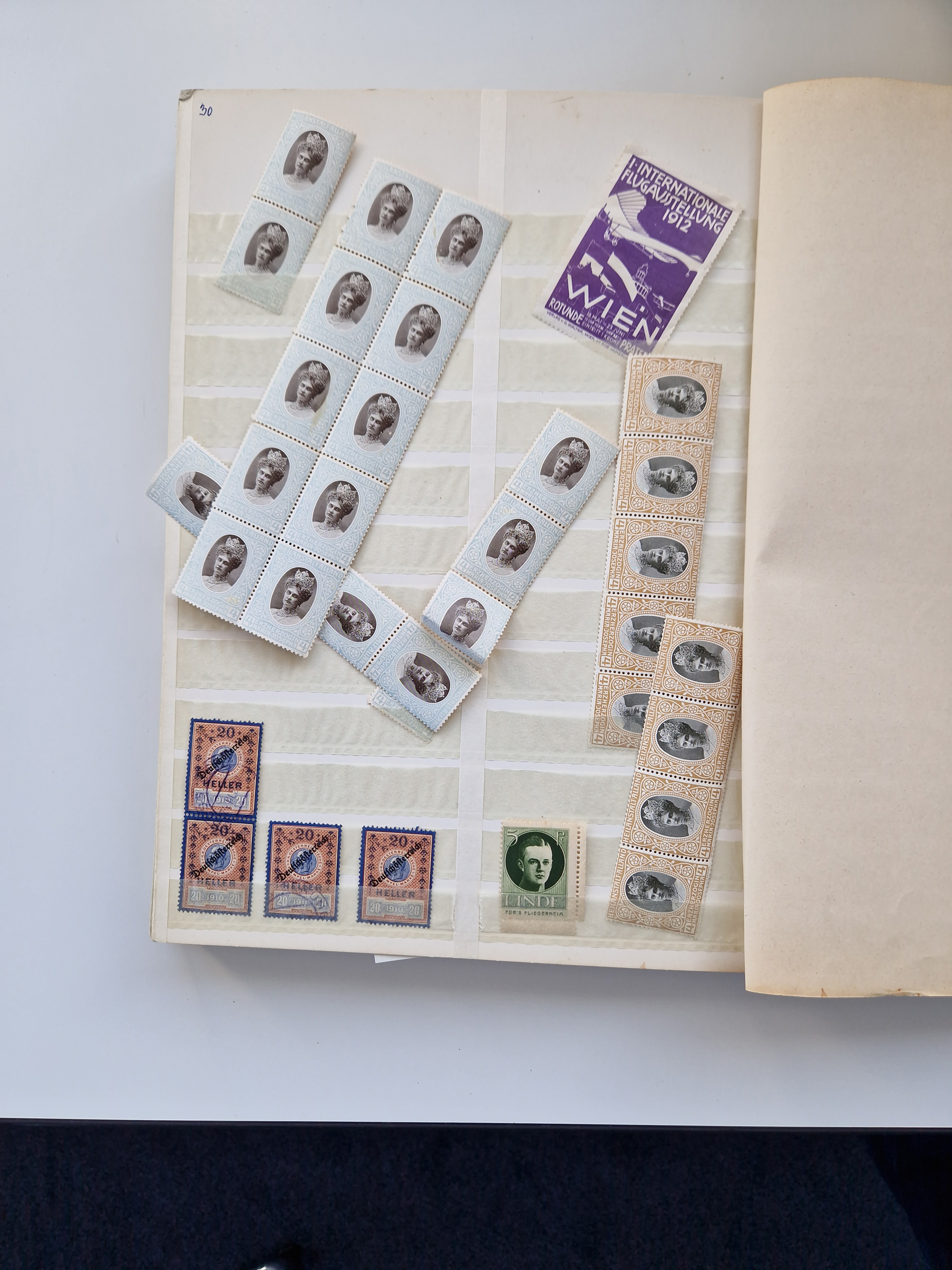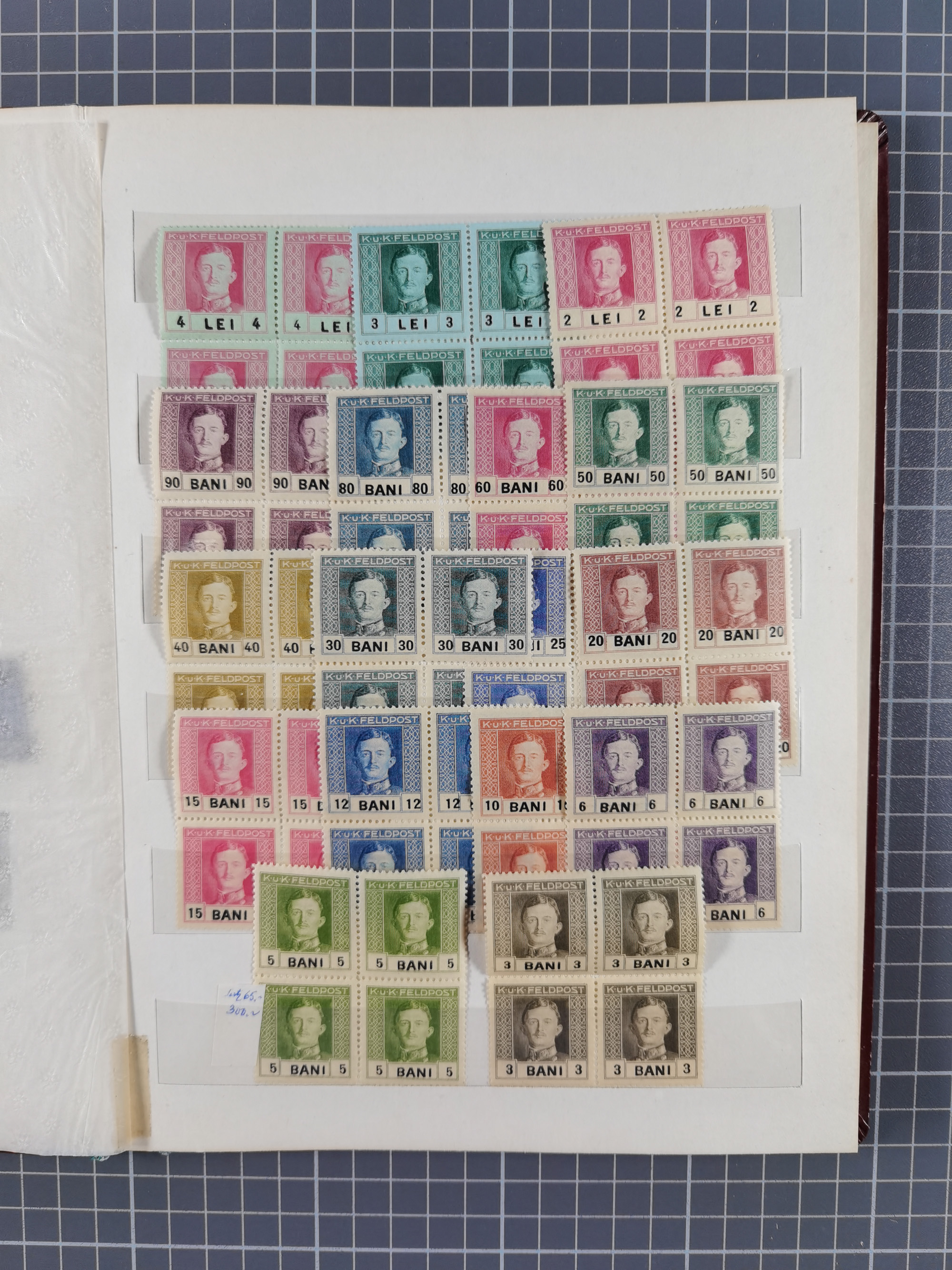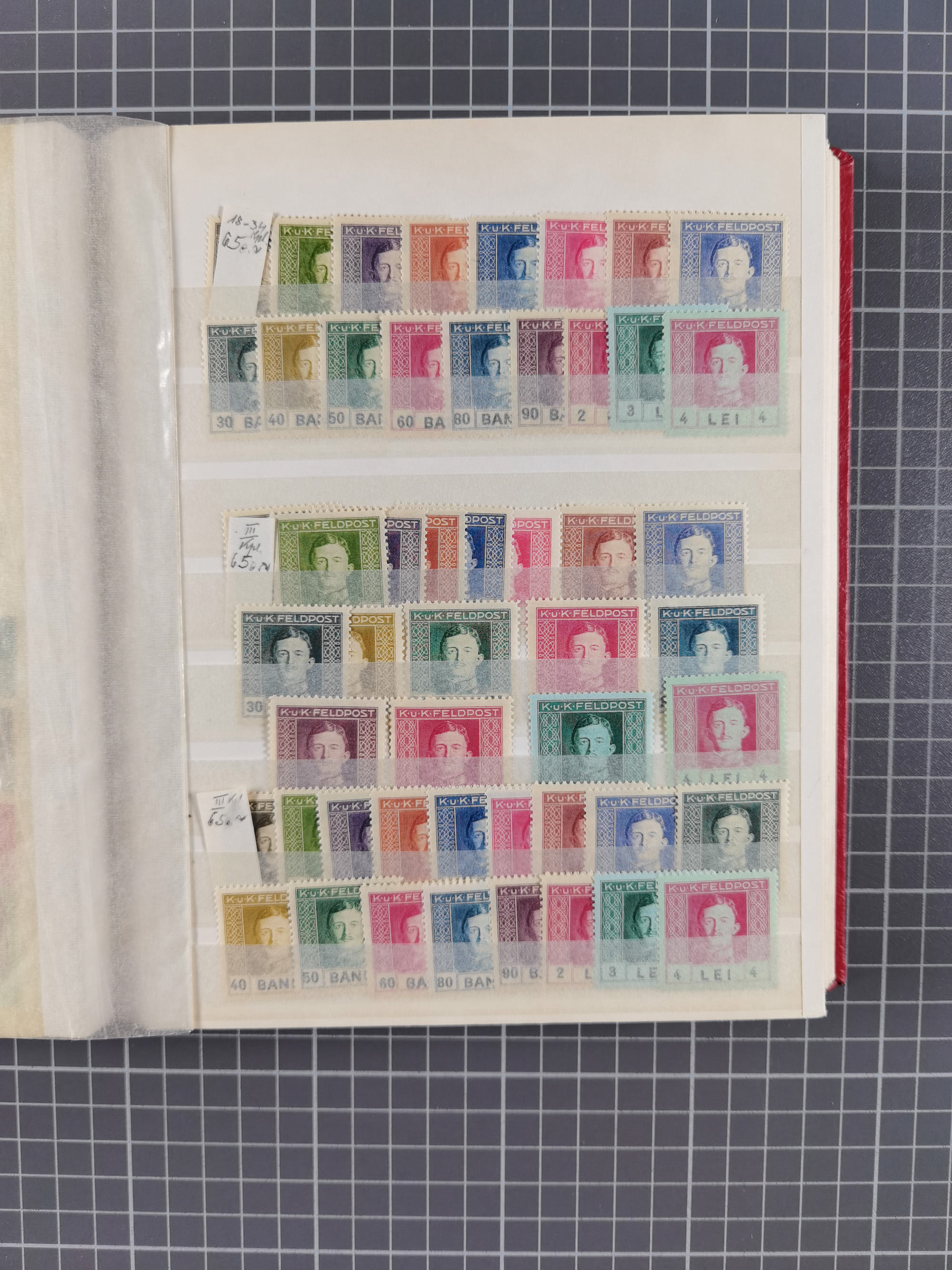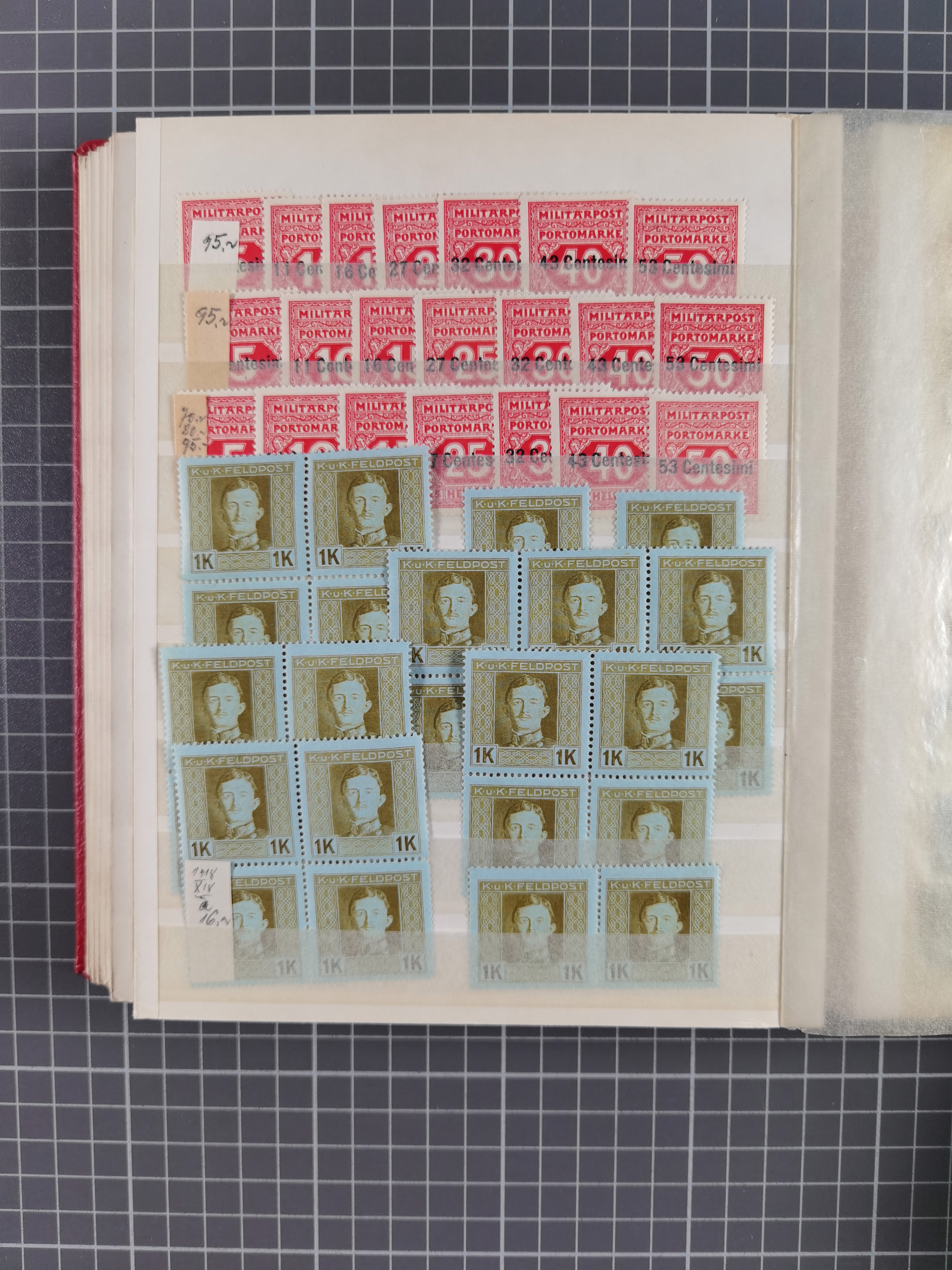 1918, Flugpost-Aufdruckausgabe Mi. 225-227, über 100 postfrische Sätze, meist in Einheiten