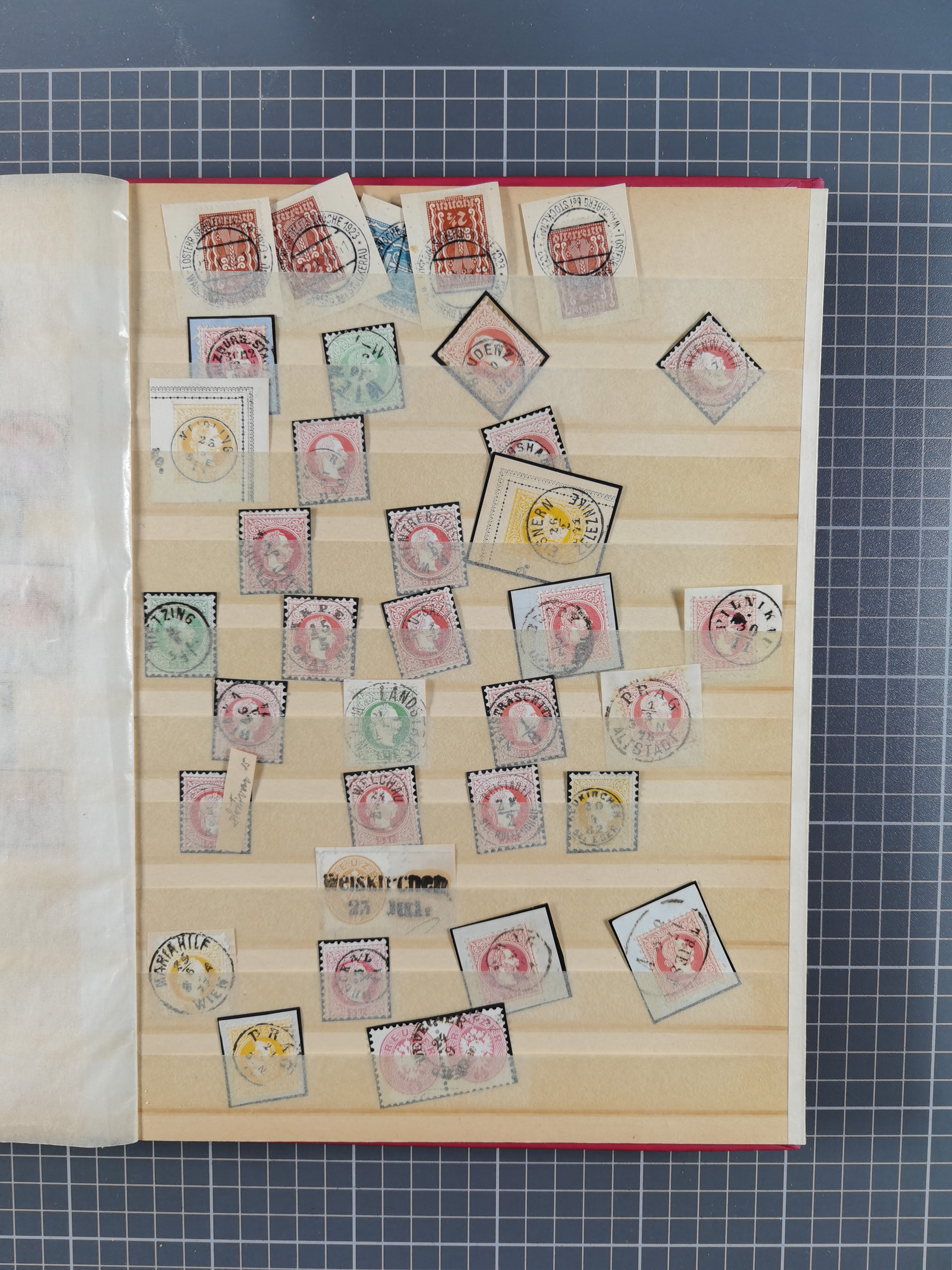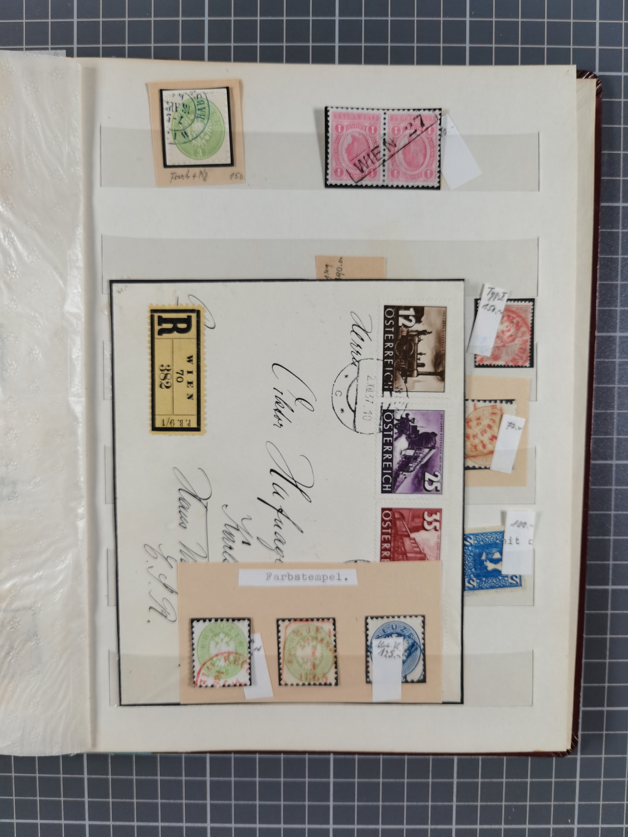 1850/80 (ca.), ungebrauchte und meist gestempelte Partie in 4 Alben und auf Albenseiten, dabei rote und blaue Stempel, Randstücke, 2 Ganzsachenkarten mit Zufrankatur 1867er Ausgabe, etc. Alte Beschriftungen nicht immer korrekt. Ein uriges und interessantes Objekt.