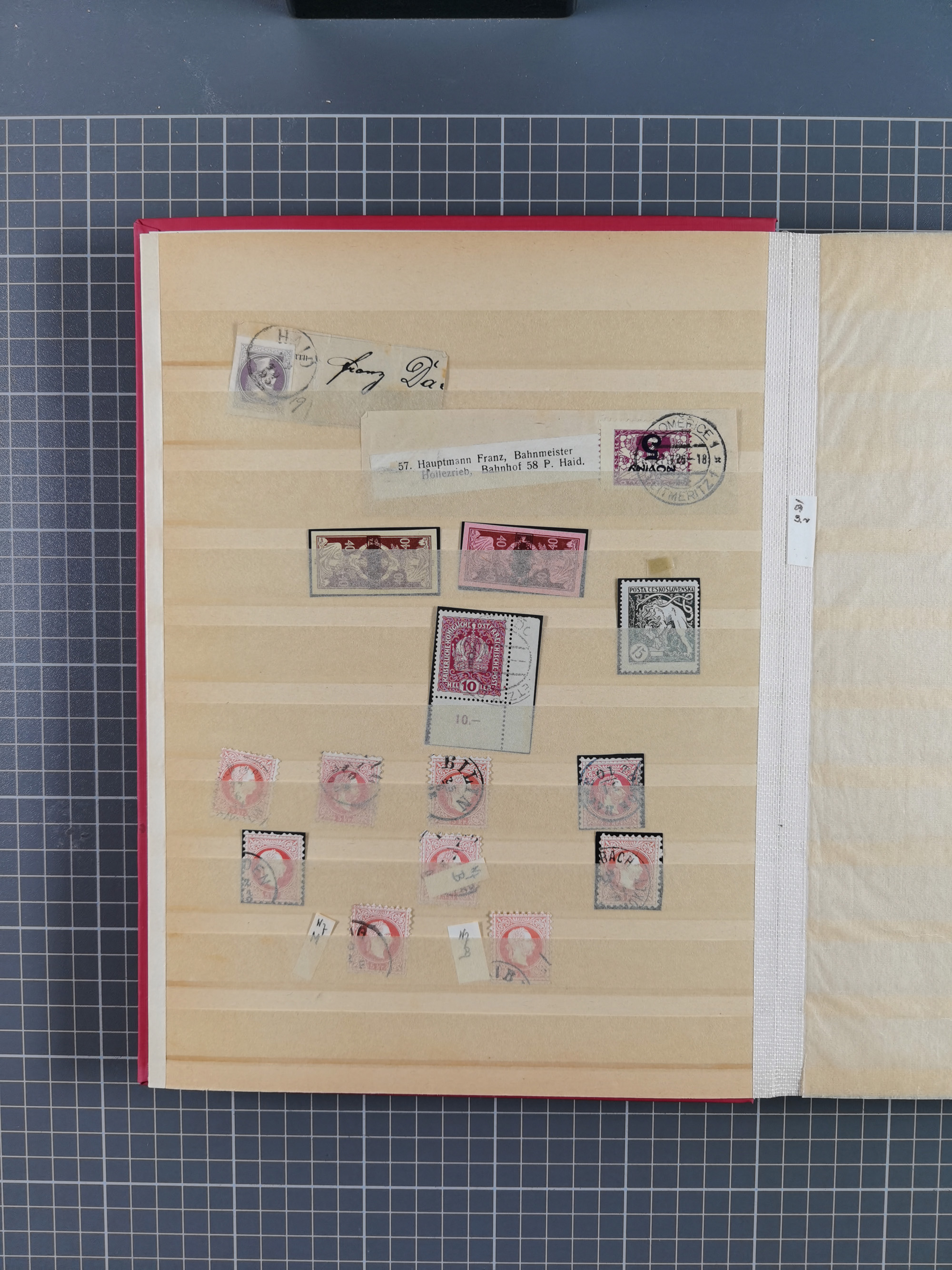 1867, Franz Josef 5 Kreuzer rot, waagerechtes Paar, farbfrisch und gut gezähnt, sauber mit EKr. “PRAG 14/8 74” auf Briefkuvert mit rückseitiger Werbung “TUCEK FRÈRES fabrique & dépot d'objets de luxe originaux en cuir a Prague…” aus der bekannten Aeuckens-Korrespondenz nach Helgoland, das Kuvert etwas fehlerhaft und altersfleckig, ein seltener Brief